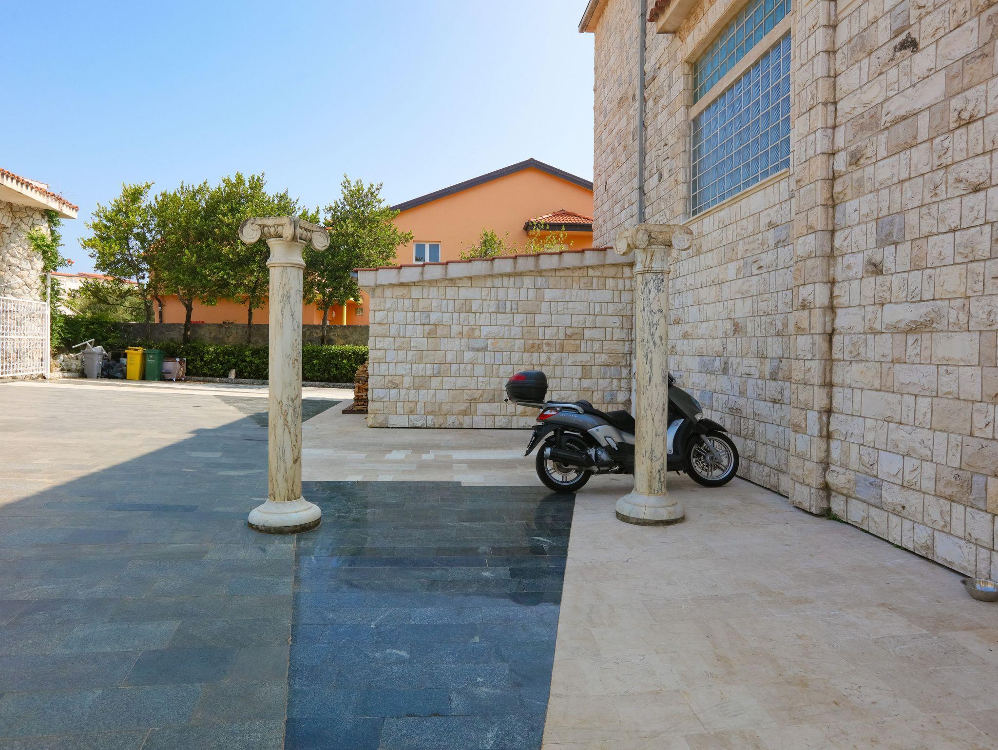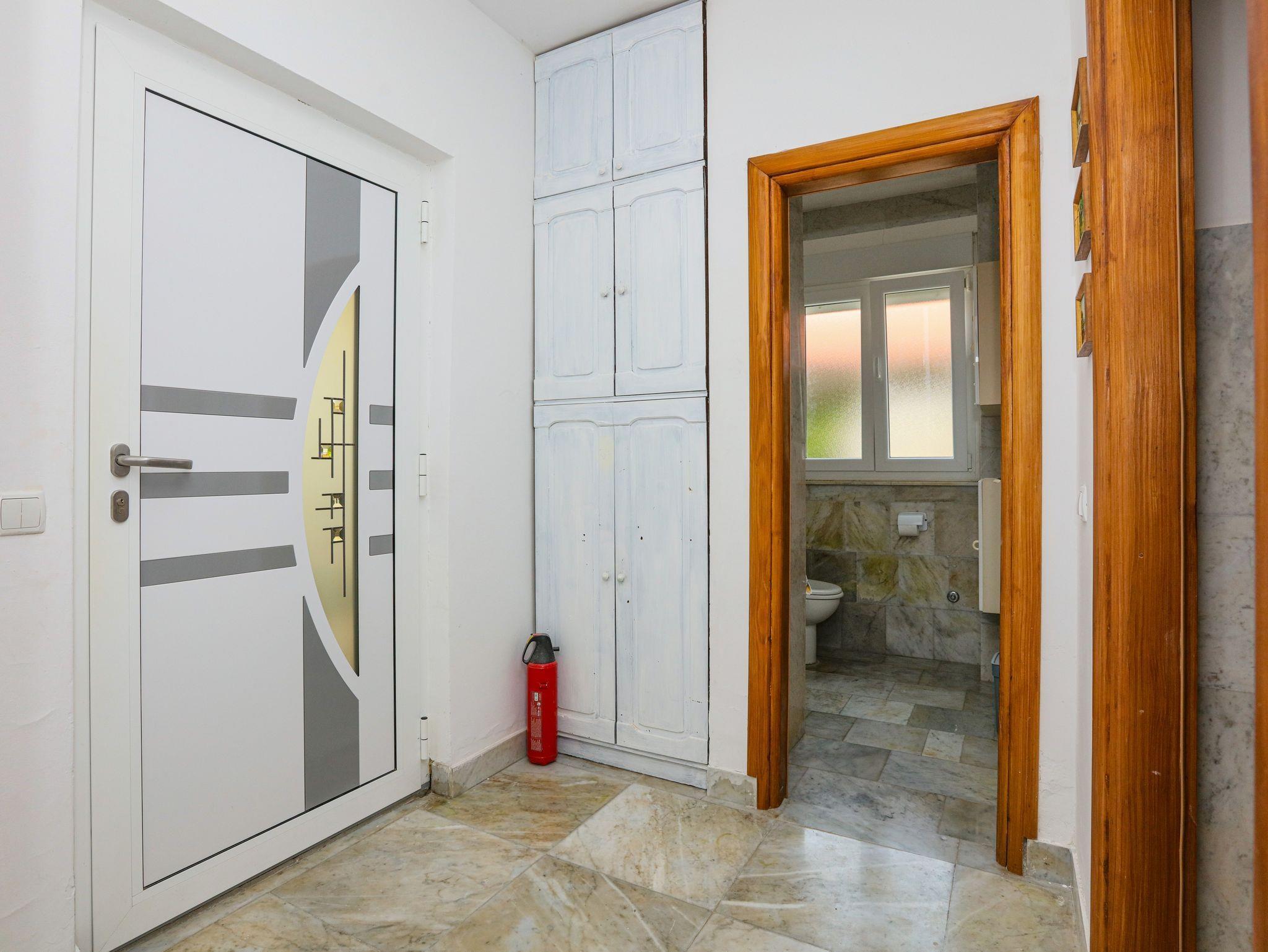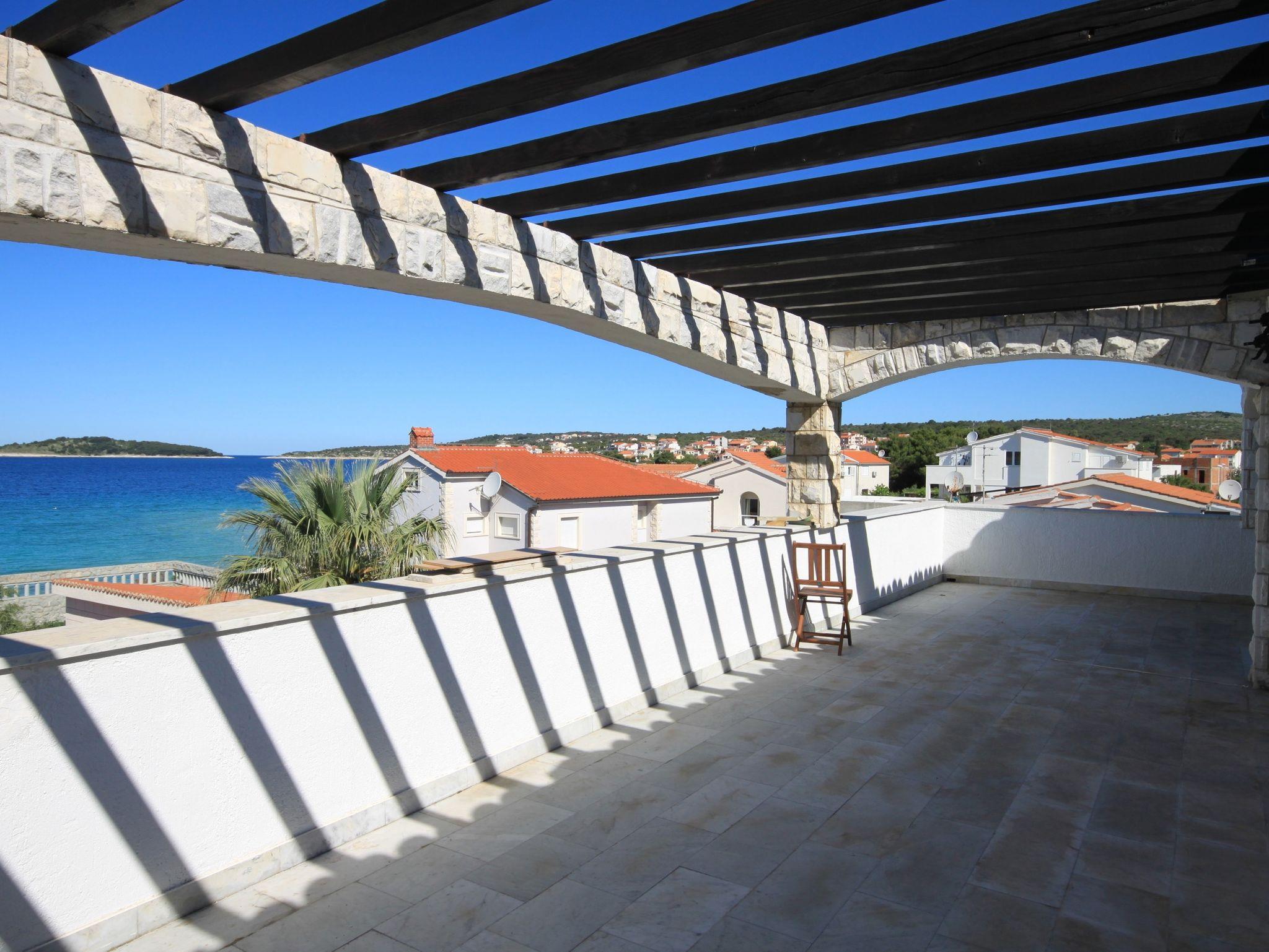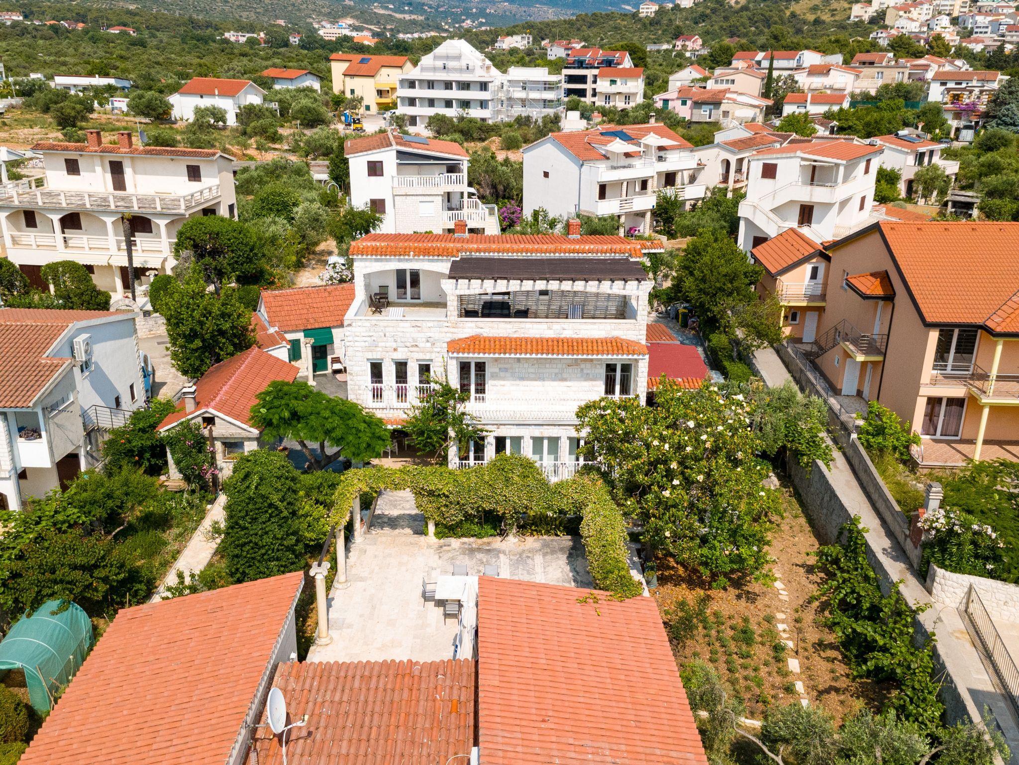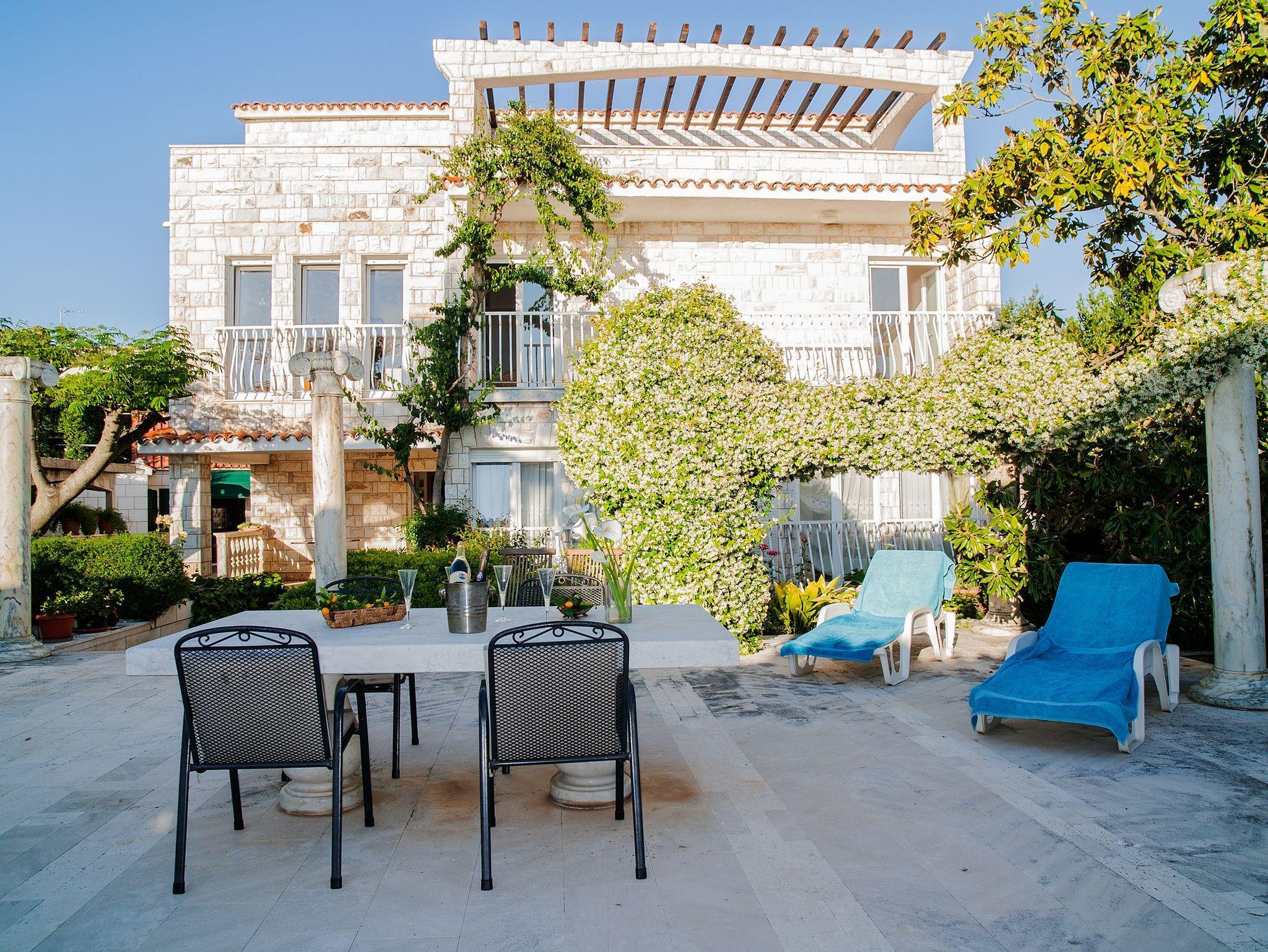 Haus bietet Platz für 10 Gäste. Die Betten sind in Schlafzimmern, die es 5 gibt, innerhalb einer Gesamtfläche von 217m2, angeordnet. Die Gäste haben eine eigene Terrasse zur Verfügung, auf der sie in warmen Sommernächten genießen können. Das Haus bietet Meerblick. Für vollen Genuss und Entspannung gibt es einen privaten Grill für Gäste dieser Unterkunft. IM PREIS INBEGRIFFEN: Kurtaxe, Endreinigung, Klimatisierung, Parkplatz, Internet, Bootsanlegeplatz, Bügelbrett, Föhn, Liegestühle. VERBINDLICHE ZUSÄTZLICHE KOSTEN: Aufzahlung für Kurzaufenthalte (prozentualer Zuschlag pro Nächtigungsanzahl: 30% - 1, 20% - 2, 10% - 3). Die Verfügbarkeit zusätzlicher Dienstleistungen in Ihrem reservierten Termin und die Preise derselben (falls nicht aufgeführt) müssen im Voraus überprüft werden. Zusätzliche Dienstleistungen die in der Zahlungsaufforderung nicht aufgeführt sind werden direkt beim Vermieter bezahlt, angenommen der Gast nutzt auch diese.