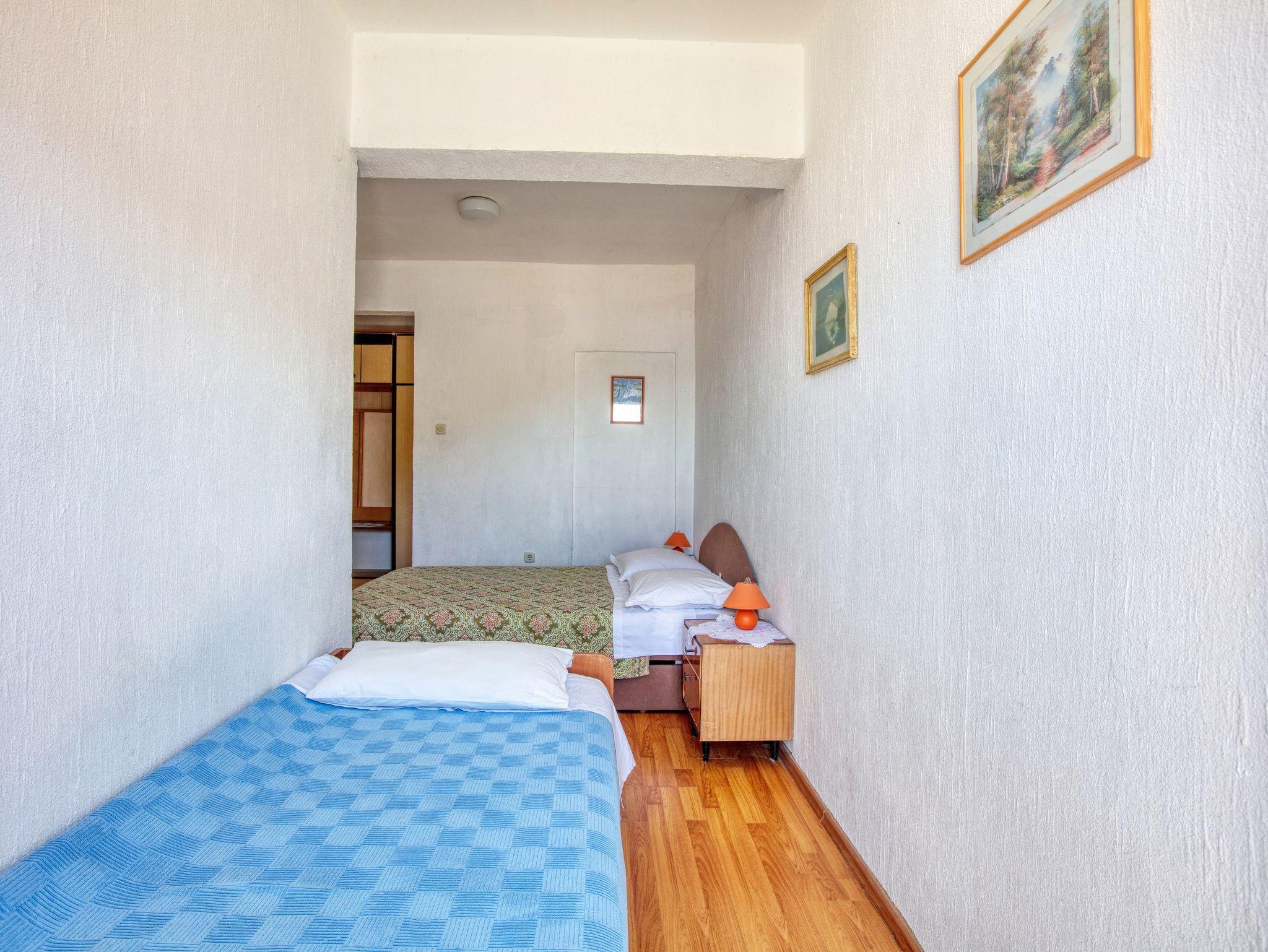Ferienwohnung bietet Platz für 6 Gäste. Die Betten sind in Schlafzimmern, die es 2 gibt, innerhalb einer Gesamtfläche von 56m2, angeordnet. Die Gäste haben eine eigene Terrasse zur Verfügung, auf der sie in warmen Sommernächten genießen können. Das Apartment bietet Meerblick. Es ist erlaubt, Speisen auf dem Gemeinschafts-Grill vorzubereiten. In der Unterkunftseinheit besteht die Möglichkeit des Mitbringens von Haustieren gegen Aufpreis. IM PREIS INBEGRIFFEN: Kurtaxe, Endreinigung, Klimatisierung, Parkplatz, Internet, Wäschewaschen, Bootsanlegeplatz, Bügeleisen, Bügelbrett, Föhn. VERBINDLICHE ZUSÄTZLICHE KOSTEN: Aufzahlung für Kurzaufenthalte (prozentualer Zuschlag pro Nächtigungsanzahl: 30% - 1, 20% - 2, 10% - 3). UNVERBINDLICHE ZUSÄTZLICHE KOSTEN: Haustiere (5,00 € pro Nacht). Die Verfügbarkeit zusätzlicher Dienstleistungen in Ihrem reservierten Termin und die Preise derselben (falls nicht aufgeführt) müssen im Voraus überprüft werden. Zusätzliche Dienstleistungen die in der Zahlungsaufforderung nicht aufgeführt sind werden direkt beim Vermieter bezahlt, angenommen der Gast nutzt auch diese. Ermäßigung auf den Grundpreis: Gratistag 14=13 (bei einem Aufenthalt von 14 Tagen oder mehr erhalten Sie einen Gratistag für den Aufenthalt bis 31.12.26).