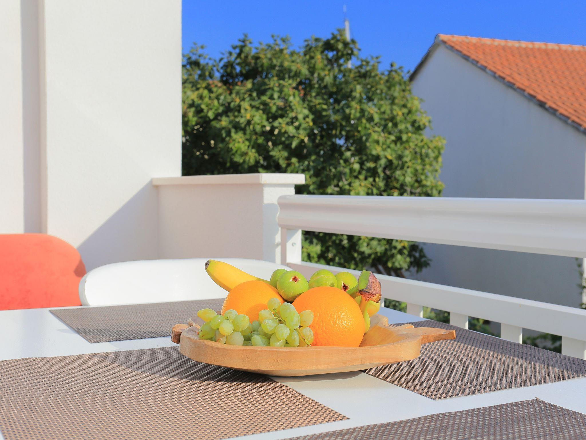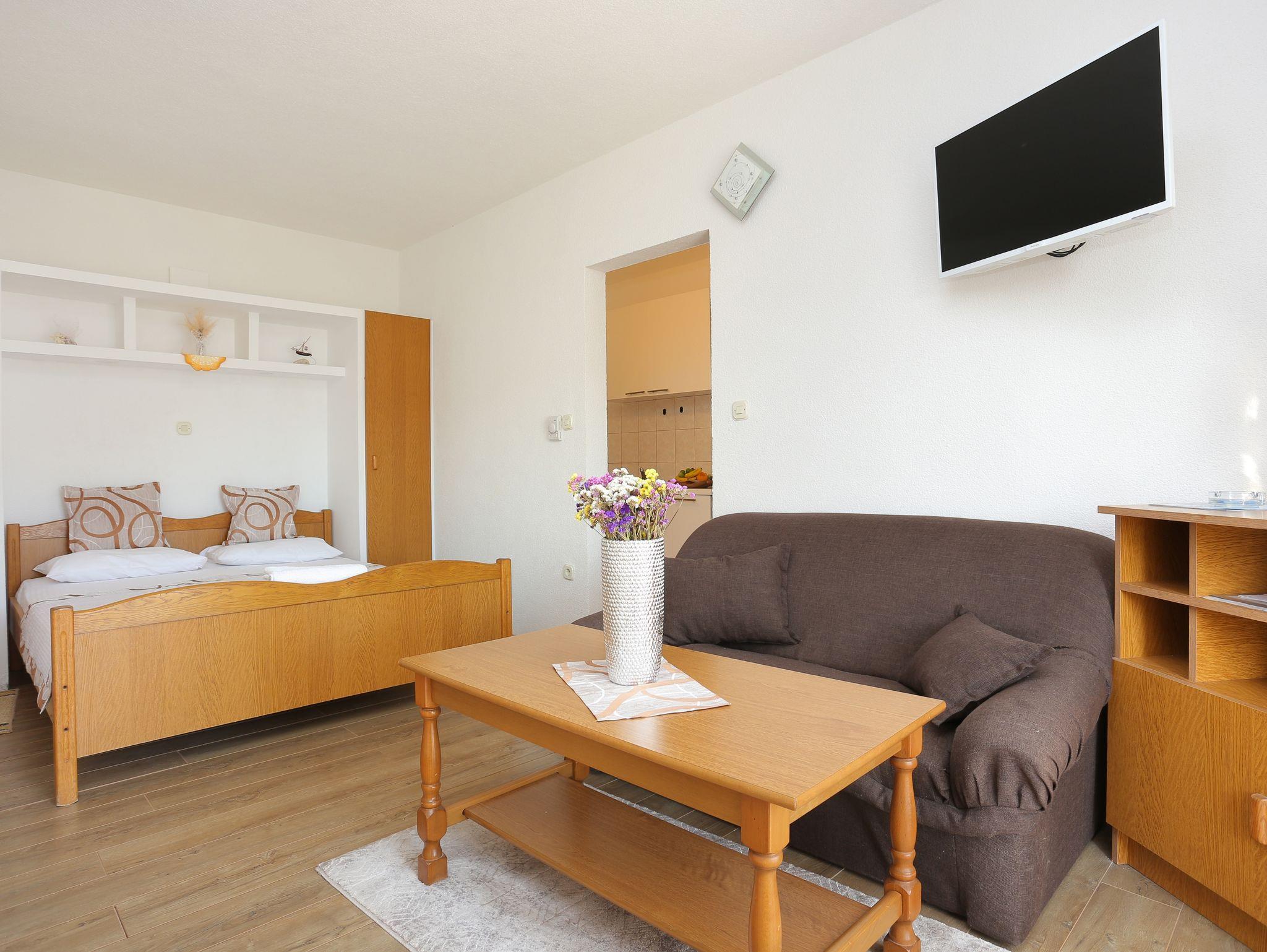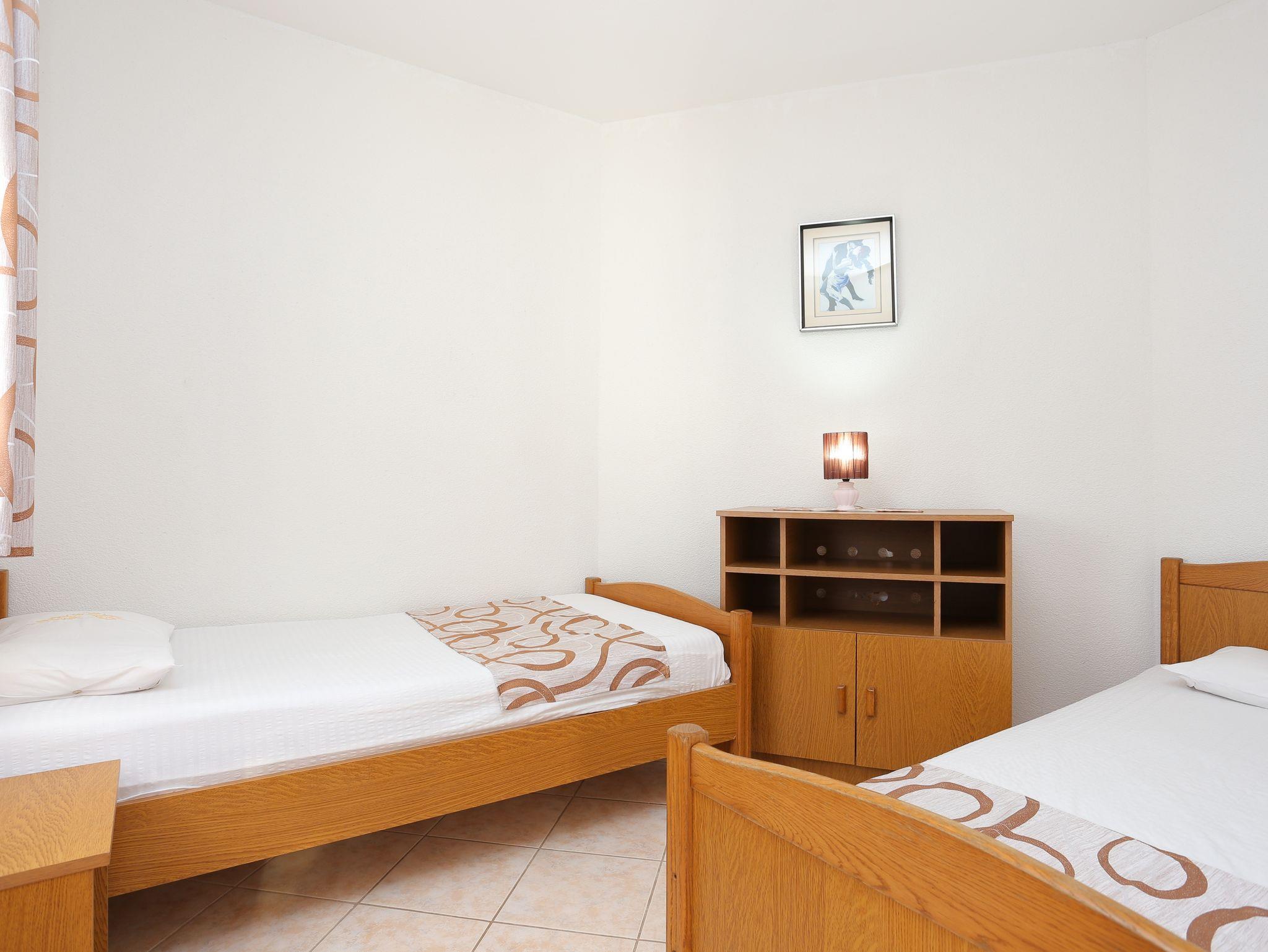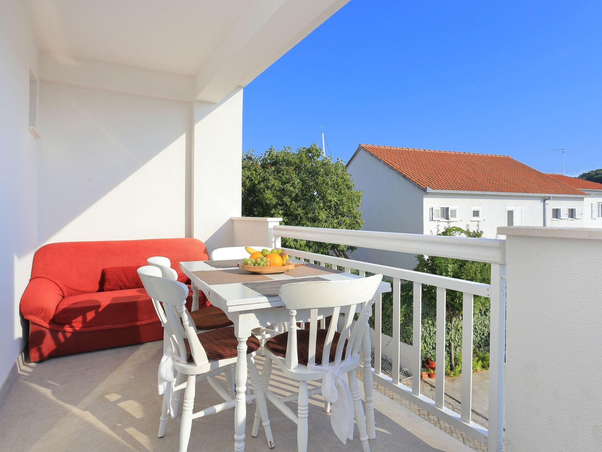 Ferienwohnung bietet Platz für 4 Gäste. Die Betten sind in Schlafzimmern, die es 1 gibt, und in Wohnzimmer, innerhalb einer Gesamtfläche von 29m2, angeordnet. Die Gäste haben einen eigenen Balkon zur Verfügung, auf der sie in warmen Sommernächten genießen können. Das Apartment bietet Meerblick. Es ist erlaubt, Speisen auf dem Gemeinschafts-Grill vorzubereiten. IM PREIS INBEGRIFFEN: Kurtaxe, Endreinigung, Klimatisierung, Parkplatz, Internet, Kinderbett, Bügeleisen, Bügelbrett. VERBINDLICHE ZUSÄTZLICHE KOSTEN: Aufzahlung für Kurzaufenthalte (prozentualer Zuschlag pro Nächtigungsanzahl: 30% - 1, 20% - 2, 10% - 3). UNVERBINDLICHE ZUSÄTZLICHE KOSTEN: Wäschewaschen (1,00 € Waschen). Die Verfügbarkeit zusätzlicher Dienstleistungen in Ihrem reservierten Termin und die Preise derselben (falls nicht aufgeführt) müssen im Voraus überprüft werden. Zusätzliche Dienstleistungen die in der Zahlungsaufforderung nicht aufgeführt sind werden direkt beim Vermieter bezahlt, angenommen der Gast nutzt auch diese.