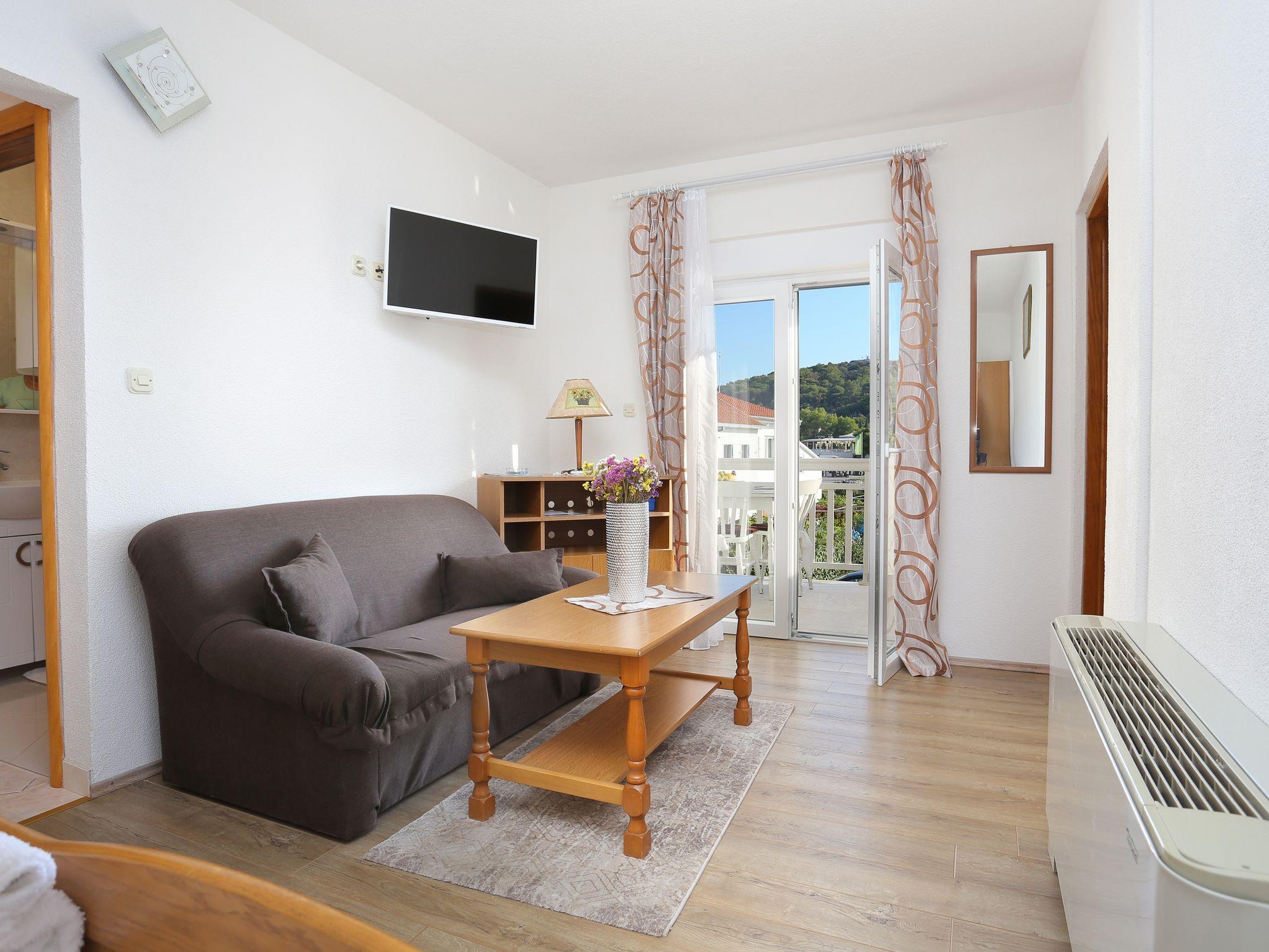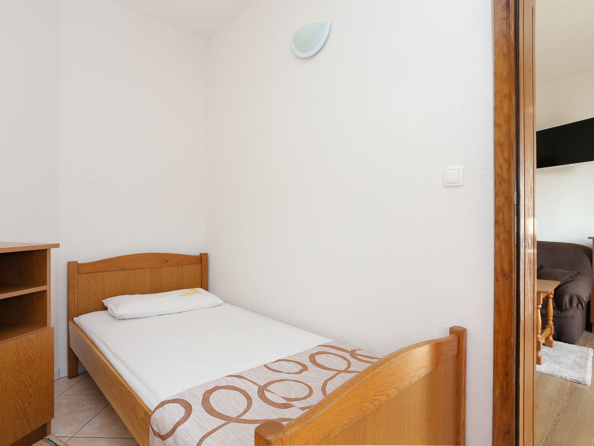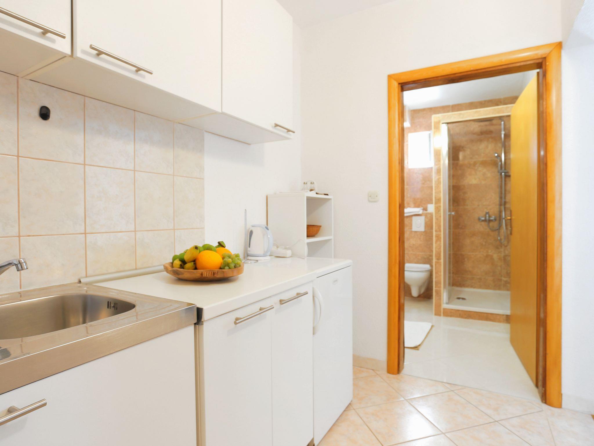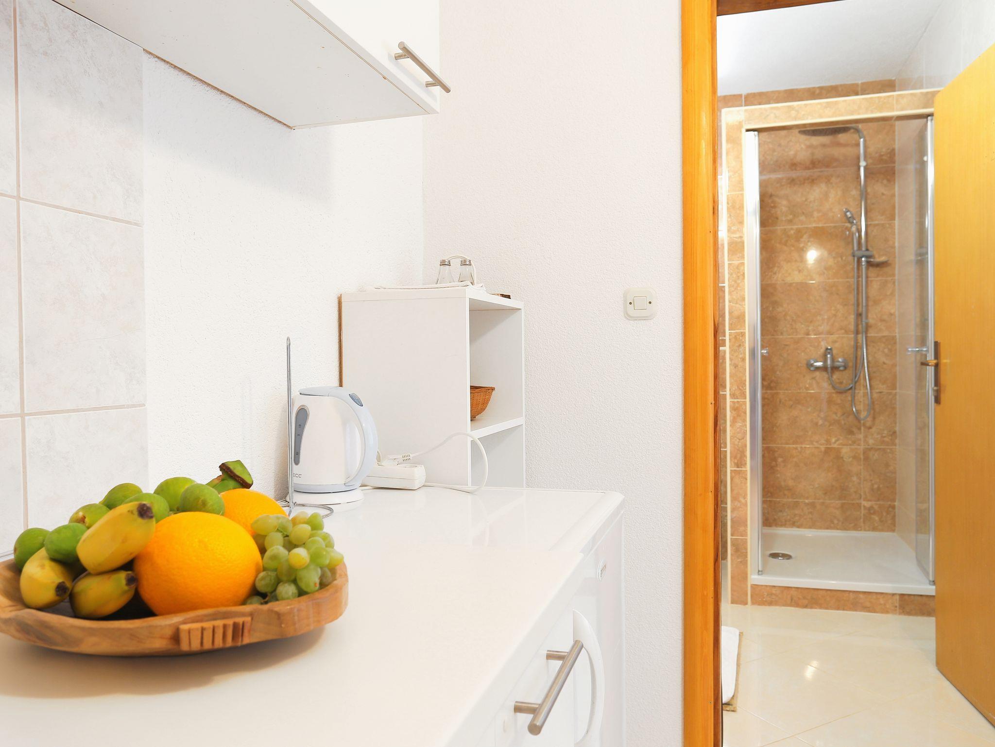 Ferienwohnung bietet Platz für 4 Gäste. Die Betten sind in Schlafzimmern, die es 1 gibt, und in Wohnzimmer, innerhalb einer Gesamtfläche von 29m2, angeordnet. Die Gäste haben einen eigenen Balkon zur Verfügung, auf der sie in warmen Sommernächten genießen können. Das Apartment bietet Meerblick. Es ist erlaubt, Speisen auf dem Gemeinschafts-Grill vorzubereiten. IM PREIS INBEGRIFFEN: Kurtaxe, Endreinigung, Klimatisierung, Parkplatz, Internet, Kinderbett, Bügeleisen, Bügelbrett. VERBINDLICHE ZUSÄTZLICHE KOSTEN: Aufzahlung für Kurzaufenthalte (prozentualer Zuschlag pro Nächtigungsanzahl: 30% - 1, 20% - 2, 10% - 3). UNVERBINDLICHE ZUSÄTZLICHE KOSTEN: Wäschewaschen (1,00 € Waschen). Die Verfügbarkeit zusätzlicher Dienstleistungen in Ihrem reservierten Termin und die Preise derselben (falls nicht aufgeführt) müssen im Voraus überprüft werden. Zusätzliche Dienstleistungen die in der Zahlungsaufforderung nicht aufgeführt sind werden direkt beim Vermieter bezahlt, angenommen der Gast nutzt auch diese.