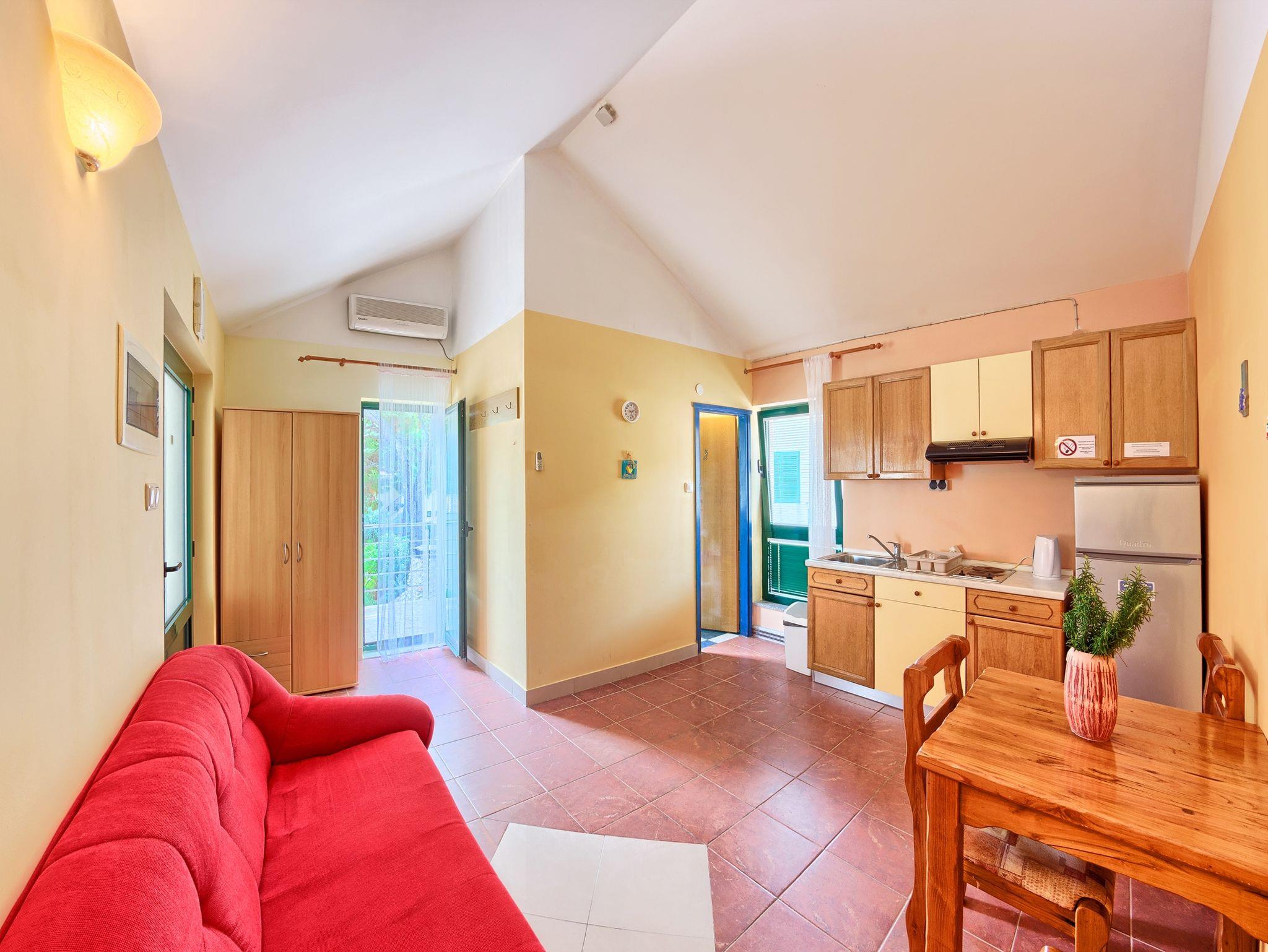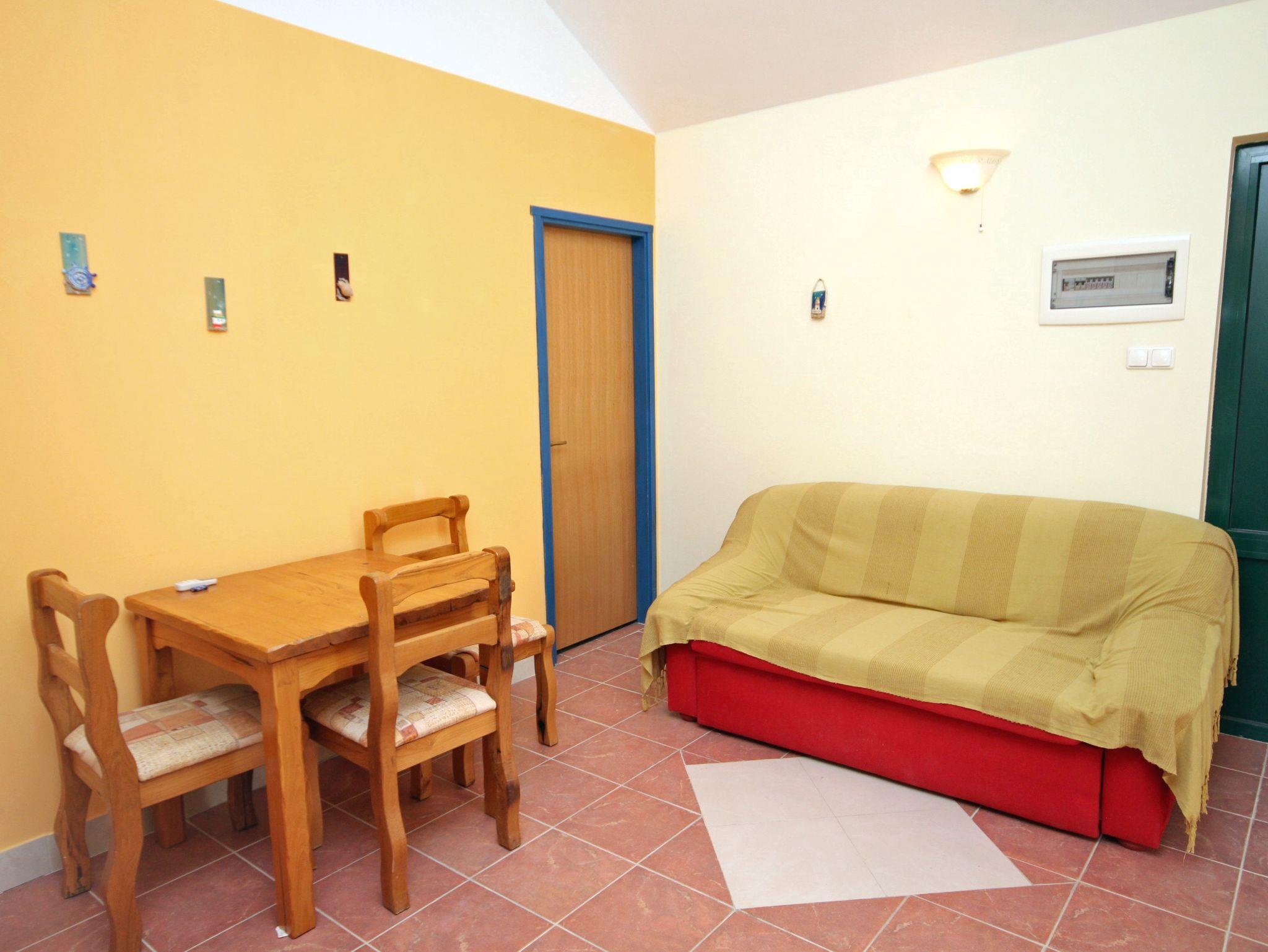 Ferienwohnung bietet Platz für 3 Gäste. Die Betten sind in Schlafzimmern, die es 1 gibt, und in Esszimmer, innerhalb einer Gesamtfläche von 37m2, angeordnet. Die Gäste haben eine eigene Terrasse zur Verfügung, auf der sie in warmen Sommernächten genießen können. Das Apartment bietet Meerblick. Es ist erlaubt, Speisen auf dem Gemeinschafts-Grill vorzubereiten. In der Unterkunftseinheit besteht die Möglichkeit des Mitbringens von Haustieren gegen Aufpreis. In der gebuchten Unterkunftseinheit zahlt man am Ort ein Depositum ( der Preis ist an der Internetseite angeführt ). IM PREIS INBEGRIFFEN: Kurtaxe, Endreinigung, Klimatisierung, Parkplatz, Internet, Kinderbett, Föhn. VERBINDLICHE ZUSÄTZLICHE KOSTEN: Kaution (100,00 € Einmalzahlung), Aufzahlung für Kurzaufenthalte (prozentualer Zuschlag pro Nächtigungsanzahl: 30% - 1, 20% - 2, 10% - 3). UNVERBINDLICHE ZUSÄTZLICHE KOSTEN: Wäschewaschen (5,00 € Waschen), Bootsanlegeplatz (25,00 € pro Nacht), Haustiere (20,00 € pro Nacht). Die Verfügbarkeit zusätzlicher Dienstleistungen in Ihrem reservierten Termin und die Preise derselben (falls nicht aufgeführt) müssen im Voraus überprüft werden. Zusätzliche Dienstleistungen die in der Zahlungsaufforderung nicht aufgeführt sind werden direkt beim Vermieter bezahlt, angenommen der Gast nutzt auch diese.