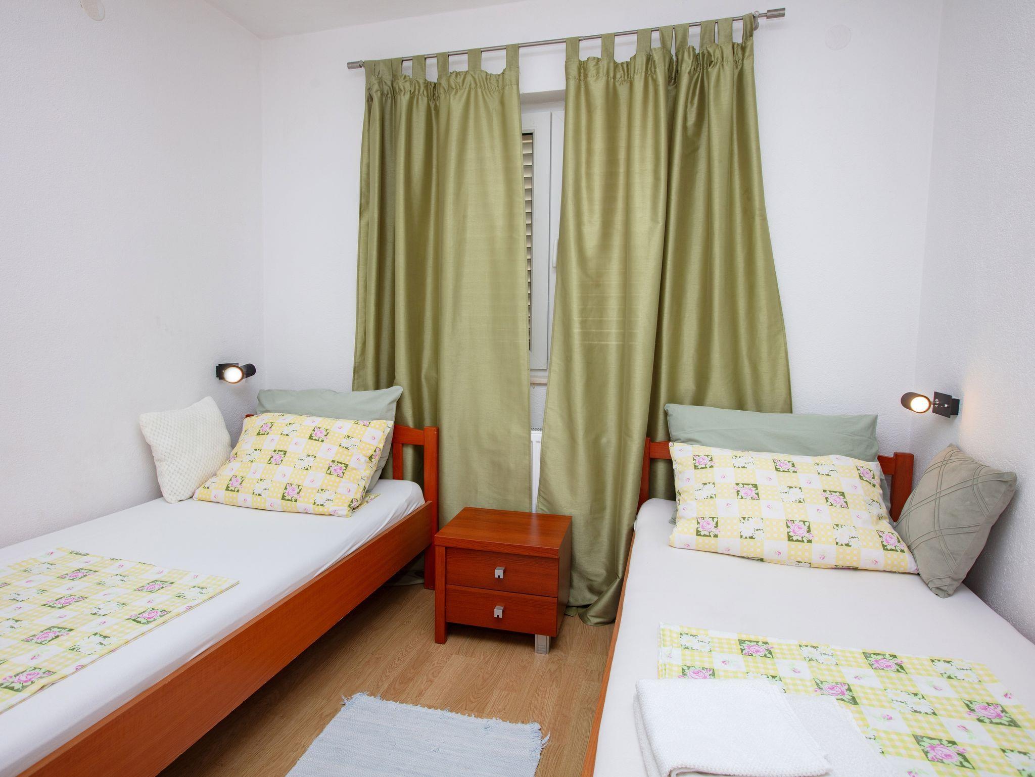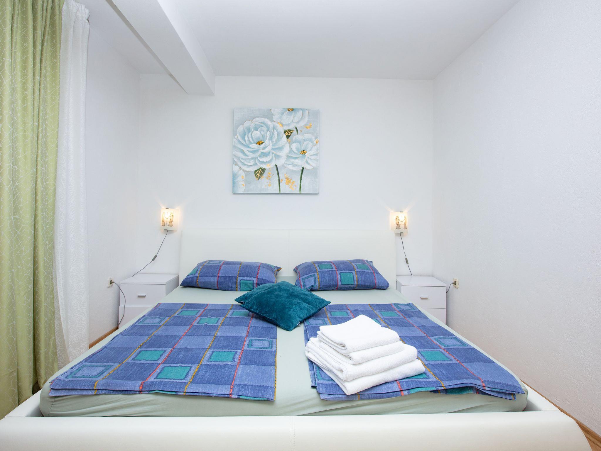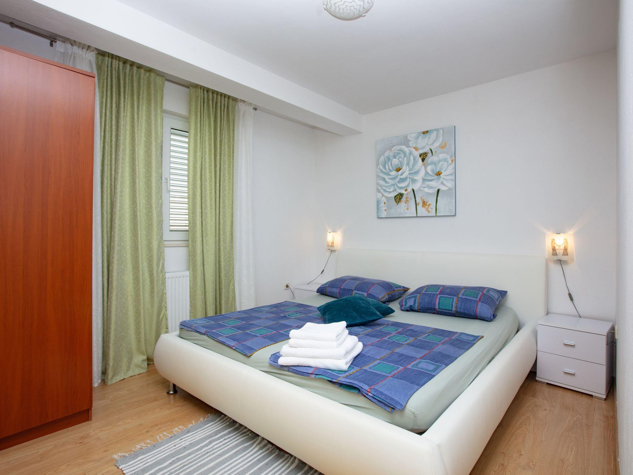 Ferienwohnung bietet Platz für 5 Gäste. Die Betten sind in Schlafzimmern, die es 2 gibt, und in Wohnzimmer, innerhalb einer Gesamtfläche von 47m2, angeordnet. Die Gäste haben eine eigene Terrasse zur Verfügung, auf der sie in warmen Sommernächten genießen können. Das Apartment bietet Meerblick. Es ist erlaubt, Speisen auf dem Gemeinschafts-Grill vorzubereiten. IM PREIS INBEGRIFFEN: Kurtaxe, Endreinigung, Klimatisierung, Zentralheizung, Parkplatz, Internet, Bügeleisen, Bügelbrett, Föhn. VERBINDLICHE ZUSÄTZLICHE KOSTEN: Aufzahlung für Kurzaufenthalte (prozentualer Zuschlag pro Nächtigungsanzahl: 30% - 1, 20% - 2, 10% - 3). UNVERBINDLICHE ZUSÄTZLICHE KOSTEN: Wäschewaschen (5,00 € Waschen), Bootsanlegeplatz (3,00 € pro Nacht). Die Verfügbarkeit zusätzlicher Dienstleistungen in Ihrem reservierten Termin und die Preise derselben (falls nicht aufgeführt) müssen im Voraus überprüft werden. Zusätzliche Dienstleistungen die in der Zahlungsaufforderung nicht aufgeführt sind werden direkt beim Vermieter bezahlt, angenommen der Gast nutzt auch diese.
