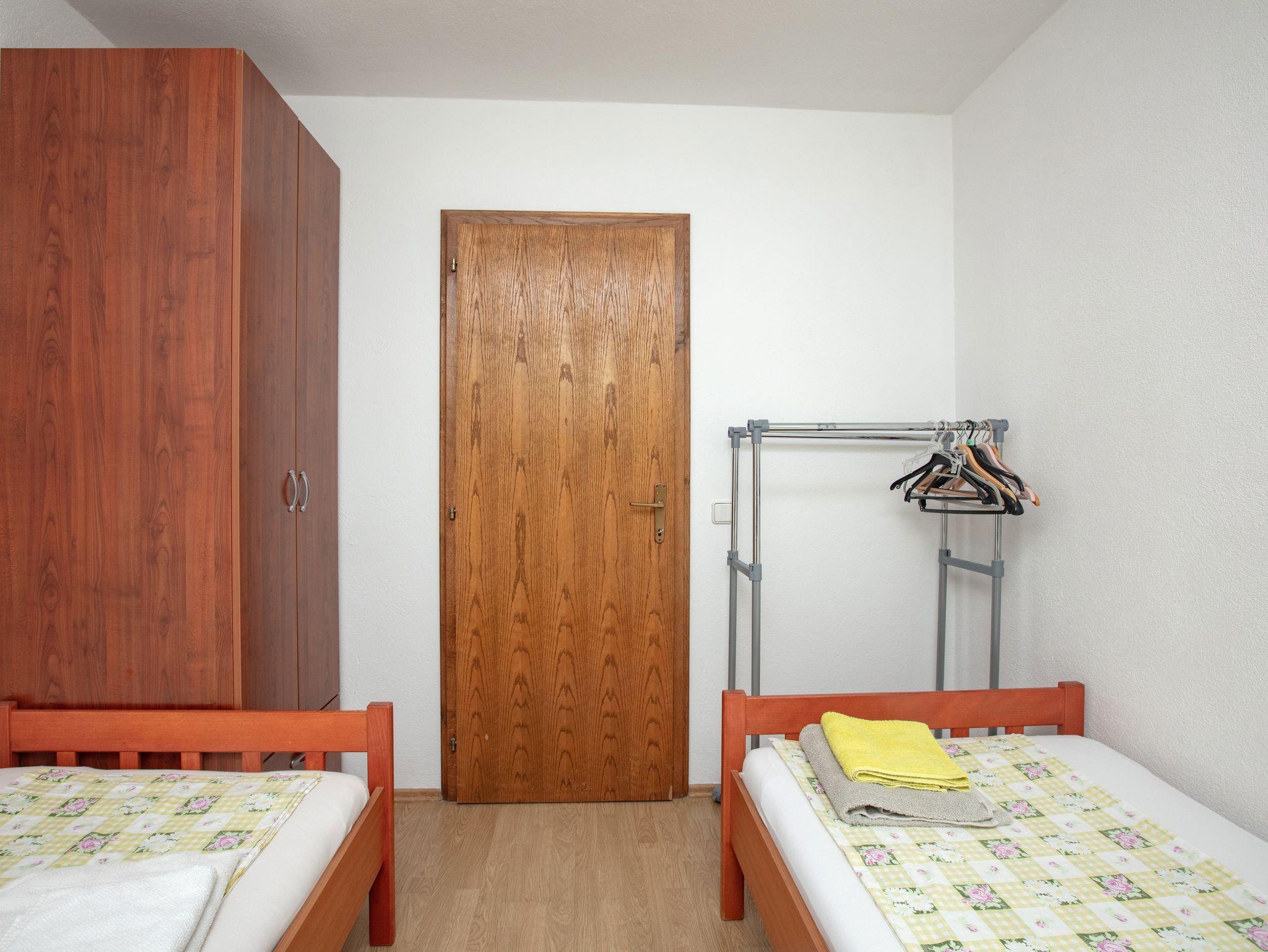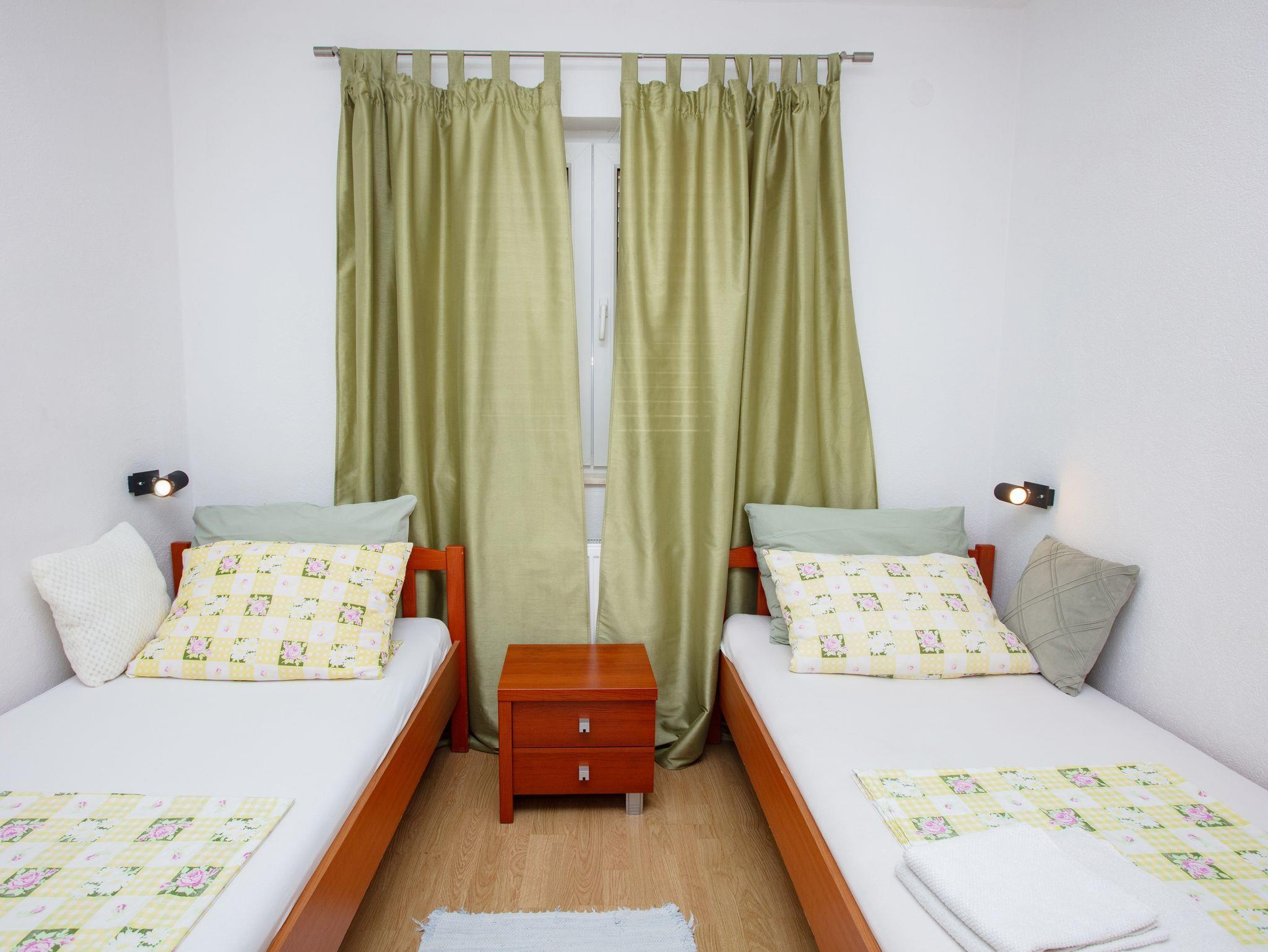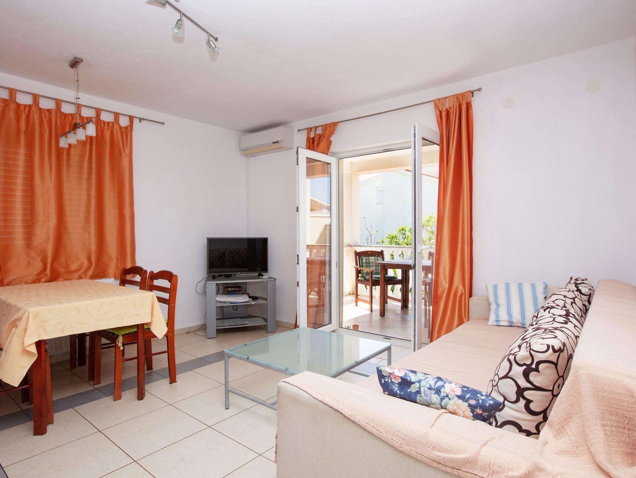 Ferienwohnung bietet Platz für 5 Gäste. Die Betten sind in Schlafzimmern, die es 2 gibt, und in Wohnzimmer, innerhalb einer Gesamtfläche von 47m2, angeordnet. Die Gäste haben eine eigene Terrasse zur Verfügung, auf der sie in warmen Sommernächten genießen können. Das Apartment bietet Meerblick. Es ist erlaubt, Speisen auf dem Gemeinschafts-Grill vorzubereiten. IM PREIS INBEGRIFFEN: Kurtaxe, Endreinigung, Klimatisierung, Zentralheizung, Parkplatz, Internet, Bügeleisen, Bügelbrett, Föhn. VERBINDLICHE ZUSÄTZLICHE KOSTEN: Aufzahlung für Kurzaufenthalte (prozentualer Zuschlag pro Nächtigungsanzahl: 30% - 1, 20% - 2, 10% - 3). UNVERBINDLICHE ZUSÄTZLICHE KOSTEN: Wäschewaschen (5,00 € Waschen), Bootsanlegeplatz (3,00 € pro Nacht). Die Verfügbarkeit zusätzlicher Dienstleistungen in Ihrem reservierten Termin und die Preise derselben (falls nicht aufgeführt) müssen im Voraus überprüft werden. Zusätzliche Dienstleistungen die in der Zahlungsaufforderung nicht aufgeführt sind werden direkt beim Vermieter bezahlt, angenommen der Gast nutzt auch diese.