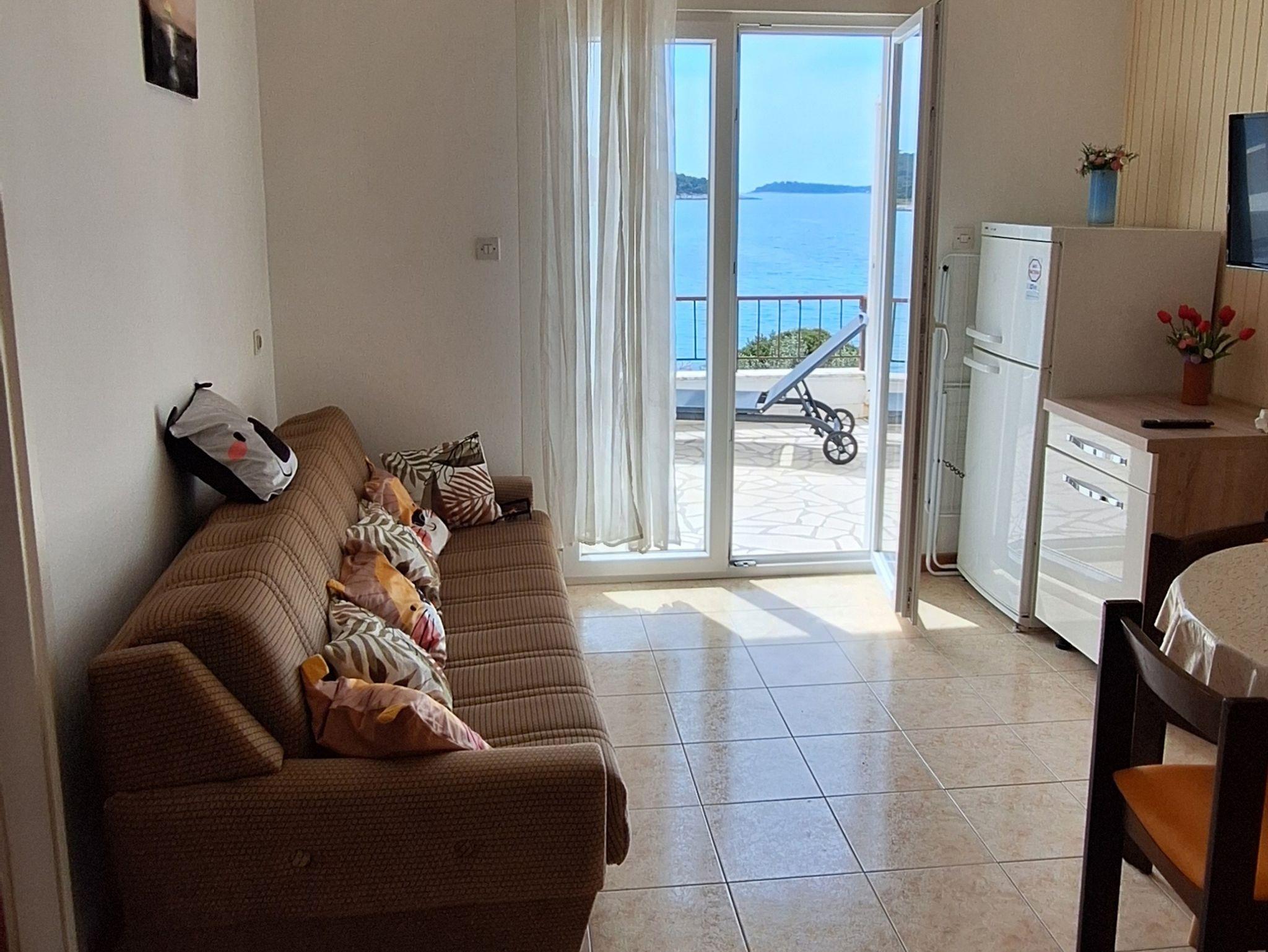 Ferienwohnung bietet Platz für 4 Gäste. Die Betten sind in Schlafzimmern, die es 2 gibt, innerhalb einer Gesamtfläche von 38m2, angeordnet. Die Gäste haben eine eigene Terrasse zur Verfügung, auf der sie in warmen Sommernächten genießen können. Das Apartment bietet Meerblick. Es ist erlaubt, Speisen auf dem Gemeinschafts-Grill vorzubereiten. IM PREIS INBEGRIFFEN: Kurtaxe, Endreinigung, Klimatisierung, Parkplatz, Internet, Bootsanlegeplatz, Bügeleisen, Bügelbrett, Föhn. VERBINDLICHE ZUSÄTZLICHE KOSTEN: Aufzahlung für Kurzaufenthalte (prozentualer Zuschlag pro Nächtigungsanzahl: 30% - 1, 20% - 2, 10% - 3). Die Verfügbarkeit zusätzlicher Dienstleistungen in Ihrem reservierten Termin und die Preise derselben (falls nicht aufgeführt) müssen im Voraus überprüft werden. Zusätzliche Dienstleistungen die in der Zahlungsaufforderung nicht aufgeführt sind werden direkt beim Vermieter bezahlt, angenommen der Gast nutzt auch diese.