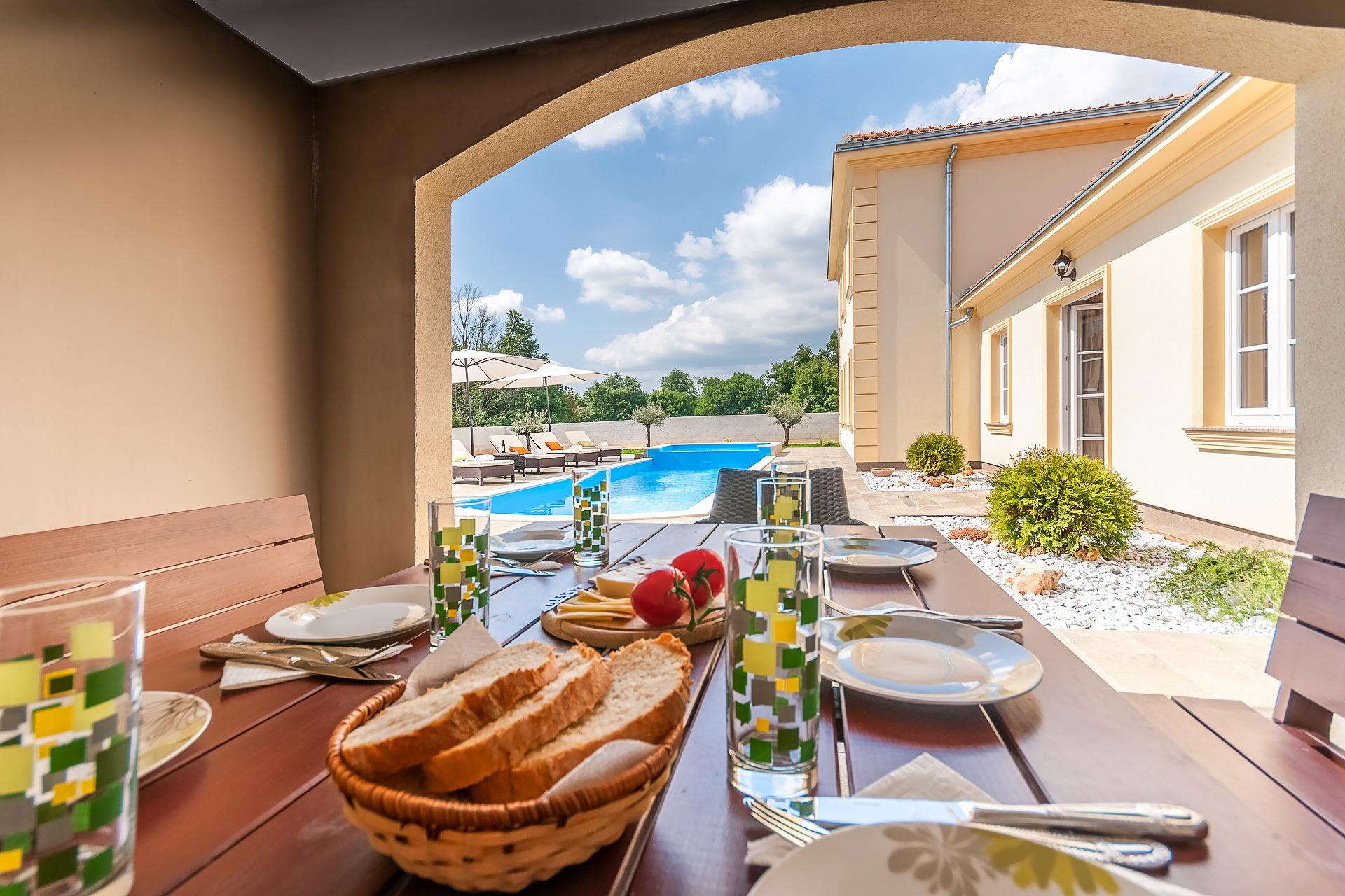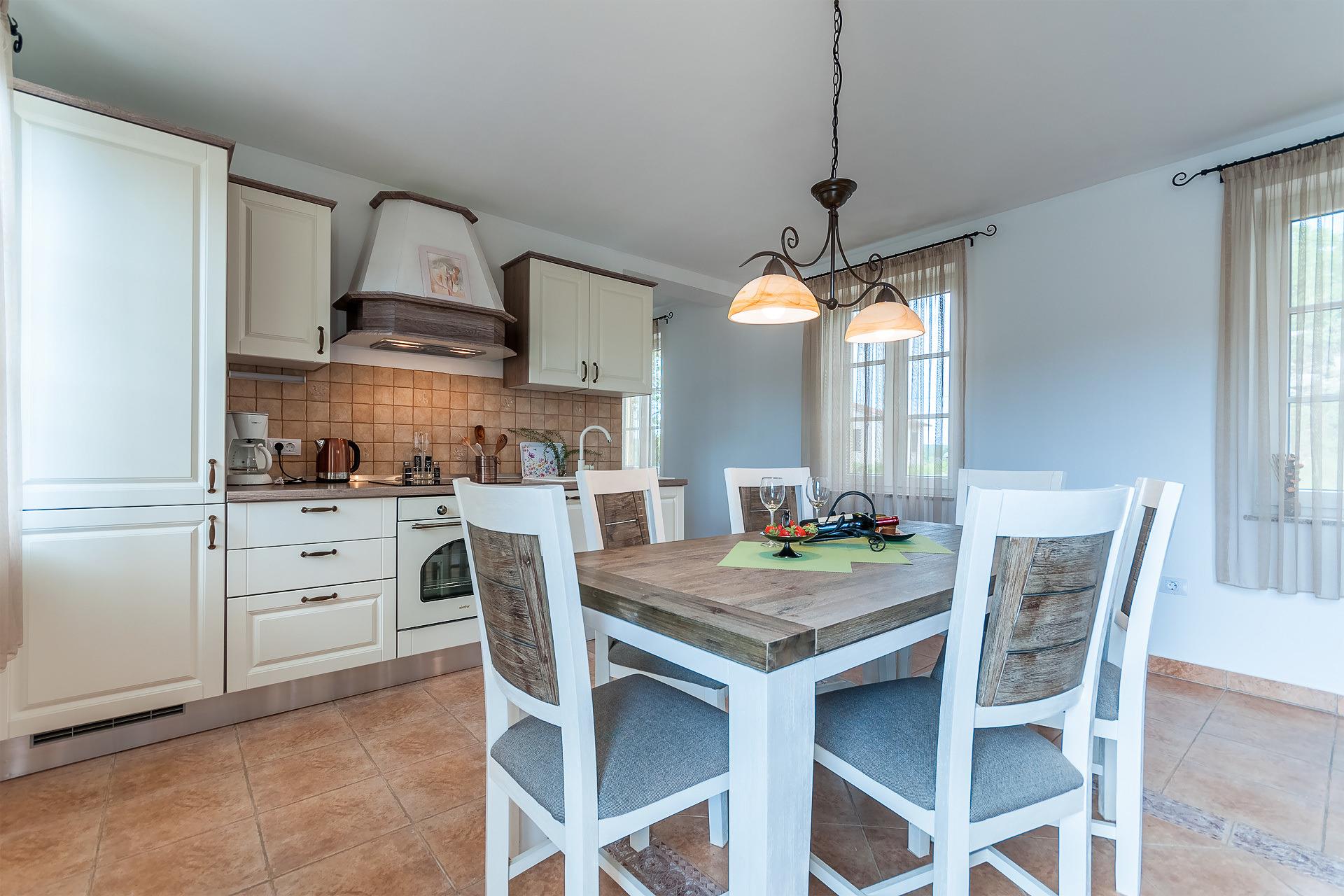 Diese exklusive Villa befindet sich in einem kleinen pitoresk Istrian Dorf in der Nähe der Stadt Barban. Das Haus befindet sich in der Mitte des Dorfes, aber dennoch sorgt für absolute Privatsphäre und unberührte Natur für seine Gäste. Es eignet sich besonders für Familien mit Kindern, da der Pool ein Kinderbecken beinhaltet, das auch ein Massagebecken ist.