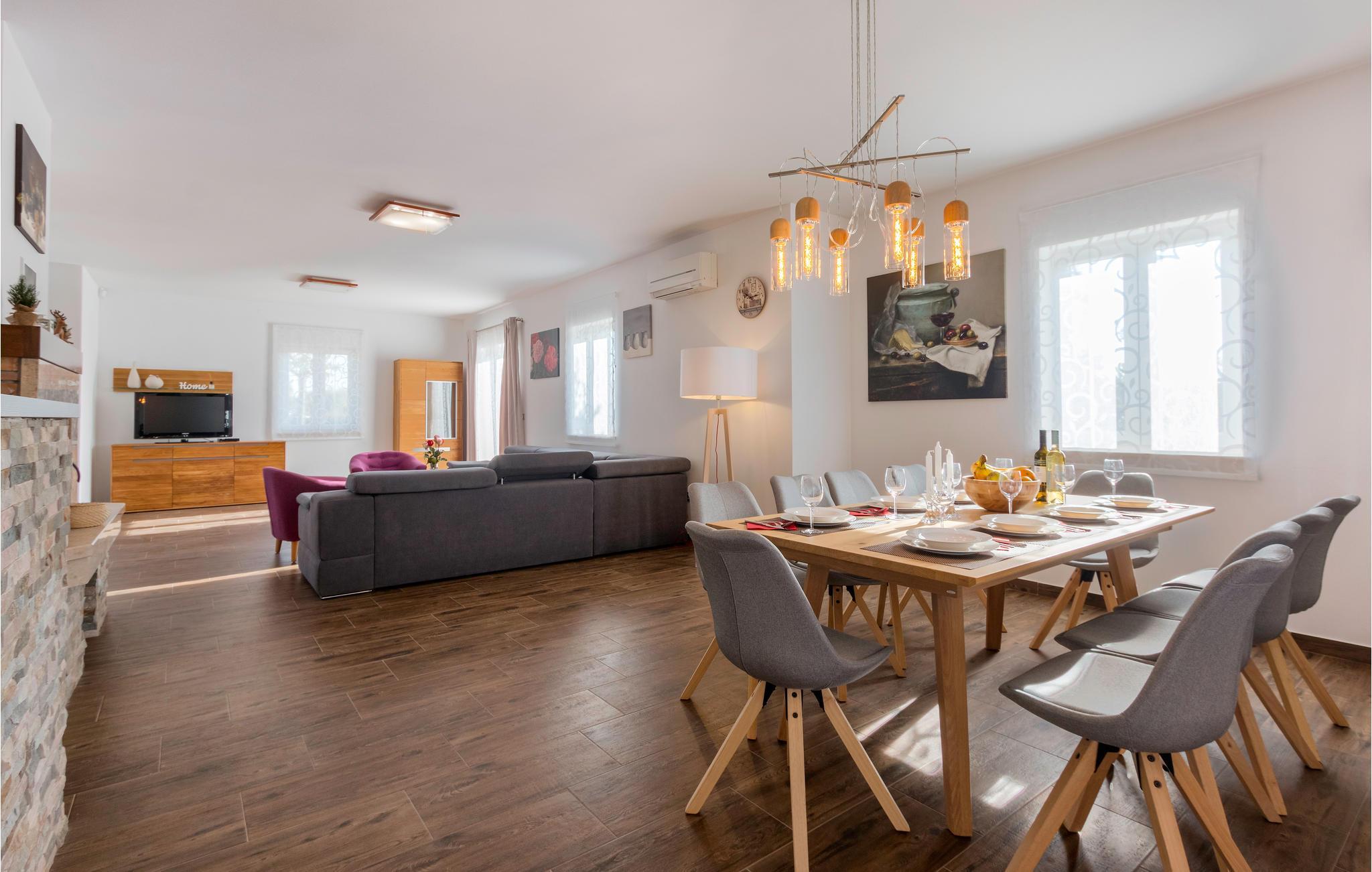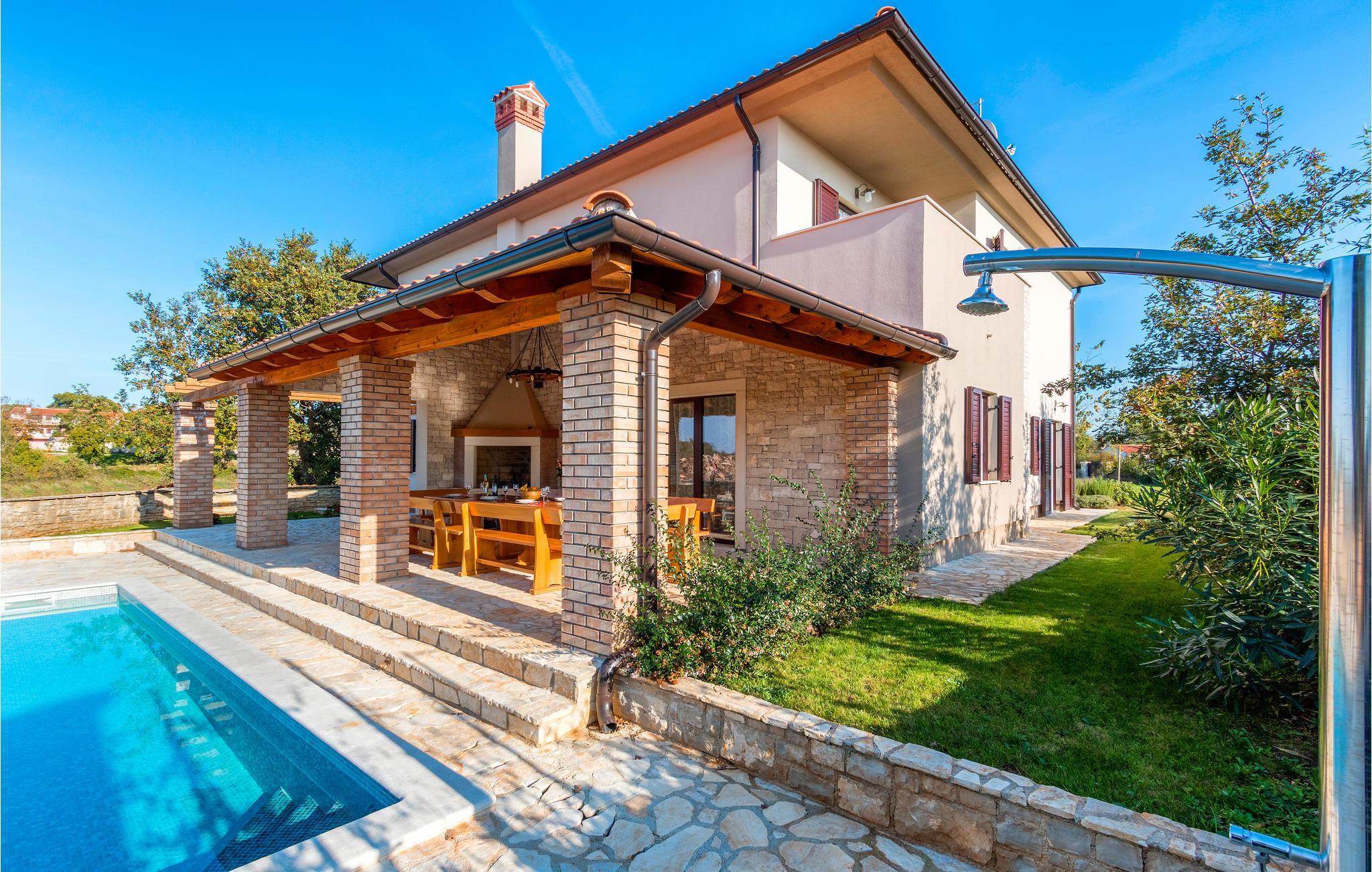 I en liten landsby, nær den lille byen Bale, finner du dette fantastiske feriehuset med basseng, egnet for to eller flere familier. I den romslige første etasje er det stue med kjøkken og spiseplass, samt en direkte utgang til den overbygde terrassen med mursteinpeis. I første etasje er det et annet soverom med eget bad. Ytterligere fire soverom med eget bad og balkong er i øverste etasje. Foran terrassen er bassenget og solterrasse. Et ekstra toalett er også tilgjengelig på eiendommen. Under oppholdet kan du besøke den romantiske byen Rovinj og gå langs gamlebyen til kirken St. Euphemia, som ruver over byen og tilbyr en vakker utsikt over havet.