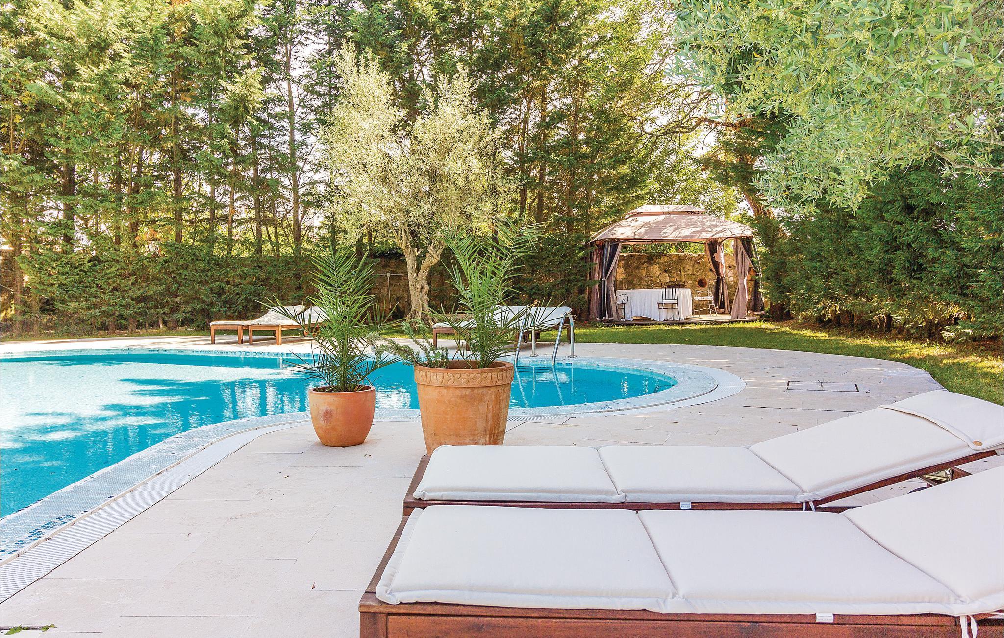 I utkanten av den lille middelalderbyen Bale, på vestkysten av Istria, ligger dette feriehuset. Den store inngjerdede hagen, som deles med utleier og beboerne i et annet hus, ligger midt i en vakker del av byen. På gårdsplassen finner du også en restaurant hvor du kan bli kjent med det regionale kjøkkenet. Siden det kan bli litt bråkete, tilbyr utleier deg en gratis middag på disse dagene som kompensasjon. Kjøkkenet og stuen ligger i første etasje av huset, mens soverommene ligger i første etasje. Svømmebassenget med olympiske dimensjoner, omgitt av grøntområder, inviterer deg til å slappe av og deles med det andre huset på eiendommen. Den lille byen Bale ligger 20 km fra Pula og 13 km fra Rovinj. I denne historiske og viktige befestede byen finner du mange kulturskatter fra tiden da Istria fortsatt var en romersk provins. Ikke gå glipp av et besøk til det romerske amfiteateret i Pula, hvor det arrangeres konserter i sommermånedene.