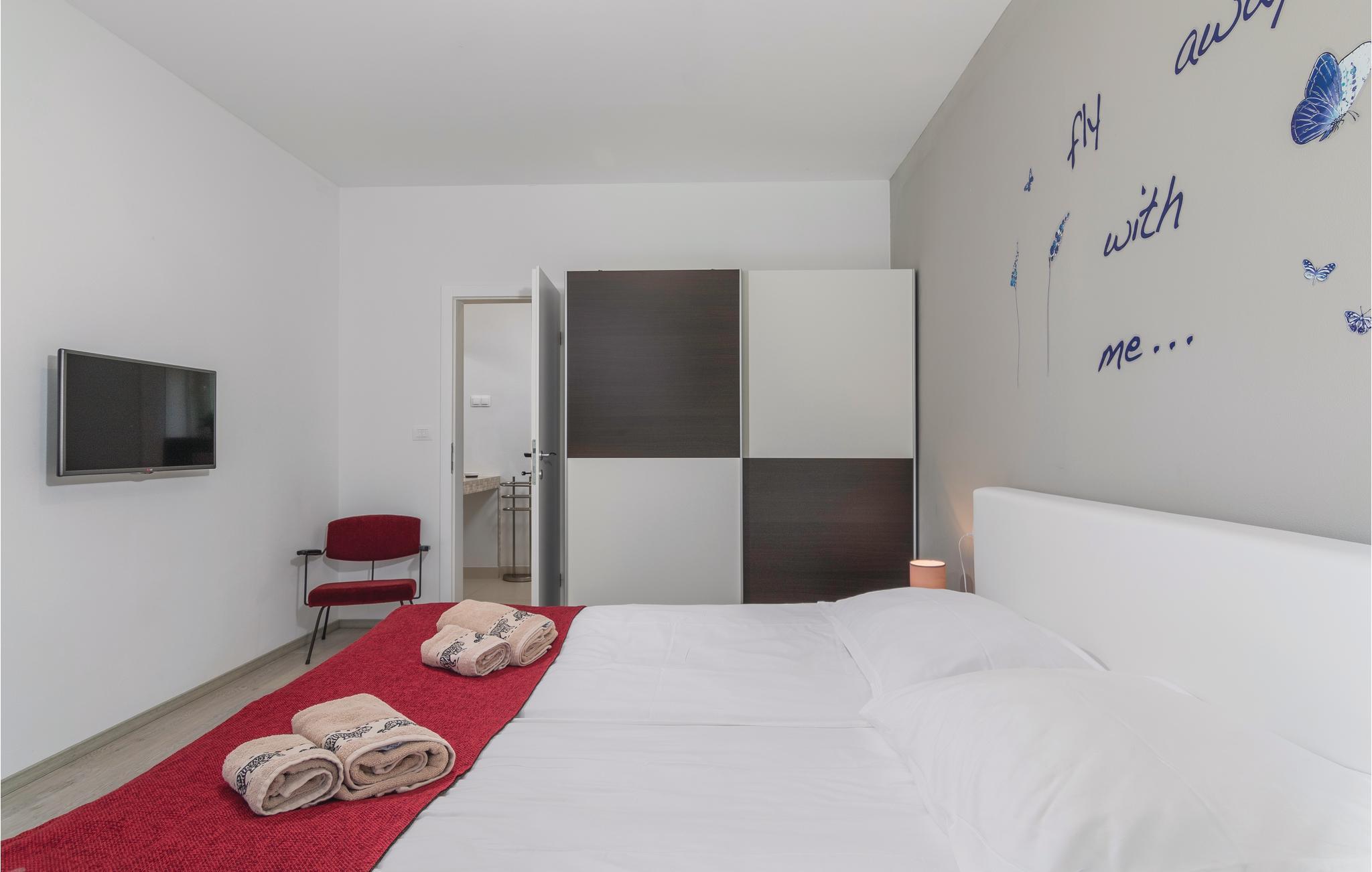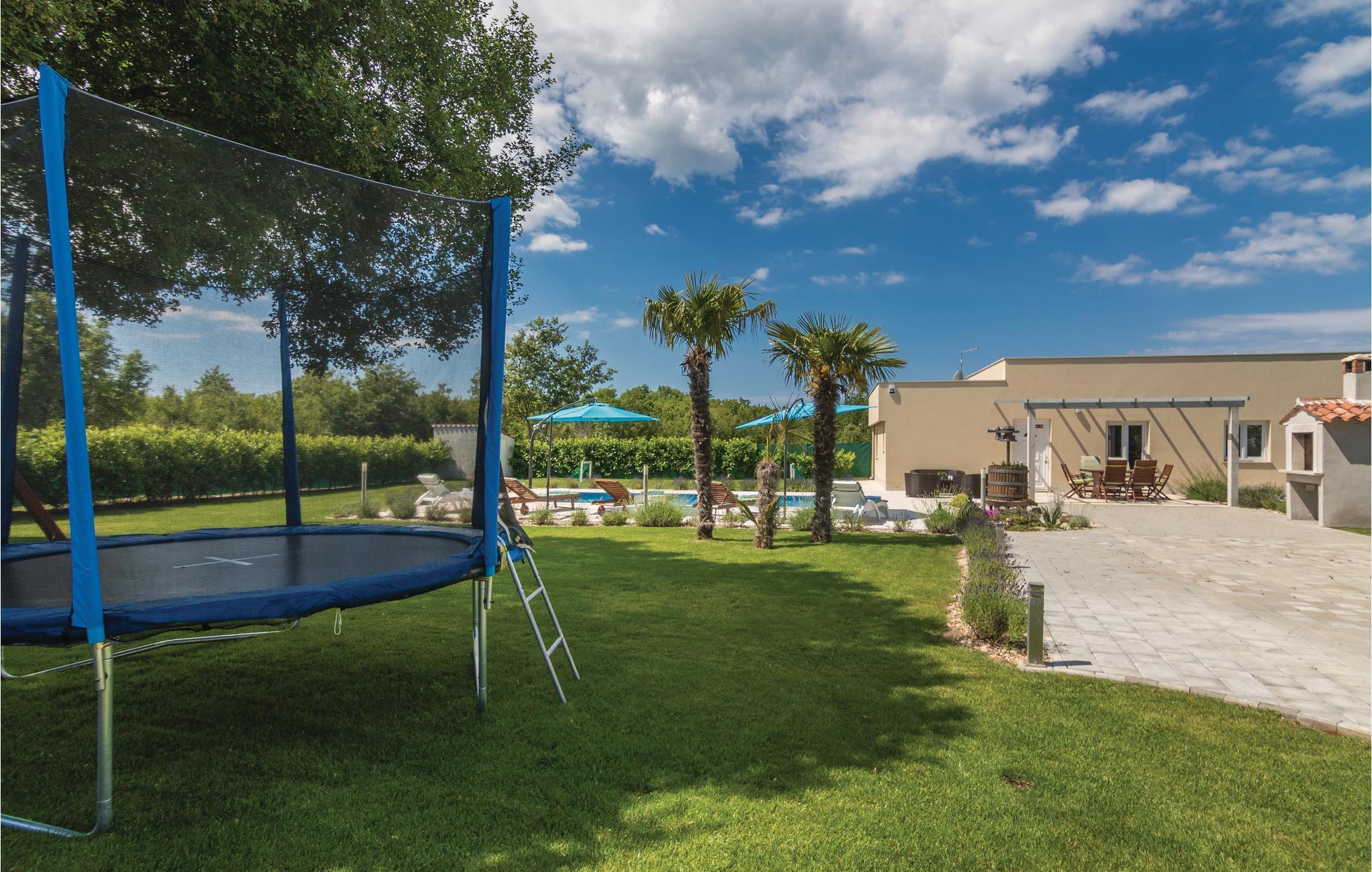 Dette moderne feriehuset ligger i utkanten av den lille middelalderbyen Bale, som ligger i nærheten av den berømte romantiske byen Rovinj. Feriehuset ligger i et rolig område, og er perfekt for deg som ønsker å tilbringe ferien i naturskjønne omgivelser. Den velstelte hagen domineres av det forfriskende bassenget, som byr på svømmeglede. Nyt selskapet med dine kjære på den overbygde terrassen, mens de små ikke har noen grenser for sine leker. Steinbyen Bale, som ligger på en bakketopp, begeistrer besøkende fra hele verden med sine skjulte smug og historier fra en annen tid. Underholdning og moro venter deg i hvert hjørne. Brostein og rester av en begivenhetsrik historie omgir Bembo-familiens middelalderslott fra 1400-tallet. La deg inspirere av den spesielle atmosfæren i denne byen, som er omgitt av olivenlunder og vingårder. Jazzelskere vil få valuta for pengene her, ettersom Last Minute Open Jazz Festival åpner dørene her hver sommer. Omgivelsene rundt Bale byr på et rikt utvalg av olivenoljeprodukter. Hvis du begir deg inn i de naturlige dalene i Bale, vil du garantert legge merke til kazuni, gjeterhusene, som er imponerende tørre bygninger. Fugleelskere vil glede seg over et besøk til Palud-myren, som er et fuglereservat. Vi anbefaler dagsturer til de berømte byene Rovinj og Pula, som tilbyr et rikt program av aktiviteter.