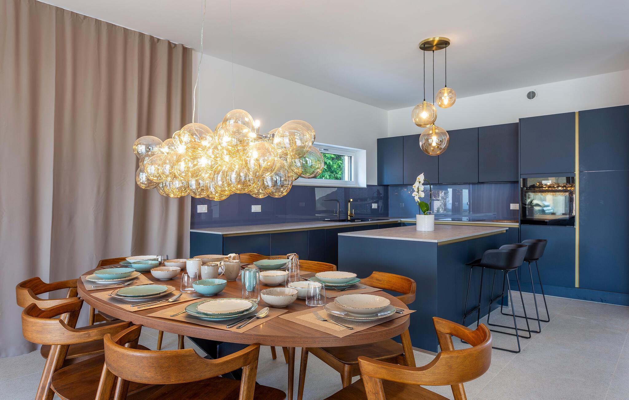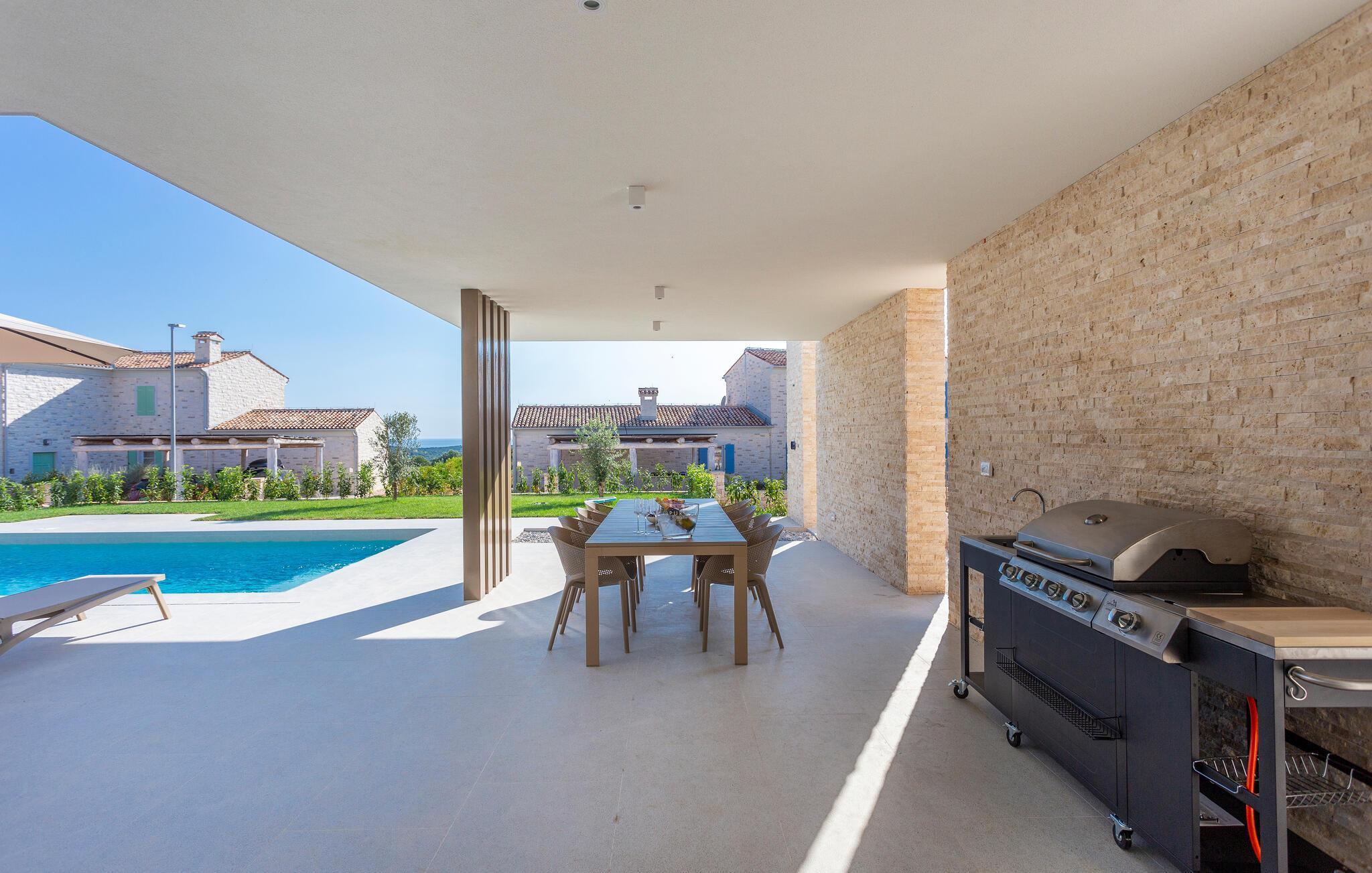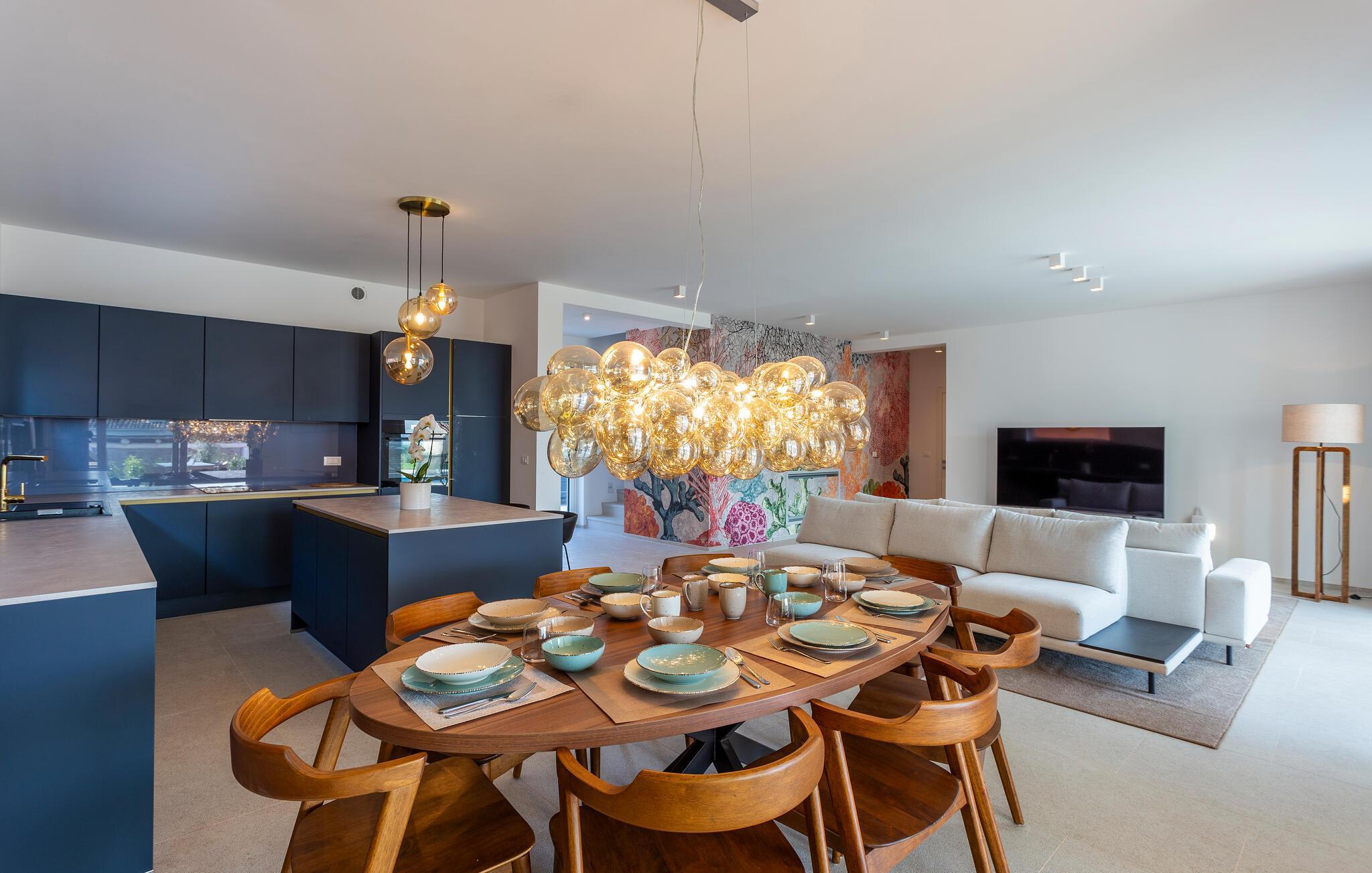 Tilbring en uforglemmelig tid i dette komfortable og moderne huset, som ønsker gjestene velkommen bare en kort kjøretur fra stranden og tilbyr alt du trenger for en avslappende ferie. Slapp av i en stilfull atmosfære, nyt utsikten over bassenget så snart du våkner, og etter en spennende dag kan du sette deg godt til rette i koselige sofaer, se en film sammen eller prate lenge.