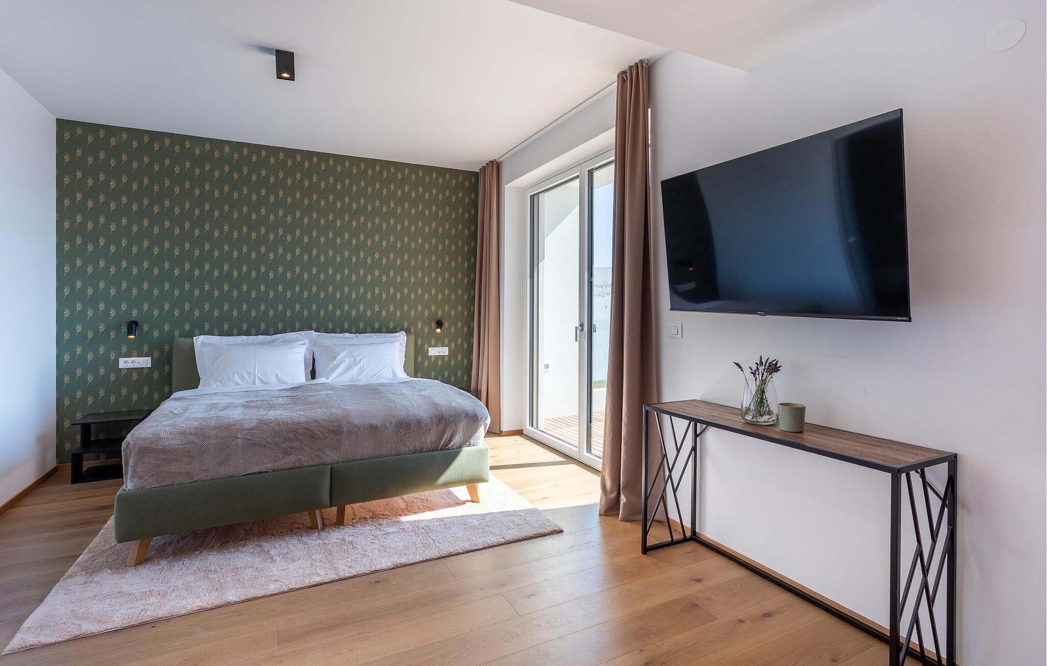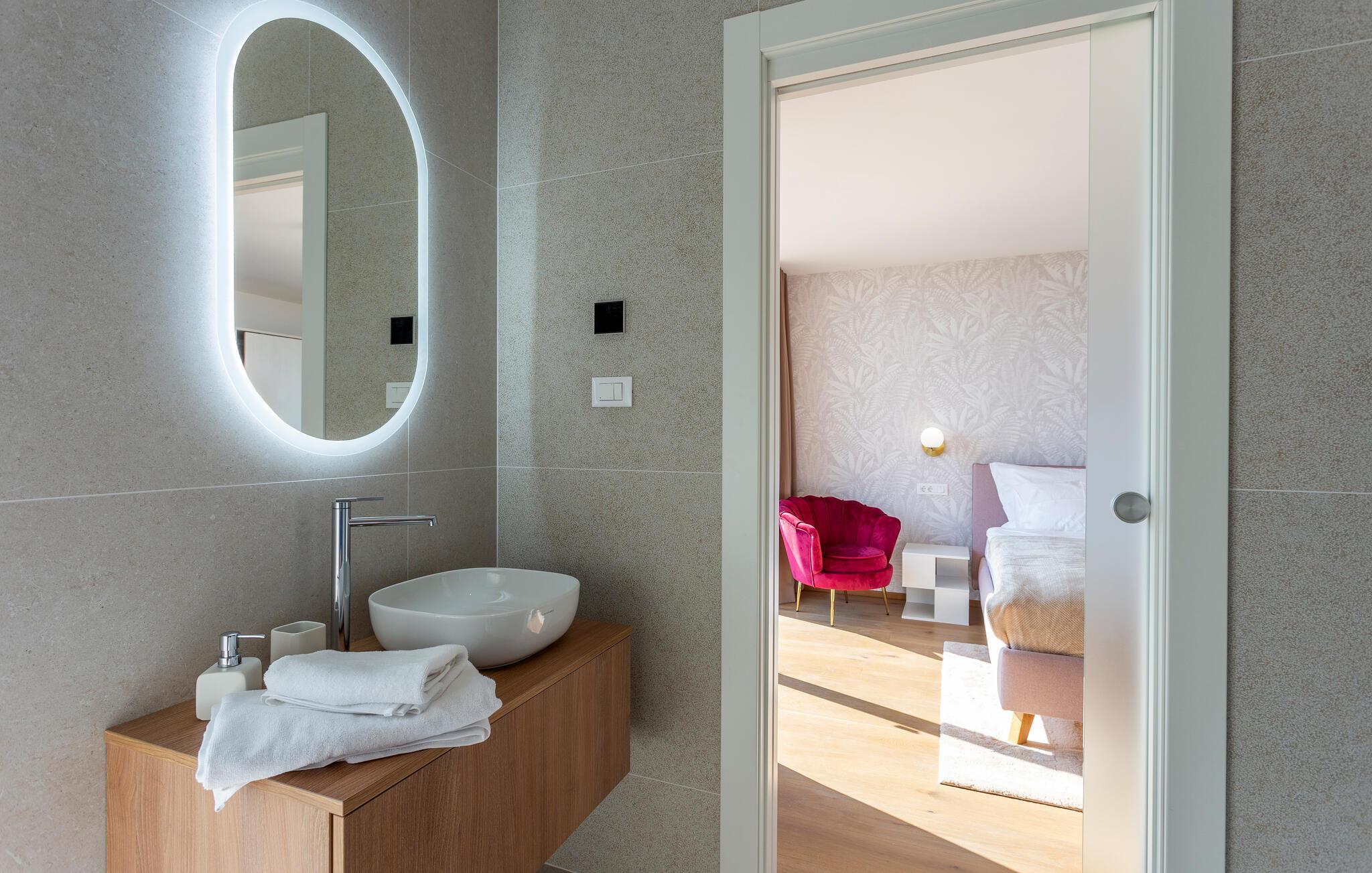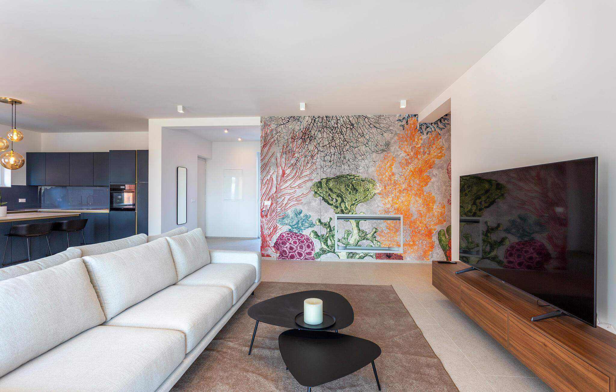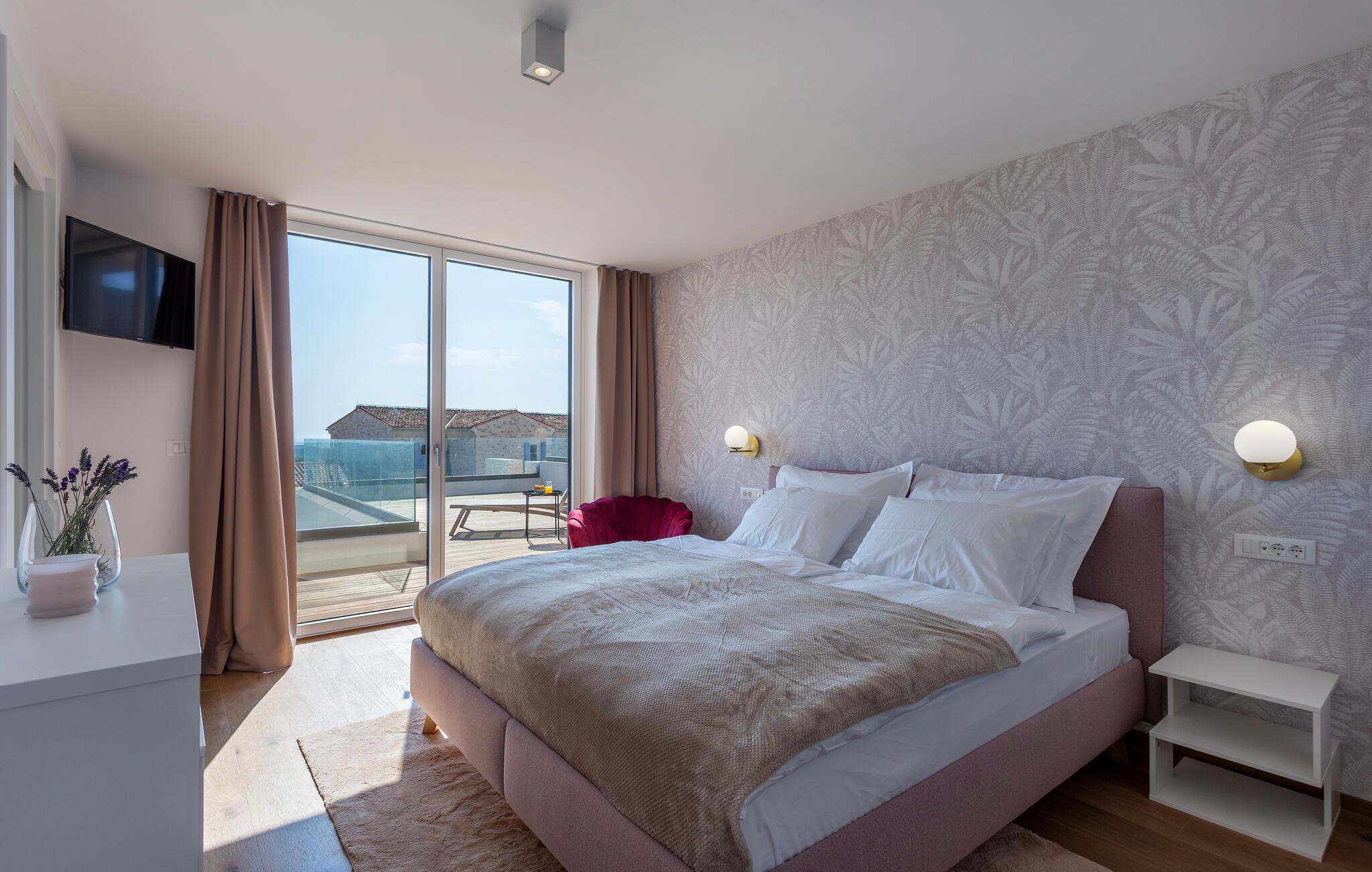 Tilbring en uforglemmelig tid i dette komfortable og moderne huset, som ønsker gjestene velkommen bare en kort kjøretur fra stranden og tilbyr alt du trenger for en avslappende ferie. Slapp av i en stilfull atmosfære, nyt utsikten over bassenget så snart du våkner, og etter en spennende dag kan du sette deg godt til rette i koselige sofaer, se en film sammen eller prate lenge.