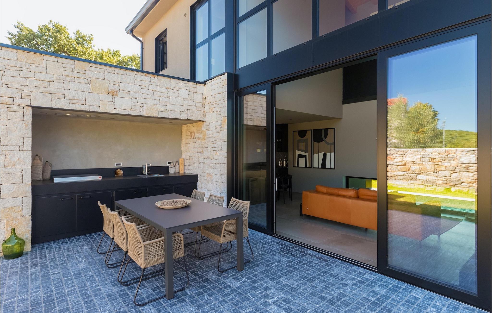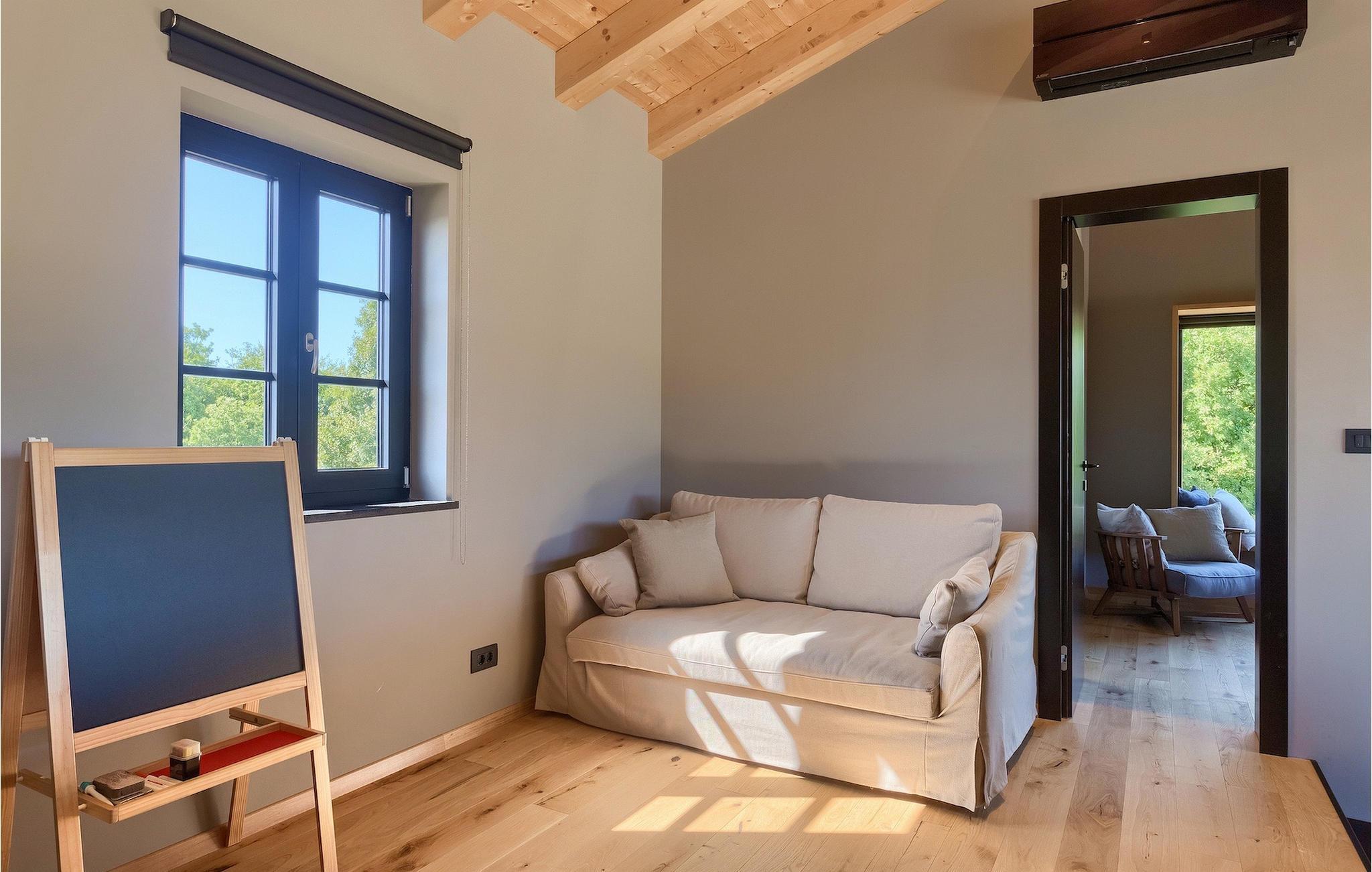 Denne fascinerende og uvanlige designervillaen med overbygd privat basseng ligger i den pittoreske landsbyen Bale i Istria. Villa Giuseppe er velutstyrt og innredet med stor sans for detaljer, og vil garantert ikke skuffe deg. Den består av 3 stilfulle soverom og moderne bad, noe som gjør denne villaen perfekt for 6 personer. Alle soverommene ligger i øverste etasje og tilbyr den høyeste grad av komfort for gjestene, ettersom hvert soverom har TV, klimaanlegg og eget bad med dusj. I øverste etasje finner du også en koselig stue med stor sofa og TV med spillkonsoll.