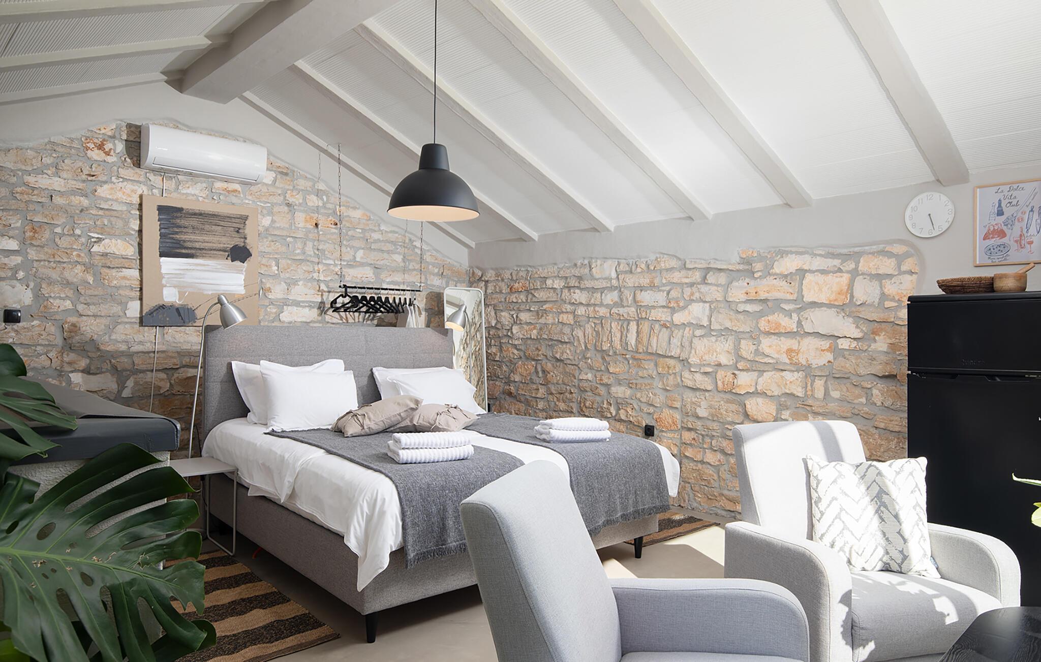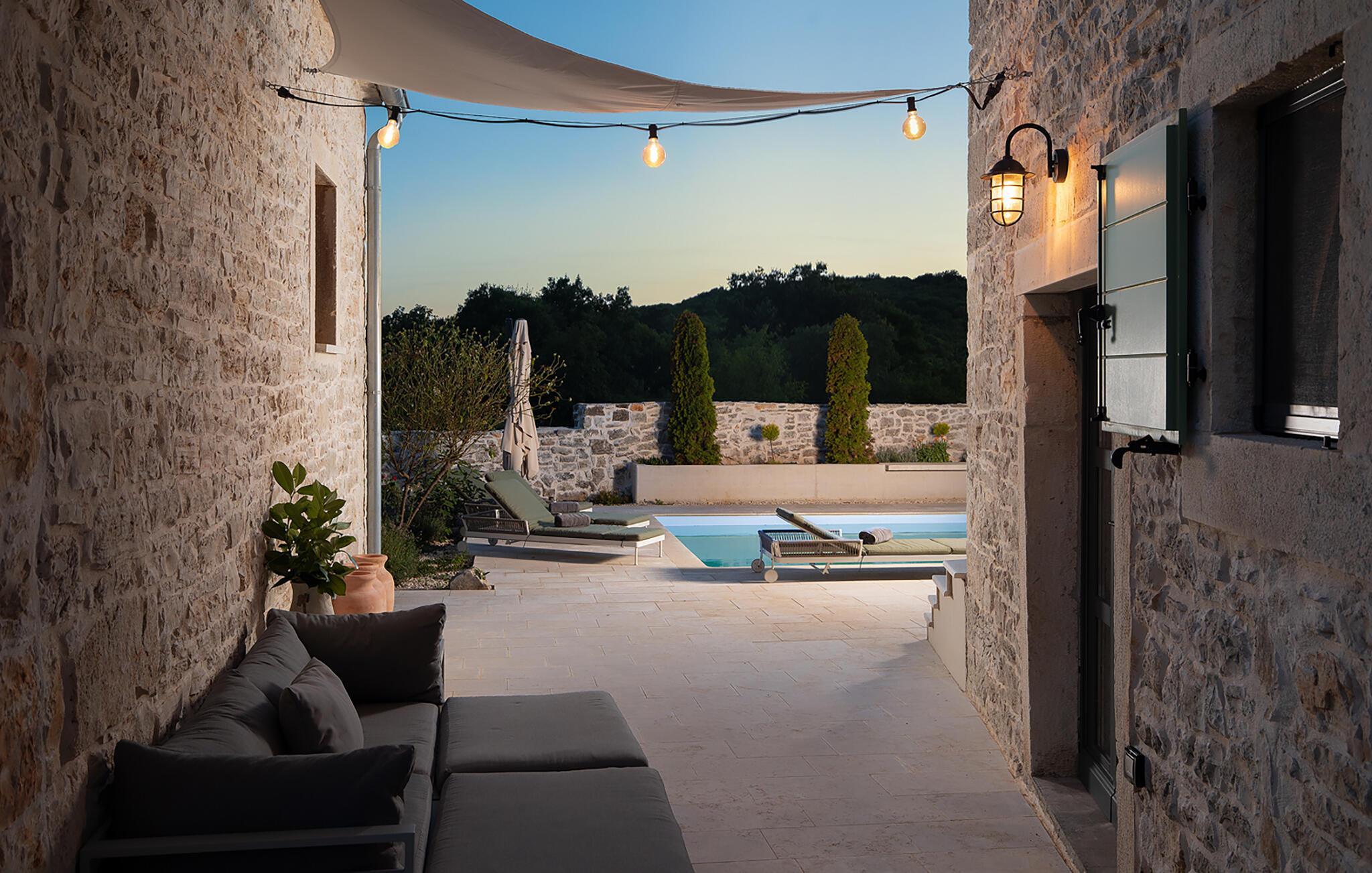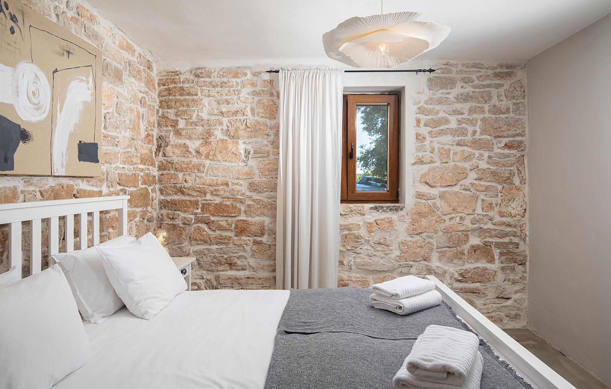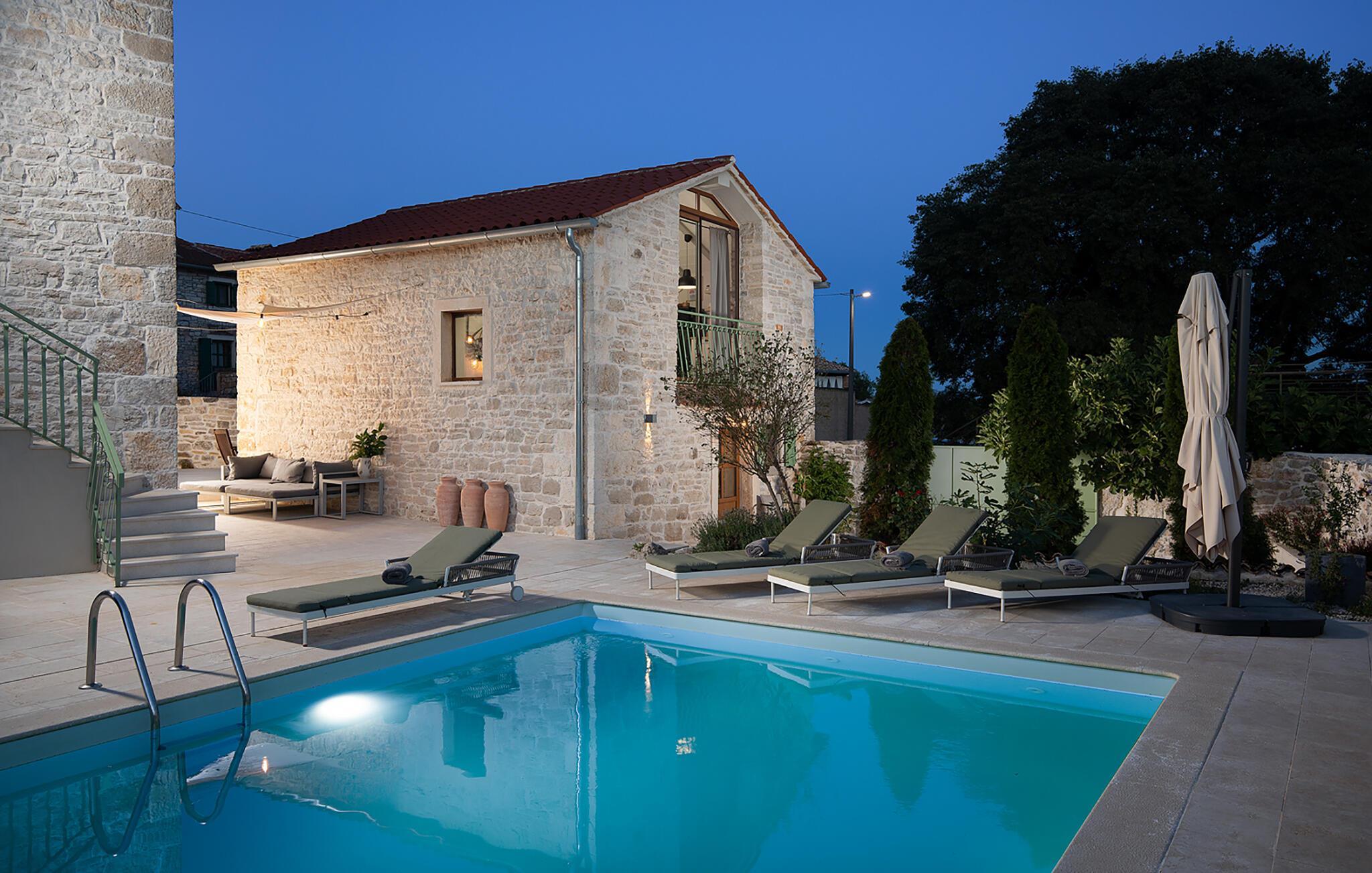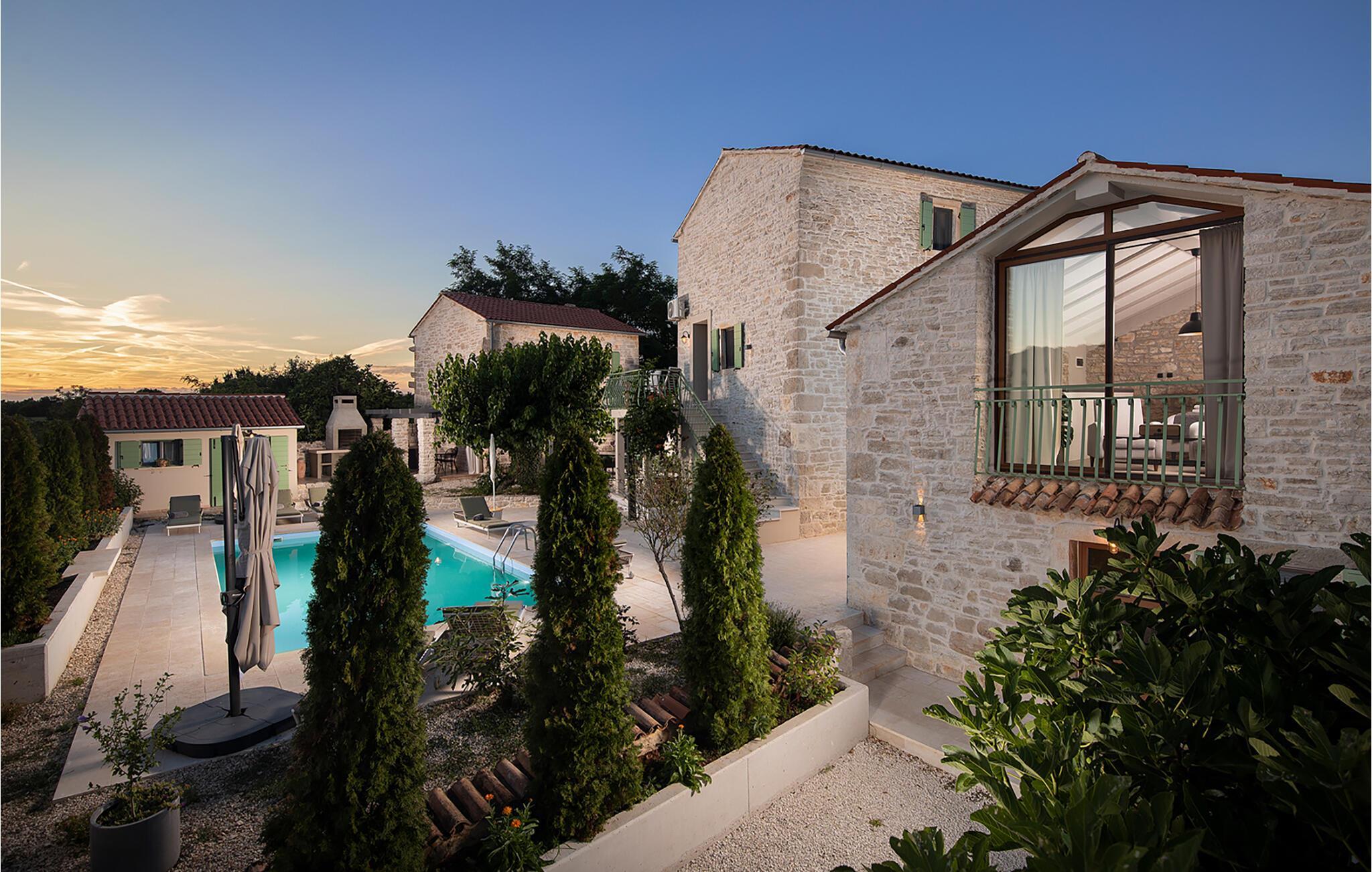 Villa Stanza Campitelli er en stor steinvilla i nærheten av Rovinj med eget basseng og fire separate hus som leies ut som én enhet. Huset er lyst og luftig, en gammel, renovert eiendom innredet med moderne møbler som ikke bryter med de gamle røttene. Under renoveringen ble mange murstein, steiner og trebjelker bevisst beholdt i husene, og fargevalget i interiøret er naturlig og avslappende.