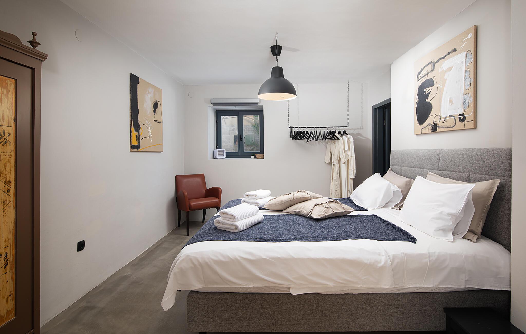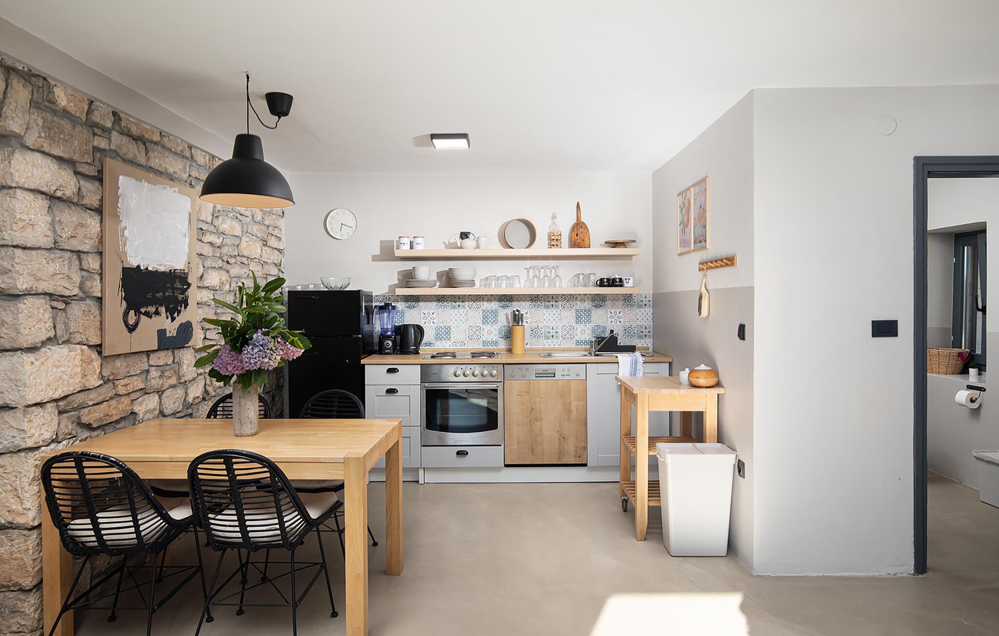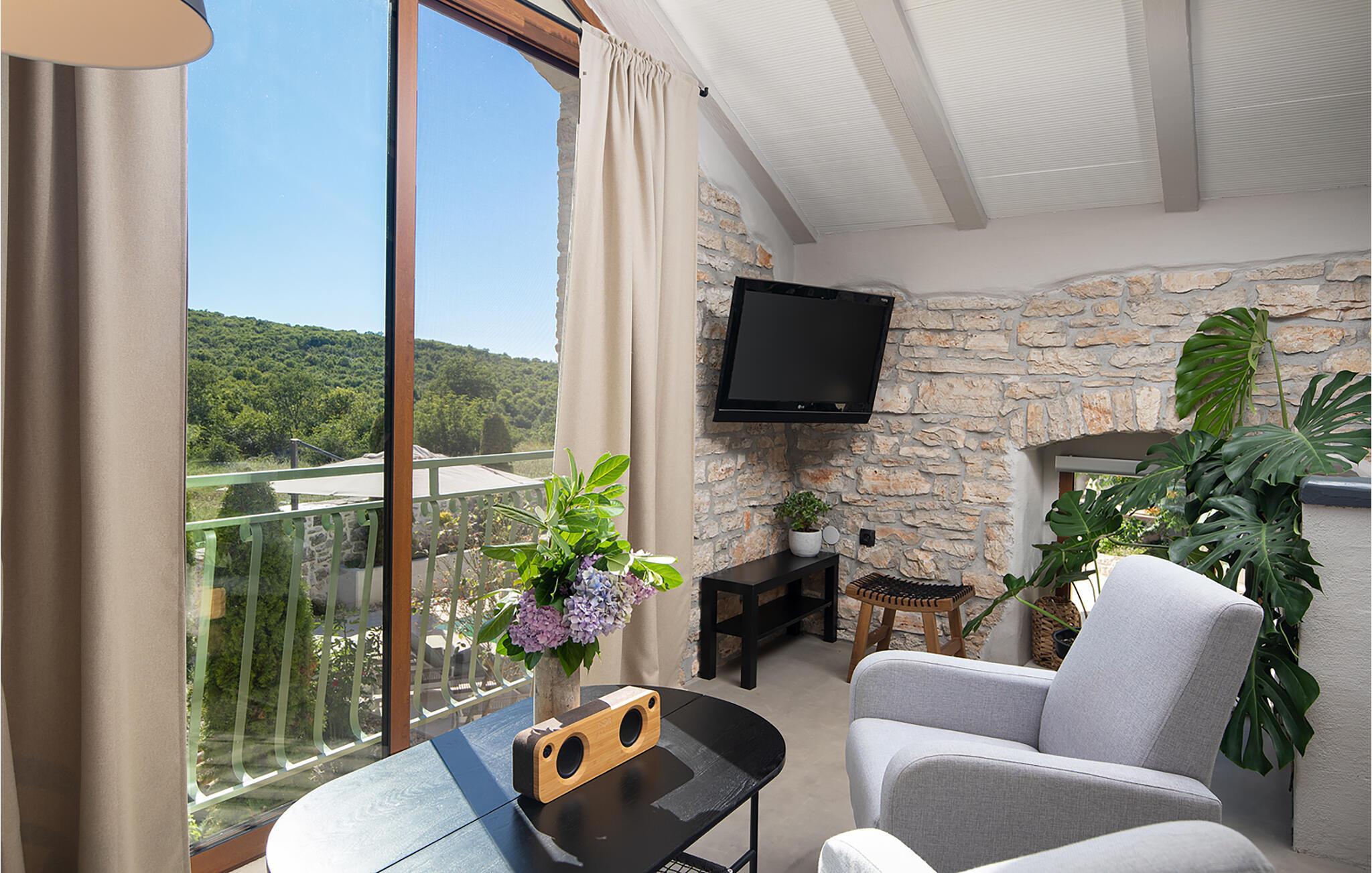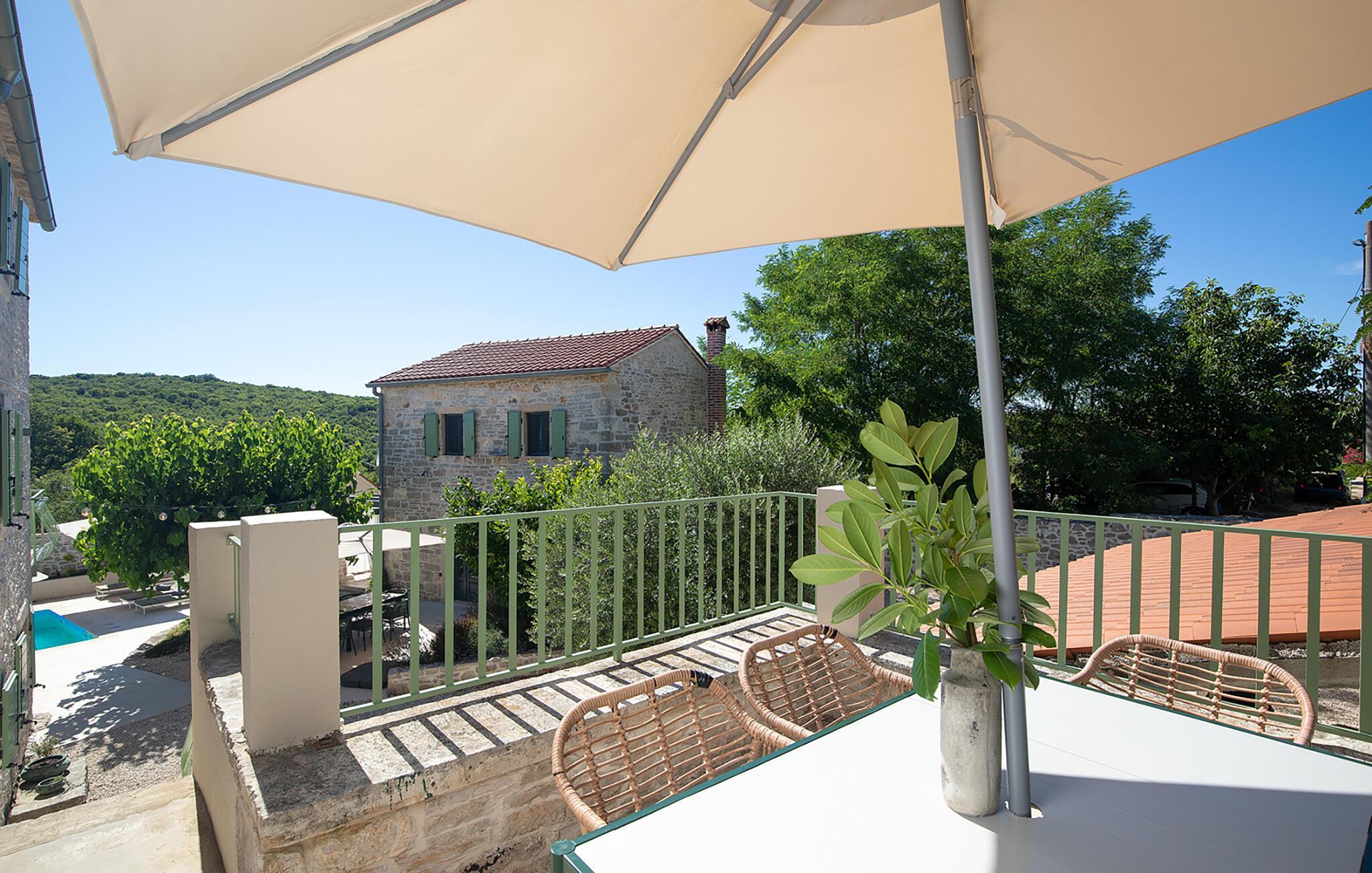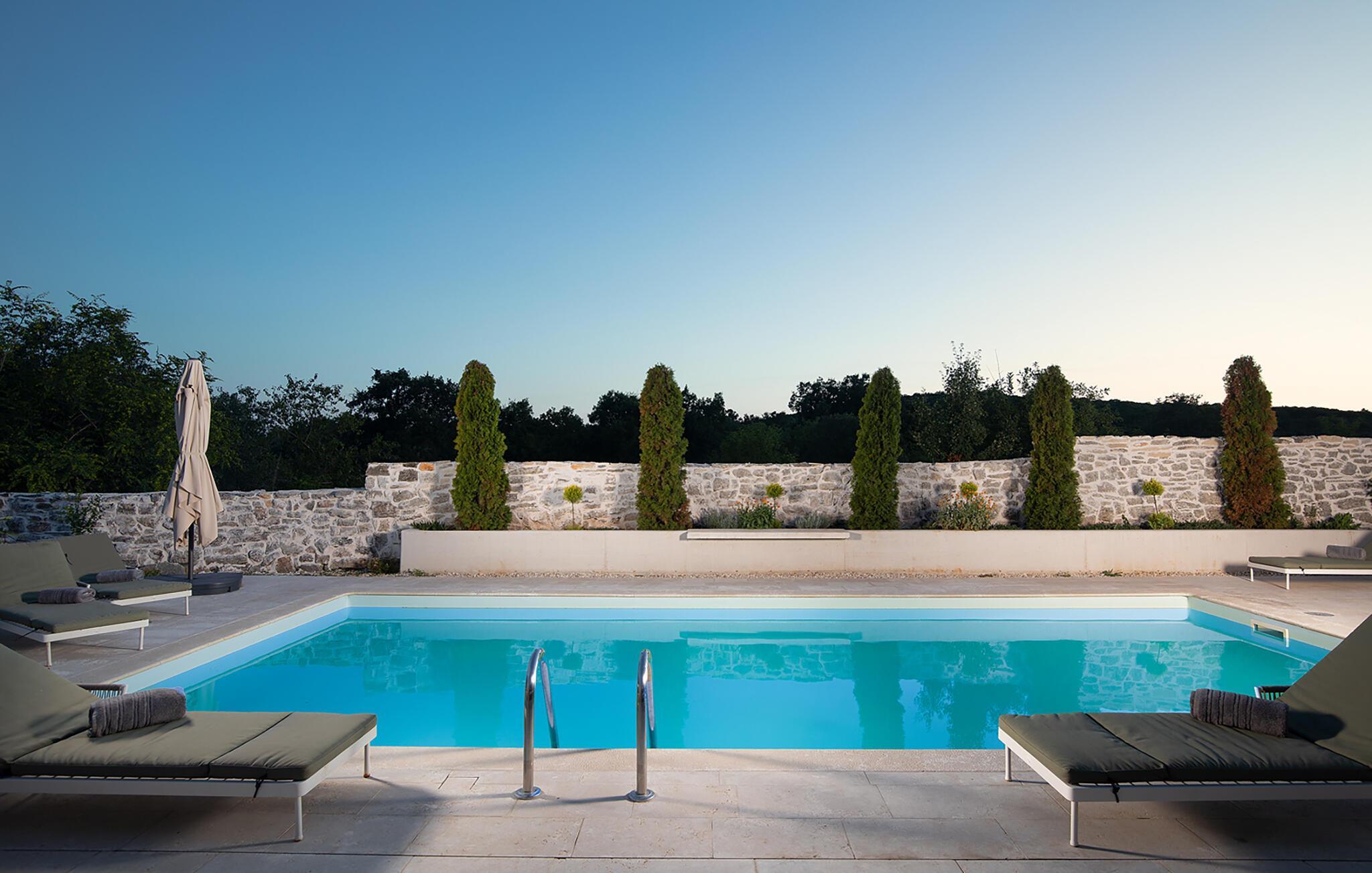 Alle fire husene har en mindre spiseplass for fire personer. Det er basseng og solsenger i husets bakgård. Bassenget gir deg all den forfriskningen du trenger på sommerdagene. På solsengene kan du lese favorittboken din mens du nyter solen og noe kaldt å drikke. På gårdsplassen er det en stor uteservering med plass til 18 personer, perfekt for store måltider med familie og venner. Du har en grill hvor du kan vise frem grillferdighetene du har jobbet med hele året. På gårdsplassen er det flere salongbord og stoler hvor du kan slappe av og bare nyte ferien.Villa Stanza Campitelli ligger i Krmed, en liten og rolig turistlandsby omgitt av vakker natur, frodige grønne åkre og åser, nær den vakre kysten i det vestlige Istria og den gamle byen Rovinj. Tidligere var Rovinj en øy, en liten romersk by, men flere hundre år senere ble den til en halvøy. I dag er Rovinj et av de mest romantiske stedene i Istria, et sted der du vandrer gjennom et nettverk av steingater i gamlebyen som sakte fører deg opp til toppen av åsen som gamlebyen ligger på, der du blir møtt av Eufemia-kirken, som har røtter tilbake til 900-tallet. Hvis du ikke har høydeskrekk og klatrer opp i kirketårnet, vil du bli møtt av en fortryllende utsikt over hele byen og området rundt. Fra fastlandet kan du nyte den vakre utsikten over gamlebyen, spesielt ved solnedgang, når fargene fra den brennende himmelen og det kalde blå havet smelter sammen. Istria er kjent for sitt kjøkken, spesielt for bruken av trøfler i rettene. Med tanke på at noen av de beste trøflene finnes i Istria, og at Rovinj og omegn byr på mange restauranter, vil gastronomientusiaster garantert få valuta for pengene her.