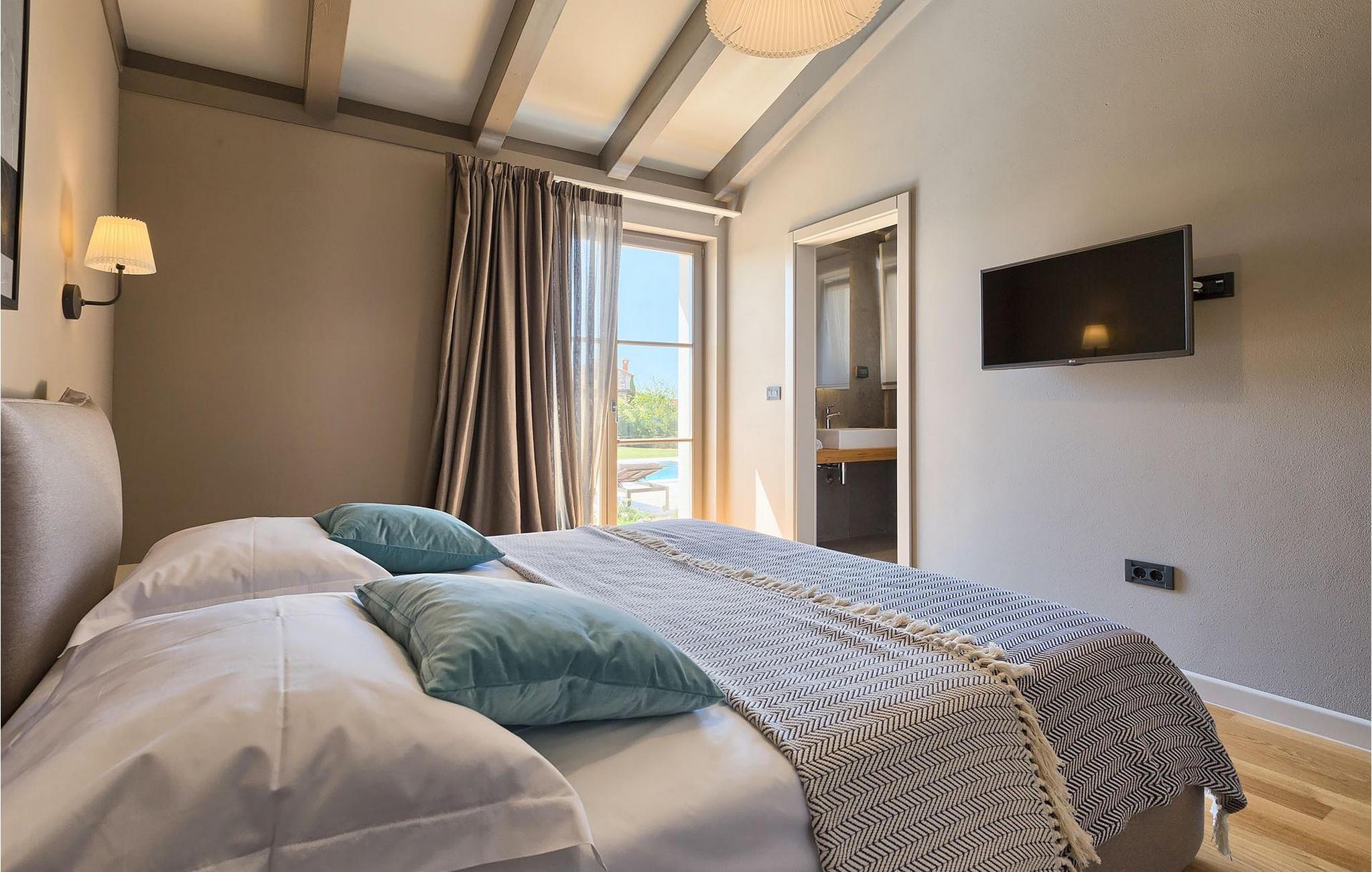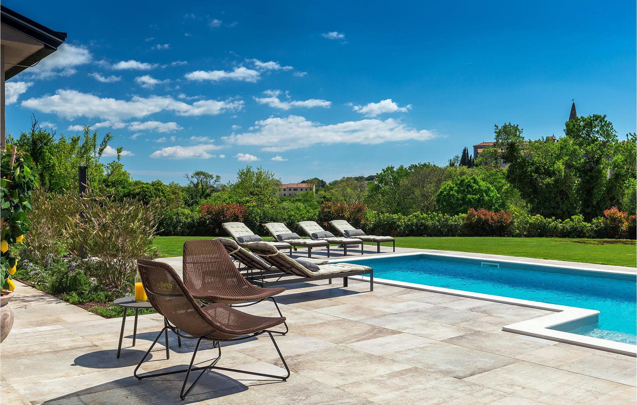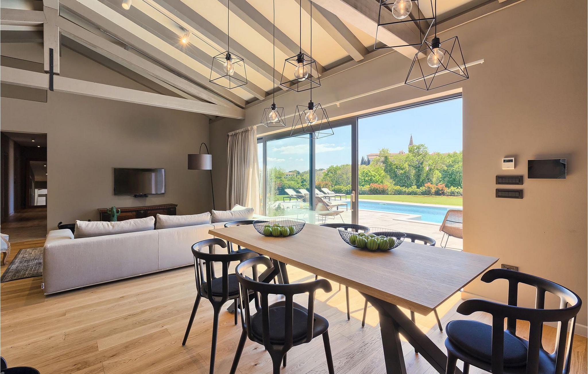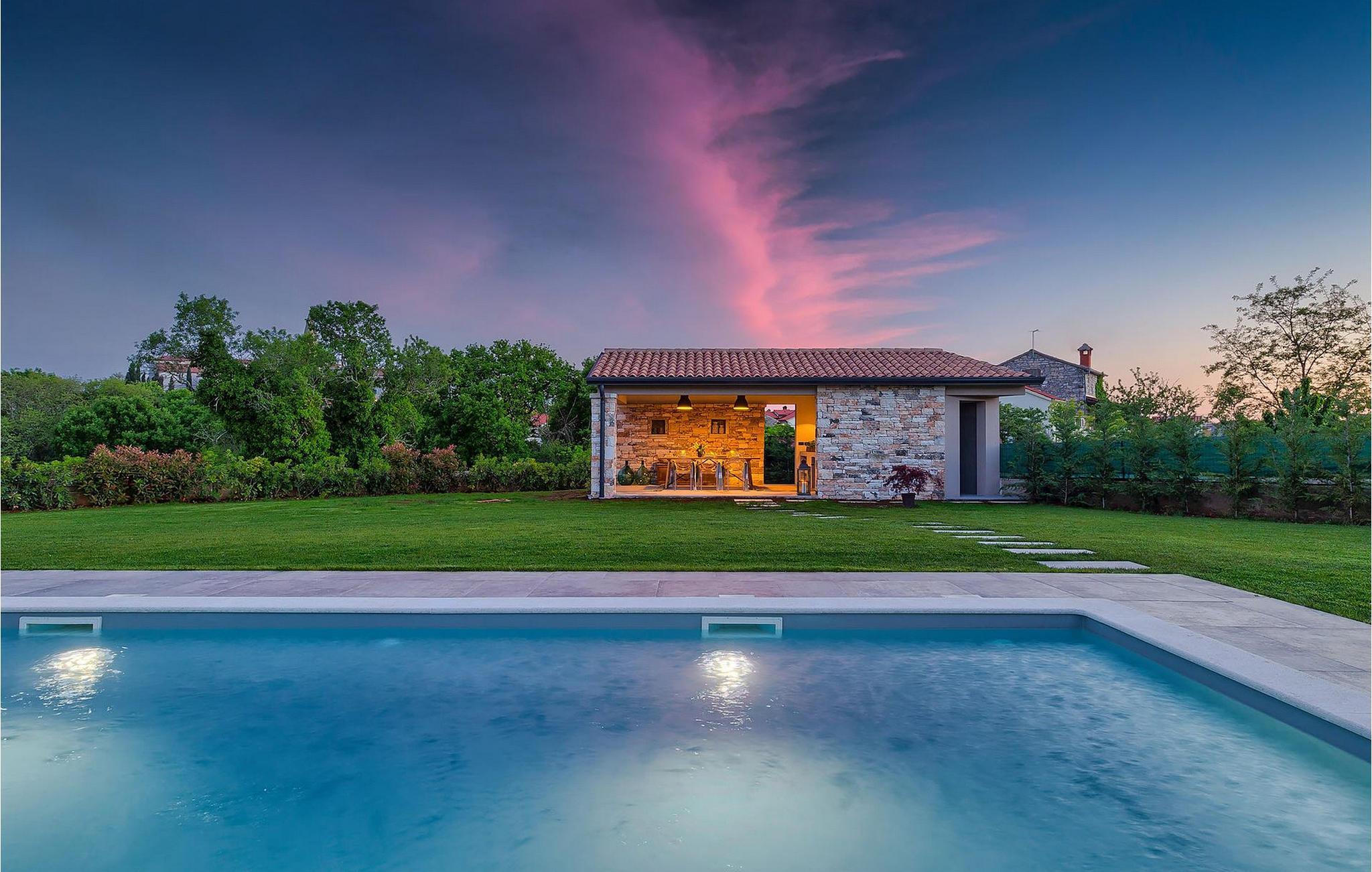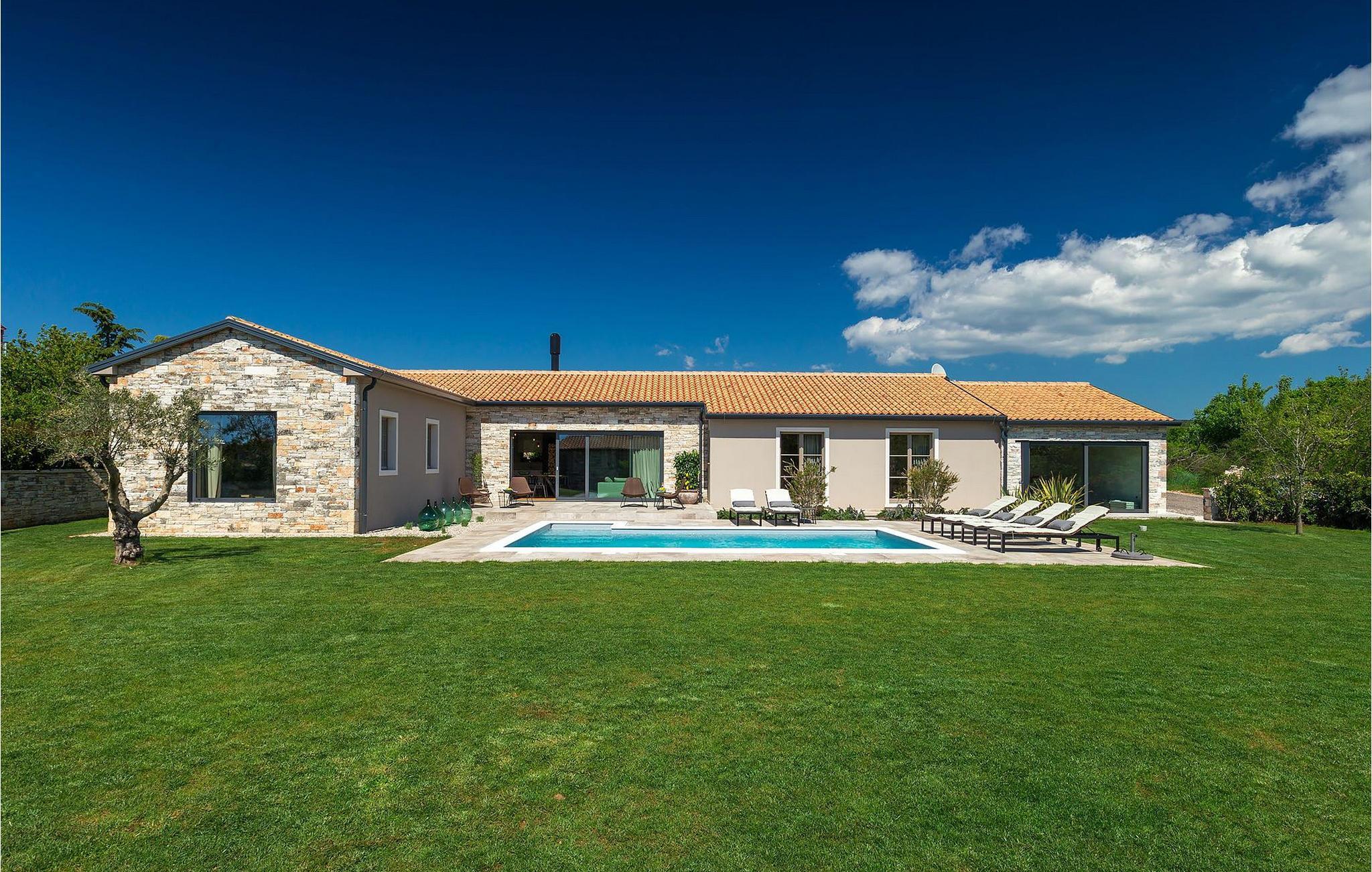 Du vil bli begeistret over den åpne stue- og spisestuen med takbjelker og peis som skaper en varm atmosfære. Villaens fullt utstyrte kjøkken og 4 store soverom med gallerilignende vinduer er ikke mindre imponerende. Fra første etasje i Villa Grotte har du tilgang til bassengområdet, der du kan tilbringe dagene med å nyte den varme istriske solen eller svømme i det innbydende bassenget mens du nyter utsikten over en liten, men fantastisk sjarmerende istrisk by.