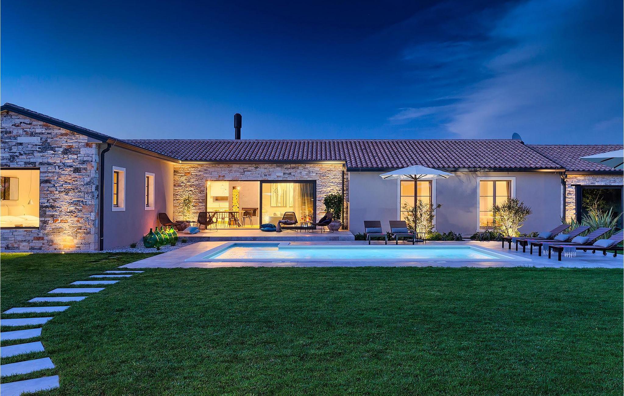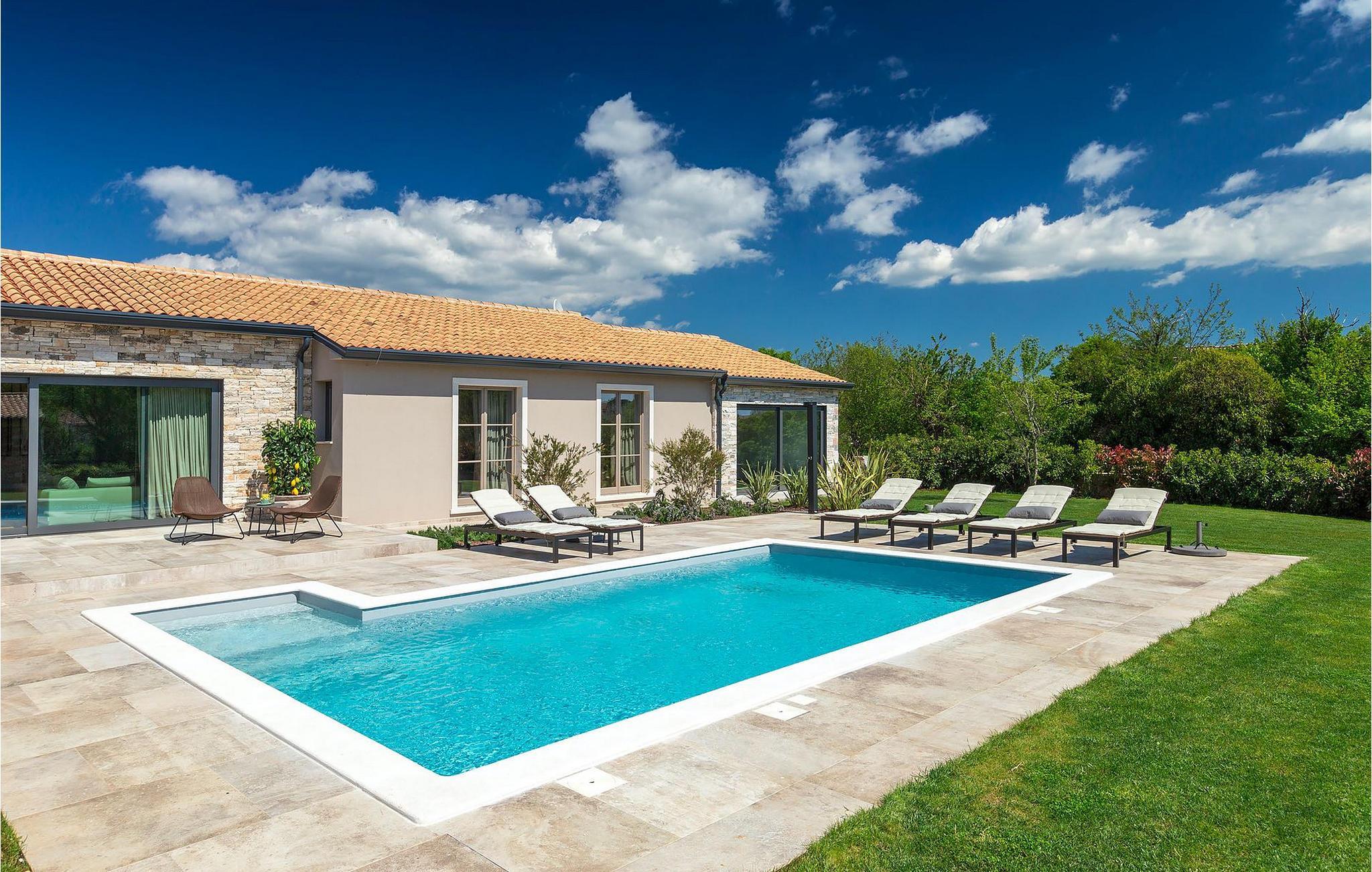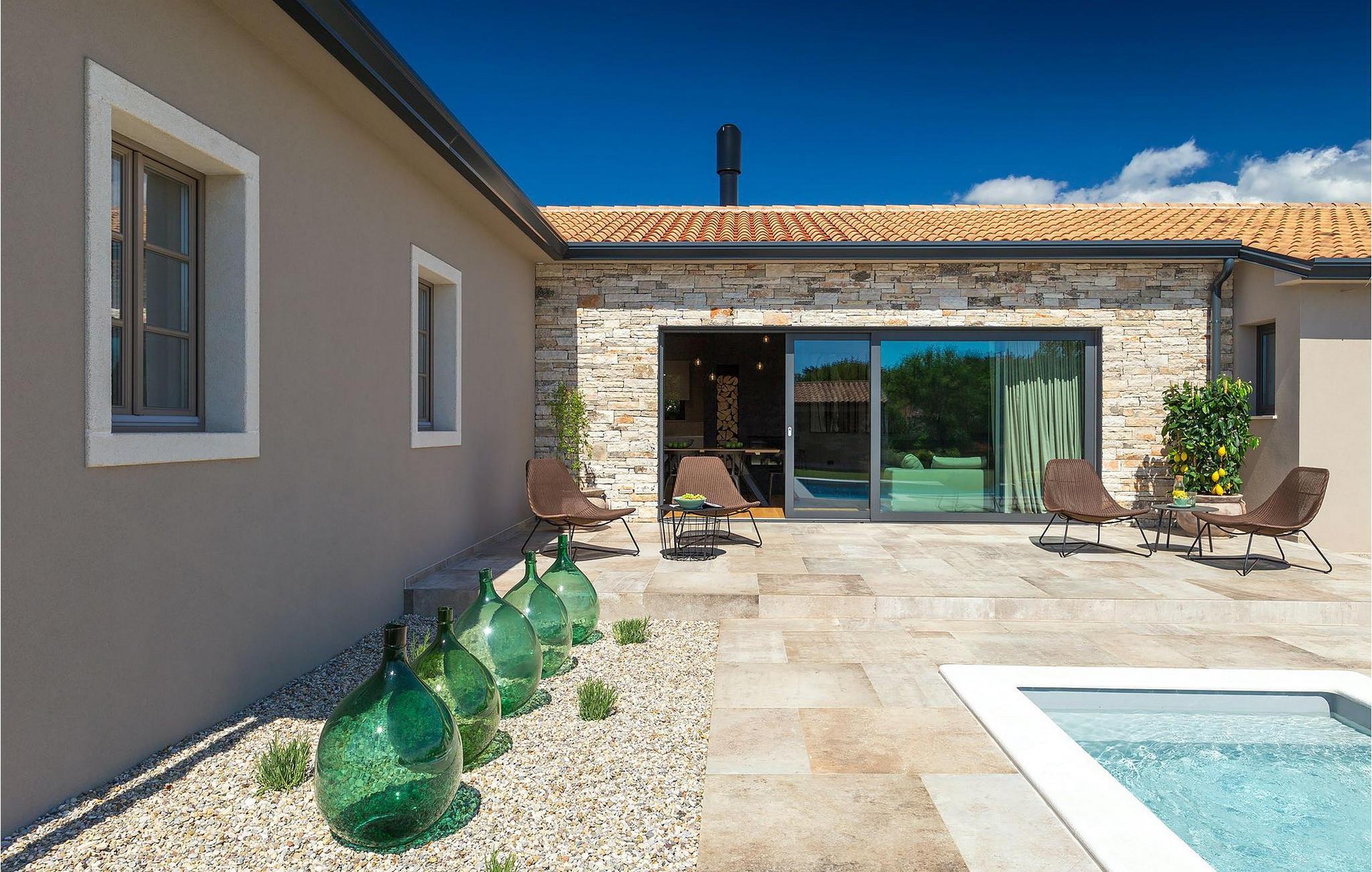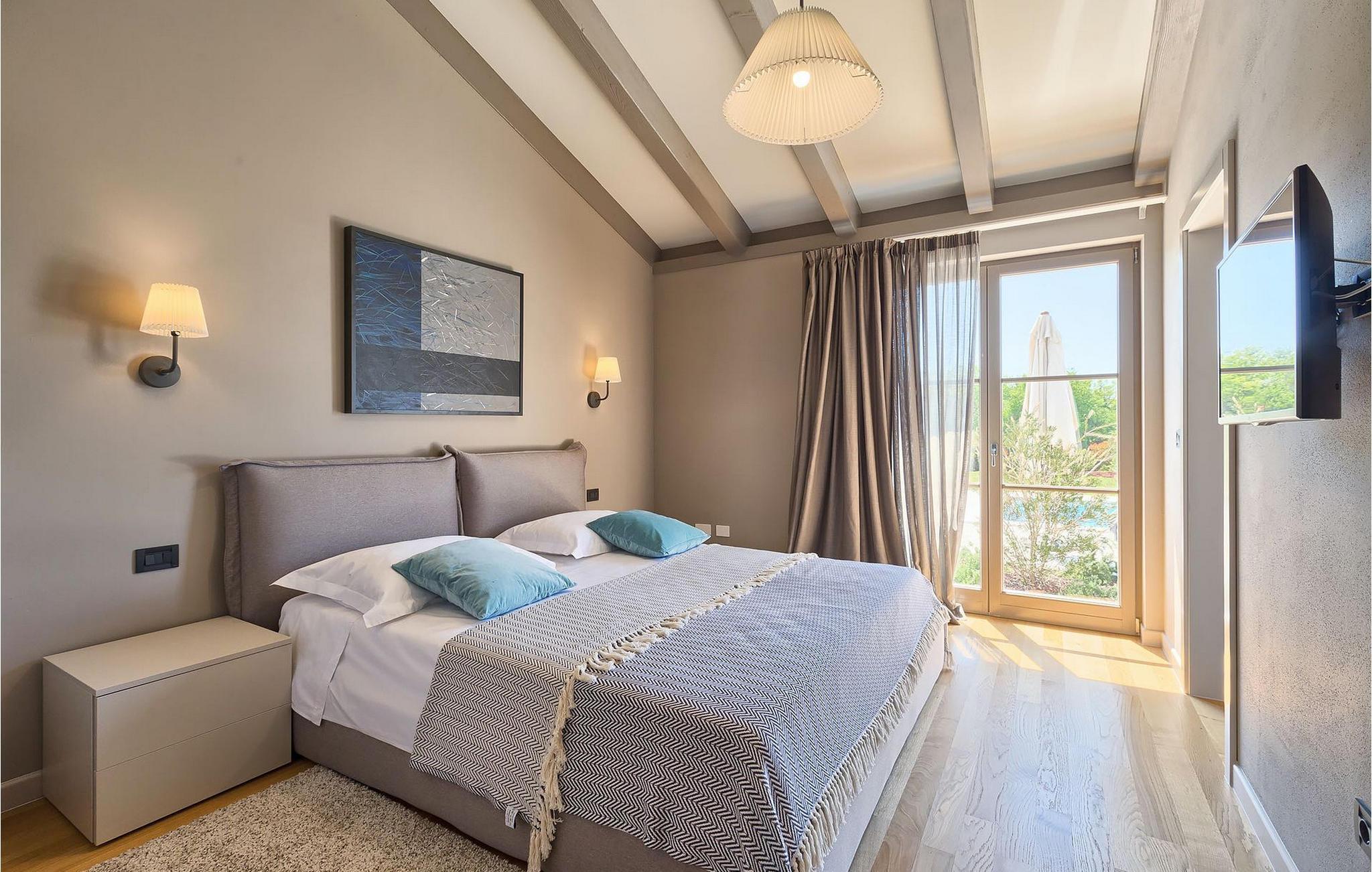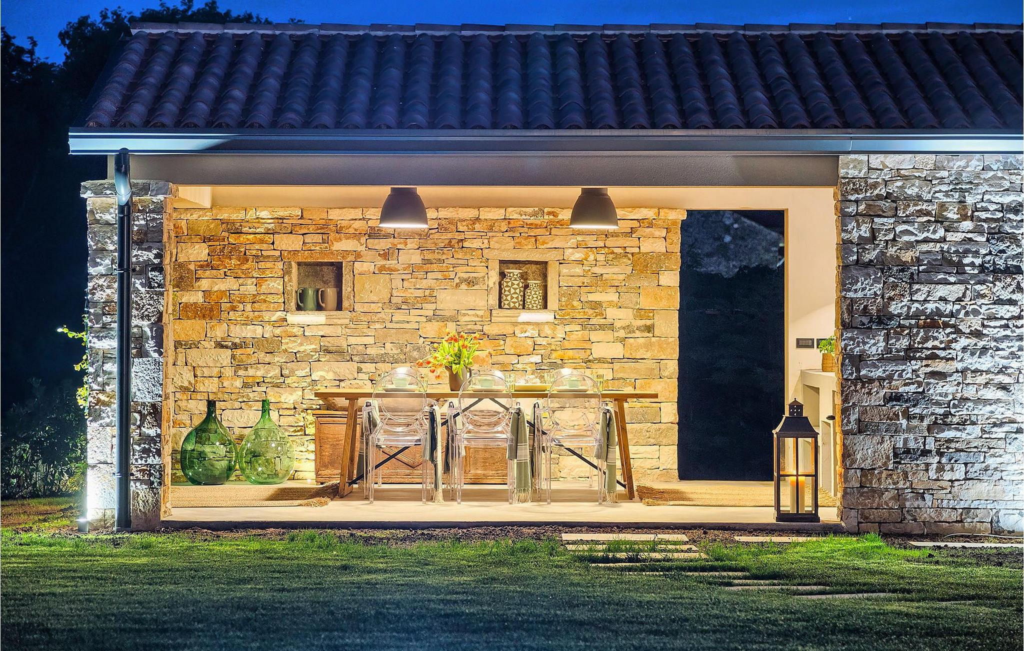 Du vil bli begeistret over den åpne stue- og spisestuen med takbjelker og peis som skaper en varm atmosfære. Villaens fullt utstyrte kjøkken og 4 store soverom med gallerilignende vinduer er ikke mindre imponerende. Fra første etasje i Villa Grotte har du tilgang til bassengområdet, der du kan tilbringe dagene med å nyte den varme istriske solen eller svømme i det innbydende bassenget mens du nyter utsikten over en liten, men fantastisk sjarmerende istrisk by.