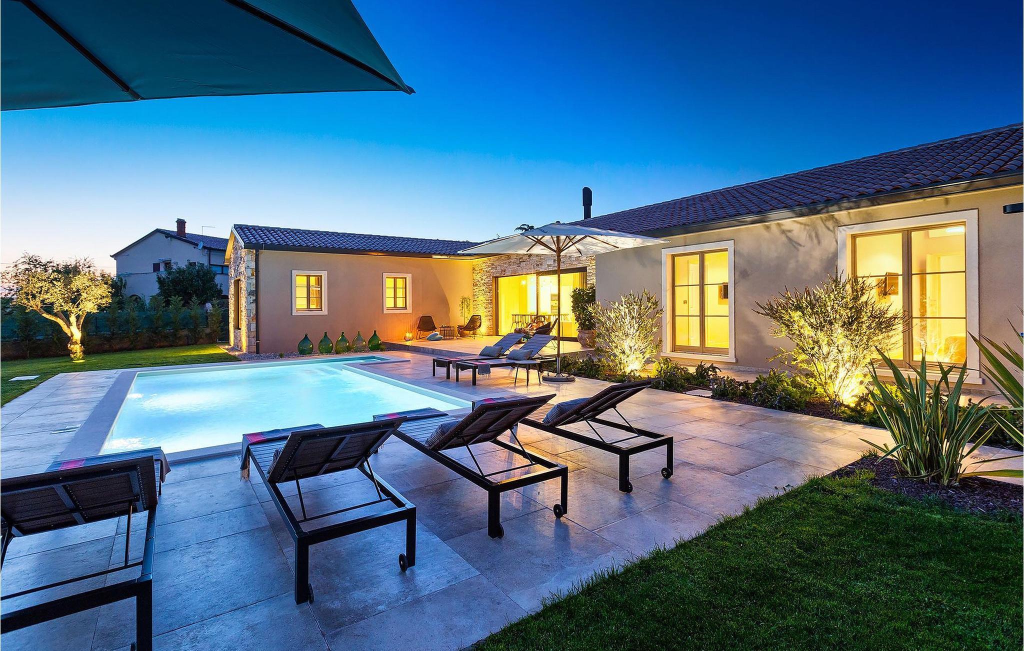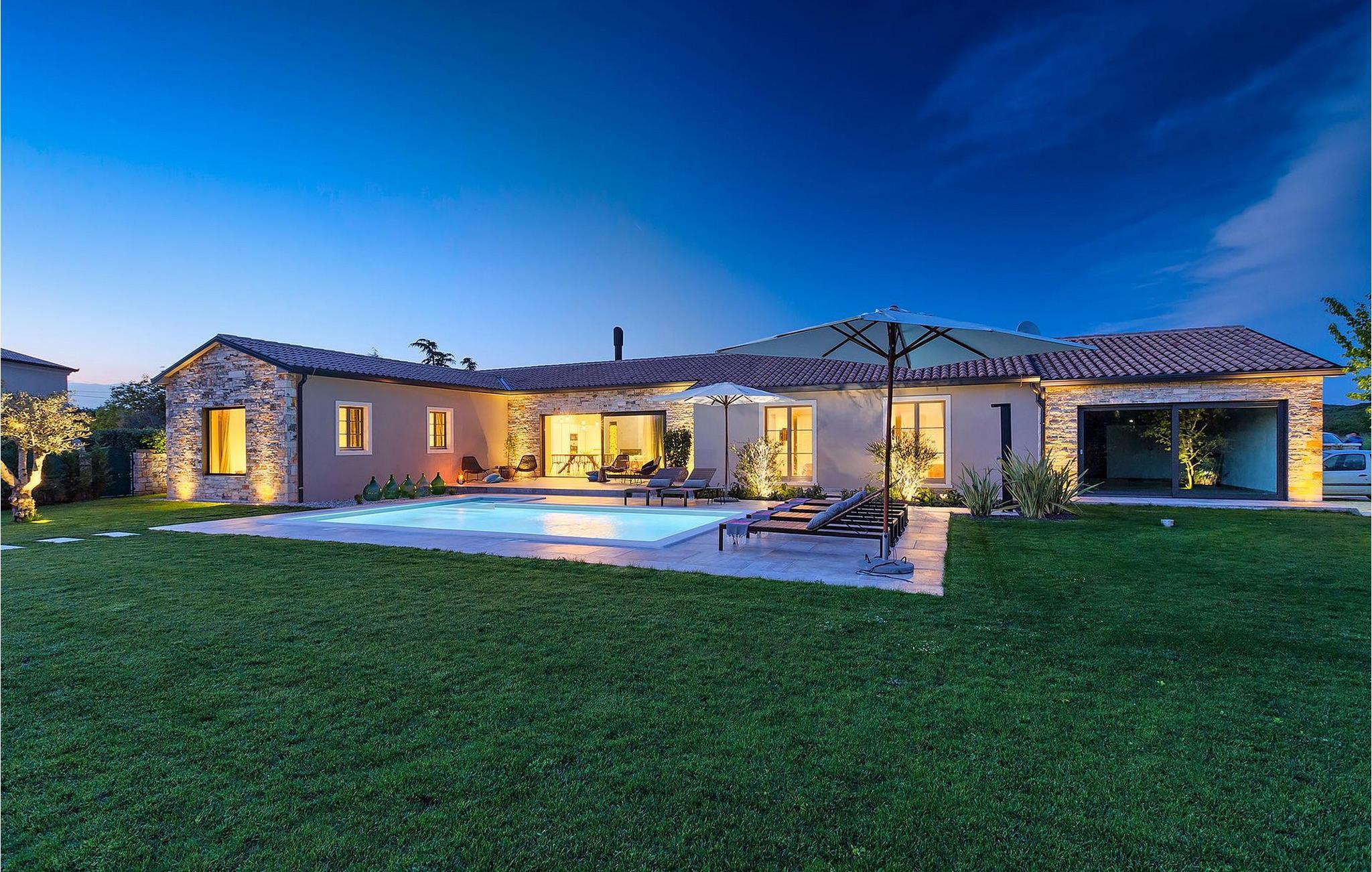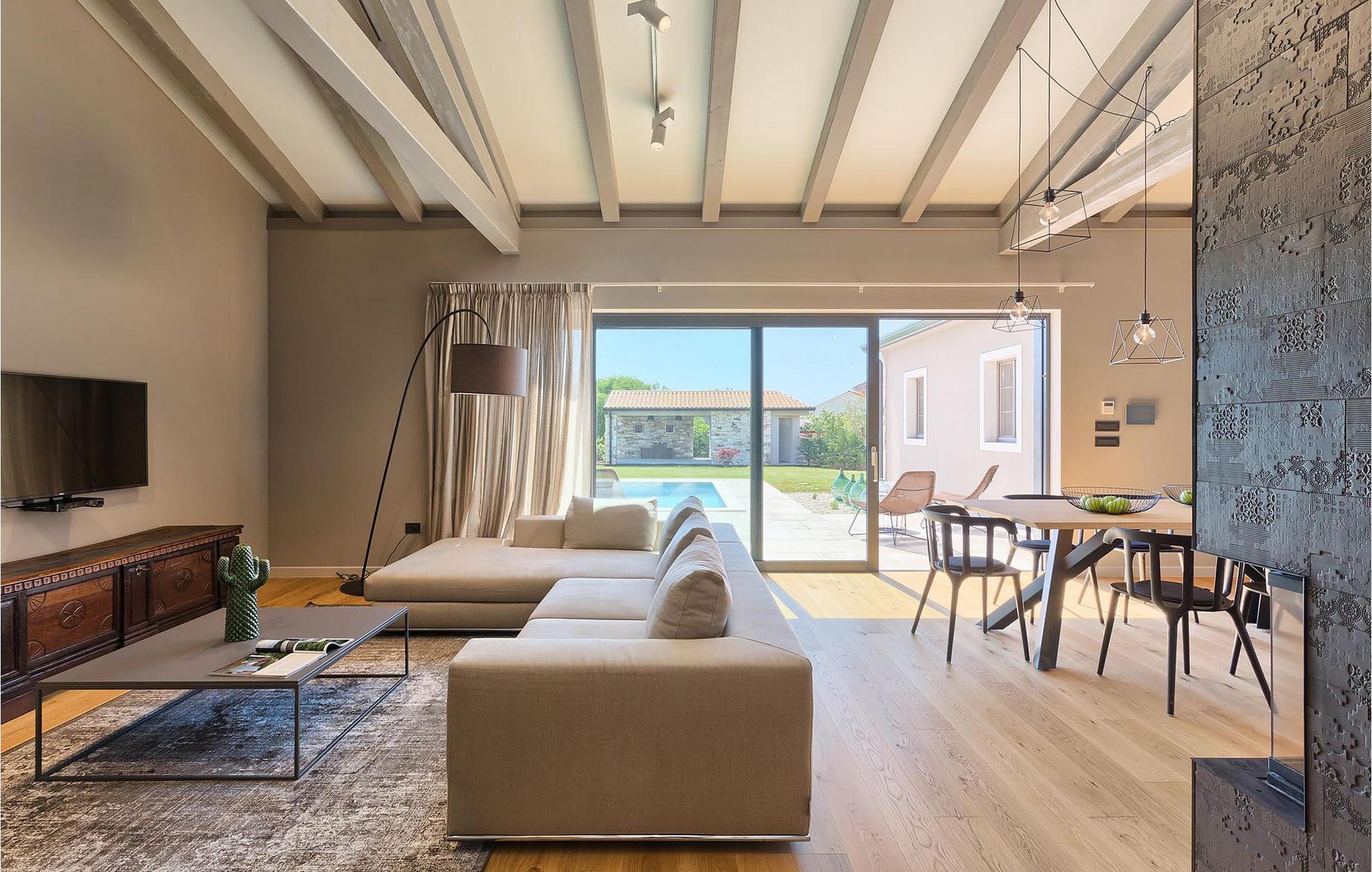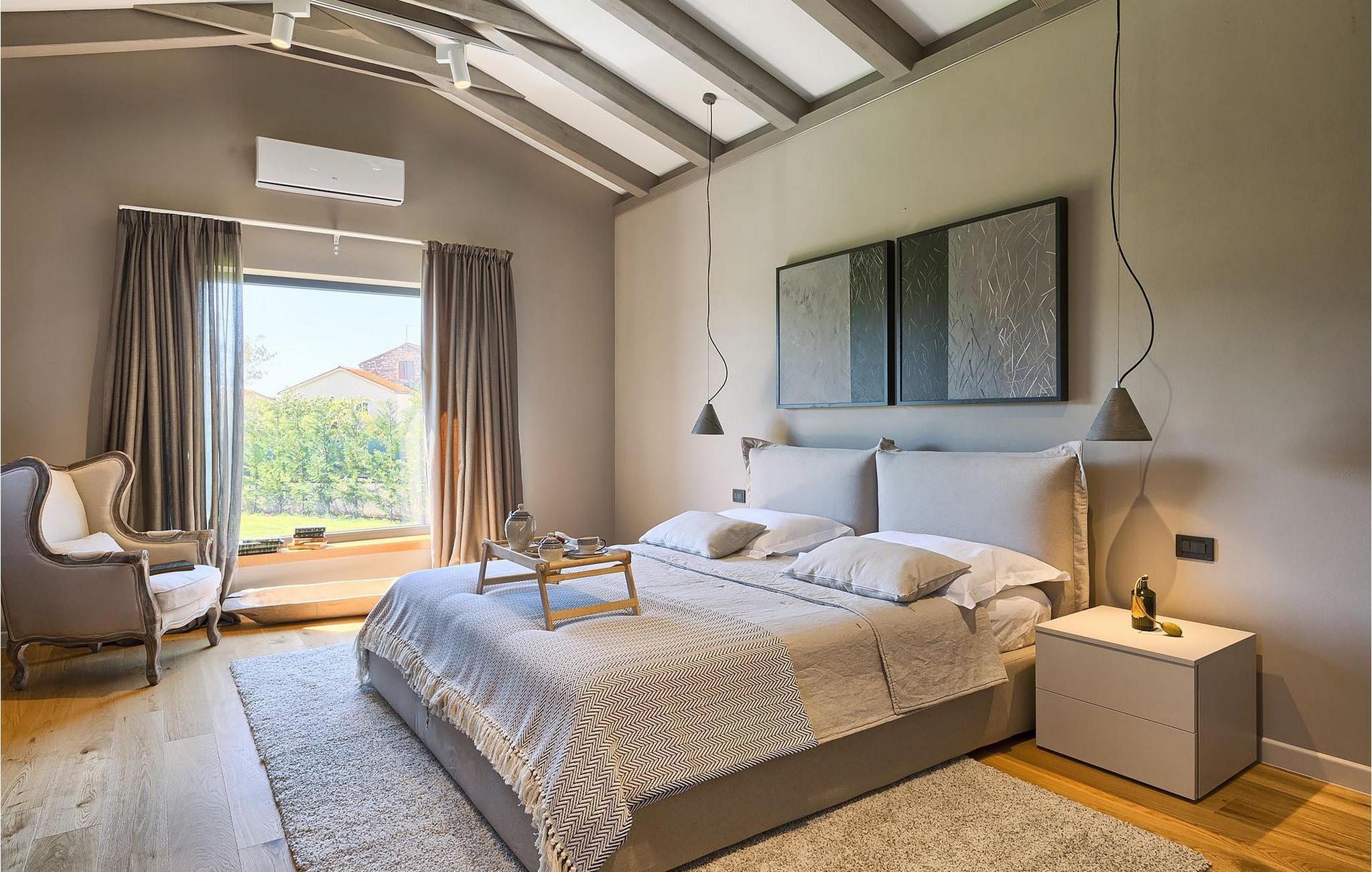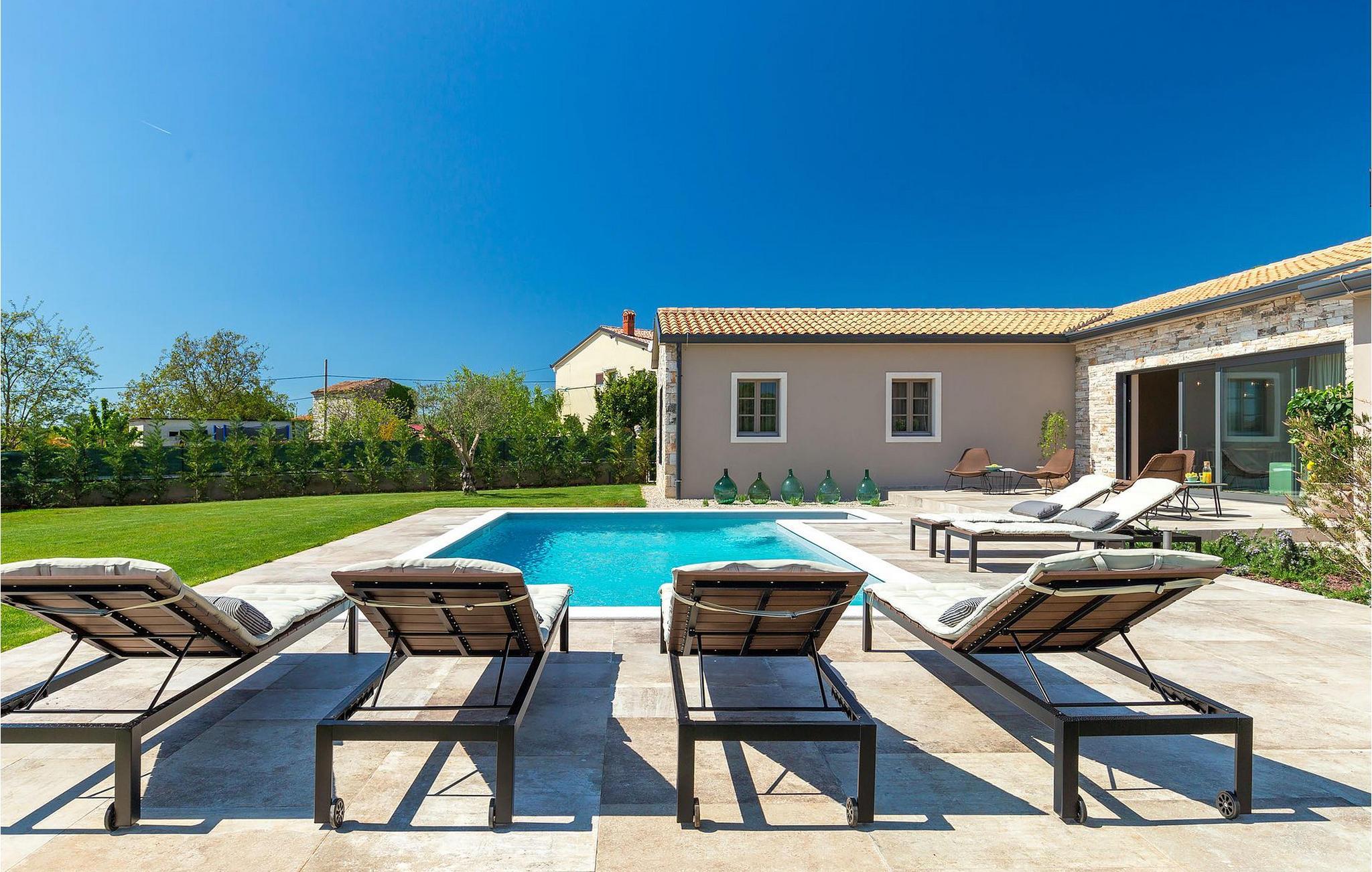 Du vil bli begeistret over den åpne stue- og spisestuen med takbjelker og peis som skaper en varm atmosfære. Villaens fullt utstyrte kjøkken og 4 store soverom med gallerilignende vinduer er ikke mindre imponerende. Fra første etasje i Villa Grotte har du tilgang til bassengområdet, der du kan tilbringe dagene med å nyte den varme istriske solen eller svømme i det innbydende bassenget mens du nyter utsikten over en liten, men fantastisk sjarmerende istrisk by.
