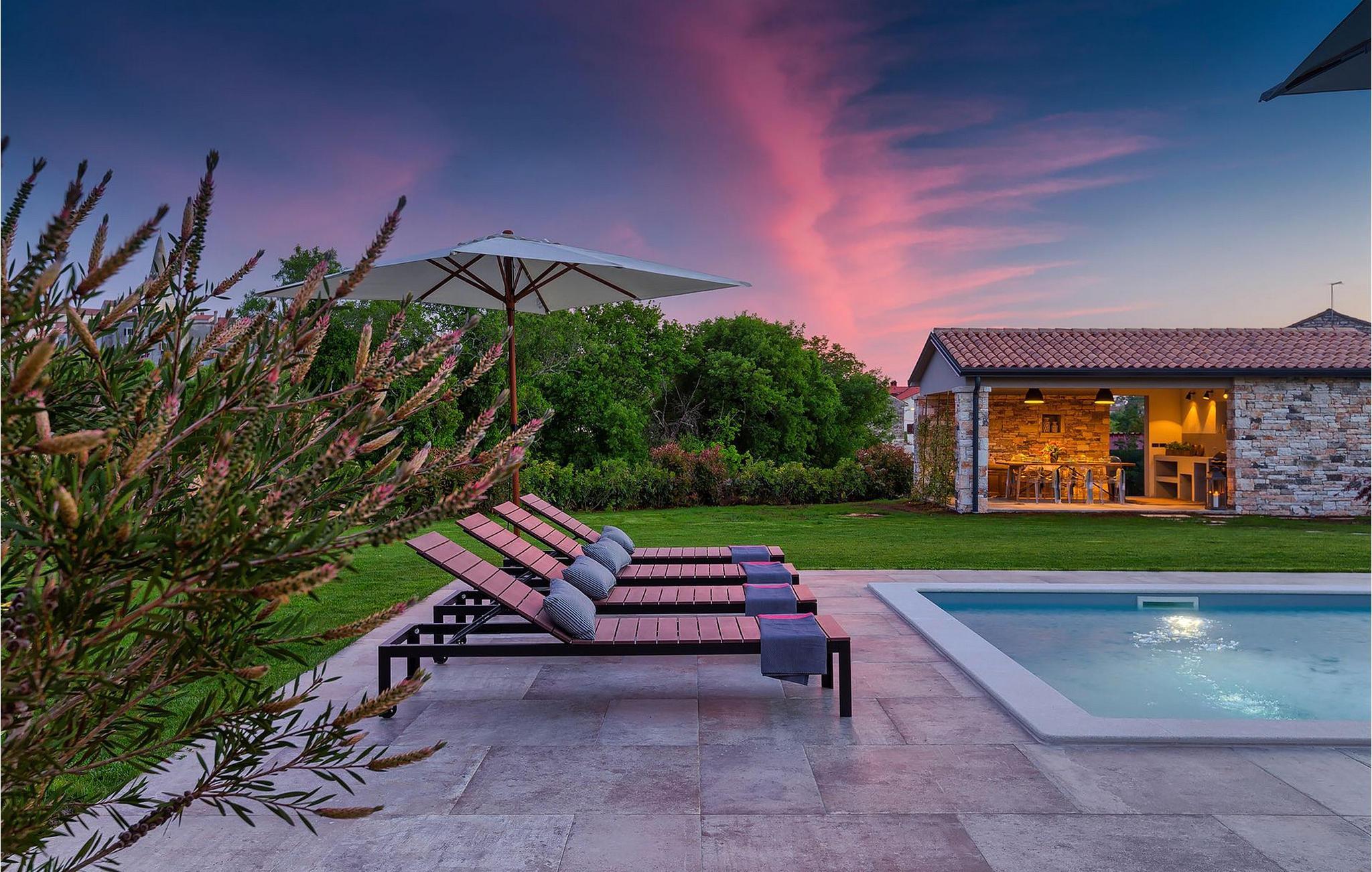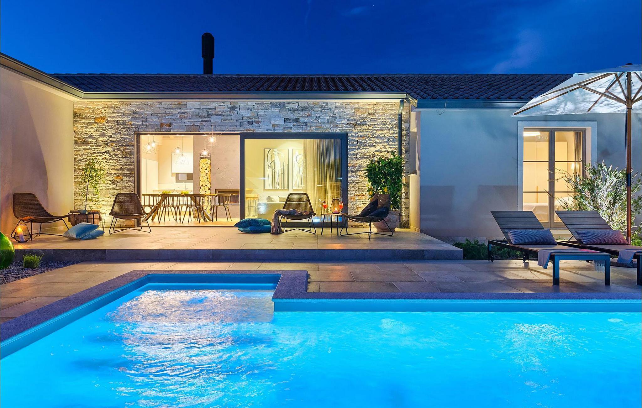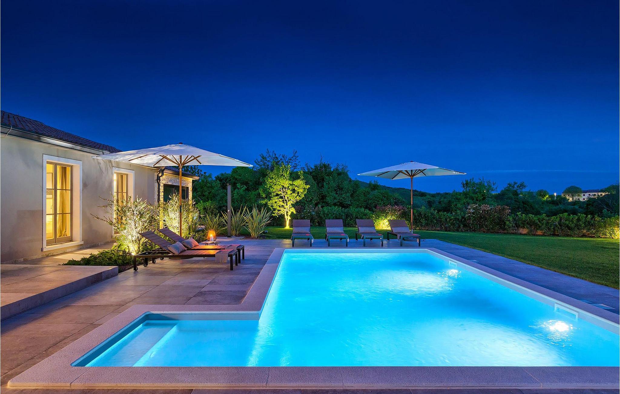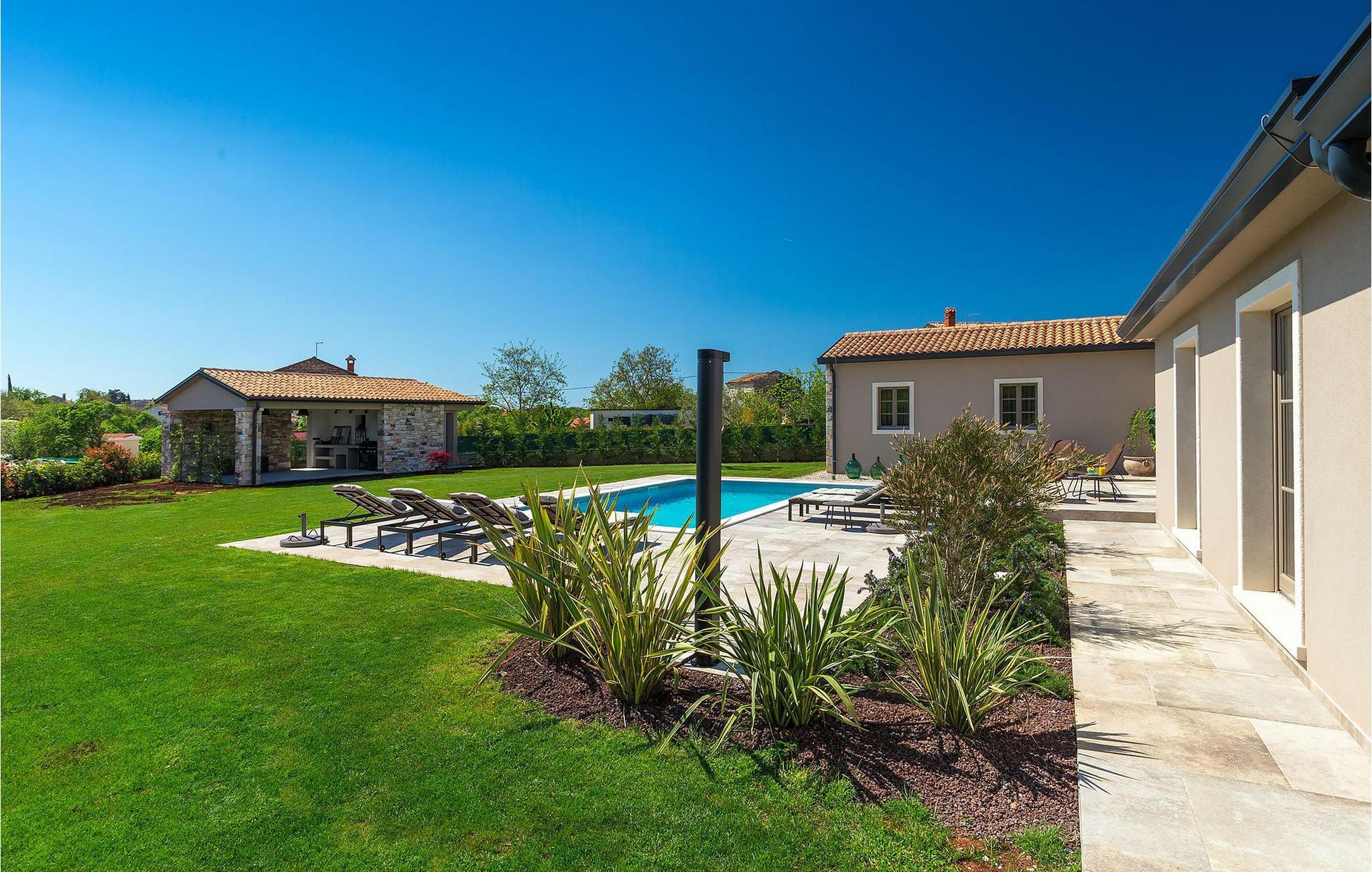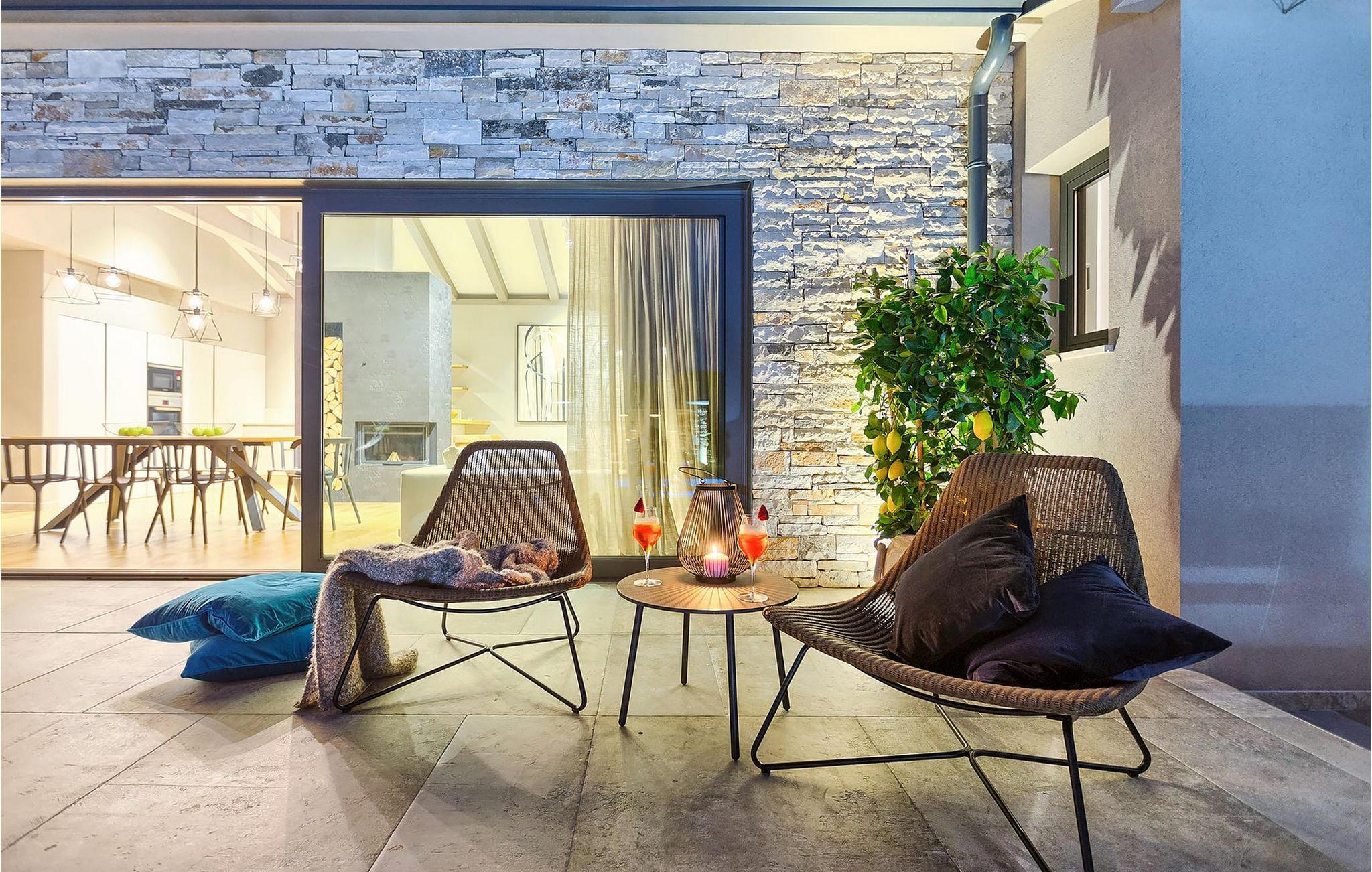 Du vil bli begeistret over den åpne stue- og spisestuen med takbjelker og peis som skaper en varm atmosfære. Villaens fullt utstyrte kjøkken og 4 store soverom med gallerilignende vinduer er ikke mindre imponerende. Fra første etasje i Villa Grotte har du tilgang til bassengområdet, der du kan tilbringe dagene med å nyte den varme istriske solen eller svømme i det innbydende bassenget mens du nyter utsikten over en liten, men fantastisk sjarmerende istrisk by.