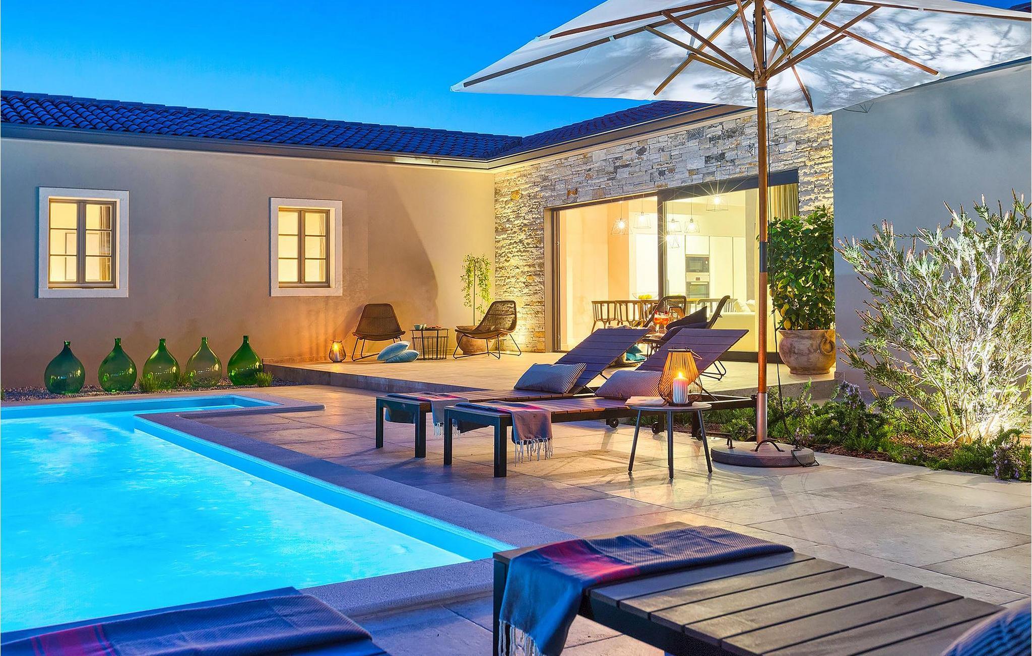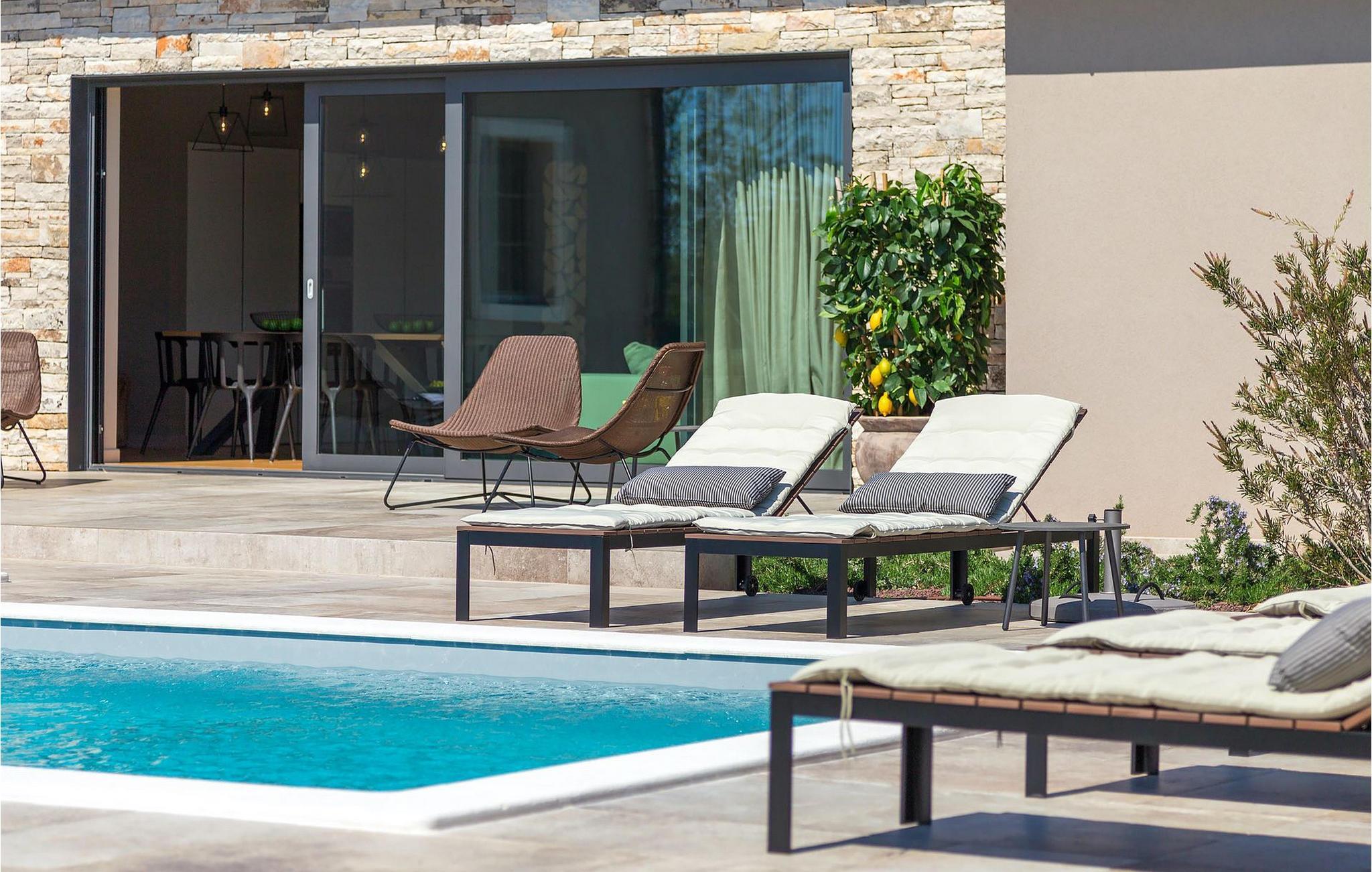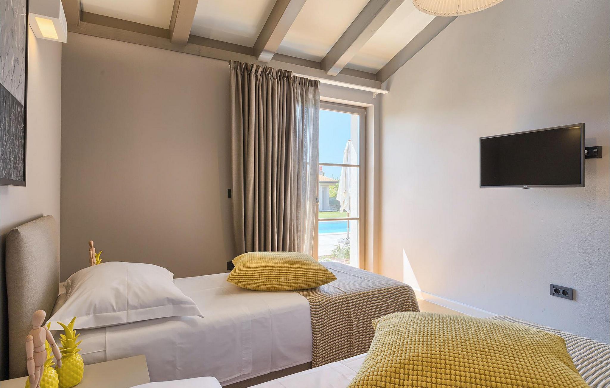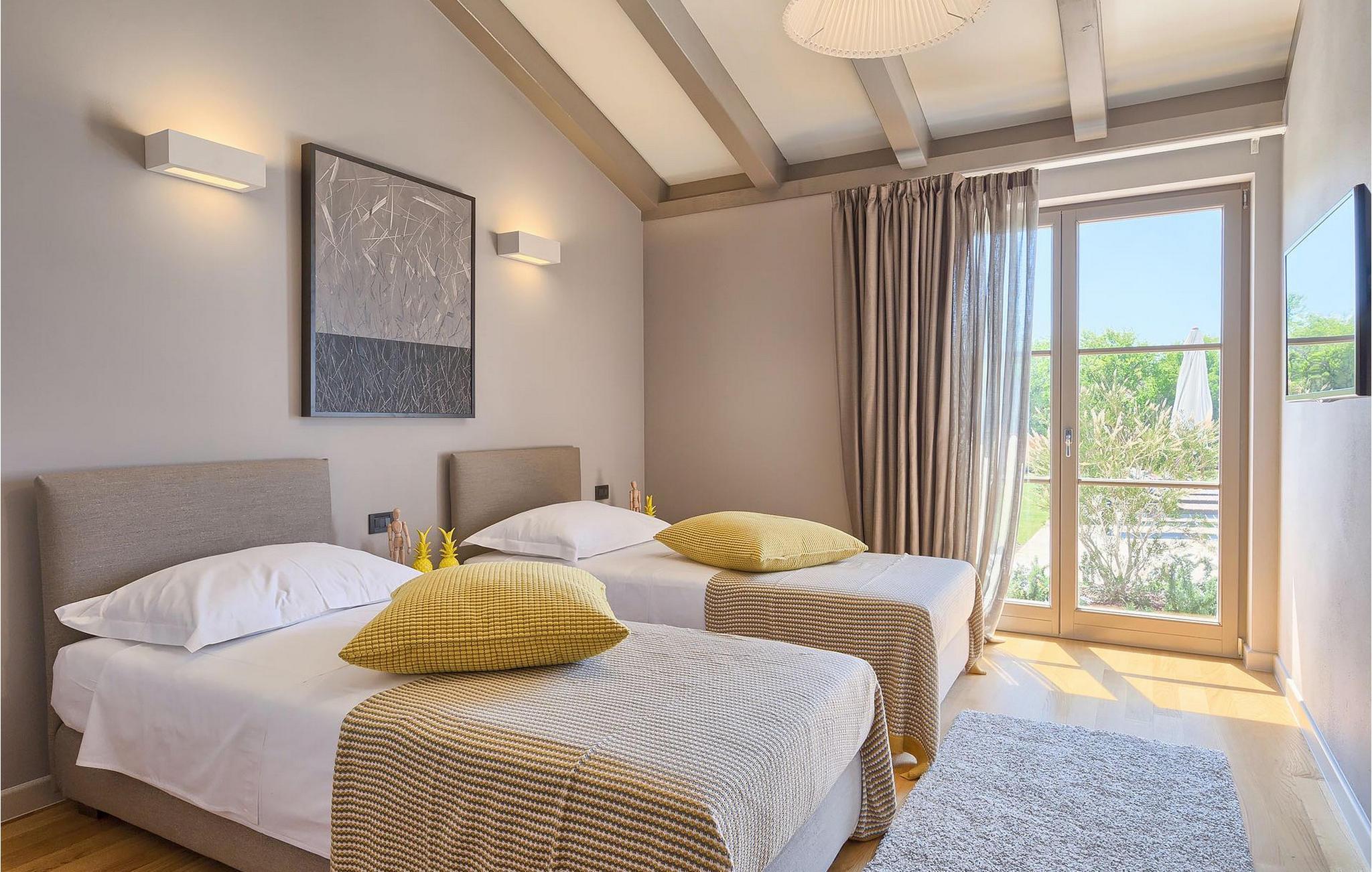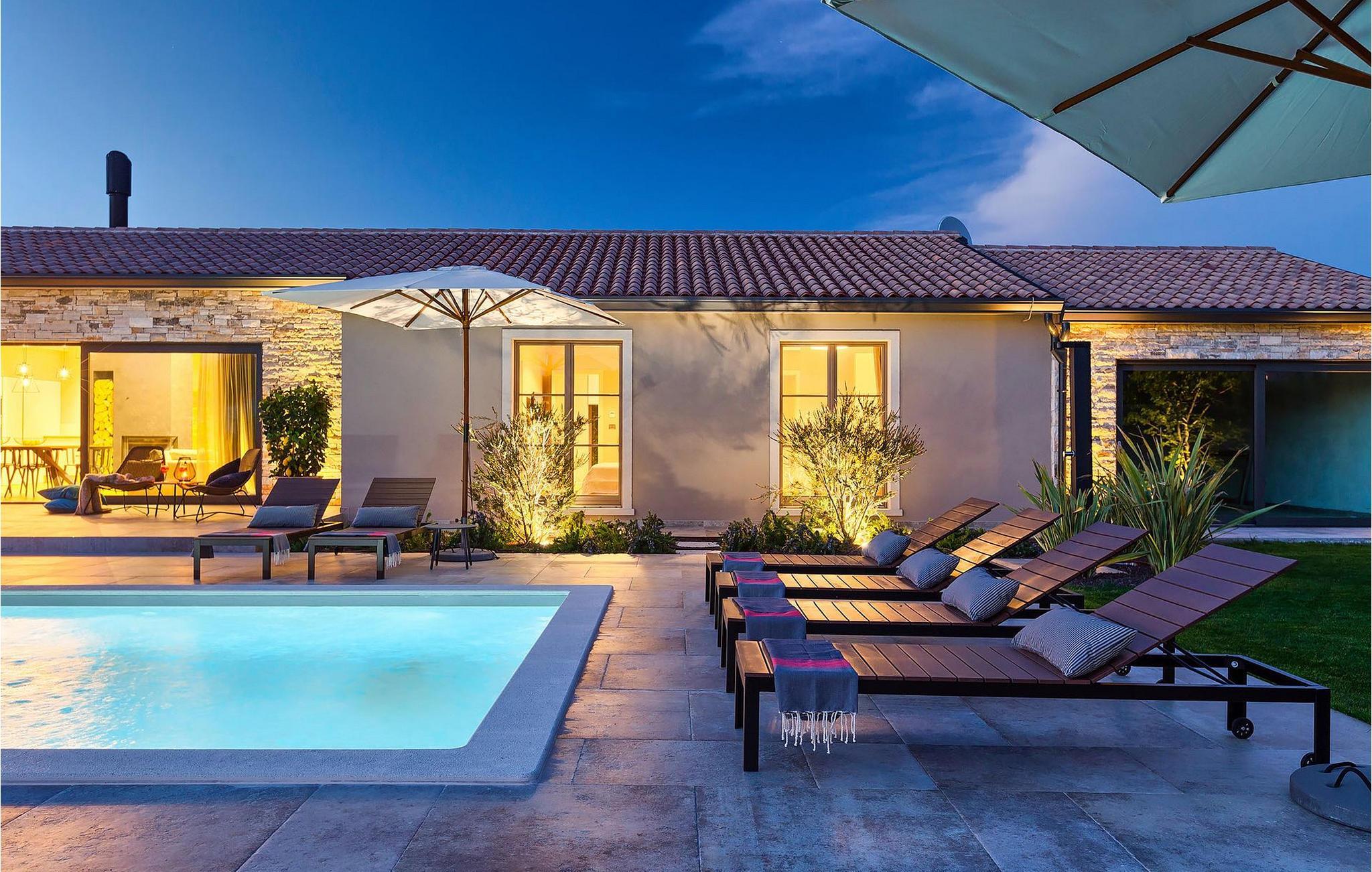 Du vil bli begeistret over den åpne stue- og spisestuen med takbjelker og peis som skaper en varm atmosfære. Villaens fullt utstyrte kjøkken og 4 store soverom med gallerilignende vinduer er ikke mindre imponerende. Fra første etasje i Villa Grotte har du tilgang til bassengområdet, der du kan tilbringe dagene med å nyte den varme istriske solen eller svømme i det innbydende bassenget mens du nyter utsikten over en liten, men fantastisk sjarmerende istrisk by.