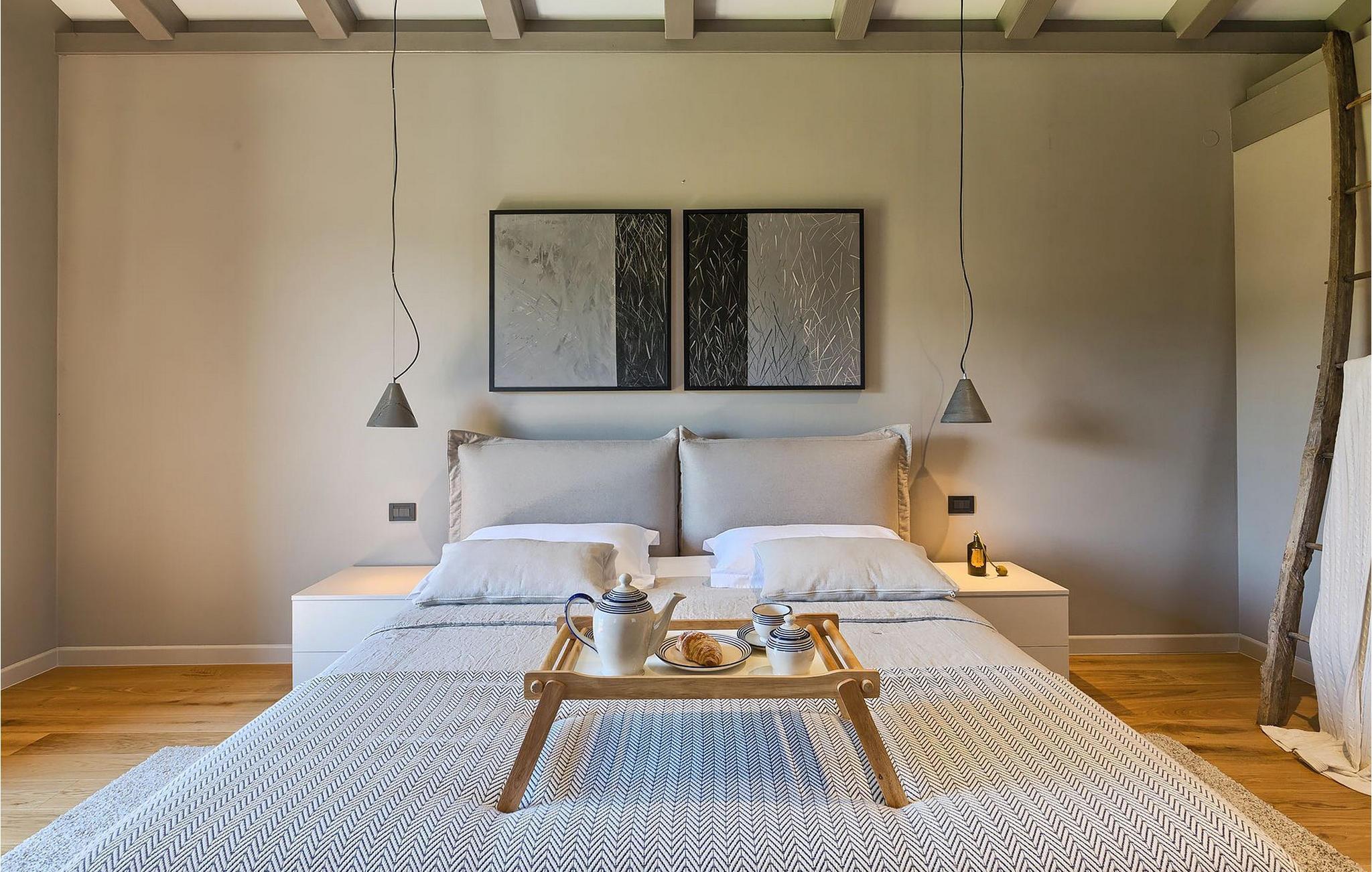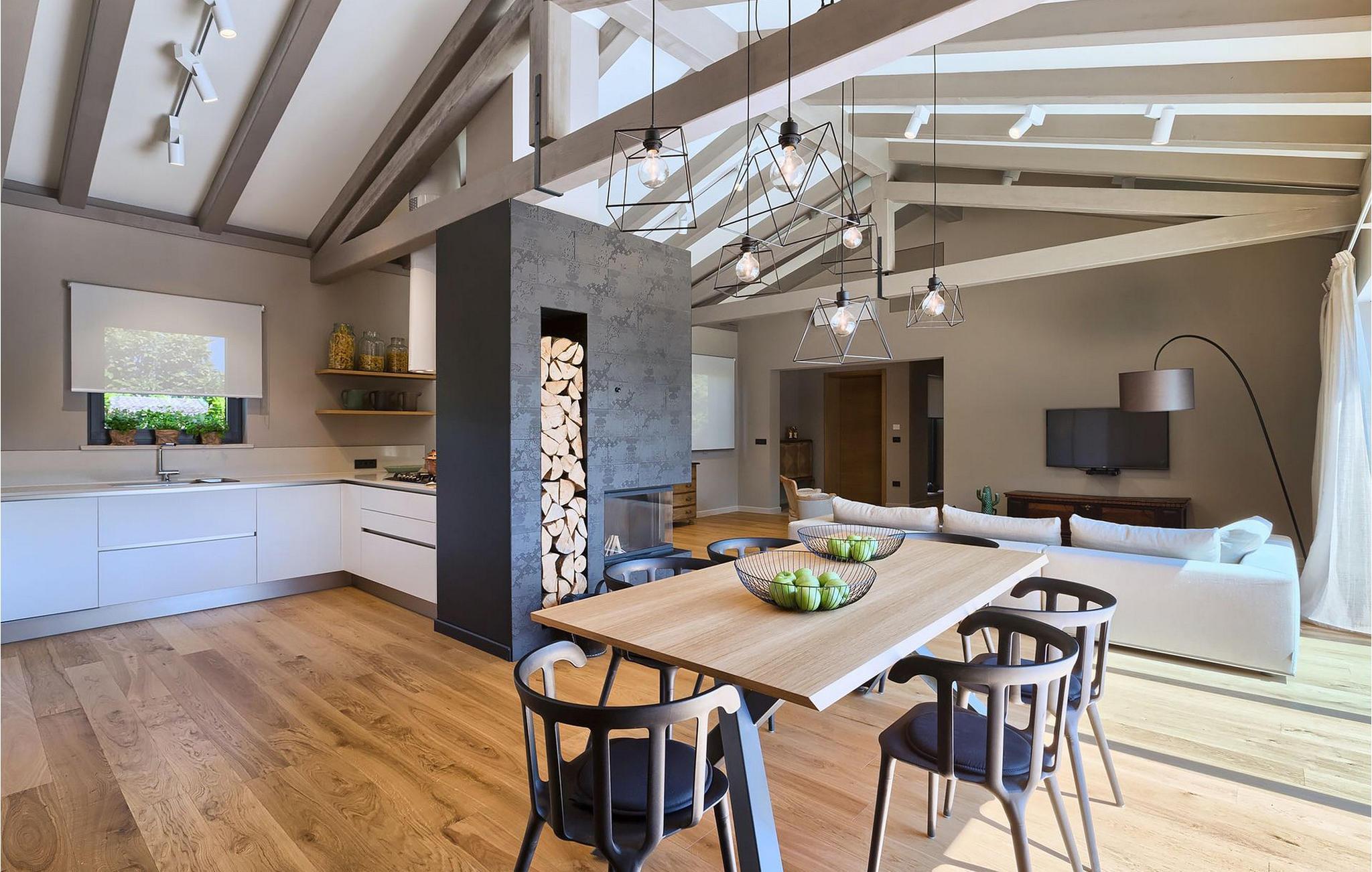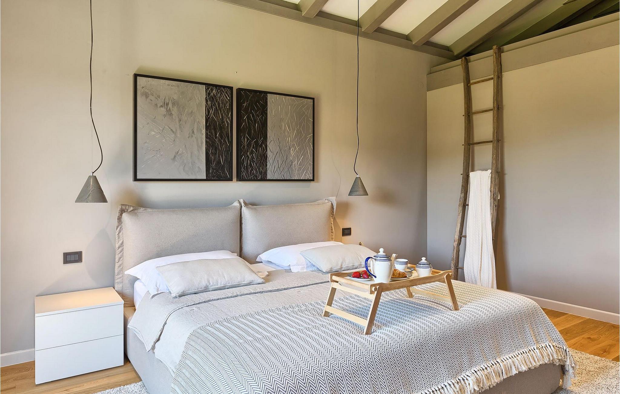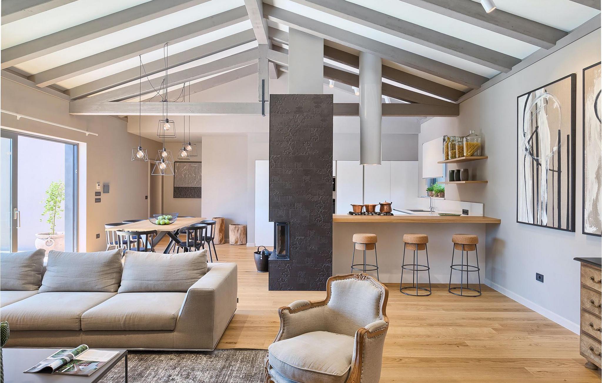 Villaens romslige og luftige interiør kombinerer rustikke detaljer med elegante møbler og moderne fasiliteter (WiFi, klimaanlegg).