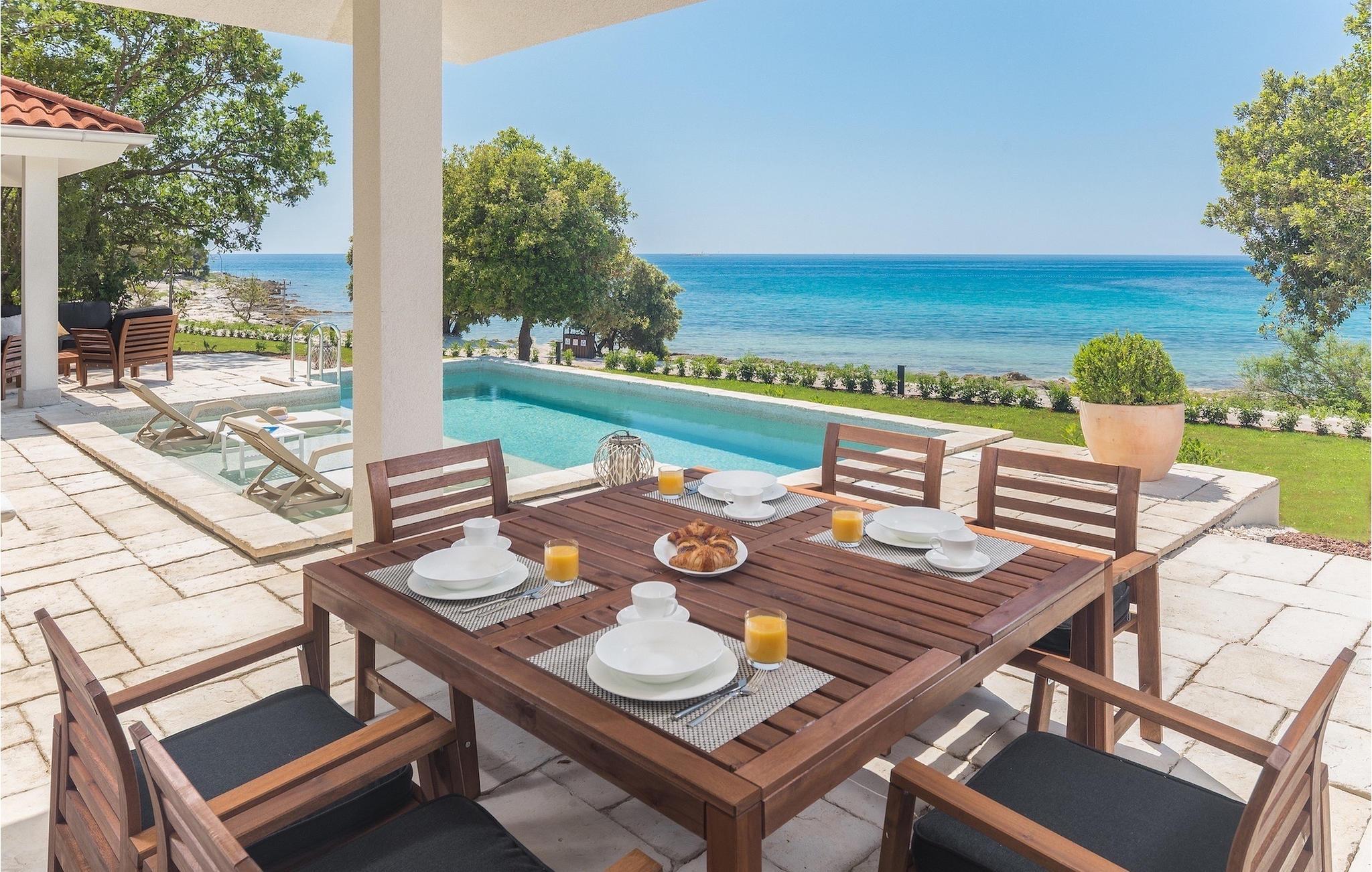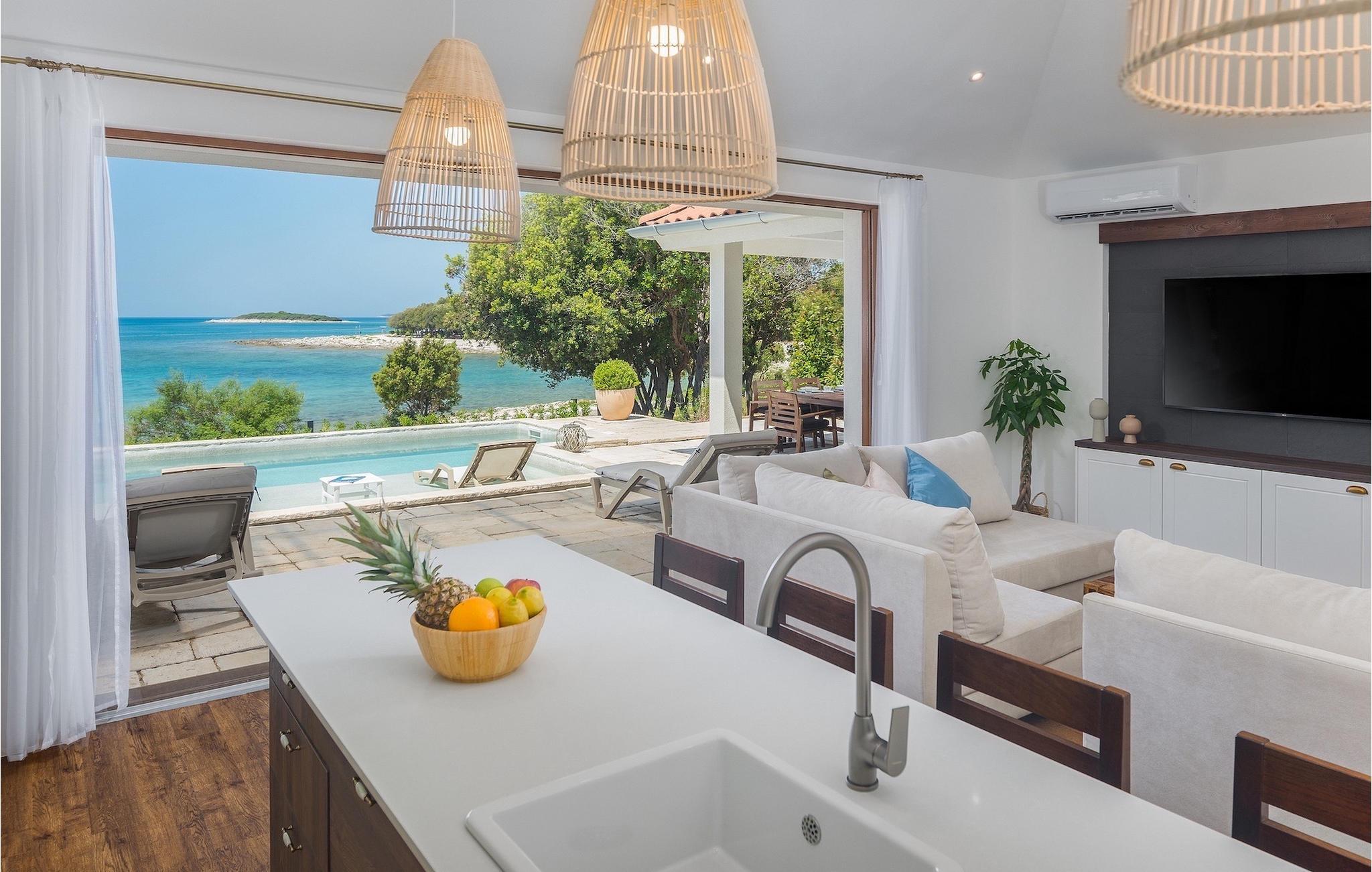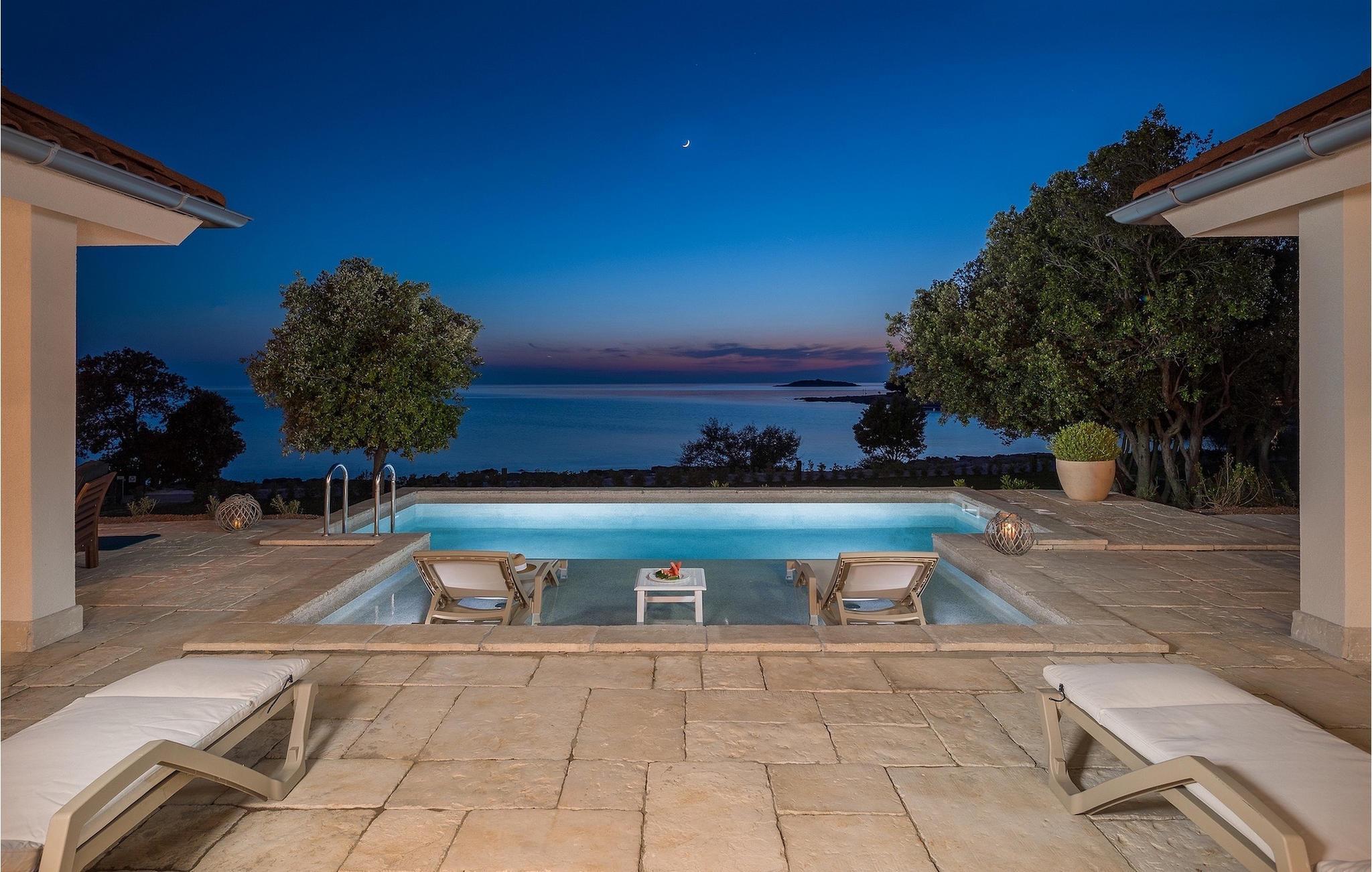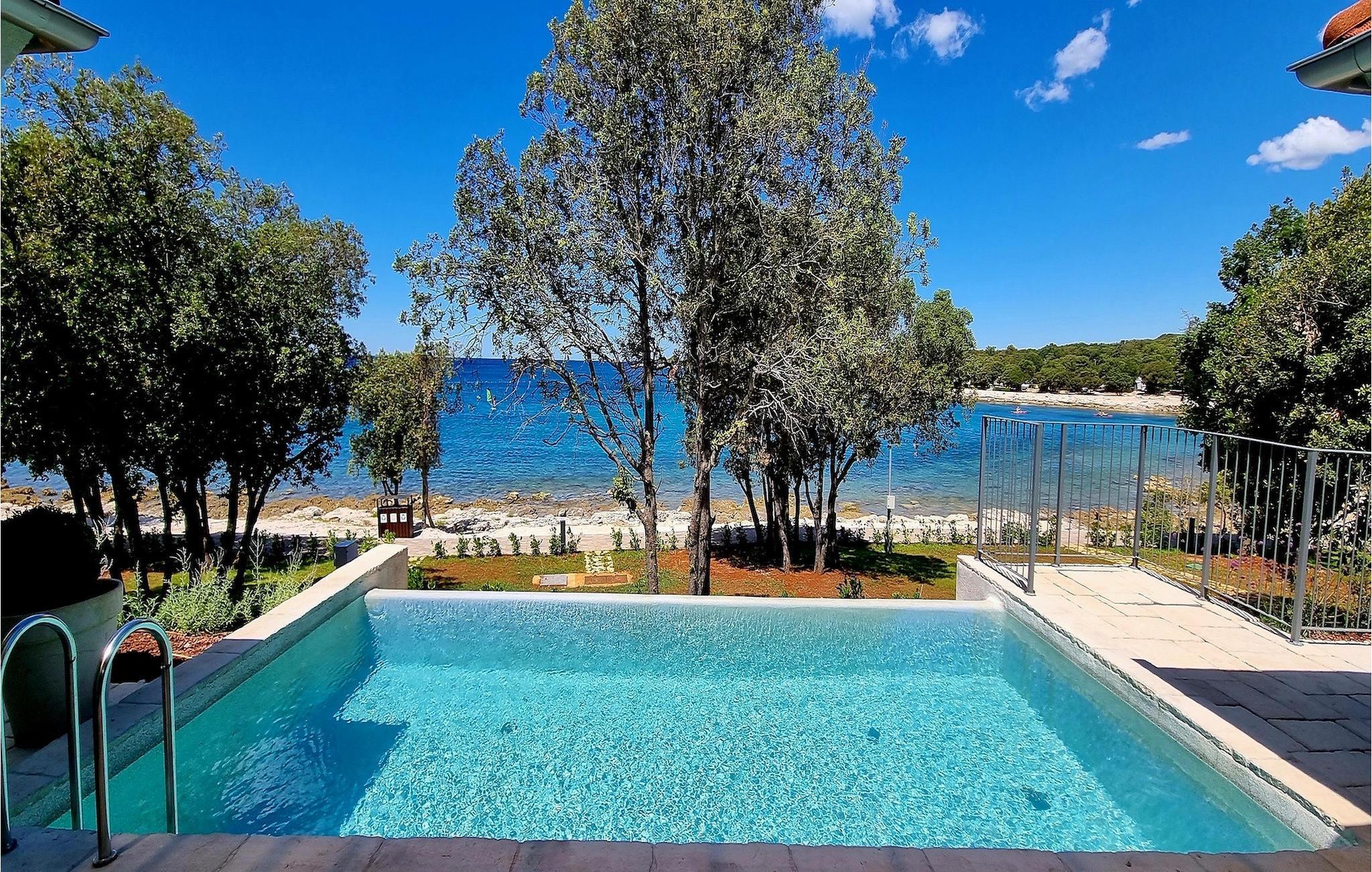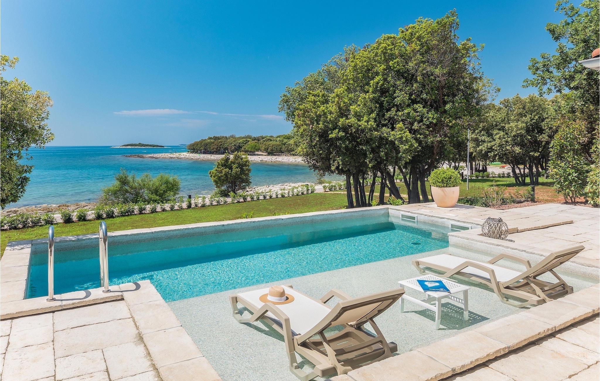 Den fortryllende Villa Luxury Villas Porto Bus Sea View er et ideelt valg for en fredelig familieferie ved sjøen. Denne villaen ligger på en campingplass på vestkysten av Istria, hvor du finner alt du trenger for en avslappende ferie. Luxury Villas Porto Bus Sea View er en av luksusvillaene med privat basseng i første rekke mot sjøen. Foran villaen er det et privat basseng med havutsikt. Utenfor er det også en terrasse med spisebord, slik at du kan nyte de varme sommerkveldene og den romantiske atmosfæren ved havet i fulle drag.