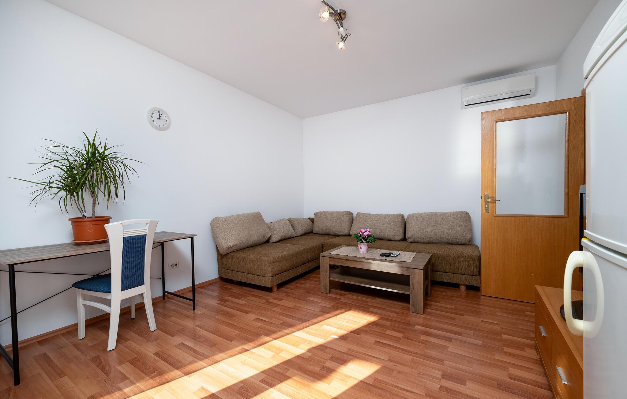 Den lyse og moderne leiligheten ligger vakkert til, bare en kort spasertur fra stranden, og er ideell for en ferie med vakre timer ved sjøen og spennende utflukter i nærområdet. De lyse rommene og de koselige møblene med retro-sjarm setter rammen for samværet og gjør det lett å slappe av. Etter en begivenhetsrik dag kan du sette deg godt til rette i sofaen, legge opp føttene og nyte tiden sammen.