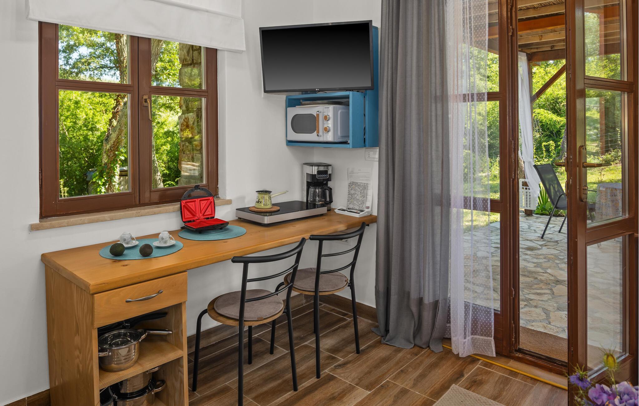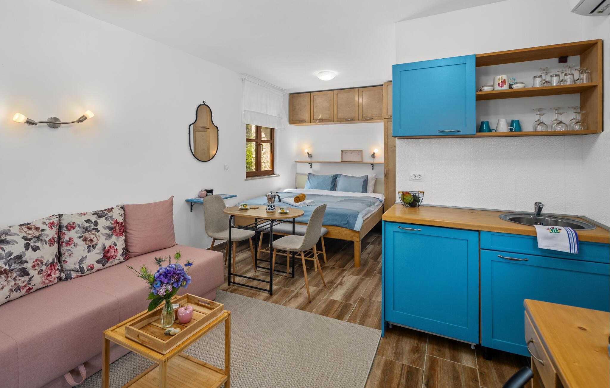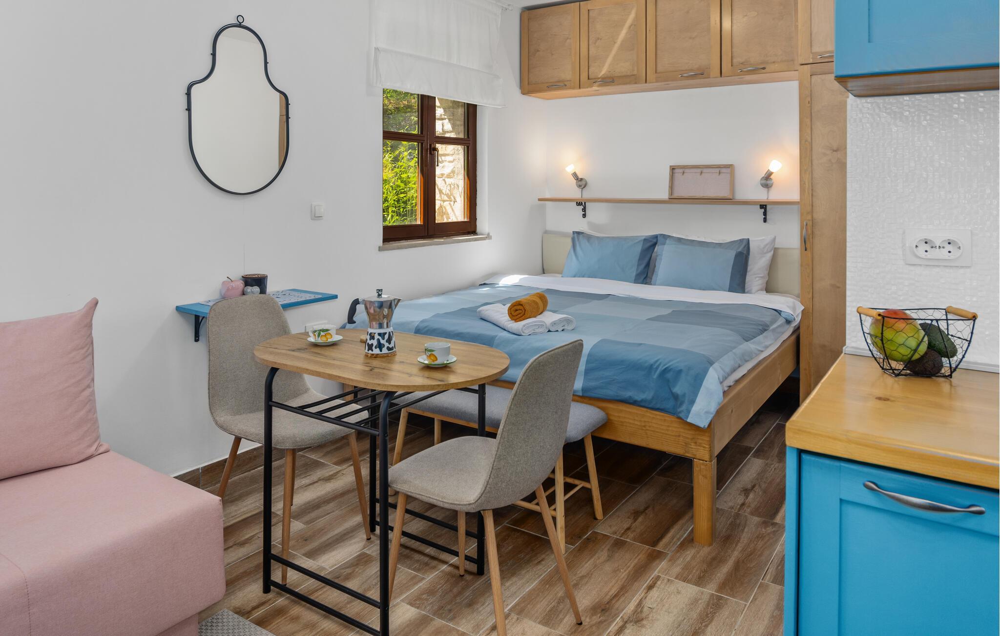Denne smakfullt og koselig innredede ettromsleiligheten er en del av et velholdt kompleks og inviterer deg til en fredelig pause midt i naturen. Planlegg dagens aktiviteter over en avslappet frokost, og slå dere ned i den innbydende sofaen om kvelden for å se en film eller spille et brettspill sammen.