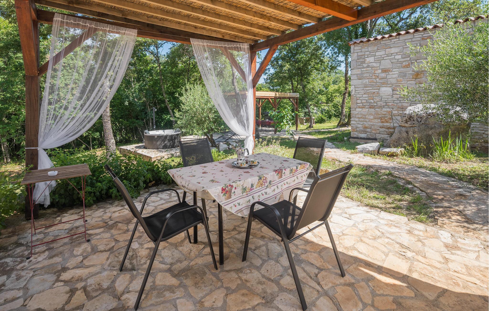Opplev idylliske dager i dette sjarmerende feriehuset med tilgang til boblebad midt i naturen.