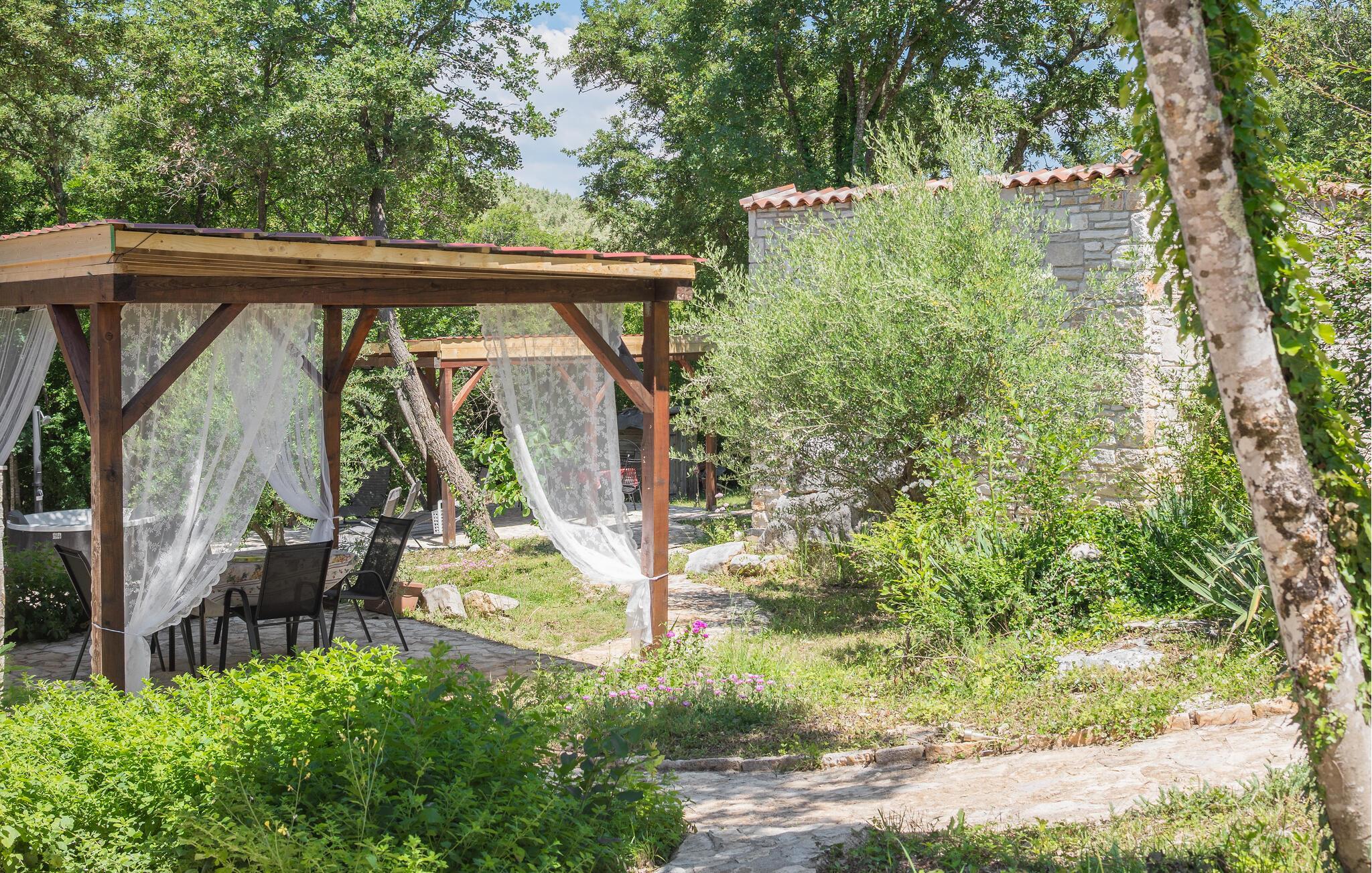 Den romslige, inngjerdede tomten er en ekte oase av fred. Se frem til avslappende stunder i boblebadet mens barna får nye venner på trampolinen. Lad batteriene på solsengen, og la den fredelige atmosfæren fortrylle deg om kvelden med et glass vin under åpen himmel.