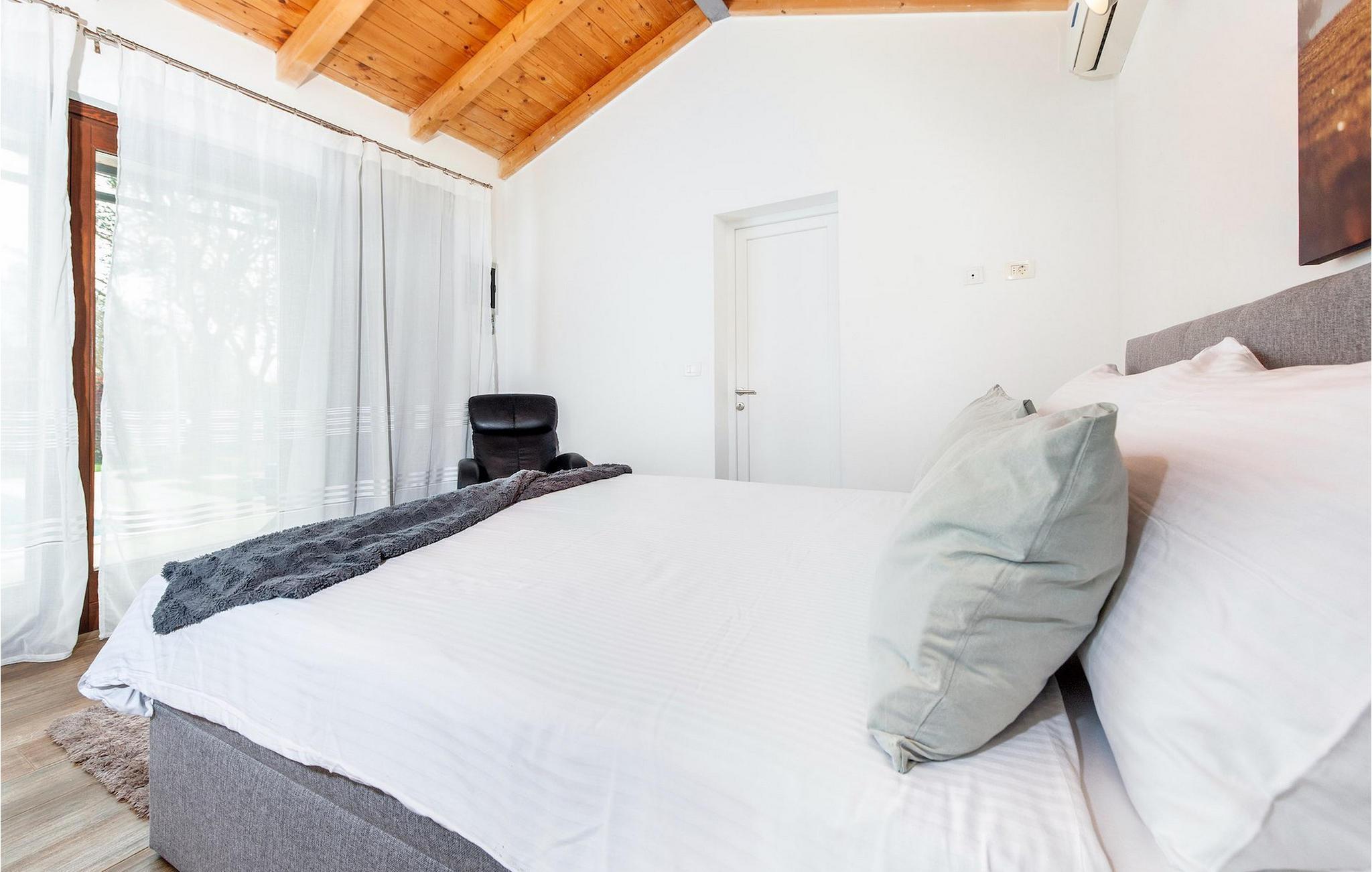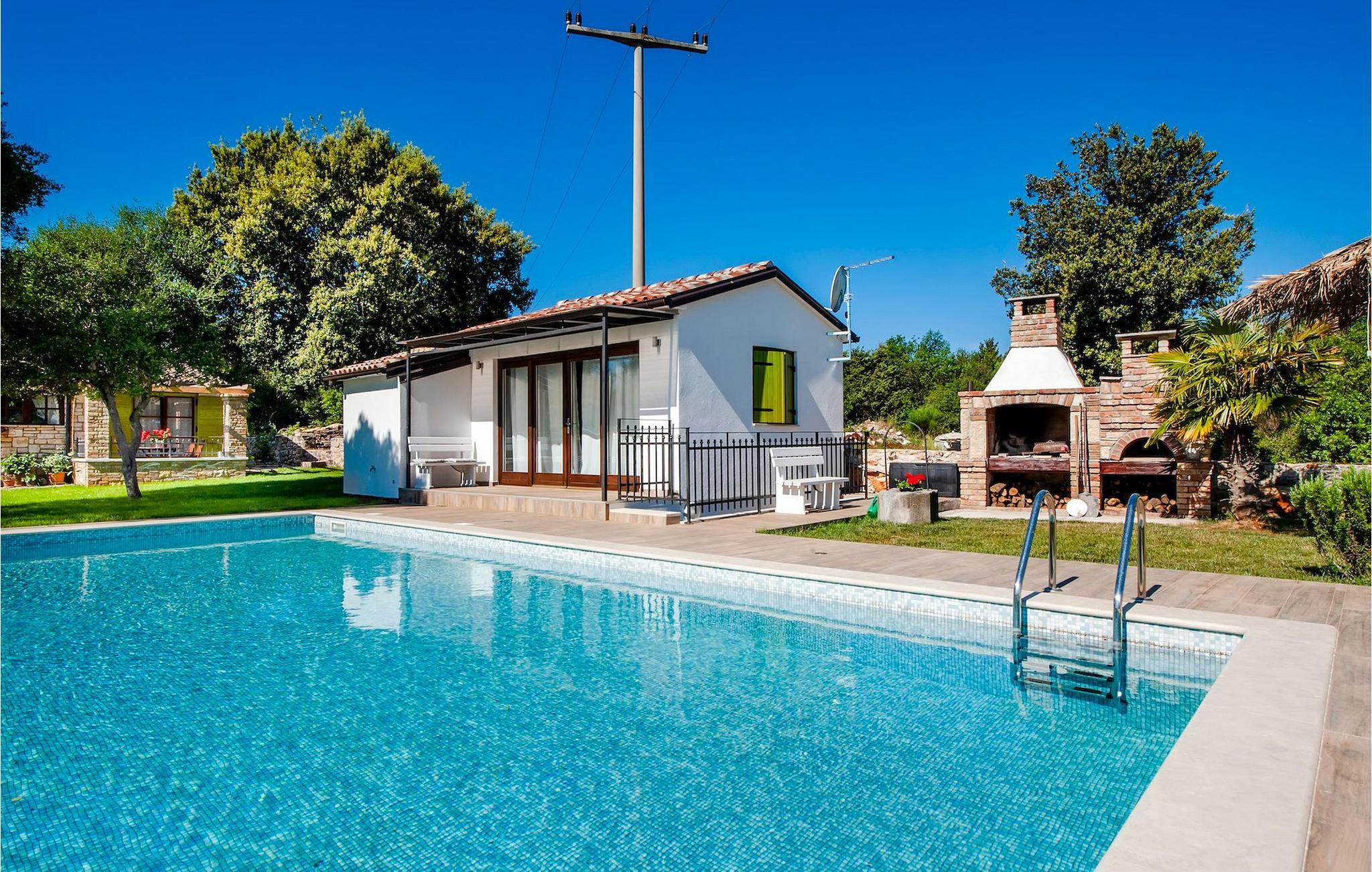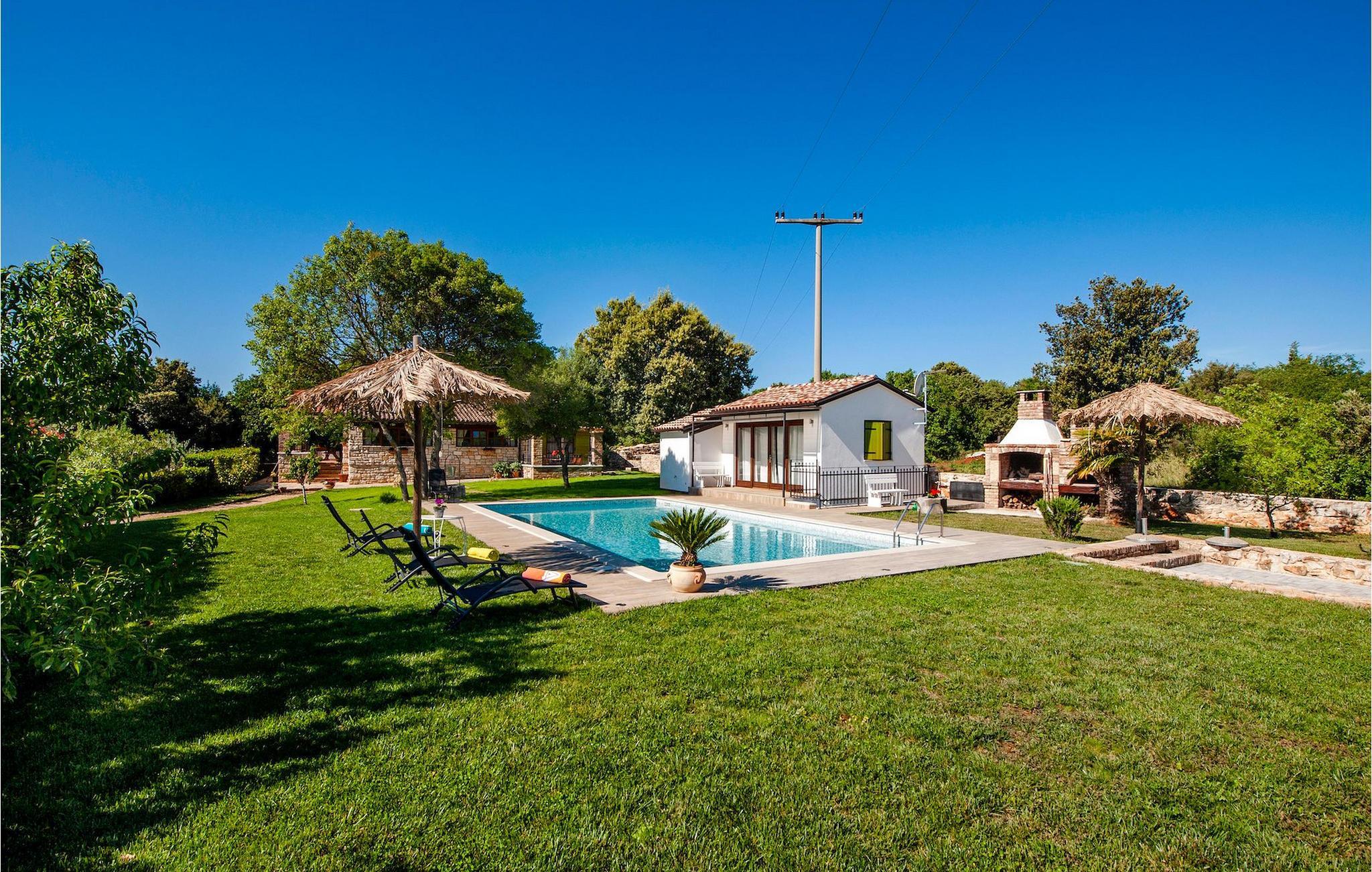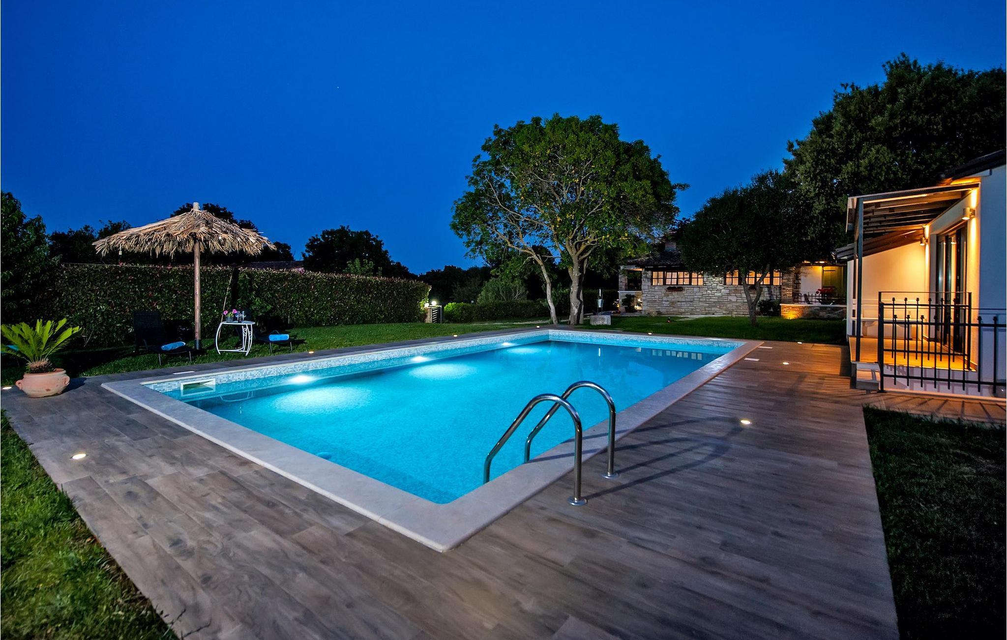Den vakre, moderne Villa Antica ligger nær sjøen i utkanten av gamle Rovinj. En av de vakreste funksjonene er det store bassenget på gårdsplassen. Selve villaen har plass til opptil syv personer. Den består av to hus, hovedhuset og en studioleilighet. Hovedhuset har en åpen stue- og spisestue, samt tre soverom. Det ene soverommet er innredet med en dobbeltseng, mens de to andre rommene har en enkeltseng hver. Det er også et stort bad med badekar hvor du kan slappe av. Utenfor kan du slappe av med en kald drink på terrassen eller på solsengene ved bassenget, eller du kan svømme i det 72 m² store bassenget. Det er også en grill hvor du kan tilberede gode måltider. Ettromsleiligheten tilbyr litt mer privatliv sammenlignet med hovedhuset. Den består av en stue med en dobbeltseng for to personer og har et bad med dusj. Bestill Villa Antica for en avslappende ferie! Villa Antica ligger i en forstad til den gamle byen Rovinj, en av de vakreste og mest romantiske byene i Kroatia. Det er bare noen minutters gange fra Polari-stranden og noen minutters kjøring fra sentrum. I sentrum kan du utforske det gamle nettverket av steingater som fører til toppen av åsen der den vakre, gamle kirken St. Fra toppen av kirketårnet kan du nyte utsikten som strekker seg over hele byen og ikke etterlater noen likegyldig. Fra sentrum kan du spasere mot Zlatni Rt-parken, et av de vakreste landskapene i det vestlige Istria. Gå ikke glipp av en tur til Lim-kanalen, en av de mest attraktive naturressursene i det vestlige Istria, som ligger bare 15 kilometer utenfor Rovinj.