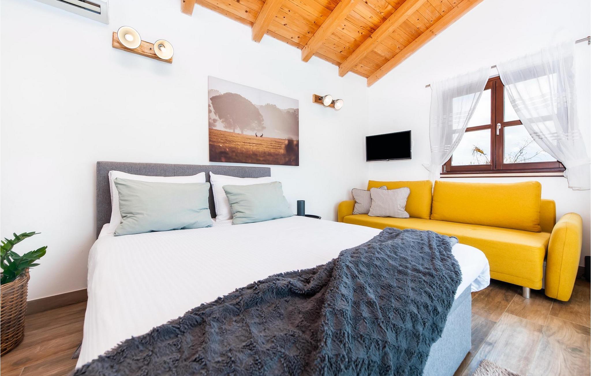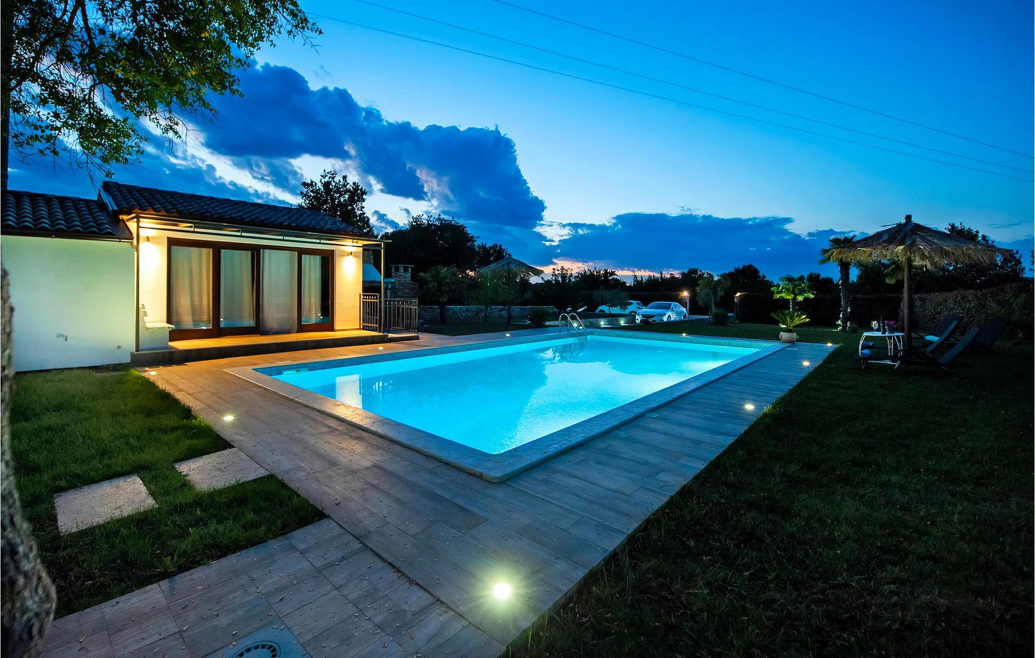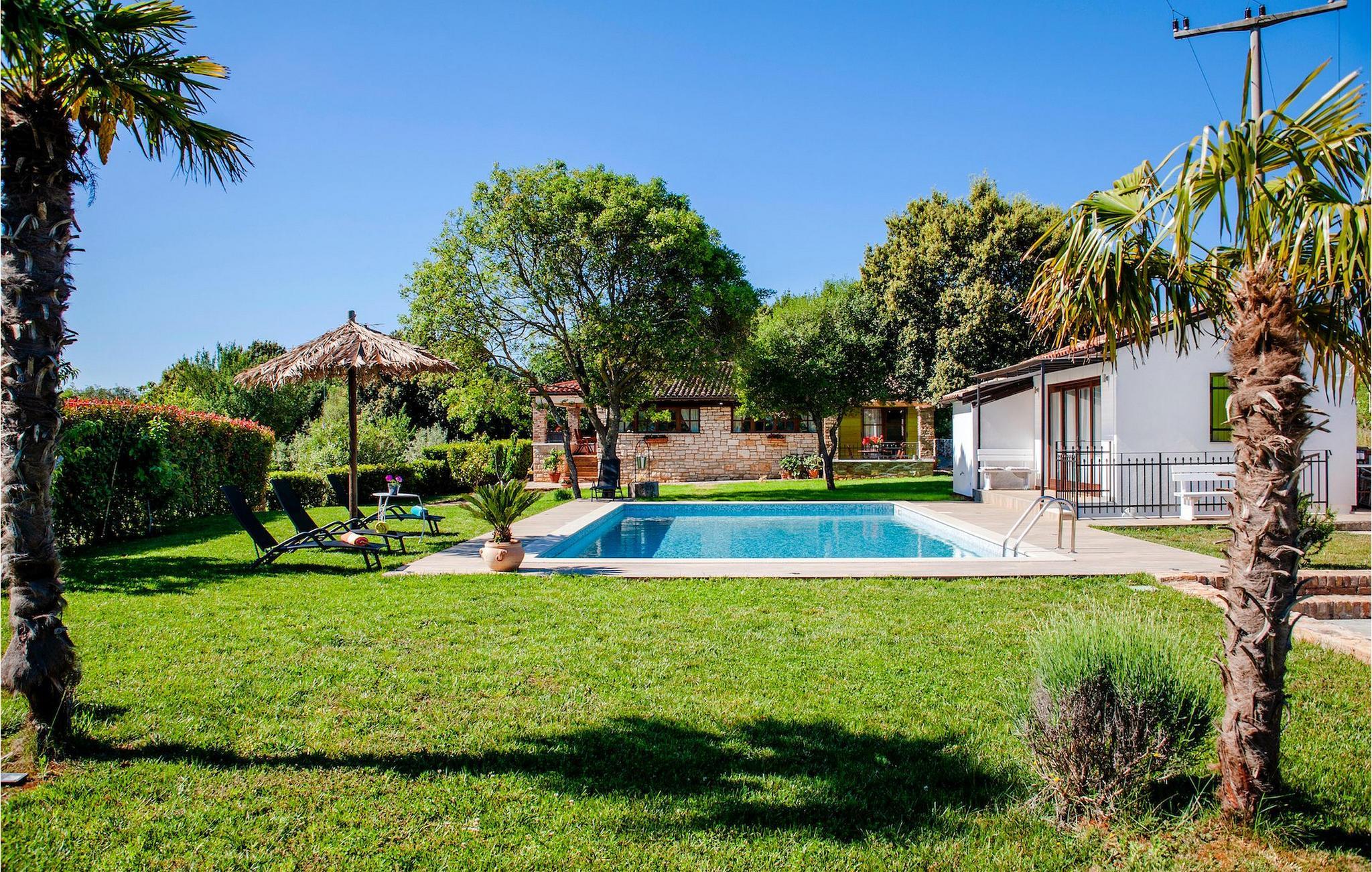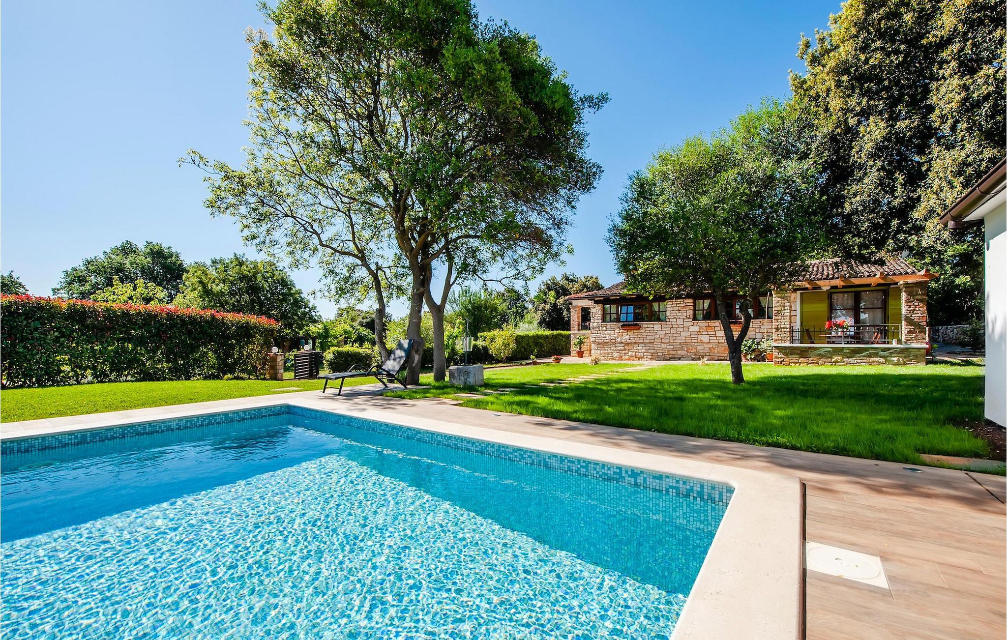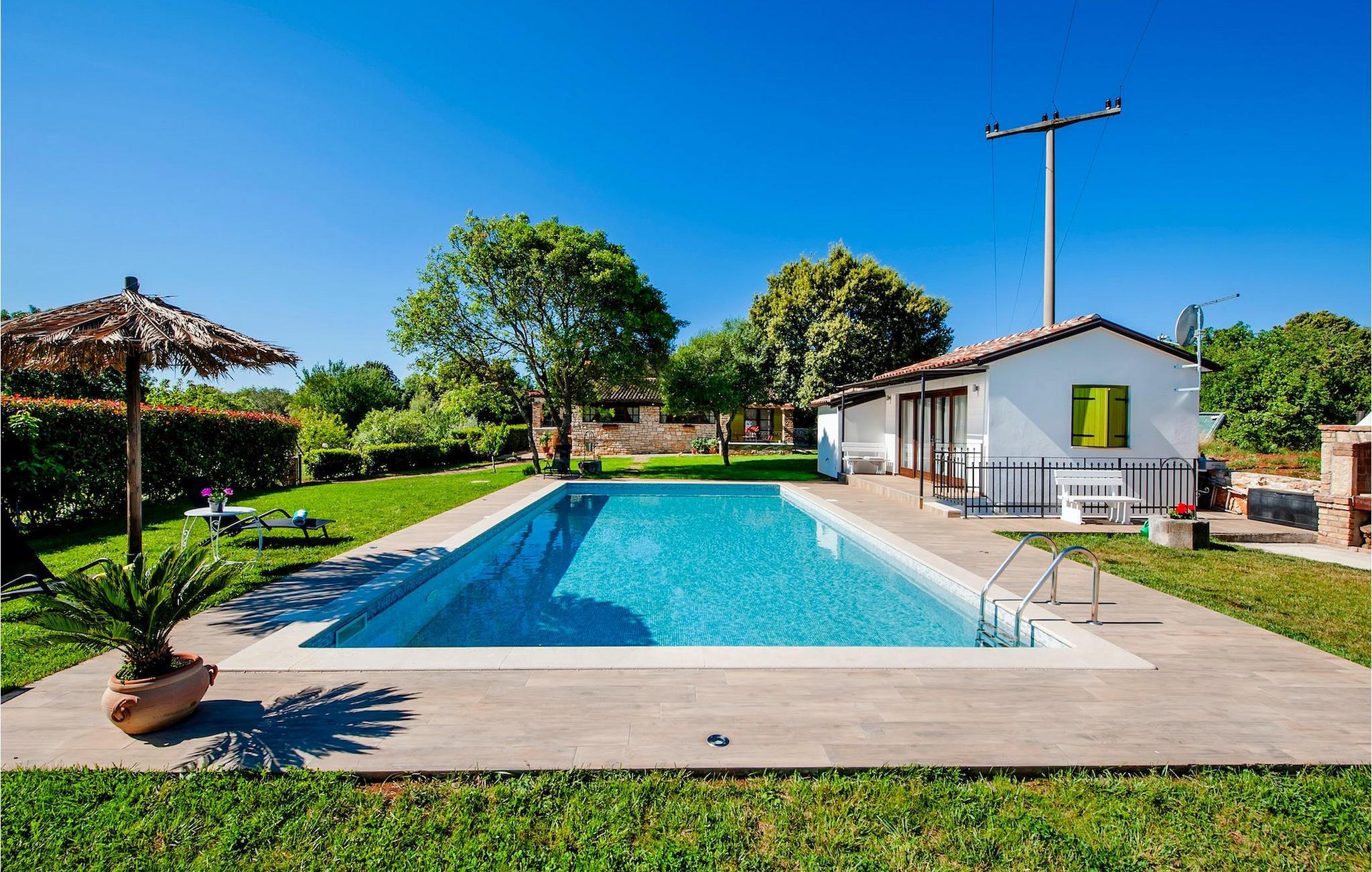 Den vakre, moderne Villa Antica ligger nær sjøen i utkanten av gamle Rovinj. En av de vakreste funksjonene er det store bassenget på gårdsplassen. Selve villaen har plass til opptil syv personer. Den består av to hus, hovedhuset og en studioleilighet. Hovedhuset har en åpen stue- og spisestue, samt tre soverom. Det ene soverommet er innredet med en dobbeltseng, mens de to andre rommene har en enkeltseng hver. Det er også et stort bad med badekar hvor du kan slappe av. Utenfor kan du slappe av med en kald drink på terrassen eller på solsengene ved bassenget, eller du kan svømme i det 72 m² store bassenget. Det er også en grill hvor du kan tilberede gode måltider. Ettromsleiligheten tilbyr litt mer privatliv sammenlignet med hovedhuset. Den består av en stue med en dobbeltseng for to personer og har et bad med dusj. Bestill Villa Antica for en avslappende ferie! Villa Antica ligger i en forstad til den gamle byen Rovinj, en av de vakreste og mest romantiske byene i Kroatia. Det er bare noen minutters gange fra Polari-stranden og noen minutters kjøring fra sentrum. I sentrum kan du utforske det gamle nettverket av steingater som fører til toppen av åsen der den vakre, gamle kirken St. Fra toppen av kirketårnet kan du nyte utsikten som strekker seg over hele byen og ikke etterlater noen likegyldig. Fra sentrum kan du spasere mot Zlatni Rt-parken, et av de vakreste landskapene i det vestlige Istria. Gå ikke glipp av en tur til Lim-kanalen, en av de mest attraktive naturressursene i det vestlige Istria, som ligger bare 15 kilometer utenfor Rovinj.