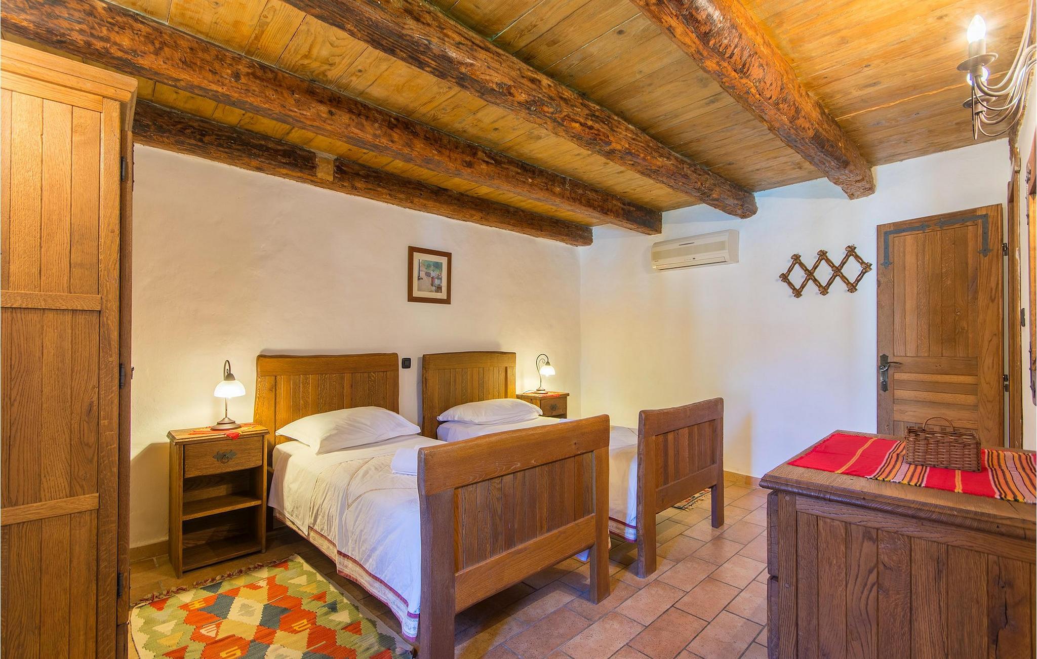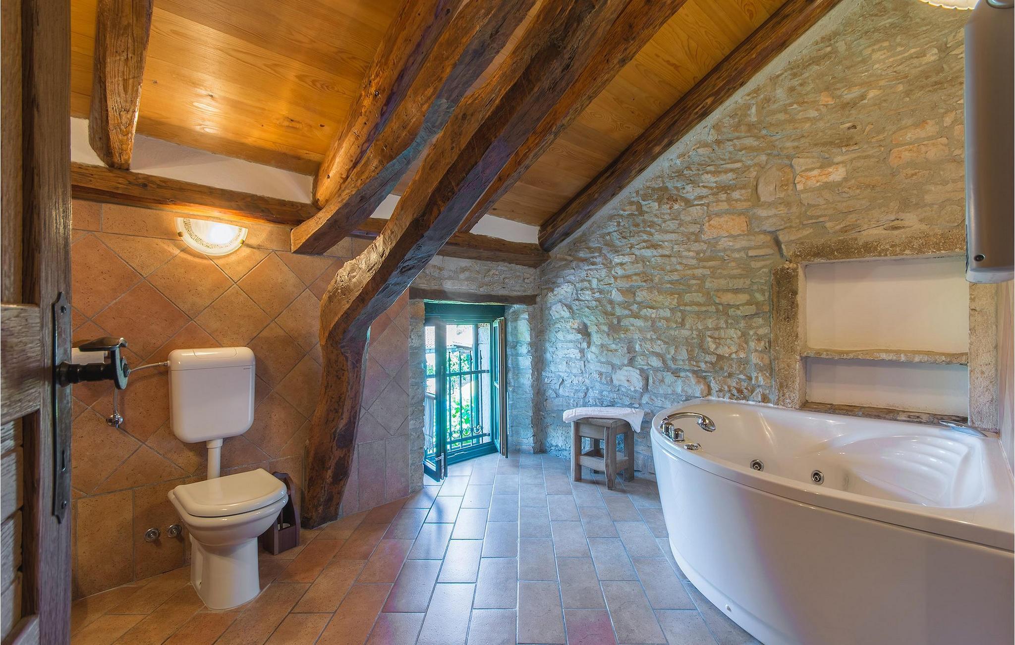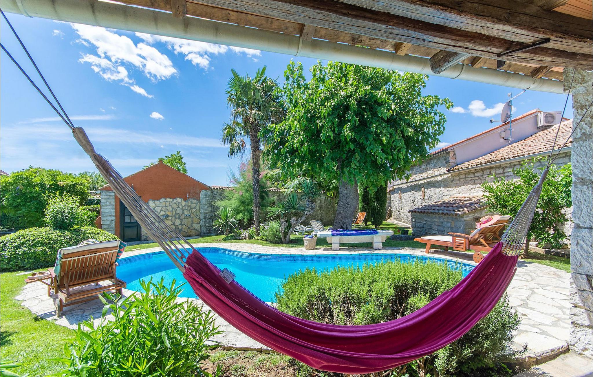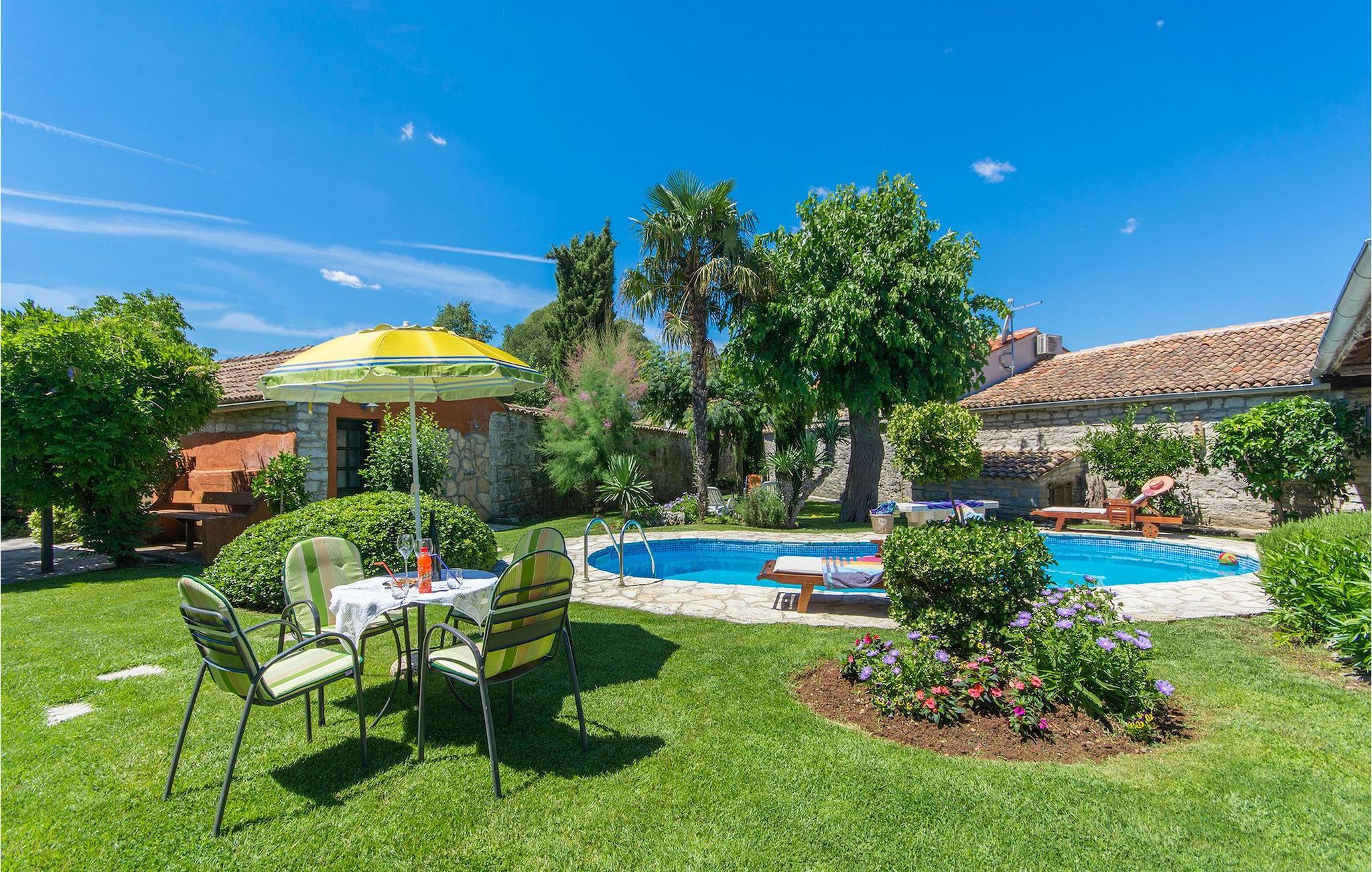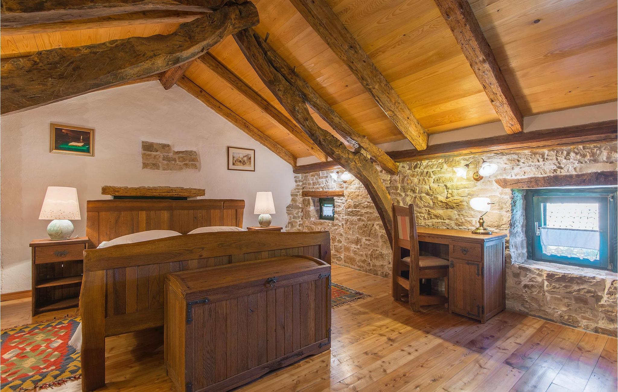 Det fortelles at sjørøverkapteinen Sir Henry Morgan på 1600-tallet plyndret Karibia, og på flukt fra loven seilte han så langt som til Lim Bay og landsbyen Mrgani, der han gjemte skatten sin. Den over hundre år gamle, ombygde villaen bærer fortsatt preg av den gamle kapteinen med sine steinvegger, bevisst avskallet murstein og puss på innerveggene, eikebjelker og antikk innredning og møbler. Kanskje er historien om kaptein Morgan og skatten hans bare et eventyr, men ferien du drømmer om kan bli virkelighet når du bestiller Villa Capt Morgan. I villaens første etasje er det en romslig stue med peis, kjøkken og spisestue i åpen planløsning. I første etasje er det et soverom med dobbeltseng og eget bad. Første etasje er delt i to deler, hver med separate trapper. Den venstre delen inneholder to soverom, ett med enkeltseng og ett med dobbeltseng, begge med eget bad. I den høyre delen av øverste etasje er det et stort hovedsoverom kalt "Captain's Room", som har eget bad med boblebad. På utsiden av villaen er det en stor uteplass med svømmebasseng og mye middelhavsgrønt. I hagen vokser det også et hundre år gammelt morbærtre som gir behagelig skygge på varme sommerdager. Hvis du reiser med barn, vil du sette stor pris på denne gårdsplassen, som byr på rikelig med plass til ubekymret lek. For ekstra moro har villaen bordtennis, bordfotball, basketballkurv og dart. På gårdsplassen er det også en stor, overbygd spiseplass med en stor peis der du kan tilberede et herlig familiemåltid og nyte det sammen. Her kan du virkelig slappe av og nyte freden og roen du drømmer om. Gjør drømmene til virkelighet ved å bestille Villa Capt Morgan med en gang, og unn deg selv den ferien du fortjener.Mrgani er en liten, rolig landsby over det istriske geologiske området Limkanalen, bare noen få kilometer fra kystbyen Rovinj. Dette fredelige og avslappende området er omgitt av grønne jorder og skoger, langt unna de store turistsentrene, men likevel nært nok hvis du vil utforske. Rovinj ligger bare 30 minutter unna med bil, og du vil nyte hvert minutt av kjøreturen gjennom det pittoreske, kuperte landskapet. Når du nærmer deg Rovinj, vil du umiddelbart bli fortryllet av byens skjønnhet, spesielt i solnedgangen, når du kan se fargerike hus på en kupert halvøy omgitt av varme farger fra den solkyssede sommerhimmelen og det krystallblå havet. Rovinj er en virkelig romantisk by. Ta en spasertur gjennom de smale steingatene som slynger seg sakte oppover til toppen av åsen der den gamle Eufemia-kirken fra 900-tallet ligger. Kirkeplatået byr på en vakker utsikt. Hvis du klatrer opp til toppen av kirketårnet, har du fri utsikt over hele byen og området rundt. I Rovinj finner du mange flotte restauranter og bistroer som vil tilfredsstille enhver gastronomisk entusiast. Istrien er godt forbundet med landeveier, slik at du enkelt kan utforske området. Planlegg dagsturer til kyst- og innlandsbyer som Pula, Groznjan, Motovun, Vodnjan, Porec og Novigrad, og benytt anledningen til å besøke Birjuni nasjonalpark med båt.