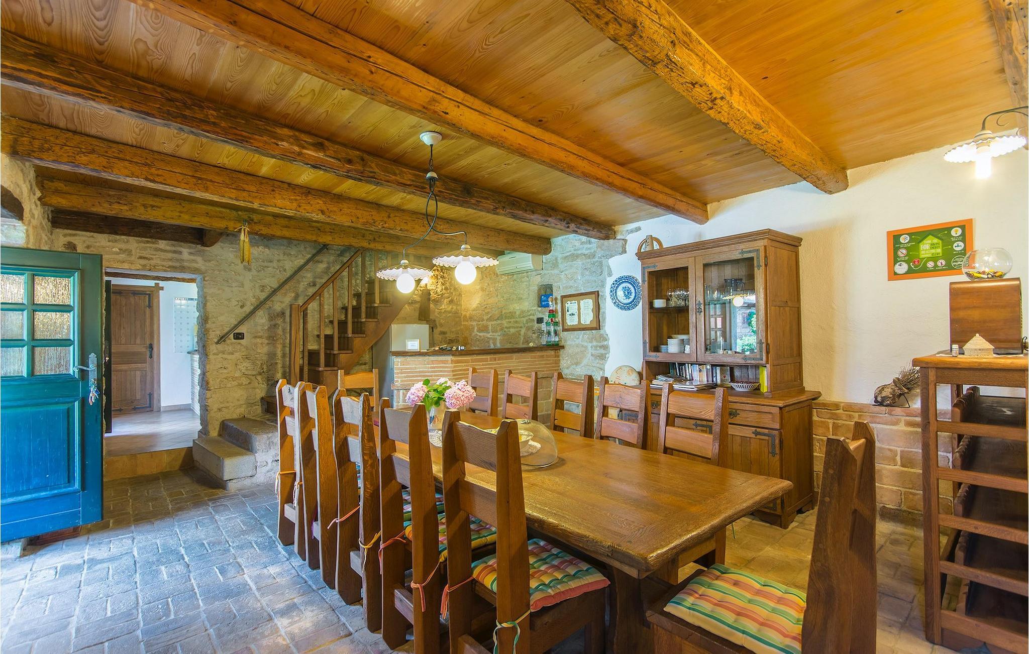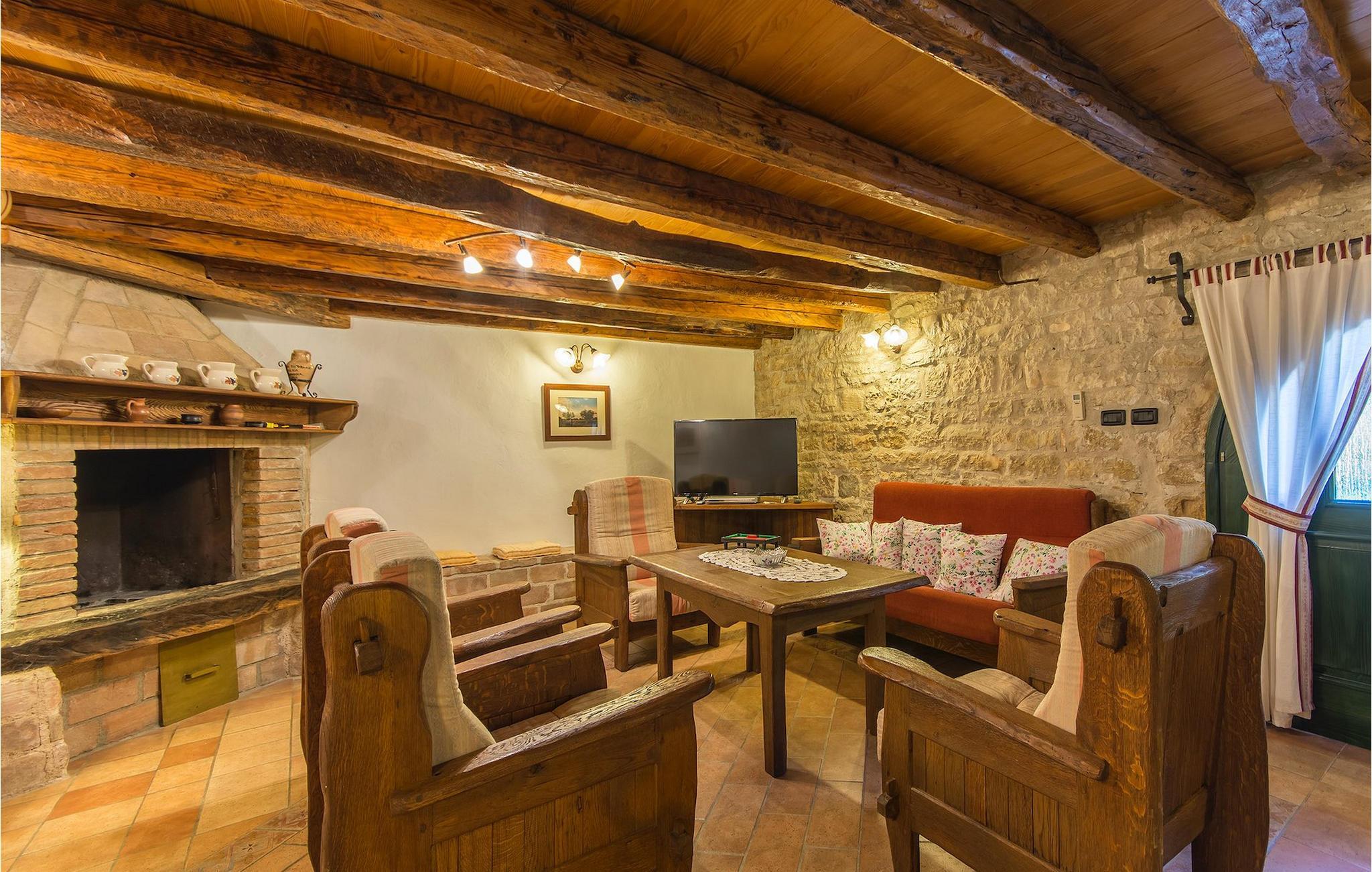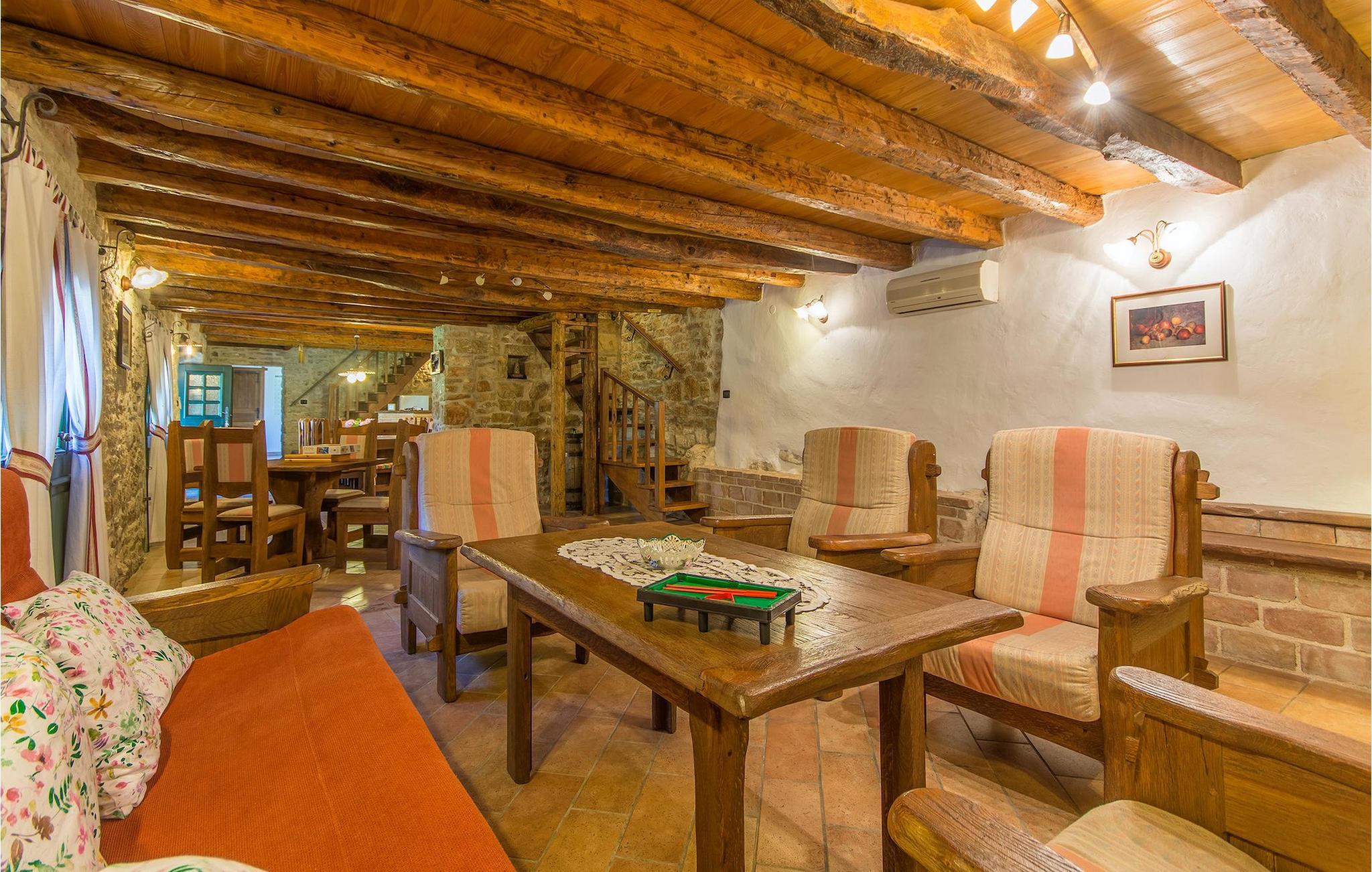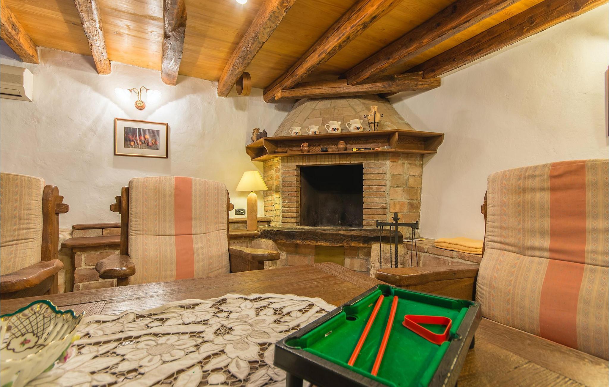 Det fortelles at sjørøverkapteinen Sir Henry Morgan på 1600-tallet plyndret Karibia, og på flukt fra loven seilte han så langt som til Lim Bay og landsbyen Mrgani, der han gjemte skatten sin. Den over hundre år gamle, ombygde villaen bærer fortsatt preg av den gamle kapteinen med sine steinvegger, bevisst avskallet murstein og puss på innerveggene, eikebjelker og antikk innredning og møbler. Kanskje er historien om kaptein Morgan og skatten hans bare et eventyr, men ferien du drømmer om kan bli virkelighet når du bestiller Villa Capt Morgan. I villaens første etasje er det en romslig stue med peis, kjøkken og spisestue i åpen planløsning. I første etasje er det et soverom med dobbeltseng og eget bad. Første etasje er delt i to deler, hver med separate trapper. Den venstre delen inneholder to soverom, ett med enkeltseng og ett med dobbeltseng, begge med eget bad. I den høyre delen av øverste etasje er det et stort hovedsoverom kalt "Captain's Room", som har eget bad med boblebad. På utsiden av villaen er det en stor uteplass med svømmebasseng og mye middelhavsgrønt. I hagen vokser det også et hundre år gammelt morbærtre som gir behagelig skygge på varme sommerdager. Hvis du reiser med barn, vil du sette stor pris på denne gårdsplassen, som byr på rikelig med plass til ubekymret lek. For ekstra moro har villaen bordtennis, bordfotball, basketballkurv og dart. På gårdsplassen er det også en stor, overbygd spiseplass med en stor peis der du kan tilberede et herlig familiemåltid og nyte det sammen. Her kan du virkelig slappe av og nyte freden og roen du drømmer om. Gjør drømmene til virkelighet ved å bestille Villa Capt Morgan med en gang, og unn deg selv den ferien du fortjener.Mrgani er en liten, rolig landsby over det istriske geologiske området Limkanalen, bare noen få kilometer fra kystbyen Rovinj. Dette fredelige og avslappende området er omgitt av grønne jorder og skoger, langt unna de store turistsentrene, men likevel nært nok hvis du vil utforske. Rovinj ligger bare 30 minutter unna med bil, og du vil nyte hvert minutt av kjøreturen gjennom det pittoreske, kuperte landskapet. Når du nærmer deg Rovinj, vil du umiddelbart bli fortryllet av byens skjønnhet, spesielt i solnedgangen, når du kan se fargerike hus på en kupert halvøy omgitt av varme farger fra den solkyssede sommerhimmelen og det krystallblå havet. Rovinj er en virkelig romantisk by. Ta en spasertur gjennom de smale steingatene som slynger seg sakte oppover til toppen av åsen der den gamle Eufemia-kirken fra 900-tallet ligger. Kirkeplatået byr på en vakker utsikt. Hvis du klatrer opp til toppen av kirketårnet, har du fri utsikt over hele byen og området rundt. I Rovinj finner du mange flotte restauranter og bistroer som vil tilfredsstille enhver gastronomisk entusiast. Istrien er godt forbundet med landeveier, slik at du enkelt kan utforske området. Planlegg dagsturer til kyst- og innlandsbyer som Pula, Groznjan, Motovun, Vodnjan, Porec og Novigrad, og benytt anledningen til å besøke Birjuni nasjonalpark med båt.