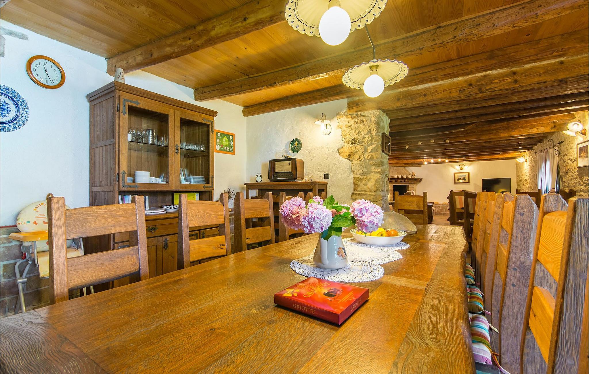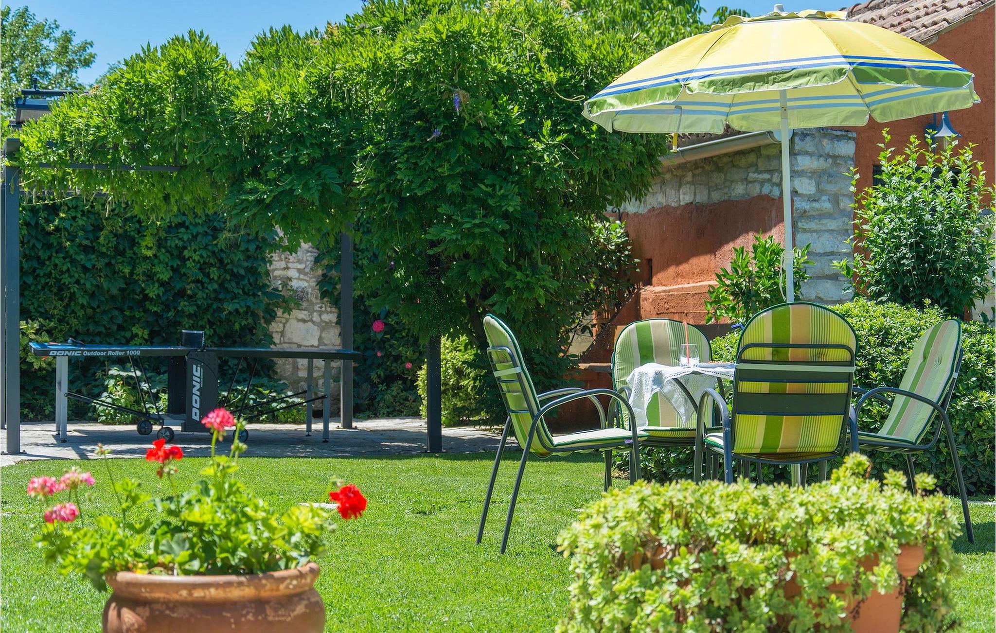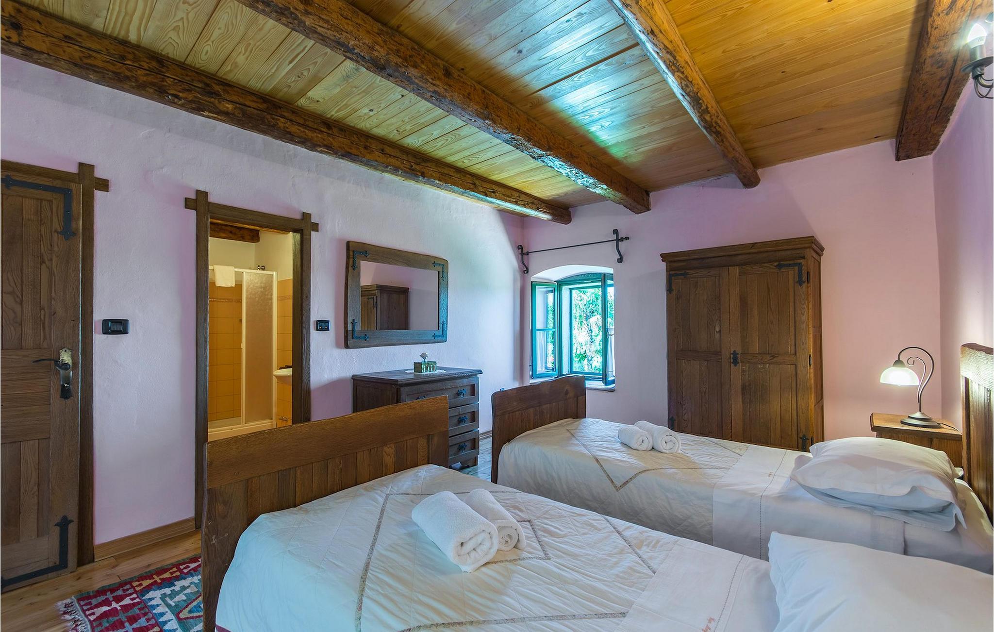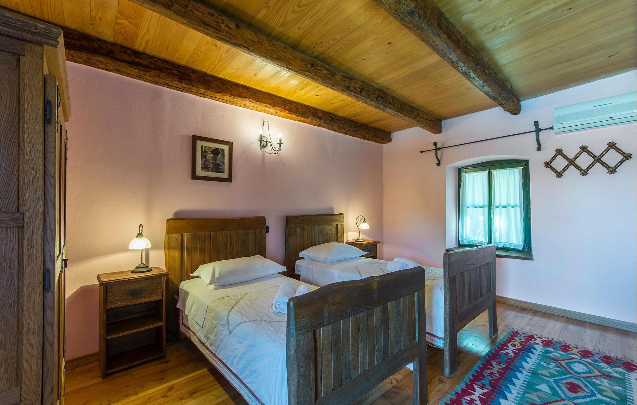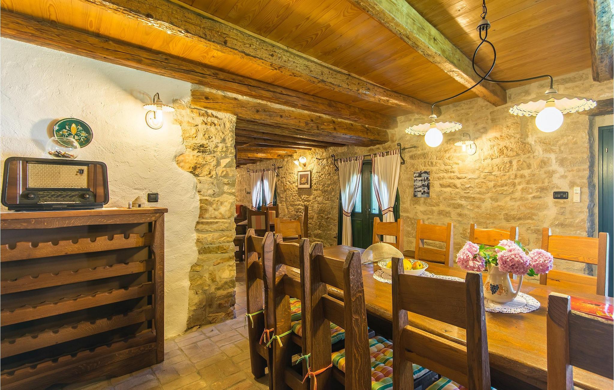 Det fortelles at sjørøverkapteinen Sir Henry Morgan på 1600-tallet plyndret Karibia, og på flukt fra loven seilte han så langt som til Lim Bay og landsbyen Mrgani, der han gjemte skatten sin. Den over hundre år gamle, ombygde villaen bærer fortsatt preg av den gamle kapteinen med sine steinvegger, bevisst avskallet murstein og puss på innerveggene, eikebjelker og antikk innredning og møbler. Kanskje er historien om kaptein Morgan og skatten hans bare et eventyr, men ferien du drømmer om kan bli virkelighet når du bestiller Villa Capt Morgan. I villaens første etasje er det en romslig stue med peis, kjøkken og spisestue i åpen planløsning. I første etasje er det et soverom med dobbeltseng og eget bad. Første etasje er delt i to deler, hver med separate trapper. Den venstre delen inneholder to soverom, ett med enkeltseng og ett med dobbeltseng, begge med eget bad. I den høyre delen av øverste etasje er det et stort hovedsoverom kalt "Captain's Room", som har eget bad med boblebad. På utsiden av villaen er det en stor uteplass med svømmebasseng og mye middelhavsgrønt. I hagen vokser det også et hundre år gammelt morbærtre som gir behagelig skygge på varme sommerdager. Hvis du reiser med barn, vil du sette stor pris på denne gårdsplassen, som byr på rikelig med plass til ubekymret lek. For ekstra moro har villaen bordtennis, bordfotball, basketballkurv og dart. På gårdsplassen er det også en stor, overbygd spiseplass med en stor peis der du kan tilberede et herlig familiemåltid og nyte det sammen. Her kan du virkelig slappe av og nyte freden og roen du drømmer om. Gjør drømmene til virkelighet ved å bestille Villa Capt Morgan med en gang, og unn deg selv den ferien du fortjener.Mrgani er en liten, rolig landsby over det istriske geologiske området Limkanalen, bare noen få kilometer fra kystbyen Rovinj. Dette fredelige og avslappende området er omgitt av grønne jorder og skoger, langt unna de store turistsentrene, men likevel nært nok hvis du vil utforske. Rovinj ligger bare 30 minutter unna med bil, og du vil nyte hvert minutt av kjøreturen gjennom det pittoreske, kuperte landskapet. Når du nærmer deg Rovinj, vil du umiddelbart bli fortryllet av byens skjønnhet, spesielt i solnedgangen, når du kan se fargerike hus på en kupert halvøy omgitt av varme farger fra den solkyssede sommerhimmelen og det krystallblå havet. Rovinj er en virkelig romantisk by. Ta en spasertur gjennom de smale steingatene som slynger seg sakte oppover til toppen av åsen der den gamle Eufemia-kirken fra 900-tallet ligger. Kirkeplatået byr på en vakker utsikt. Hvis du klatrer opp til toppen av kirketårnet, har du fri utsikt over hele byen og området rundt. I Rovinj finner du mange flotte restauranter og bistroer som vil tilfredsstille enhver gastronomisk entusiast. Istrien er godt forbundet med landeveier, slik at du enkelt kan utforske området. Planlegg dagsturer til kyst- og innlandsbyer som Pula, Groznjan, Motovun, Vodnjan, Porec og Novigrad, og benytt anledningen til å besøke Birjuni nasjonalpark med båt.