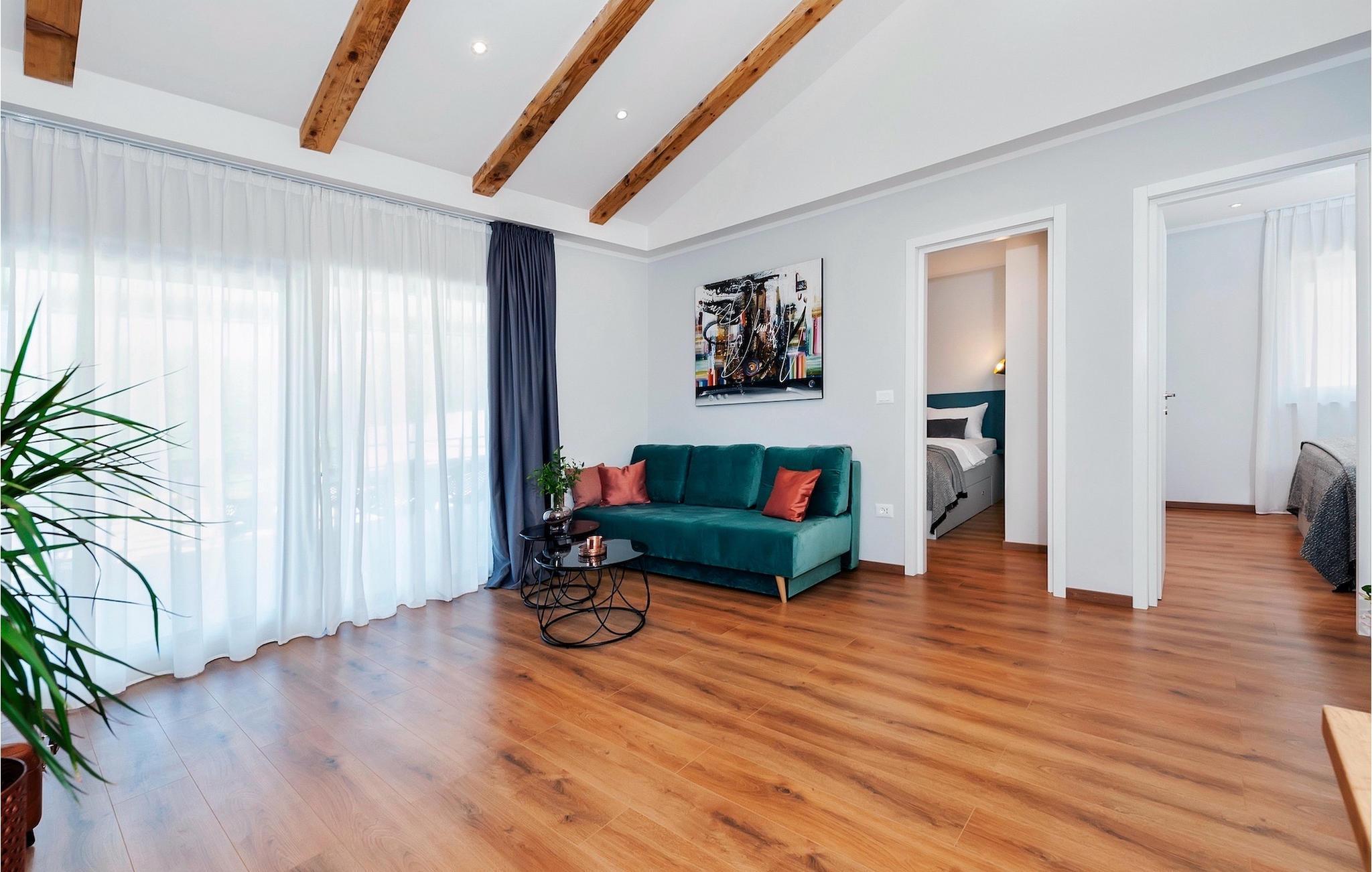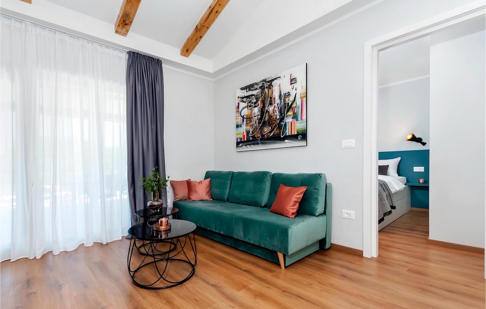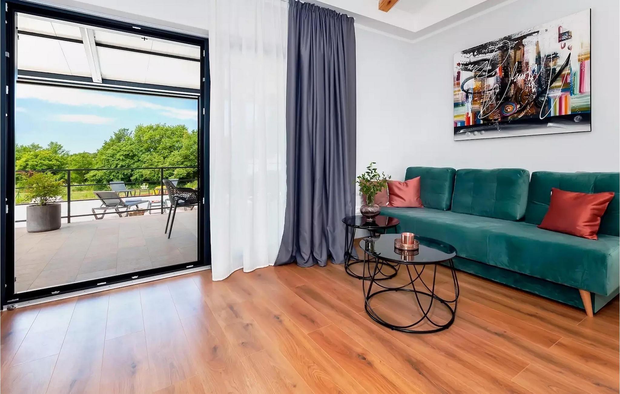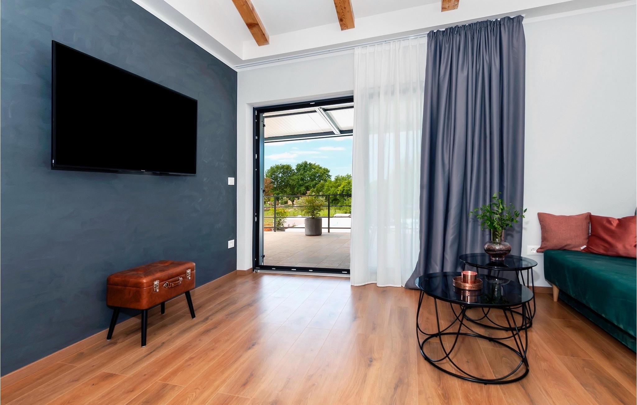 Villa Jolanda Rovinj ligger i den fortryllende byen Rovinj på vestkysten av Istria. Denne vakre villaen i første etasje er ideell for 4 personer som ønsker å tilbringe en herlig ferie nær sjøen og byen. Det forfriskende bassenget er husets hjerte og stedet der du kan slappe av og ha det gøy. Nyt den kroatiske solen på en av solsengene ved bassenget, hopp i det kjølige vannet for å friske deg opp og få en sommerbrun farge som du kan ta med deg hjem som en suvenir. På den overbygde terrassen med spisebord kan du spise frokost eller grille. En gassgrill er tilgjengelig for dette formålet. I hagen er det trampoline, minifotballmål og badminton for å holde de minste underholdt. Når du kommer inn i villaen fra terrassen, befinner du deg i en åpen, smakfullt innredet stue med fullt utstyrt kjøkken og spiseplass. Her er det mange små detaljer som fanger blikket. De to komfortable soverommene med koselige dobbeltsenger innbyr til avslappende netter, og de to moderne badene blir din egen lille velværeoase.