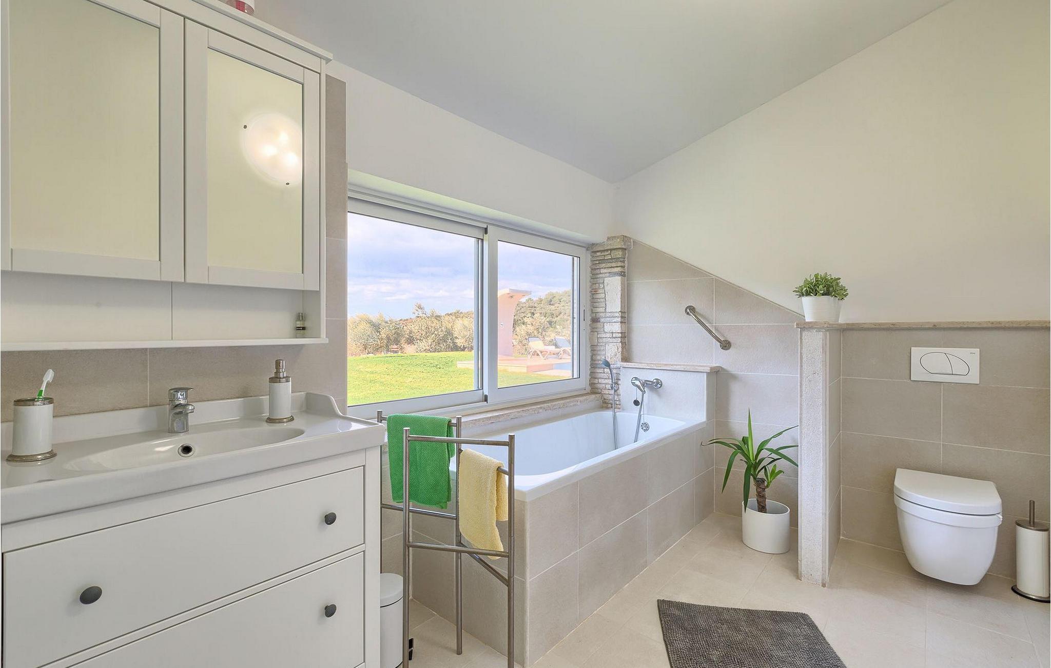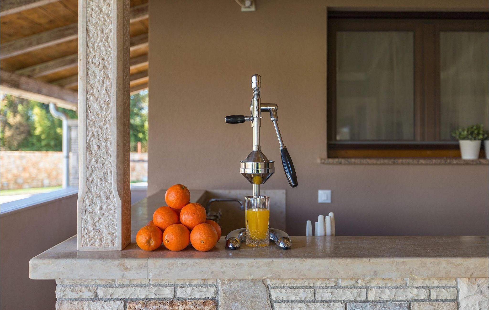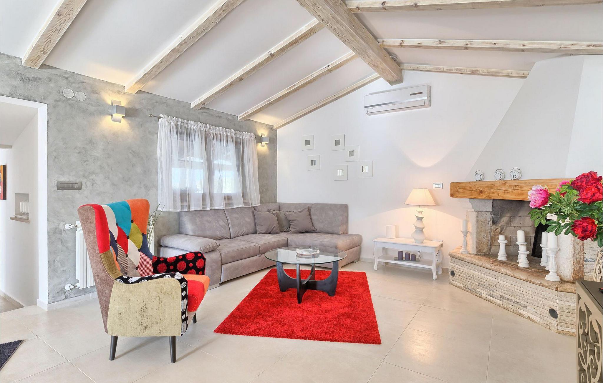 Denne flotte villaen ligger i Rovinj, bare ca. én kilometer fra sjøen. Bak villaens tradisjonelle steinvegger skjuler det seg et totalrenovert, luksuriøst interiør med moderne møbler. Fargerike detaljer bidrar til den luksuriøse følelsen, noe som er tydelig så snart du kommer inn i villaen. Villaen er i én etasje og har plass til maksimalt 4+1 personer, noe som gjør den til det perfekte valget for en avslappende familieferie. I denne villaen finner du en luksuriøs stue med fullt utstyrt kjøkken og spiseplass. Herfra har du direkte utgang til kjøkkenet og uteserveringen. De to soverommene i lysegrå farger og fargerike detaljer bidrar til den avslappende følelsen. Det er også to bad, hvorav det ene er et en-suite-bad. Fra badekaret kan du nyte en fantastisk utsikt over omgivelsene. Denne villaen har en stor hage med privat basseng omgitt av fantastisk natur, og er det ideelle valget for deg som ønsker å flykte fra hverdagens stress. For ekstra komfort er det en herlig benk ved siden av grillen i hagen, i tillegg til 2 dovenposer og en lekeplass. Du finner utstyr til badminton og vannpolo i villaen. Hvis du ønsker å dra på utflukt og utforske omgivelsene, kan du leie sykler, vannscootere, yachter og sportsbiler etter avtale med eierne.Villa Dioniz ligger bare 1 km fra sjøen i Rovinj. Villaen ligger i et rolig nabolag, omgitt av vakker, grønn natur og jordbruksland. Det ideelle stedet å flykte fra det stressende bylivet! En gang en liten fiskerlandsby, i dag et populært feriemål med en rik kulturarv! De sjarmerende smugene i denne middelalderbyen skjuler mange gallerier, restauranter, barer og kafeer. Byen ligger bare 40 km fra Pula og er kjent for sitt gunstige og behagelige milde klima. Hele kysten med sine 22 øyer er et naturreservat.