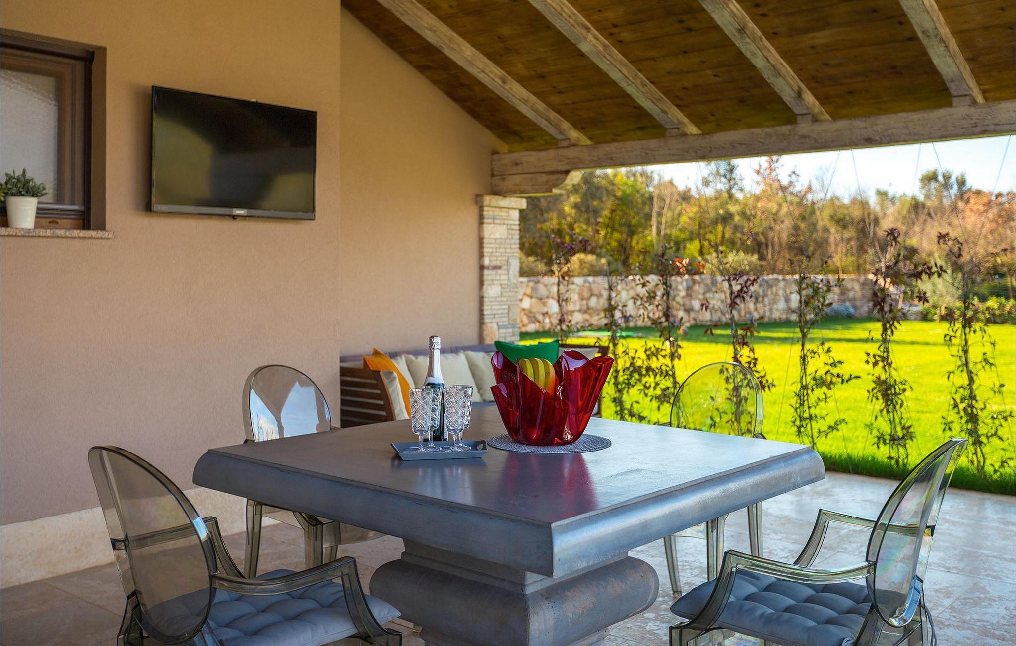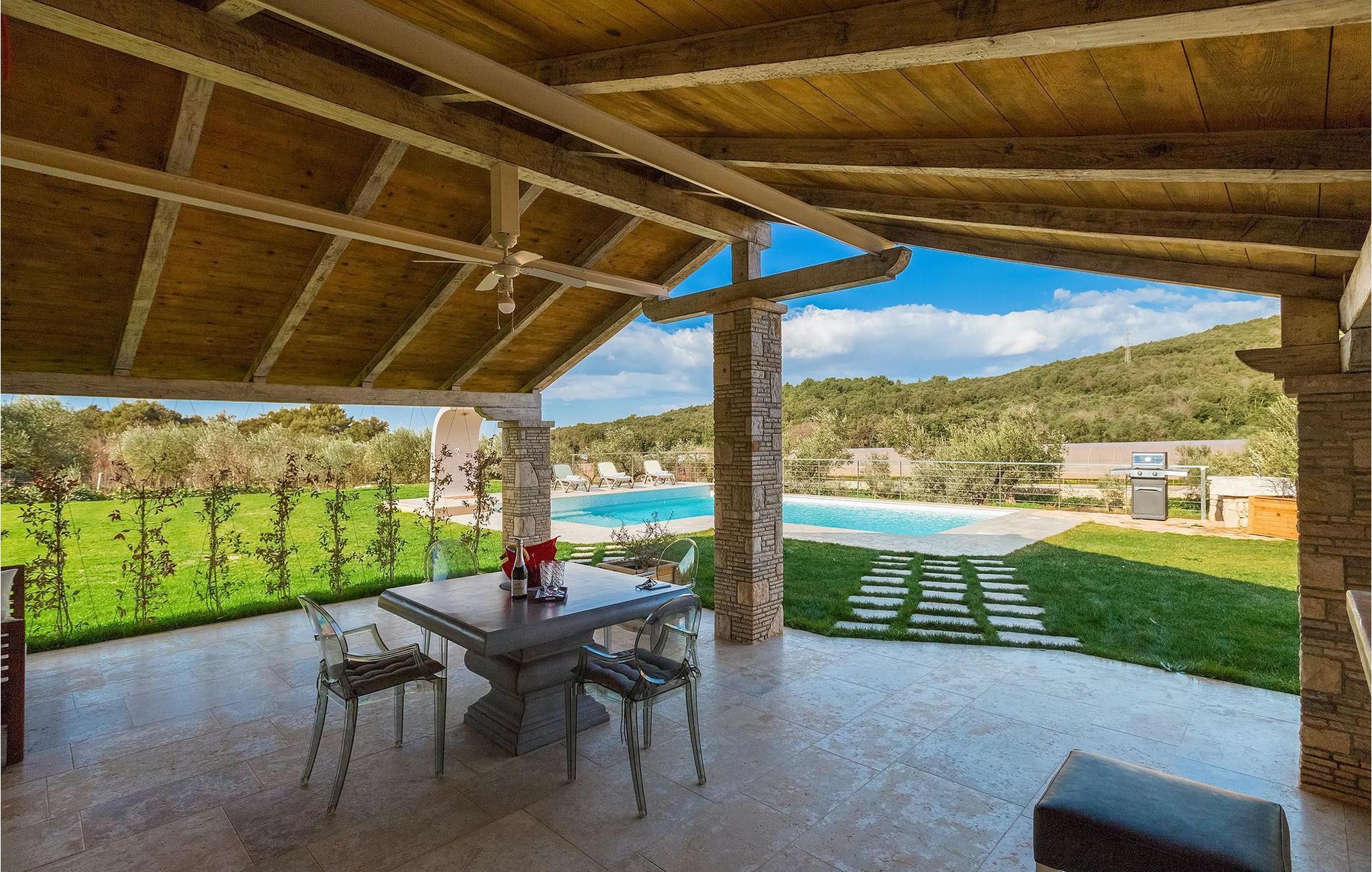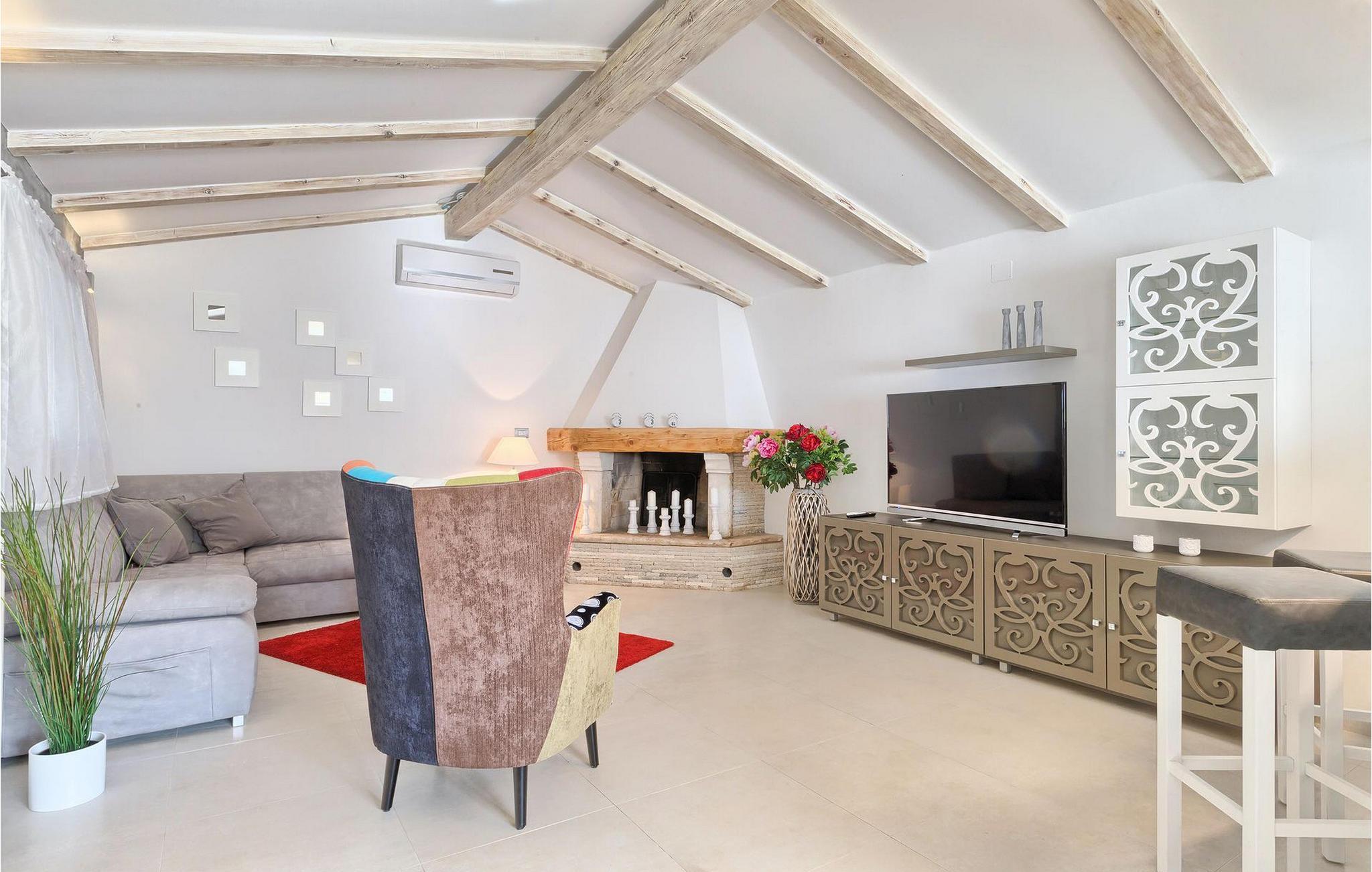 Denne flotte villaen ligger i Rovinj, bare ca. én kilometer fra sjøen. Bak villaens tradisjonelle steinvegger skjuler det seg et totalrenovert, luksuriøst interiør med moderne møbler. Fargerike detaljer bidrar til den luksuriøse følelsen, noe som er tydelig så snart du kommer inn i villaen. Villaen er i én etasje og har plass til maksimalt 4+1 personer, noe som gjør den til det perfekte valget for en avslappende familieferie. I denne villaen finner du en luksuriøs stue med fullt utstyrt kjøkken og spiseplass. Herfra har du direkte utgang til kjøkkenet og uteserveringen. De to soverommene i lysegrå farger og fargerike detaljer bidrar til den avslappende følelsen. Det er også to bad, hvorav det ene er et en-suite-bad. Fra badekaret kan du nyte en fantastisk utsikt over omgivelsene. Denne villaen har en stor hage med privat basseng omgitt av fantastisk natur, og er det ideelle valget for deg som ønsker å flykte fra hverdagens stress. For ekstra komfort er det en herlig benk ved siden av grillen i hagen, i tillegg til 2 dovenposer og en lekeplass. Du finner utstyr til badminton og vannpolo i villaen. Hvis du ønsker å dra på utflukt og utforske omgivelsene, kan du leie sykler, vannscootere, yachter og sportsbiler etter avtale med eierne.Villa Dioniz ligger bare 1 km fra sjøen i Rovinj. Villaen ligger i et rolig nabolag, omgitt av vakker, grønn natur og jordbruksland. Det ideelle stedet å flykte fra det stressende bylivet! En gang en liten fiskerlandsby, i dag et populært feriemål med en rik kulturarv! De sjarmerende smugene i denne middelalderbyen skjuler mange gallerier, restauranter, barer og kafeer. Byen ligger bare 40 km fra Pula og er kjent for sitt gunstige og behagelige milde klima. Hele kysten med sine 22 øyer er et naturreservat.