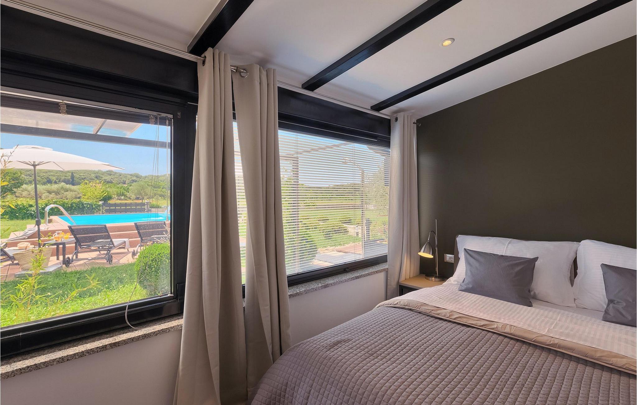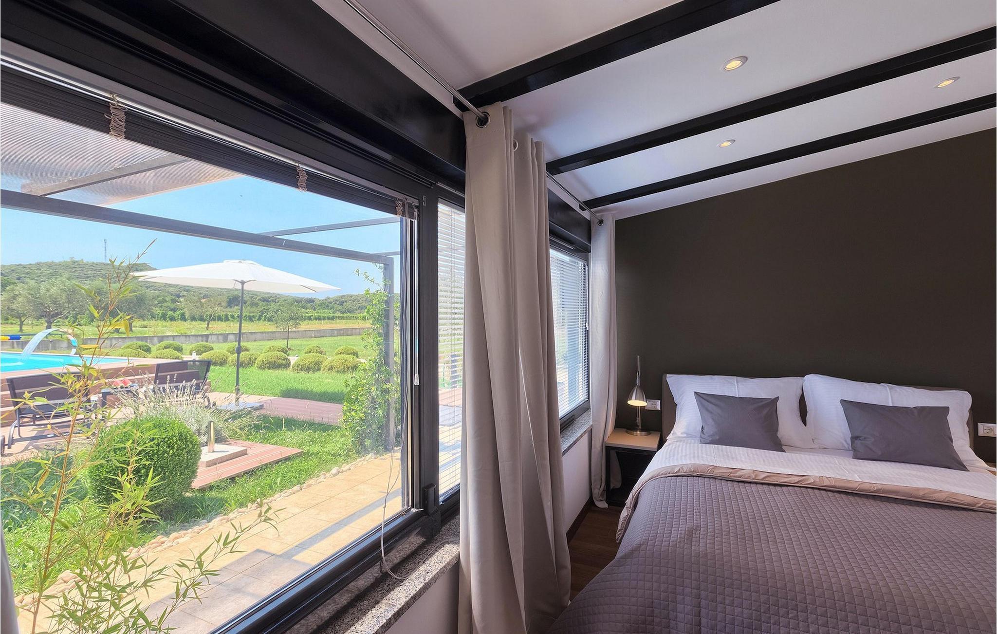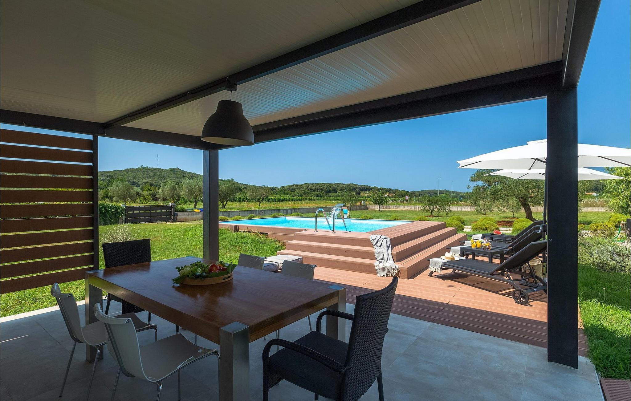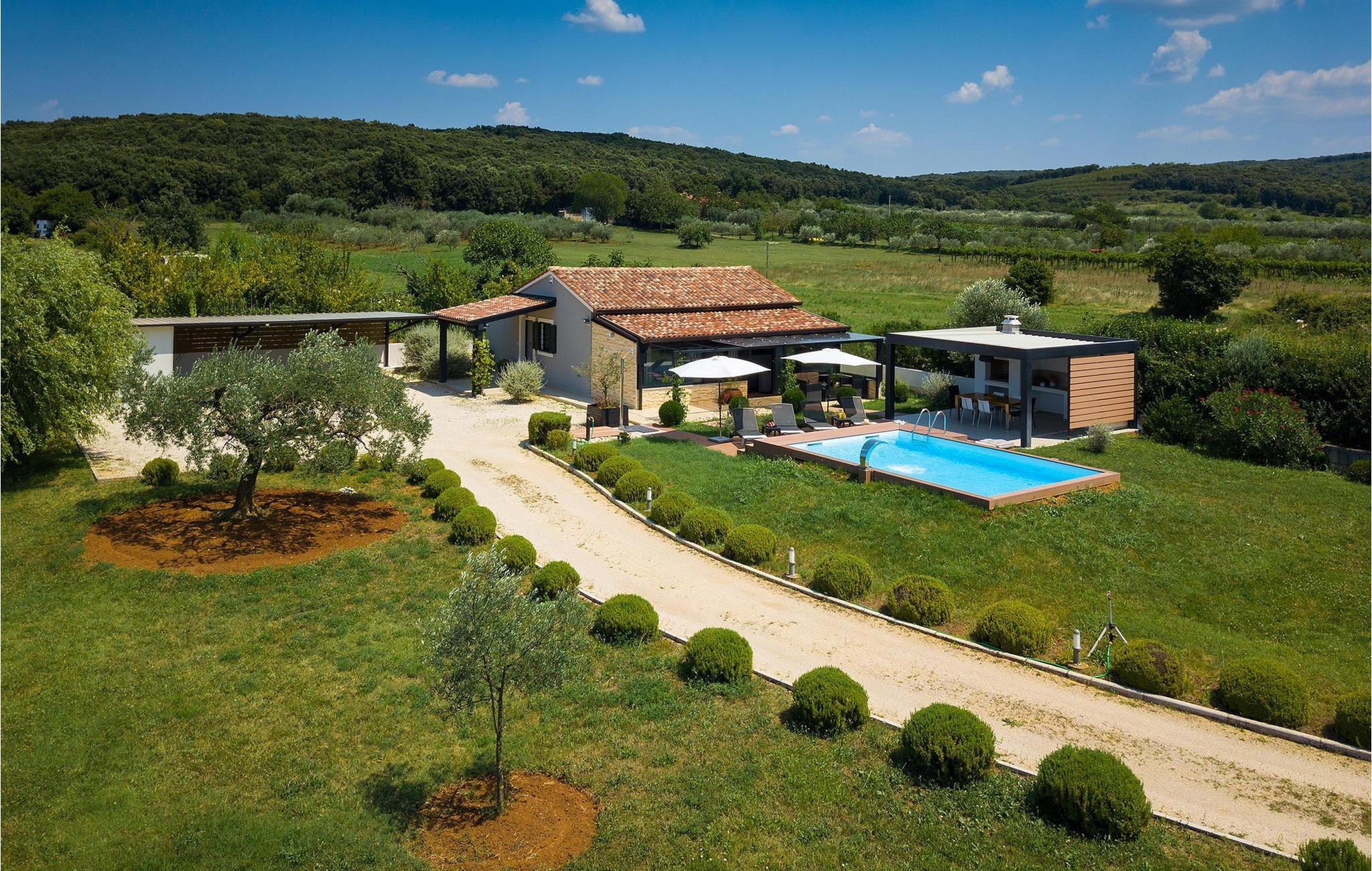 Denne vakre villaen ligger nær sjøen i en rolig, landlig forstad til den romantiske byen Rovinj. Villa Sessa ligger på en tomt på mer enn 2000 m2, og tilbyr perfekt innkvartering for opptil 4 personer. Den består av to soverom, hvert med dobbeltseng og TV. Villaen er omsorgsfullt og stilfullt innredet og har 6 sitteplasser i spisestuen samt stereoanlegg og satellitt-TV i stuen. Det fullt utstyrte kjøkkenet har alt du trenger for å lage mat på ferien. På den overbygde terrassen er det også en kullgrill og et spisebord. Det vakre private bassenget og utendørsdusjen sørger for forfriskninger på varme sommerdager. Villaen har klimaanlegg og overbygd privat parkering, og den flotte Villa Sessa ligger bare 1 km fra sjøen i Rovinj. Villaen ligger i et rolig nabolag, omgitt av vakker, grønn natur og jordbruksland. Det ideelle stedet å flykte fra det stressende bylivet! En gang en liten fiskerlandsby, i dag et populært feriemål med en rik kulturarv! De sjarmerende smugene i denne middelalderbyen skjuler mange gallerier, restauranter, barer og kafeer. Byen ligger bare 40 km fra Pula og er kjent for sitt gunstige og behagelige milde klima. Hele kysten med sine 22 øyer er et naturreservat. Byen domineres av barokkirken St Euphemia, og fra tårnet har du en fantastisk panoramautsikt over hele byen. Rovinj byr på mange muligheter for en uforglemmelig ferie: tur- og sykkelstier, seiling, klatring, dykking, paragliding, tennis, arkeologiske monumenter, utmerkede kulinariske spesialiteter og vakre strender. Denne mystiske og romantiske gamlebyen er vel verdt et besøk!