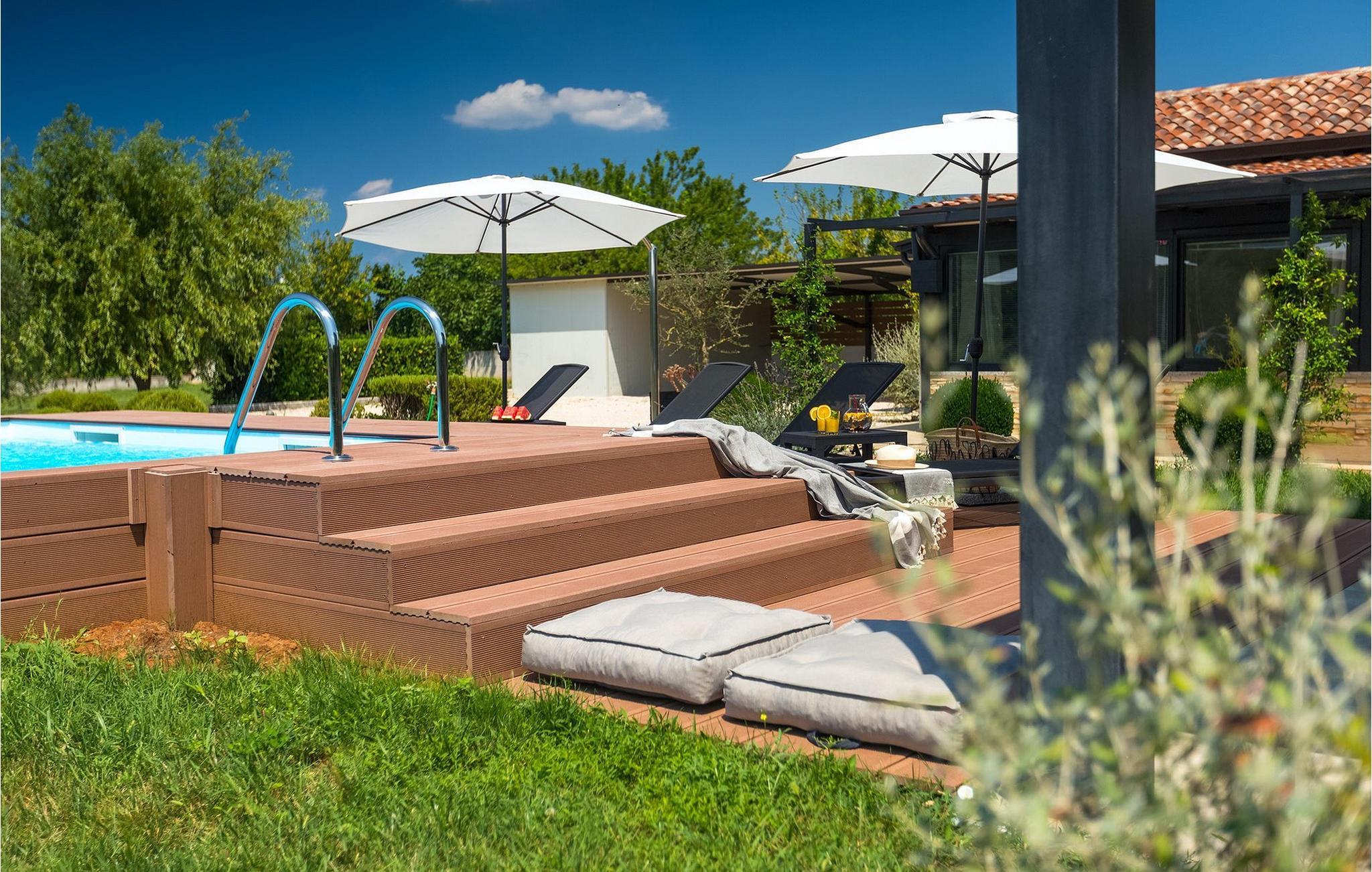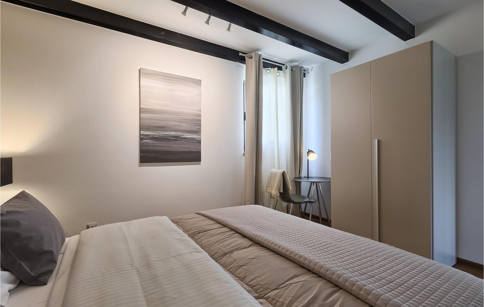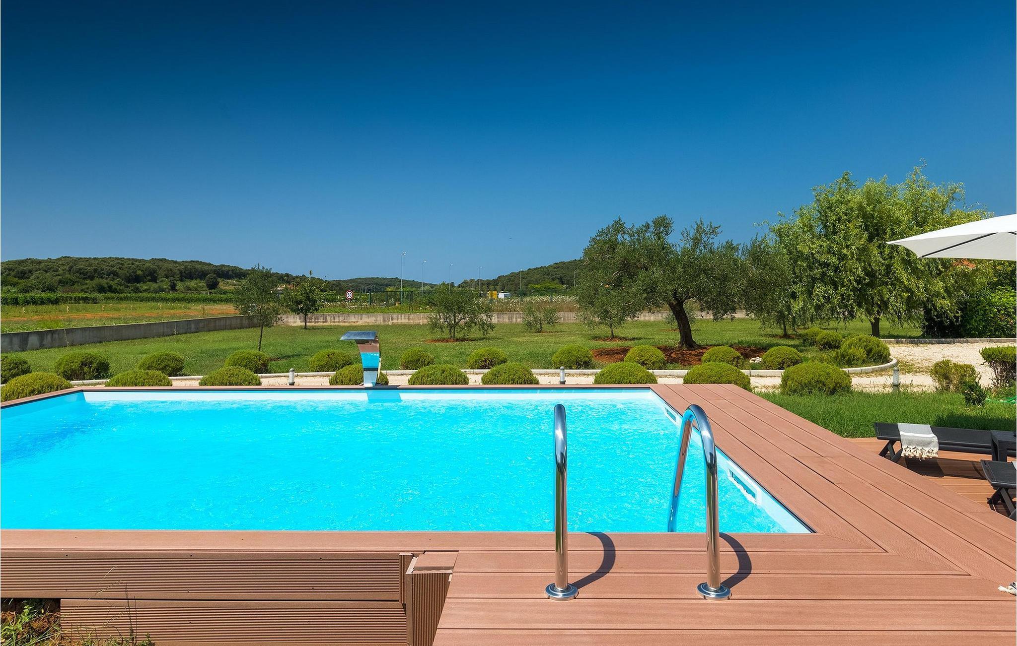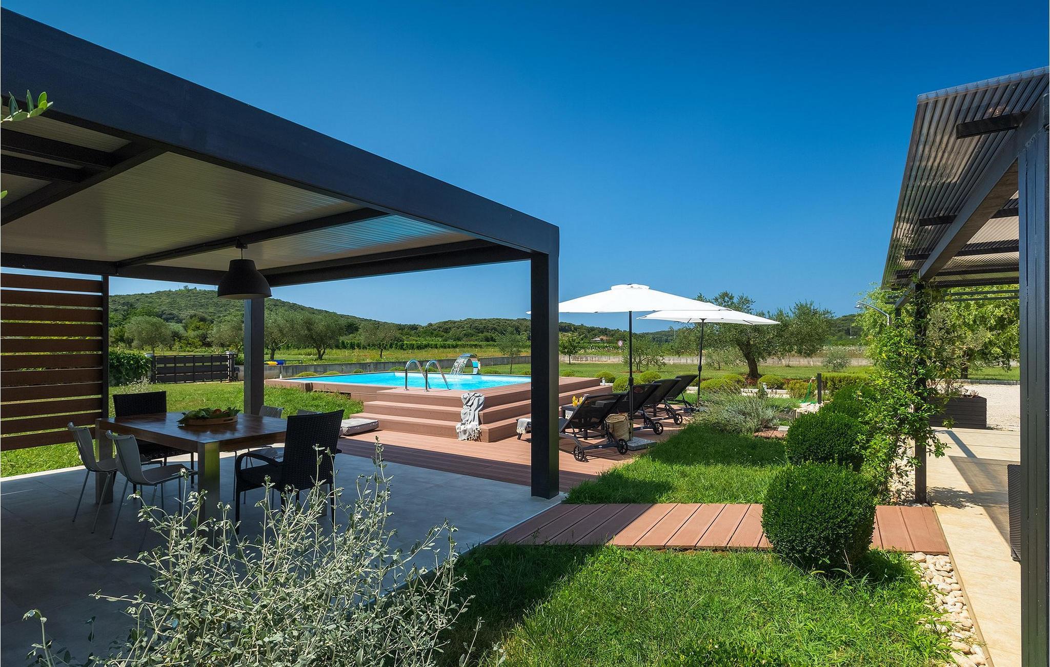 Denne vakre villaen ligger nær sjøen i en rolig, landlig forstad til den romantiske byen Rovinj. Villa Sessa ligger på en tomt på mer enn 2000 m2, og tilbyr perfekt innkvartering for opptil 4 personer. Den består av to soverom, hvert med dobbeltseng og TV. Villaen er omsorgsfullt og stilfullt innredet og har 6 sitteplasser i spisestuen samt stereoanlegg og satellitt-TV i stuen. Det fullt utstyrte kjøkkenet har alt du trenger for å lage mat på ferien. På den overbygde terrassen er det også en kullgrill og et spisebord. Det vakre private bassenget og utendørsdusjen sørger for forfriskninger på varme sommerdager. Villaen har klimaanlegg og overbygd privat parkering, og den flotte Villa Sessa ligger bare 1 km fra sjøen i Rovinj. Villaen ligger i et rolig nabolag, omgitt av vakker, grønn natur og jordbruksland. Det ideelle stedet å flykte fra det stressende bylivet! En gang en liten fiskerlandsby, i dag et populært feriemål med en rik kulturarv! De sjarmerende smugene i denne middelalderbyen skjuler mange gallerier, restauranter, barer og kafeer. Byen ligger bare 40 km fra Pula og er kjent for sitt gunstige og behagelige milde klima. Hele kysten med sine 22 øyer er et naturreservat. Byen domineres av barokkirken St Euphemia, og fra tårnet har du en fantastisk panoramautsikt over hele byen. Rovinj byr på mange muligheter for en uforglemmelig ferie: tur- og sykkelstier, seiling, klatring, dykking, paragliding, tennis, arkeologiske monumenter, utmerkede kulinariske spesialiteter og vakre strender. Denne mystiske og romantiske gamlebyen er vel verdt et besøk!