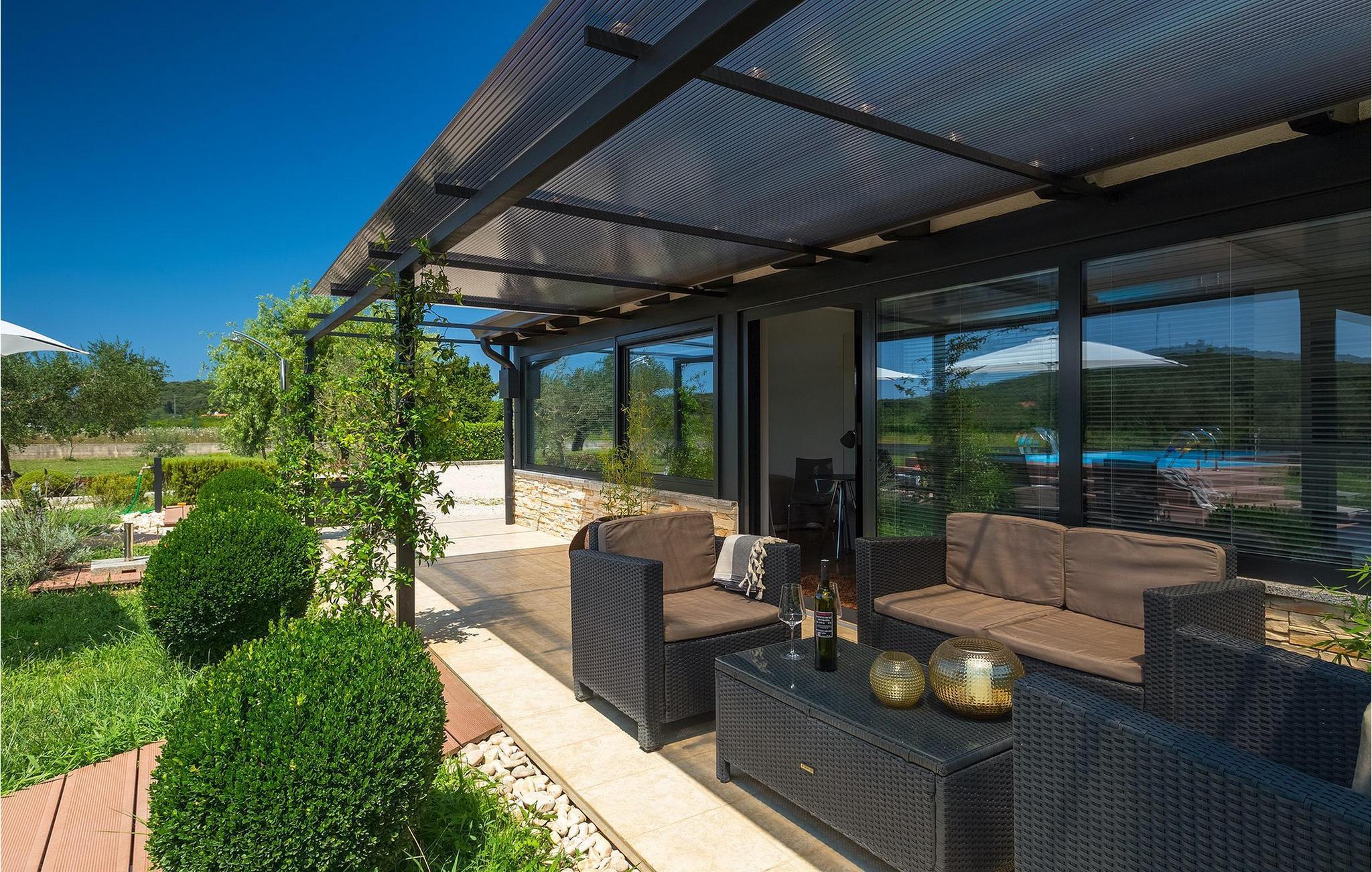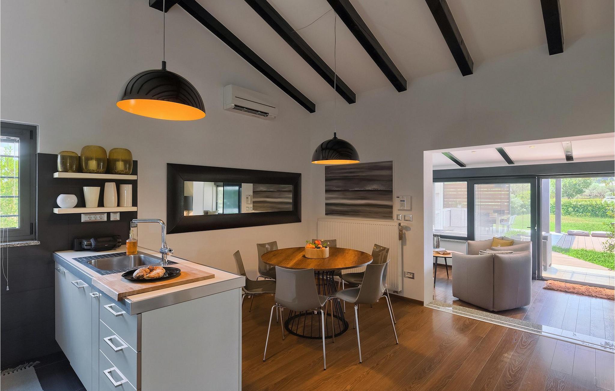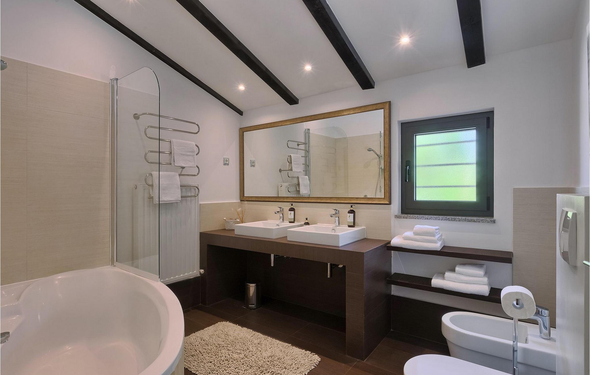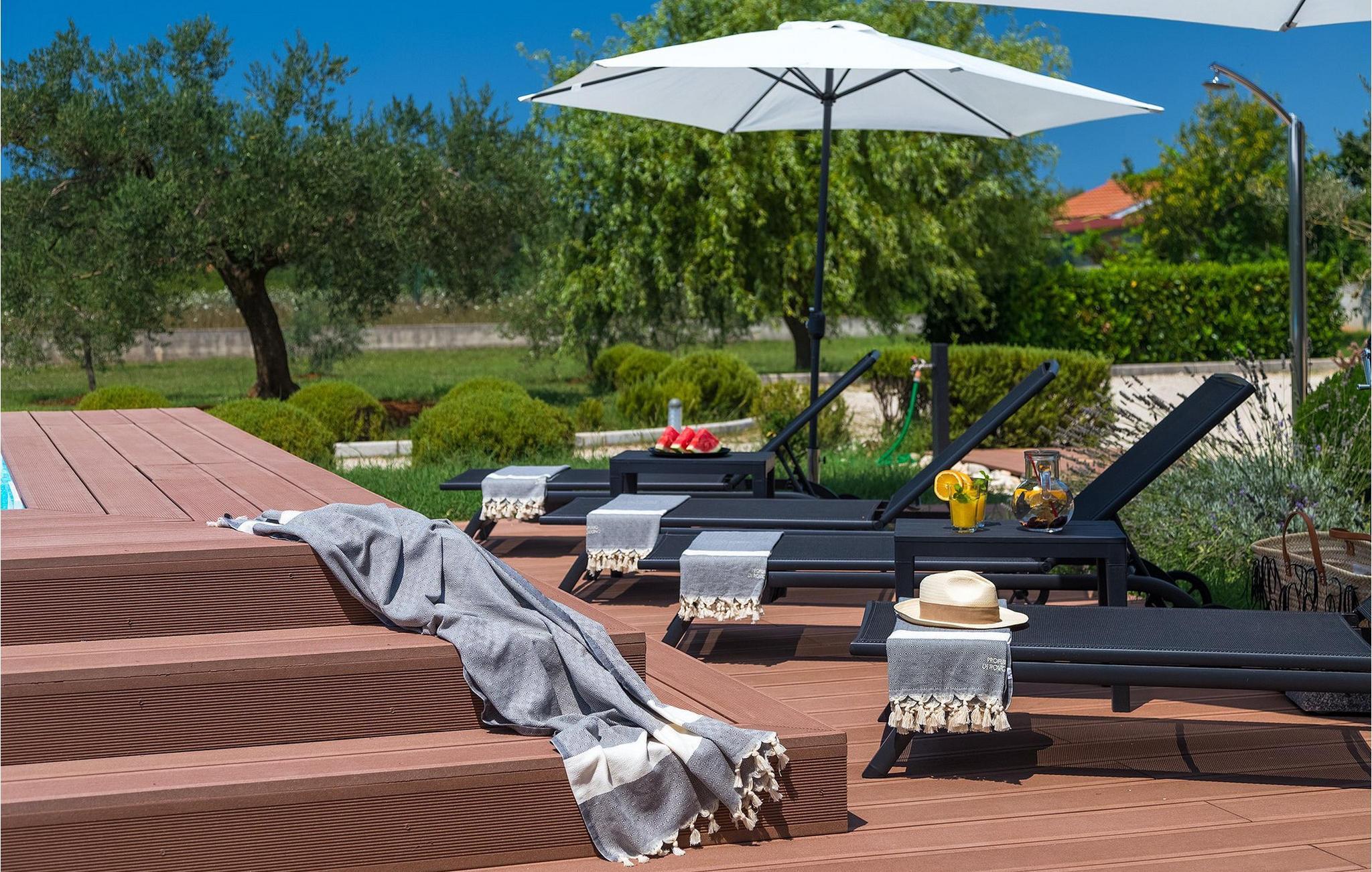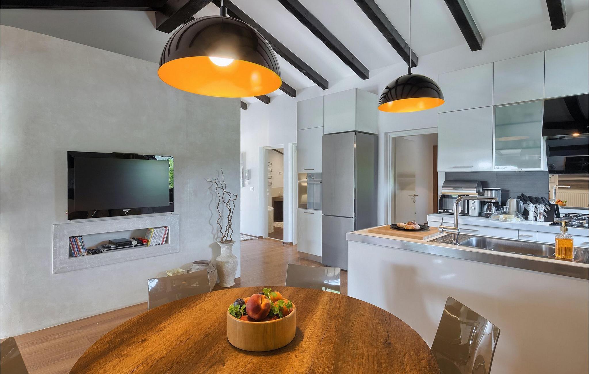 Denne vakre villaen ligger nær sjøen i en rolig, landlig forstad til den romantiske byen Rovinj. Villa Sessa ligger på en tomt på mer enn 2000 m2, og tilbyr perfekt innkvartering for opptil 4 personer. Den består av to soverom, hvert med dobbeltseng og TV. Villaen er omsorgsfullt og stilfullt innredet og har 6 sitteplasser i spisestuen samt stereoanlegg og satellitt-TV i stuen. Det fullt utstyrte kjøkkenet har alt du trenger for å lage mat på ferien. På den overbygde terrassen er det også en kullgrill og et spisebord. Det vakre private bassenget og utendørsdusjen sørger for forfriskninger på varme sommerdager. Villaen har klimaanlegg og overbygd privat parkering, og den flotte Villa Sessa ligger bare 1 km fra sjøen i Rovinj. Villaen ligger i et rolig nabolag, omgitt av vakker, grønn natur og jordbruksland. Det ideelle stedet å flykte fra det stressende bylivet! En gang en liten fiskerlandsby, i dag et populært feriemål med en rik kulturarv! De sjarmerende smugene i denne middelalderbyen skjuler mange gallerier, restauranter, barer og kafeer. Byen ligger bare 40 km fra Pula og er kjent for sitt gunstige og behagelige milde klima. Hele kysten med sine 22 øyer er et naturreservat. Byen domineres av barokkirken St Euphemia, og fra tårnet har du en fantastisk panoramautsikt over hele byen. Rovinj byr på mange muligheter for en uforglemmelig ferie: tur- og sykkelstier, seiling, klatring, dykking, paragliding, tennis, arkeologiske monumenter, utmerkede kulinariske spesialiteter og vakre strender. Denne mystiske og romantiske gamlebyen er vel verdt et besøk!