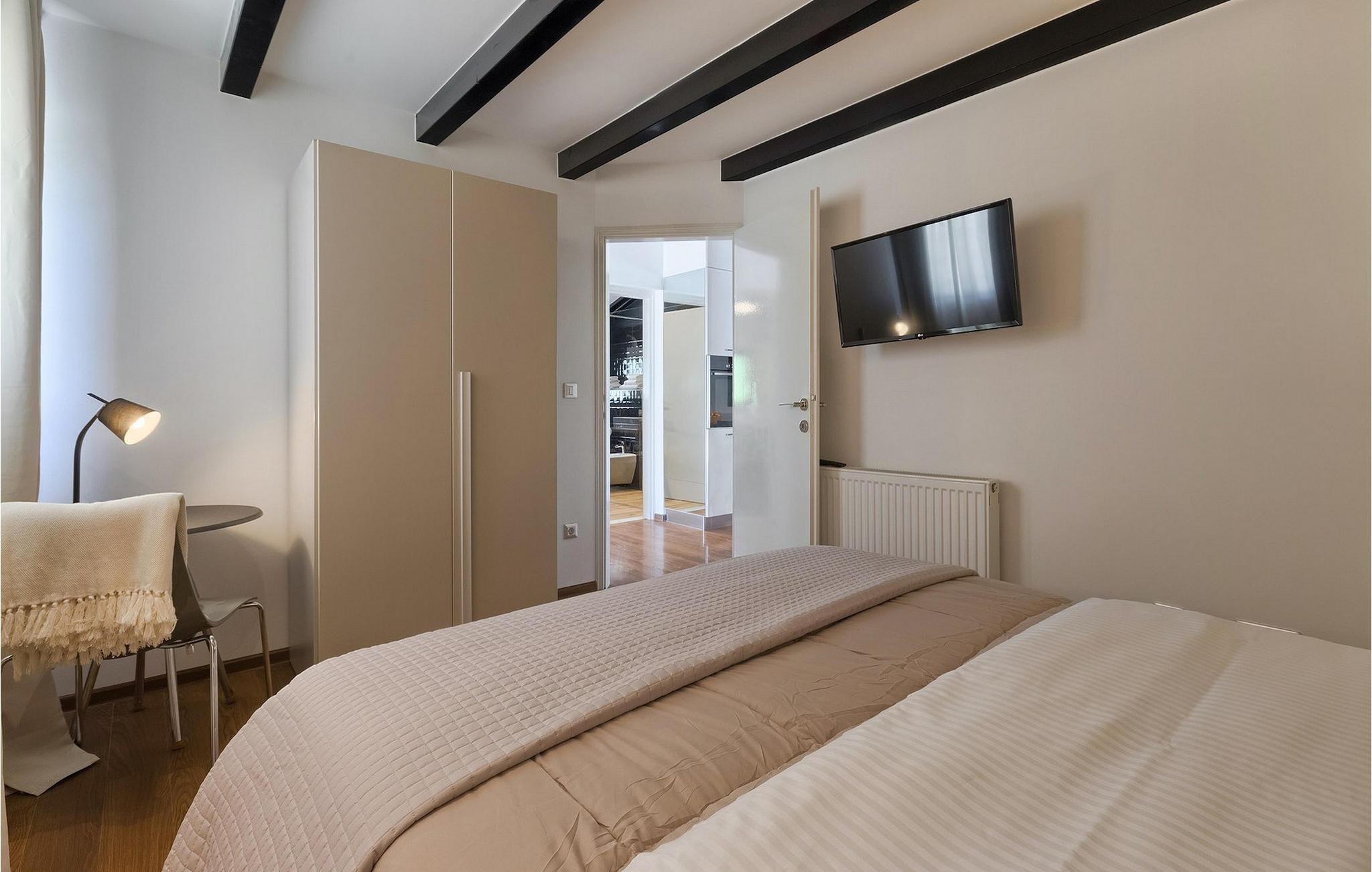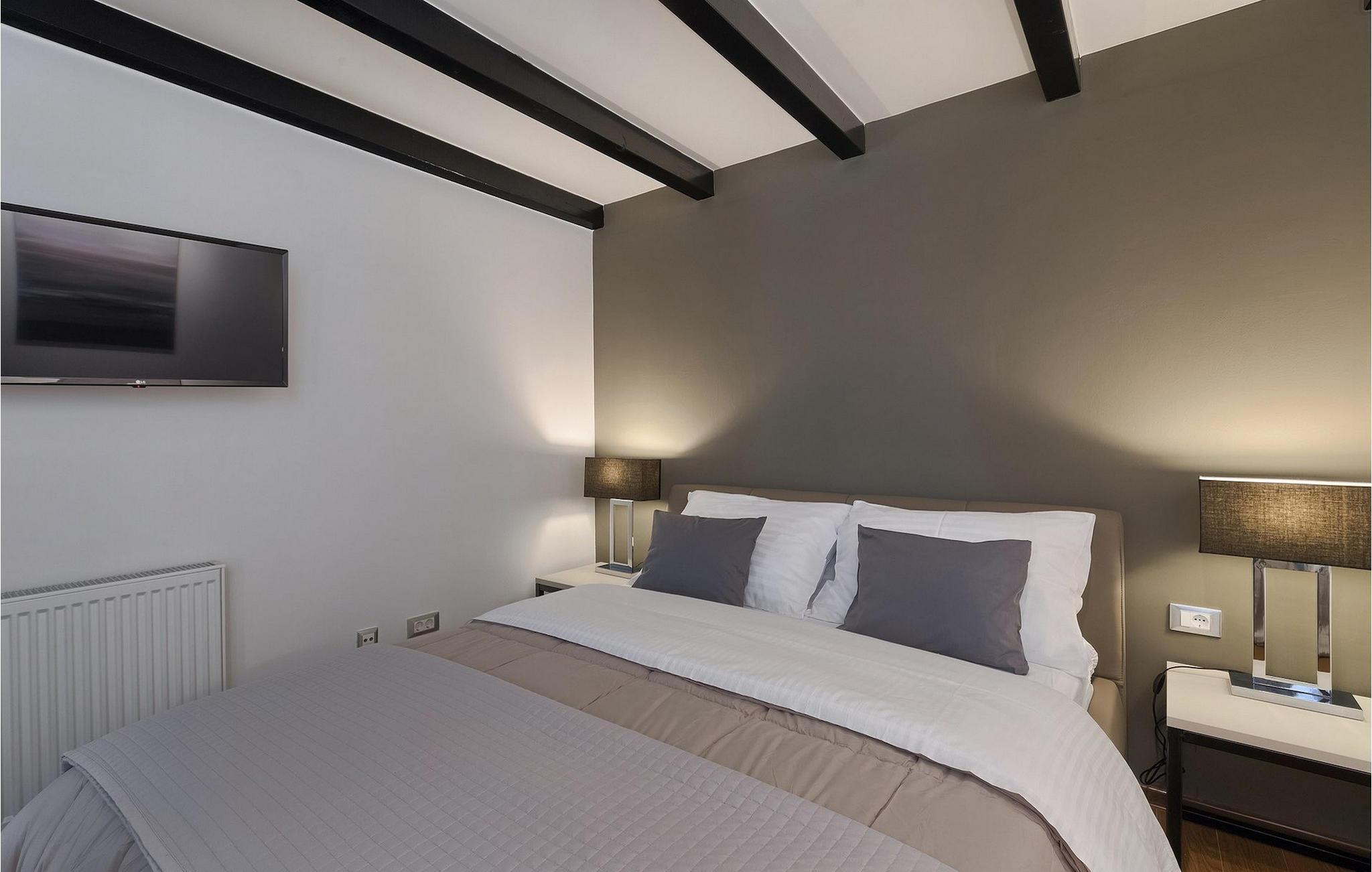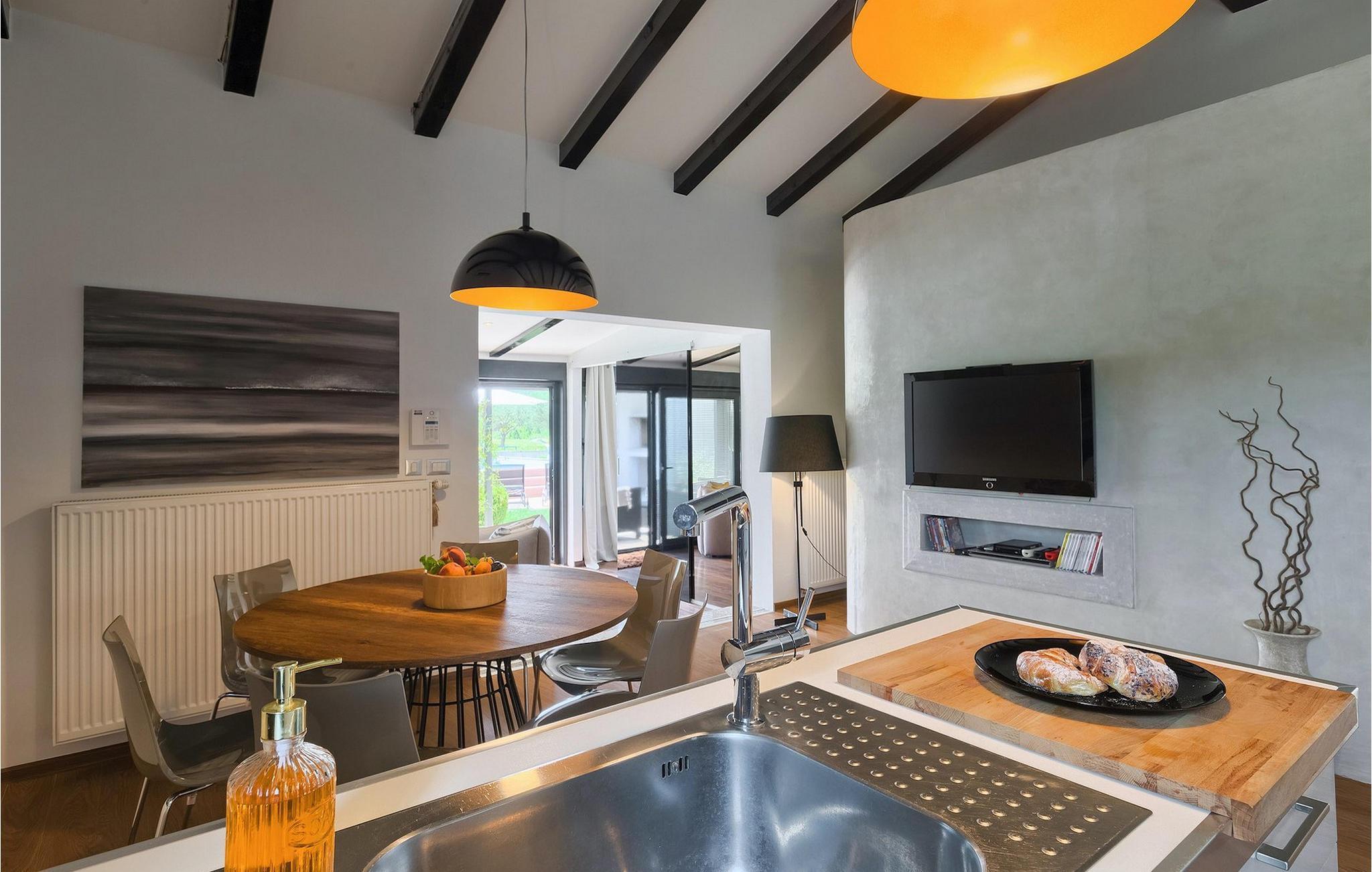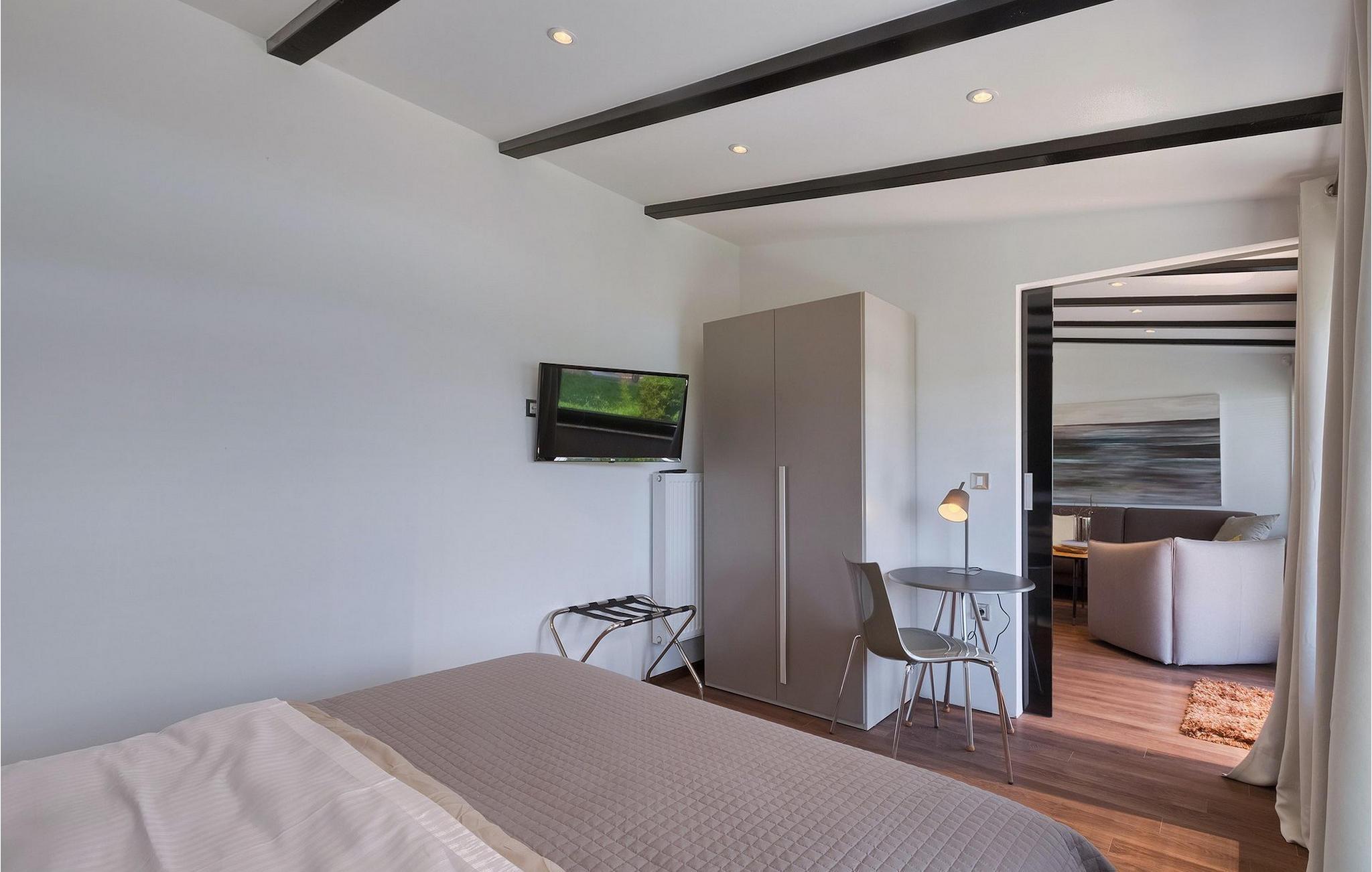 Denne vakre villaen ligger nær sjøen i en rolig, landlig forstad til den romantiske byen Rovinj. Villa Sessa ligger på en tomt på mer enn 2000 m2, og tilbyr perfekt innkvartering for opptil 4 personer. Den består av to soverom, hvert med dobbeltseng og TV. Villaen er omsorgsfullt og stilfullt innredet og har 6 sitteplasser i spisestuen samt stereoanlegg og satellitt-TV i stuen. Det fullt utstyrte kjøkkenet har alt du trenger for å lage mat på ferien. På den overbygde terrassen er det også en kullgrill og et spisebord. Det vakre private bassenget og utendørsdusjen sørger for forfriskninger på varme sommerdager. Villaen har klimaanlegg og overbygd privat parkering, og den flotte Villa Sessa ligger bare 1 km fra sjøen i Rovinj. Villaen ligger i et rolig nabolag, omgitt av vakker, grønn natur og jordbruksland. Det ideelle stedet å flykte fra det stressende bylivet! En gang en liten fiskerlandsby, i dag et populært feriemål med en rik kulturarv! De sjarmerende smugene i denne middelalderbyen skjuler mange gallerier, restauranter, barer og kafeer. Byen ligger bare 40 km fra Pula og er kjent for sitt gunstige og behagelige milde klima. Hele kysten med sine 22 øyer er et naturreservat. Byen domineres av barokkirken St Euphemia, og fra tårnet har du en fantastisk panoramautsikt over hele byen. Rovinj byr på mange muligheter for en uforglemmelig ferie: tur- og sykkelstier, seiling, klatring, dykking, paragliding, tennis, arkeologiske monumenter, utmerkede kulinariske spesialiteter og vakre strender. Denne mystiske og romantiske gamlebyen er vel verdt et besøk!