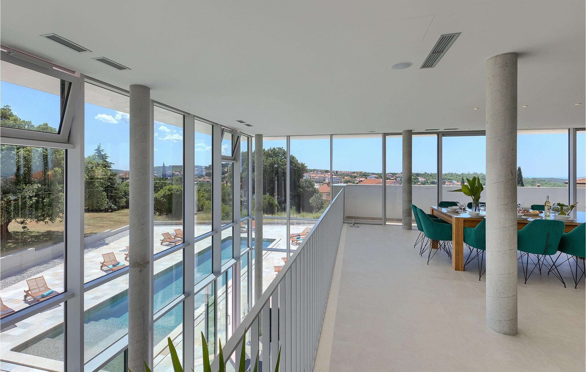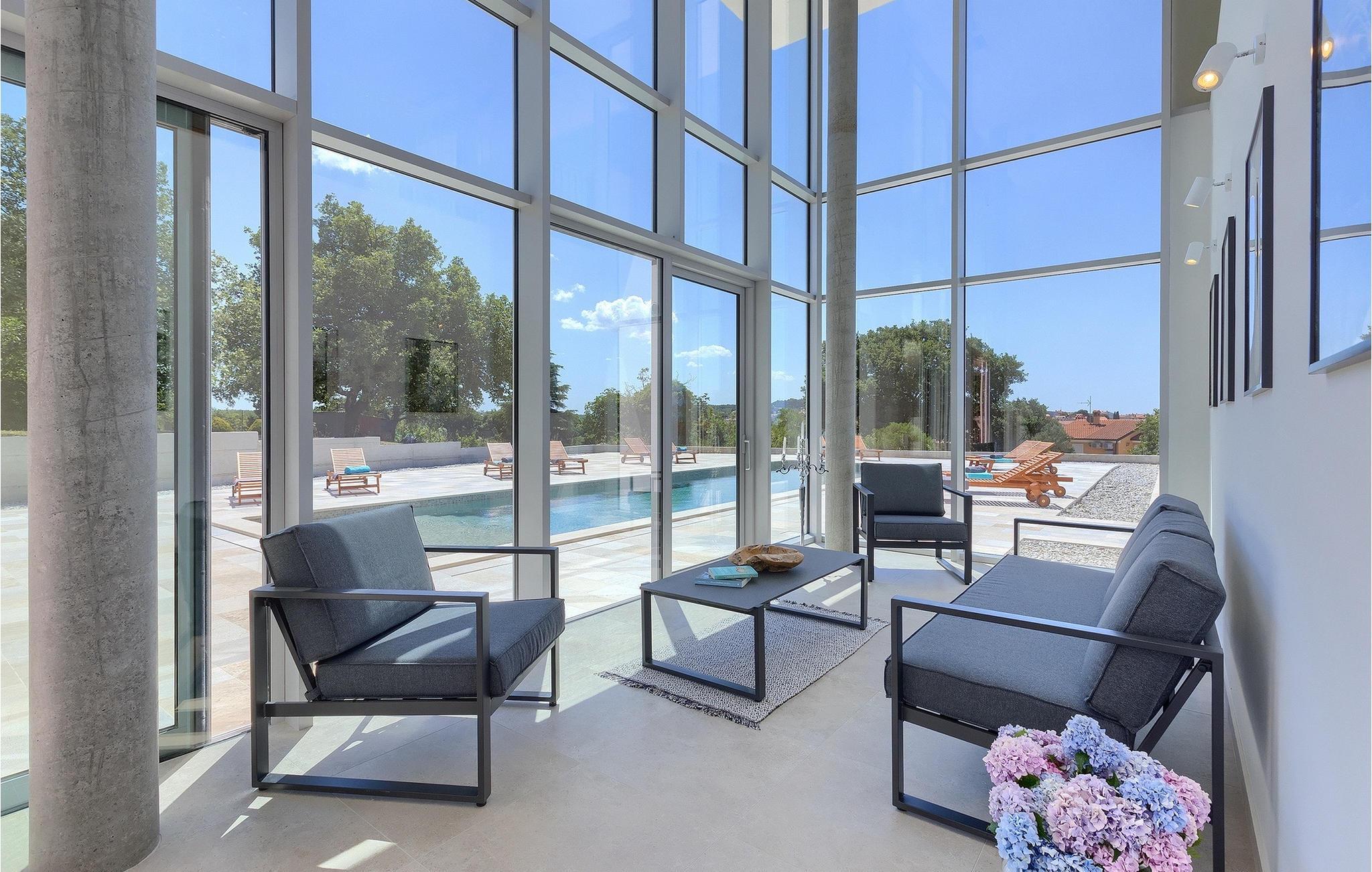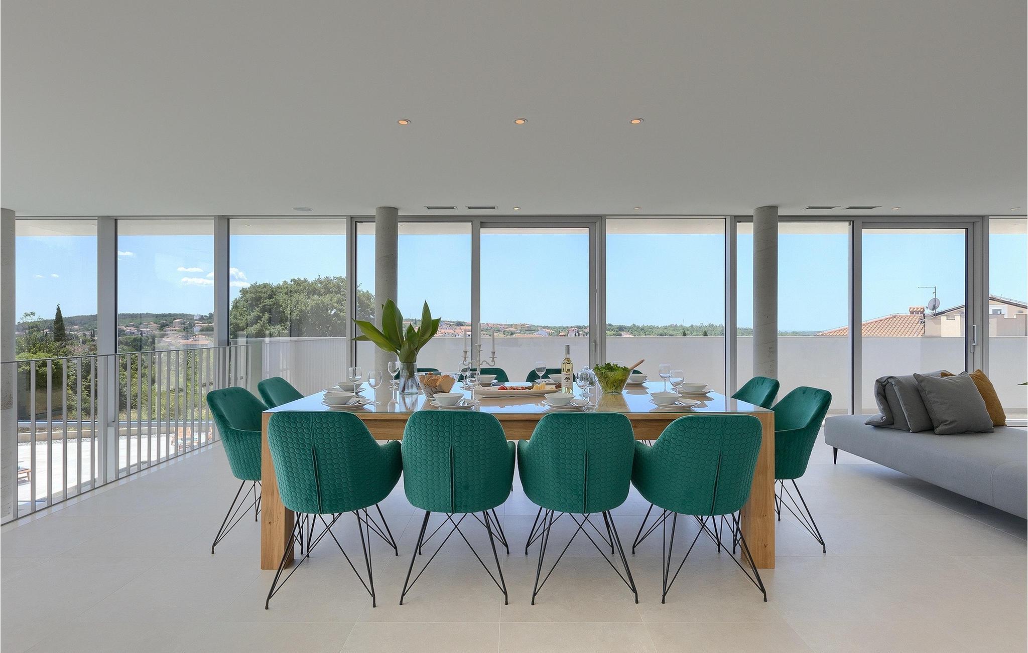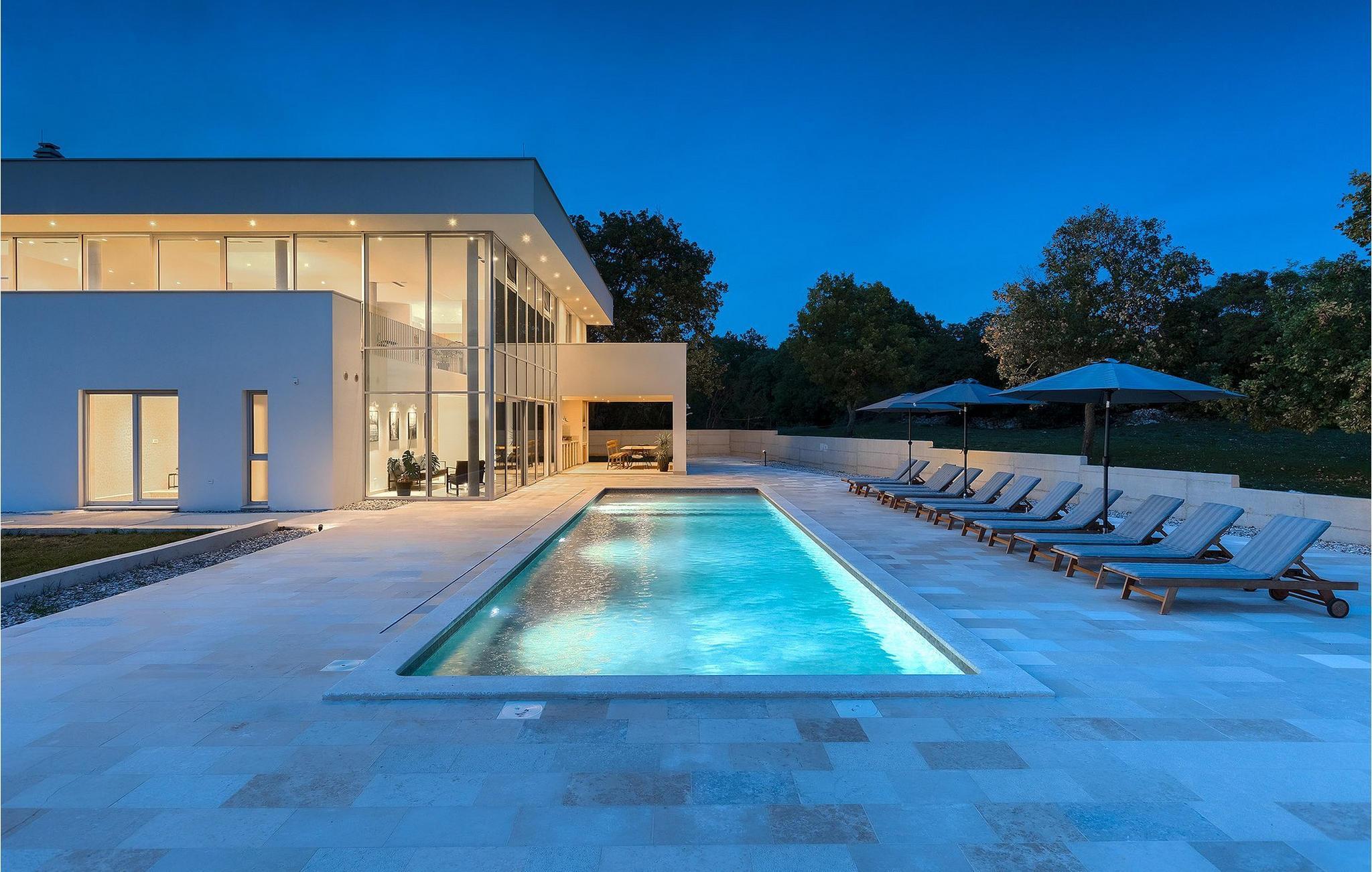 Fabelaktige Villa Koko ligger i utkanten av Rovinjsko Selo, en liten by i nærheten av Rovinj, og er det ideelle feriehuset for opptil 12 gjester som ønsker ren avslapning og komfort. Villaen har en romslig hage med et stort privat basseng, 12 koselige solsenger og en overbygd spiseplass med kullgrill, ideelt for utendørs servering på solfylte dager. Det 600 m2 store interiøret er fordelt på to etasjer og består av totalt 6 soverom, alle med eget bad og klimaanlegg. 5 av soverommene ligger i første etasje og ett i andre etasje. Det fullt utstyrte kjøkkenet med spiseplass og stuen ligger i øverste etasje, som gir en fantastisk utsikt over omgivelsene og havet. Store glassflater sørger for naturlig lys i interiøret, som er enkelt, men luksuriøst innredet. For mer avslappende stunder er det et stort innendørs boblebad og en badstue. For ekstra underholdning har villaen et klimaregulert kinorom utstyrt med en stor, romslig sofa med ligge- og sitteplasser. Den 75-tommers smart-TV-en med høykvalitetsbilde og surroundhøyttalere forsterker det realistiske inntrykket av hver film. Sammen med varmt popcorn fra automaten i kinosalen er underholdningen garantert! Villa Koko tilbyr alt du trenger for en bekymringsløs ferie i ditt eget paradis, samtidig som alle fasiliteter som restauranter og supermarkeder ligger innen gangavstand. Limbukten ligger bare en kort kjøretur unna, og det samme gjelder den romantiske byen Rovinj og strendene rundt. Denne villaen ligger i et idyllisk landskap i den lille landsbyen Rovinjsko selo, en rolig forstad til Rovinj. Landsbyen er preget av tradisjonelt bygde steinhus og de vakre, grønne åkrene, vinmarkene og skogene rundt. Den flotte beliggenheten i forstaden er ideell for daglige utflukter til gamlebyen i Rovinj og dens uovertrufne sjarm. Føl byens magi i de smale middelaldergatene og de varme middelhavsomgivelsene. Fra Eufemia-kirken har du den vakreste utsikten over byen. Andrija, fransiskanerklosteret og bymuren, kan du besøke andre severdigheter. Rovinj er en av de mest romantiske byene i Kroatia, med vakre solnedganger som tar pusten fra deg. Området rundt byen byr også på en rekke fritidsaktiviteter: Sykling, ridning, jogging...