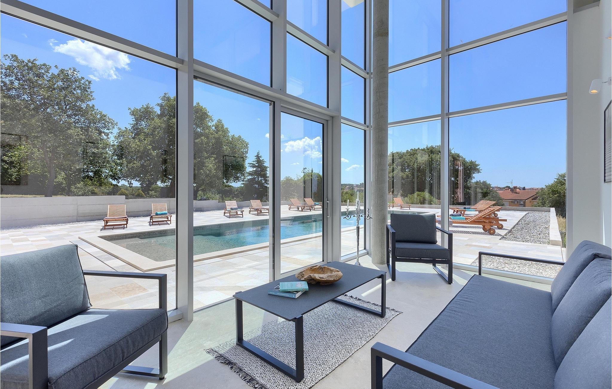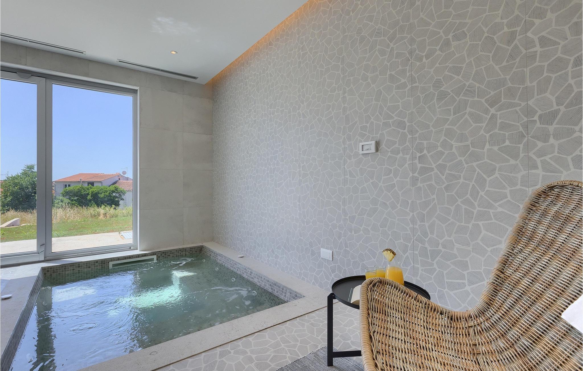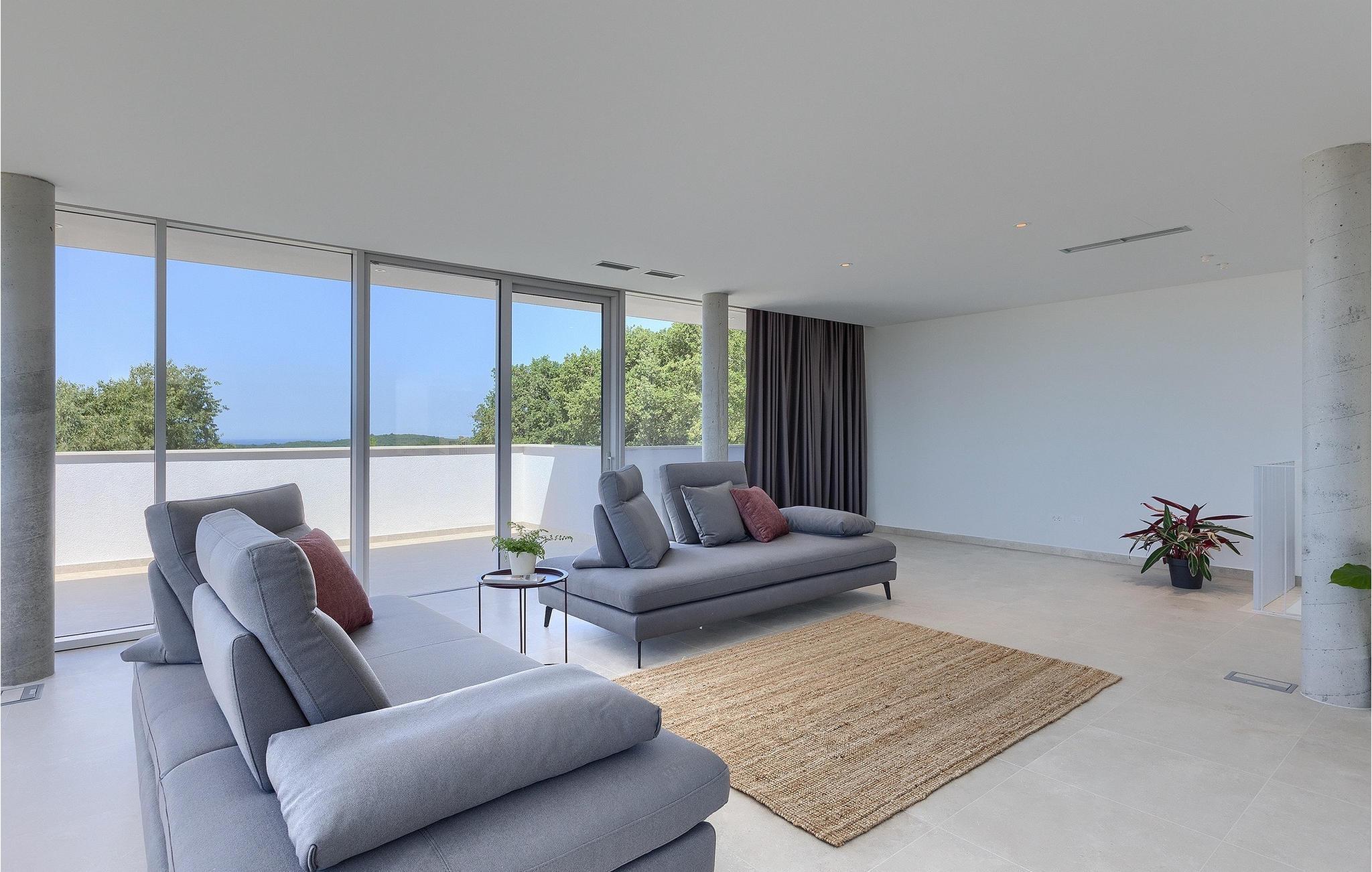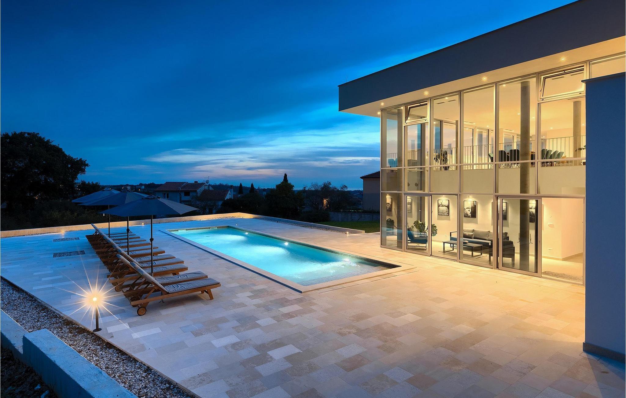 Fabelaktige Villa Koko ligger i utkanten av Rovinjsko Selo, en liten by i nærheten av Rovinj, og er det ideelle feriehuset for opptil 12 gjester som ønsker ren avslapning og komfort. Villaen har en romslig hage med et stort privat basseng, 12 koselige solsenger og en overbygd spiseplass med kullgrill, ideelt for utendørs servering på solfylte dager. Det 600 m2 store interiøret er fordelt på to etasjer og består av totalt 6 soverom, alle med eget bad og klimaanlegg. 5 av soverommene ligger i første etasje og ett i andre etasje. Det fullt utstyrte kjøkkenet med spiseplass og stuen ligger i øverste etasje, som gir en fantastisk utsikt over omgivelsene og havet. Store glassflater sørger for naturlig lys i interiøret, som er enkelt, men luksuriøst innredet. For mer avslappende stunder er det et stort innendørs boblebad og en badstue. For ekstra underholdning har villaen et klimaregulert kinorom utstyrt med en stor, romslig sofa med ligge- og sitteplasser. Den 75-tommers smart-TV-en med høykvalitetsbilde og surroundhøyttalere forsterker det realistiske inntrykket av hver film. Sammen med varmt popcorn fra automaten i kinosalen er underholdningen garantert! Villa Koko tilbyr alt du trenger for en bekymringsløs ferie i ditt eget paradis, samtidig som alle fasiliteter som restauranter og supermarkeder ligger innen gangavstand. Limbukten ligger bare en kort kjøretur unna, og det samme gjelder den romantiske byen Rovinj og strendene rundt. Denne villaen ligger i et idyllisk landskap i den lille landsbyen Rovinjsko selo, en rolig forstad til Rovinj. Landsbyen er preget av tradisjonelt bygde steinhus og de vakre, grønne åkrene, vinmarkene og skogene rundt. Den flotte beliggenheten i forstaden er ideell for daglige utflukter til gamlebyen i Rovinj og dens uovertrufne sjarm. Føl byens magi i de smale middelaldergatene og de varme middelhavsomgivelsene. Fra Eufemia-kirken har du den vakreste utsikten over byen. Andrija, fransiskanerklosteret og bymuren, kan du besøke andre severdigheter. Rovinj er en av de mest romantiske byene i Kroatia, med vakre solnedganger som tar pusten fra deg. Området rundt byen byr også på en rekke fritidsaktiviteter: Sykling, ridning, jogging...