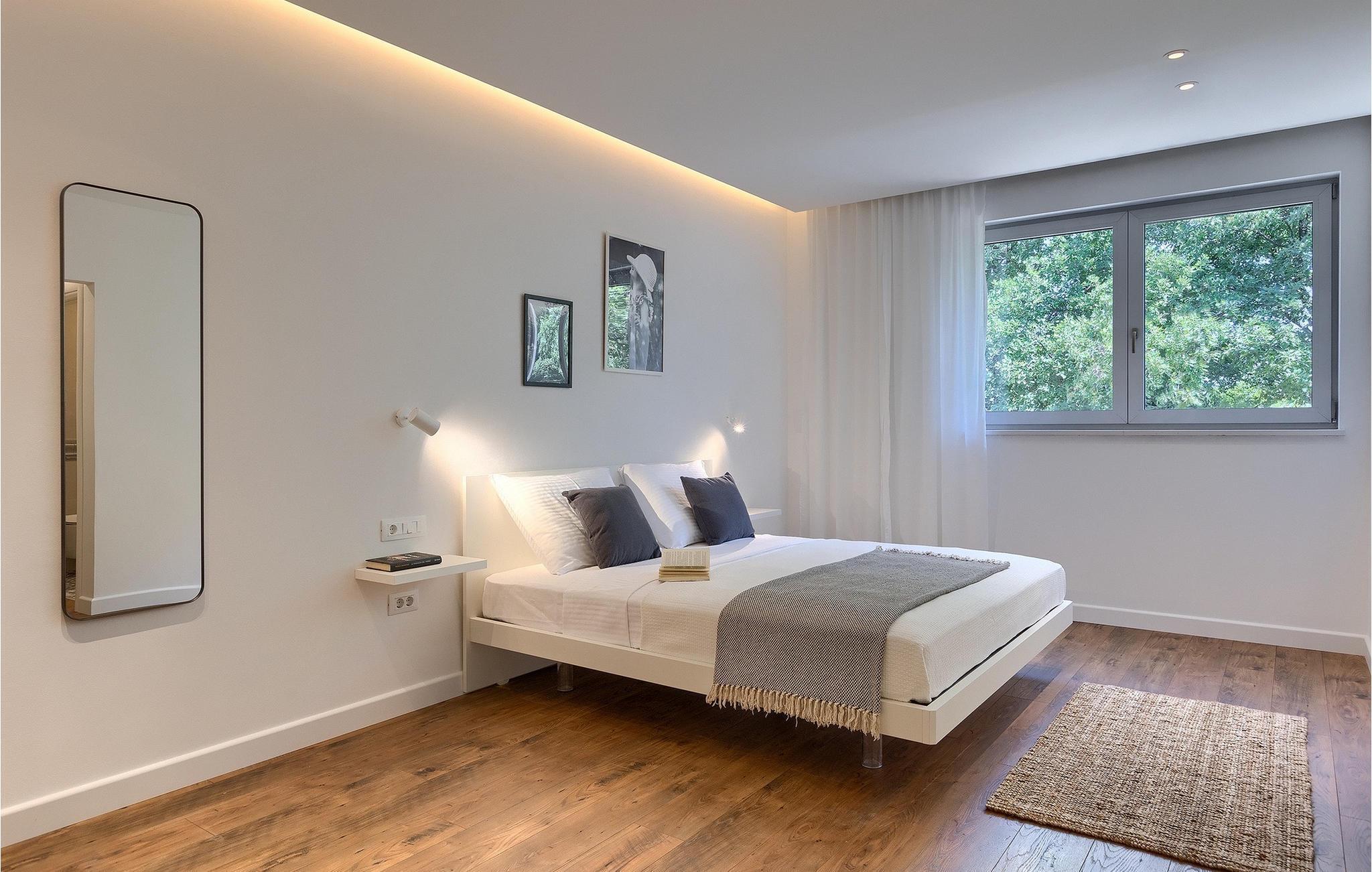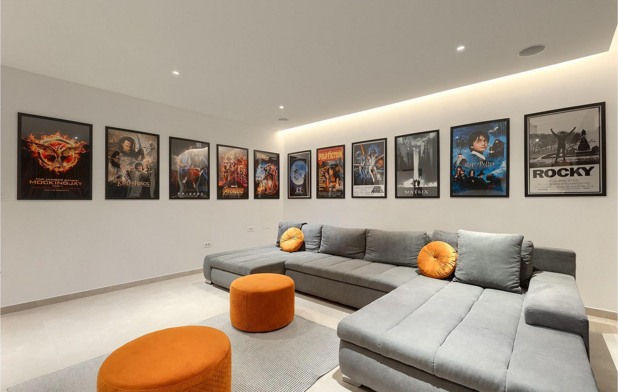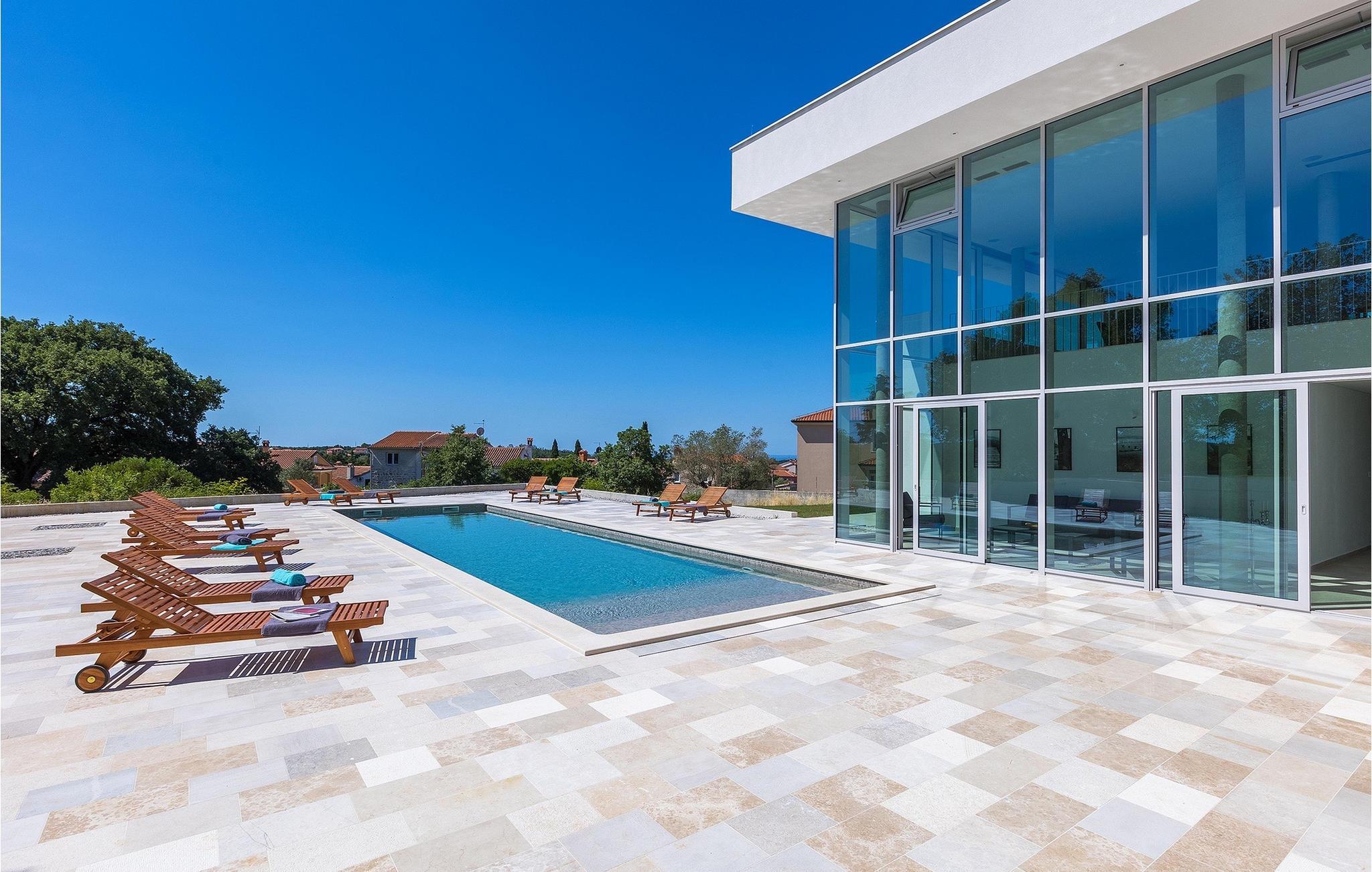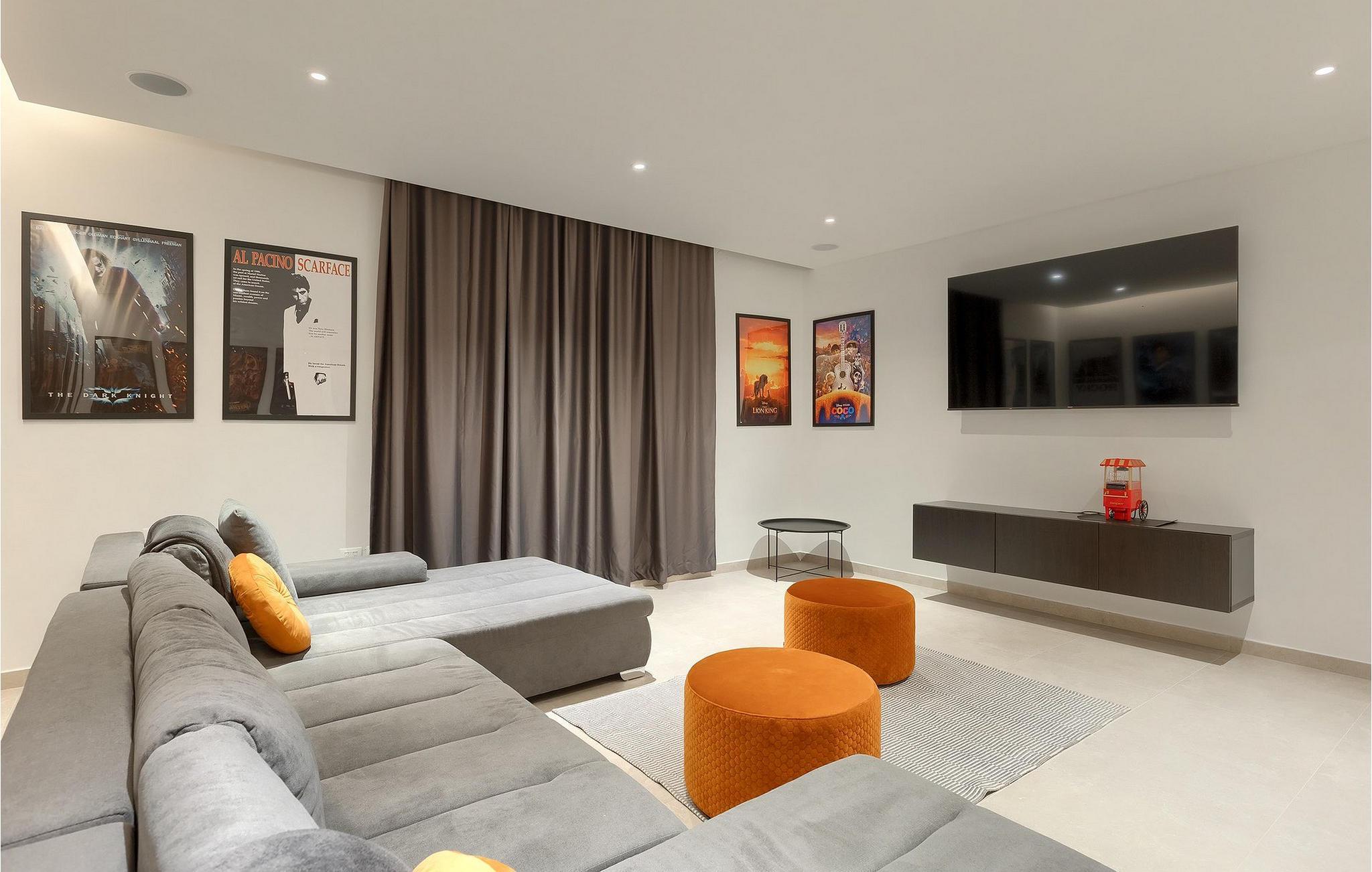 Fabelaktige Villa Koko ligger i utkanten av Rovinjsko Selo, en liten by i nærheten av Rovinj, og er det ideelle feriehuset for opptil 12 gjester som ønsker ren avslapning og komfort. Villaen har en romslig hage med et stort privat basseng, 12 koselige solsenger og en overbygd spiseplass med kullgrill, ideelt for utendørs servering på solfylte dager. Det 600 m2 store interiøret er fordelt på to etasjer og består av totalt 6 soverom, alle med eget bad og klimaanlegg. 5 av soverommene ligger i første etasje og ett i andre etasje. Det fullt utstyrte kjøkkenet med spiseplass og stuen ligger i øverste etasje, som gir en fantastisk utsikt over omgivelsene og havet. Store glassflater sørger for naturlig lys i interiøret, som er enkelt, men luksuriøst innredet. For mer avslappende stunder er det et stort innendørs boblebad og en badstue. For ekstra underholdning har villaen et klimaregulert kinorom utstyrt med en stor, romslig sofa med ligge- og sitteplasser. Den 75-tommers smart-TV-en med høykvalitetsbilde og surroundhøyttalere forsterker det realistiske inntrykket av hver film. Sammen med varmt popcorn fra automaten i kinosalen er underholdningen garantert! Villa Koko tilbyr alt du trenger for en bekymringsløs ferie i ditt eget paradis, samtidig som alle fasiliteter som restauranter og supermarkeder ligger innen gangavstand. Limbukten ligger bare en kort kjøretur unna, og det samme gjelder den romantiske byen Rovinj og strendene rundt. Denne villaen ligger i et idyllisk landskap i den lille landsbyen Rovinjsko selo, en rolig forstad til Rovinj. Landsbyen er preget av tradisjonelt bygde steinhus og de vakre, grønne åkrene, vinmarkene og skogene rundt. Den flotte beliggenheten i forstaden er ideell for daglige utflukter til gamlebyen i Rovinj og dens uovertrufne sjarm. Føl byens magi i de smale middelaldergatene og de varme middelhavsomgivelsene. Fra Eufemia-kirken har du den vakreste utsikten over byen. Andrija, fransiskanerklosteret og bymuren, kan du besøke andre severdigheter. Rovinj er en av de mest romantiske byene i Kroatia, med vakre solnedganger som tar pusten fra deg. Området rundt byen byr også på en rekke fritidsaktiviteter: Sykling, ridning, jogging...