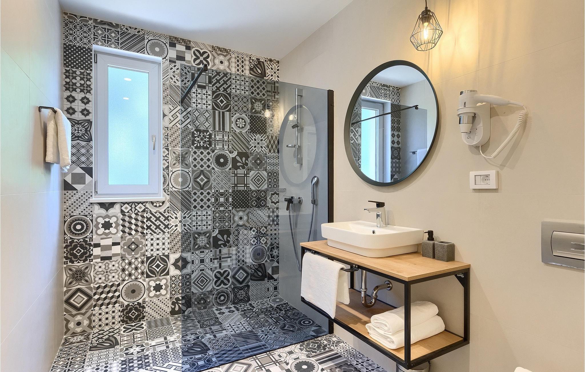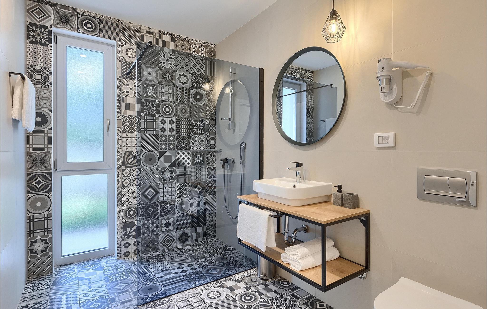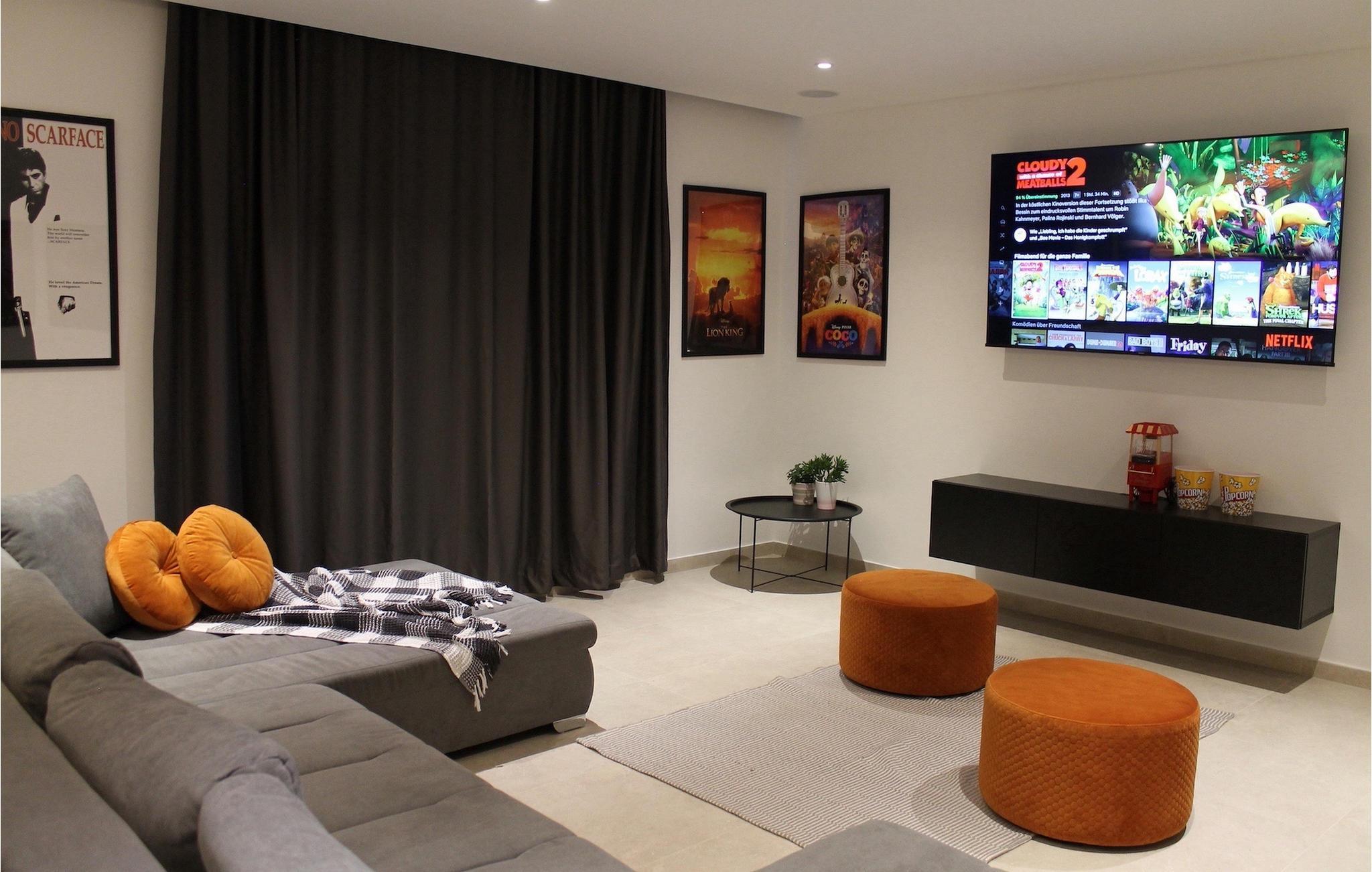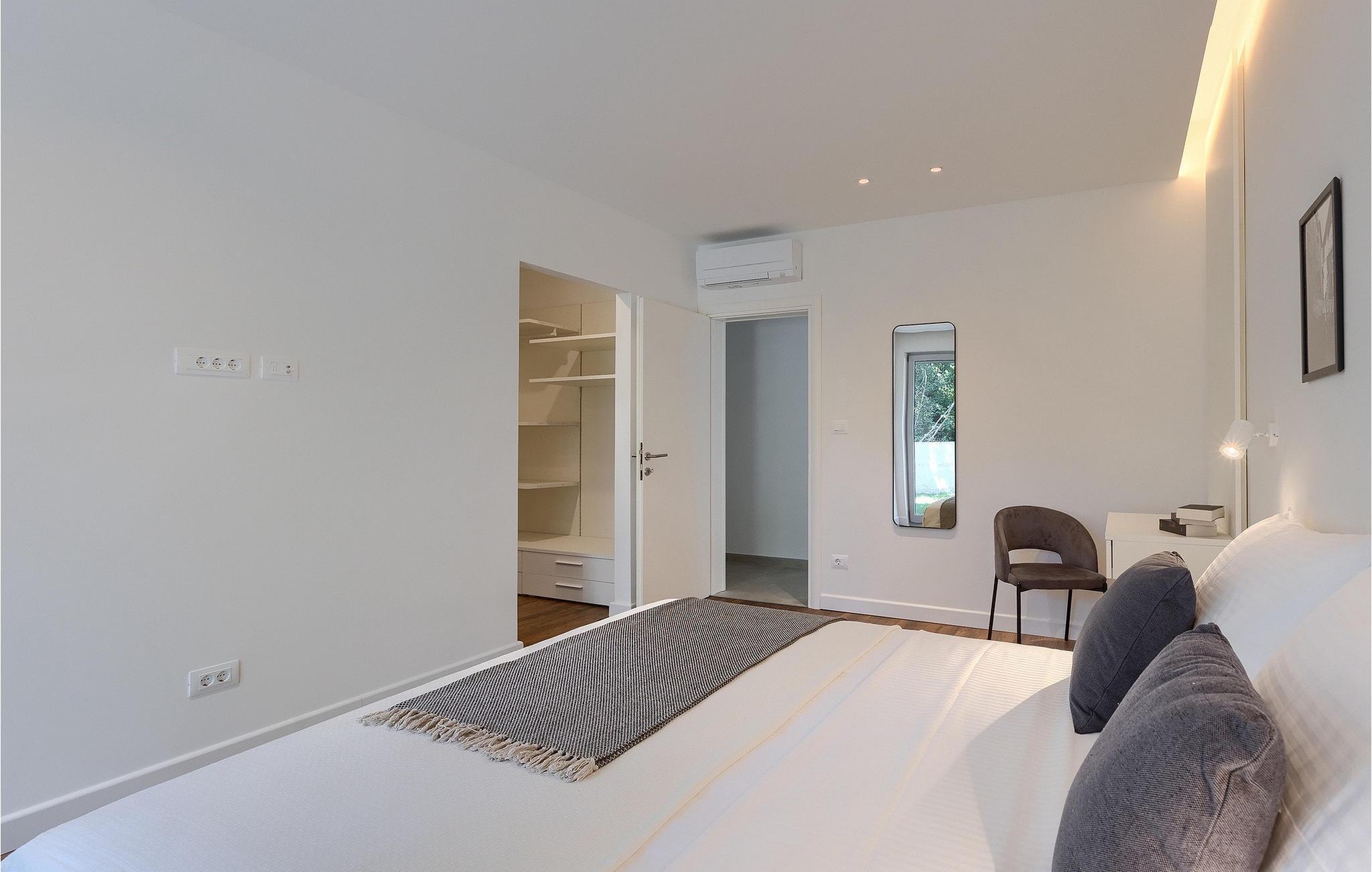 Fabelaktige Villa Koko ligger i utkanten av Rovinjsko Selo, en liten by i nærheten av Rovinj, og er det ideelle feriehuset for opptil 12 gjester som ønsker ren avslapning og komfort. Villaen har en romslig hage med et stort privat basseng, 12 koselige solsenger og en overbygd spiseplass med kullgrill, ideelt for utendørs servering på solfylte dager. Det 600 m2 store interiøret er fordelt på to etasjer og består av totalt 6 soverom, alle med eget bad og klimaanlegg. 5 av soverommene ligger i første etasje og ett i andre etasje. Det fullt utstyrte kjøkkenet med spiseplass og stuen ligger i øverste etasje, som gir en fantastisk utsikt over omgivelsene og havet. Store glassflater sørger for naturlig lys i interiøret, som er enkelt, men luksuriøst innredet. For mer avslappende stunder er det et stort innendørs boblebad og en badstue. For ekstra underholdning har villaen et klimaregulert kinorom utstyrt med en stor, romslig sofa med ligge- og sitteplasser. Den 75-tommers smart-TV-en med høykvalitetsbilde og surroundhøyttalere forsterker det realistiske inntrykket av hver film. Sammen med varmt popcorn fra automaten i kinosalen er underholdningen garantert! Villa Koko tilbyr alt du trenger for en bekymringsløs ferie i ditt eget paradis, samtidig som alle fasiliteter som restauranter og supermarkeder ligger innen gangavstand. Limbukten ligger bare en kort kjøretur unna, og det samme gjelder den romantiske byen Rovinj og strendene rundt. Denne villaen ligger i et idyllisk landskap i den lille landsbyen Rovinjsko selo, en rolig forstad til Rovinj. Landsbyen er preget av tradisjonelt bygde steinhus og de vakre, grønne åkrene, vinmarkene og skogene rundt. Den flotte beliggenheten i forstaden er ideell for daglige utflukter til gamlebyen i Rovinj og dens uovertrufne sjarm. Føl byens magi i de smale middelaldergatene og de varme middelhavsomgivelsene. Fra Eufemia-kirken har du den vakreste utsikten over byen. Andrija, fransiskanerklosteret og bymuren, kan du besøke andre severdigheter. Rovinj er en av de mest romantiske byene i Kroatia, med vakre solnedganger som tar pusten fra deg. Området rundt byen byr også på en rekke fritidsaktiviteter: Sykling, ridning, jogging...