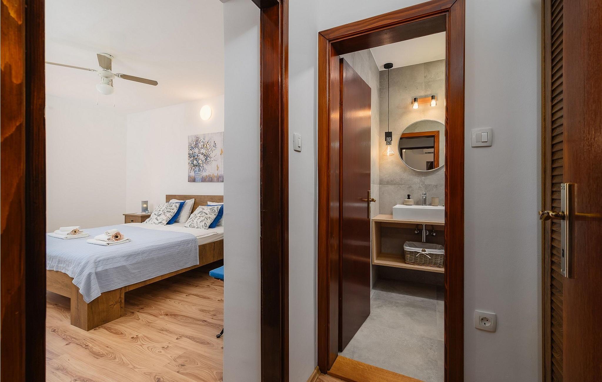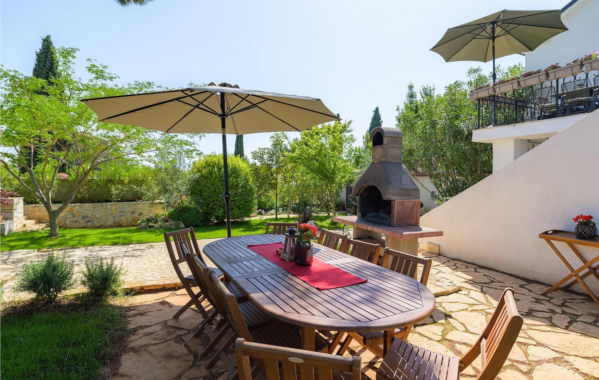 Bare 400 meter fra huset finner du en vakker strand og en hundestrand. En sykkelsti går like ved huset. Huset ble bygget i 1977 og renovert i 2015. På en over 3000 kvadratmeter stor tomt langs en gammel olivenlund har gjestene tilgang til en ca. 600 kvadratmeter stor hage med sitteplasser, grill og flere parkeringsplasser.