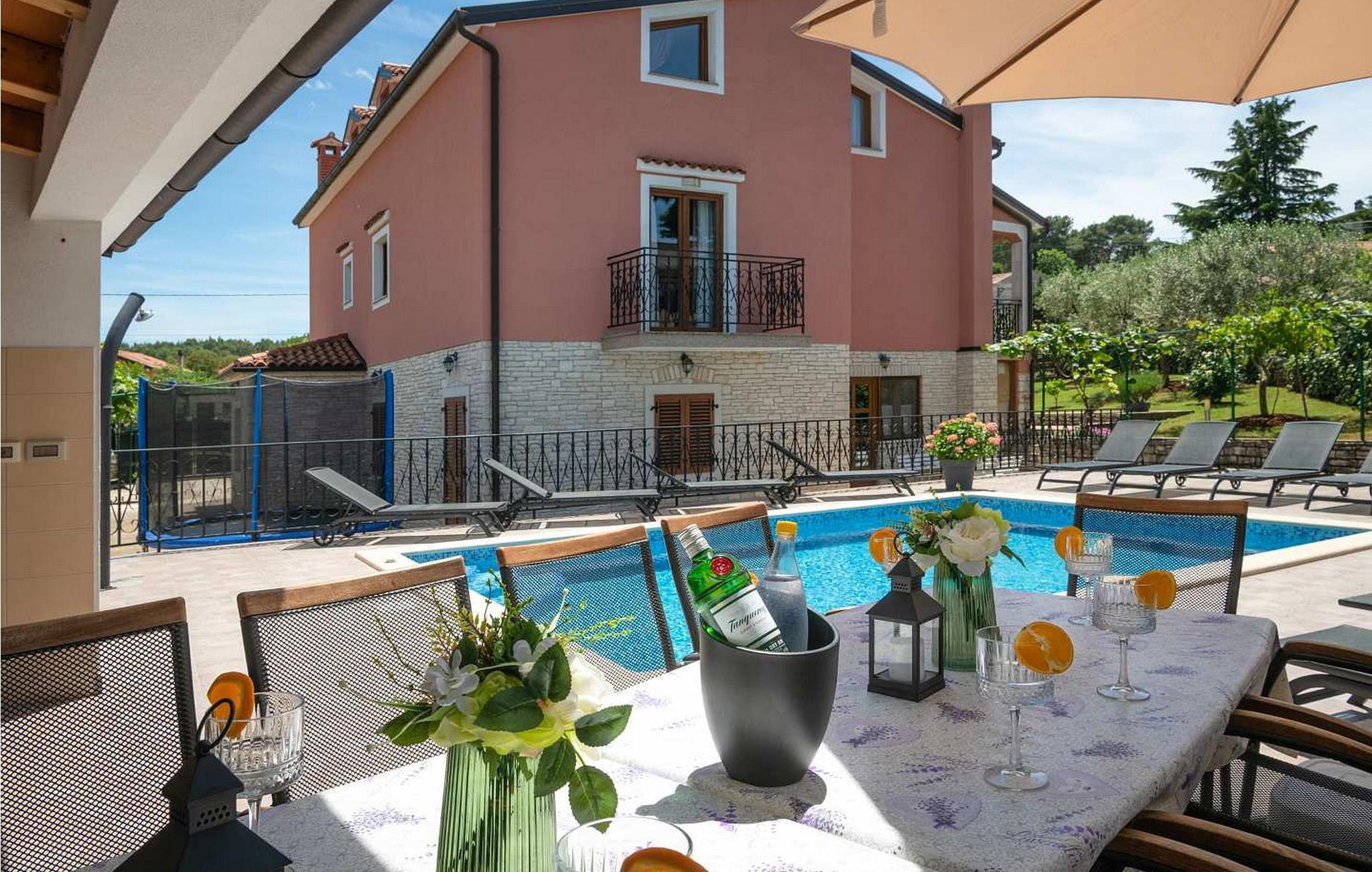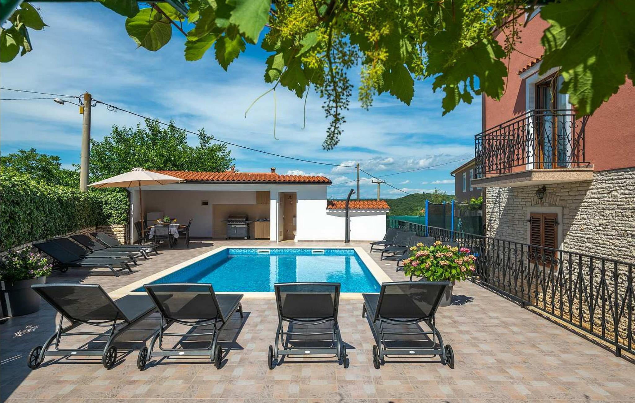 Huset ble bygget i 1999 og renovert i 2015, og tilbyr gjestene et snev av rustikk og moderne stil som vil glede alle. På den inngjerdede tomten på 1000 kvm har gjestene tilgang til et utendørsbasseng på 30 kvm, sommerkjøkken med gassgrill og spisebord, separat toalett, trampoline, sitteplasser i skyggen av vinrankene og parkering for 3 biler.