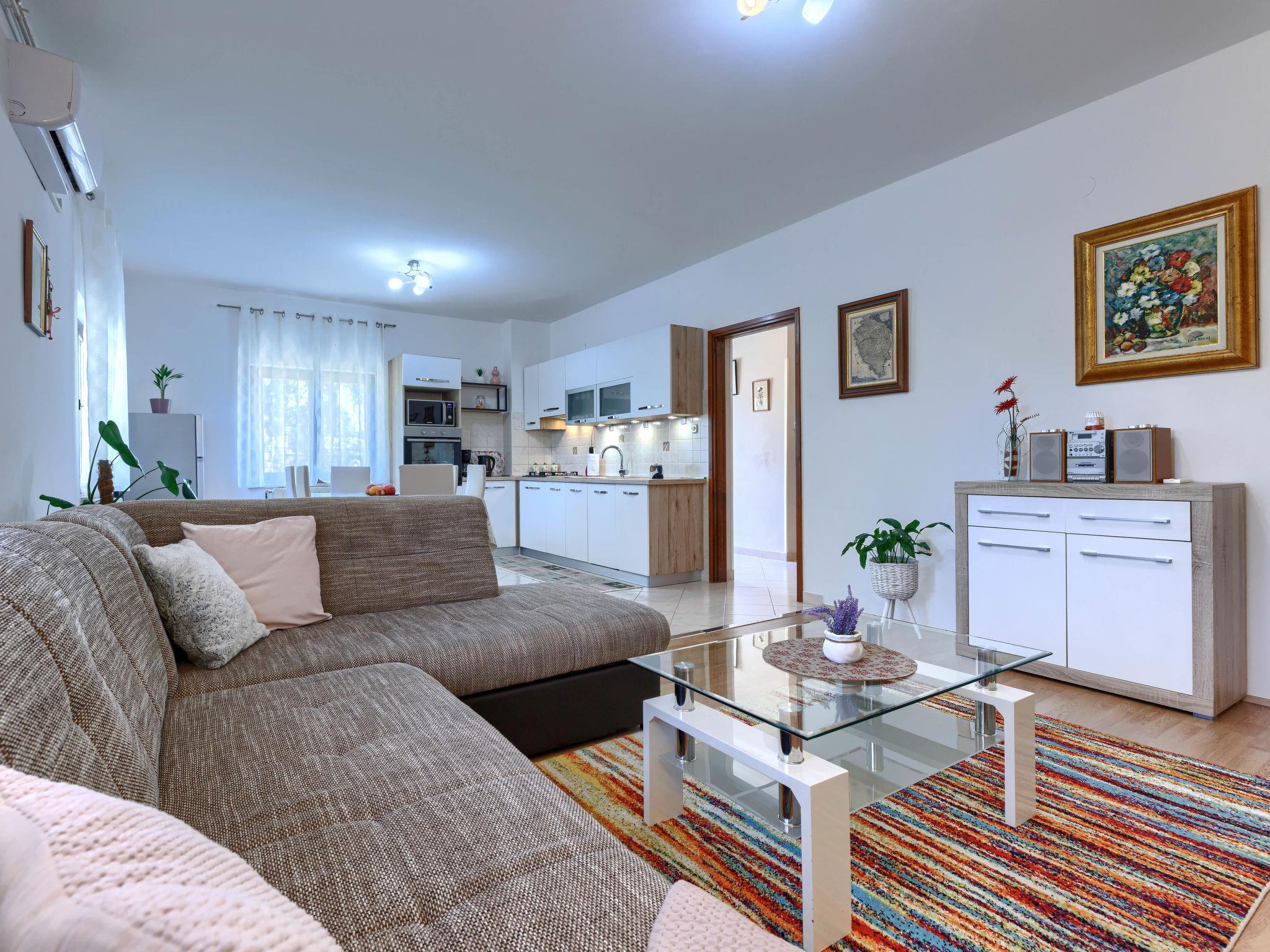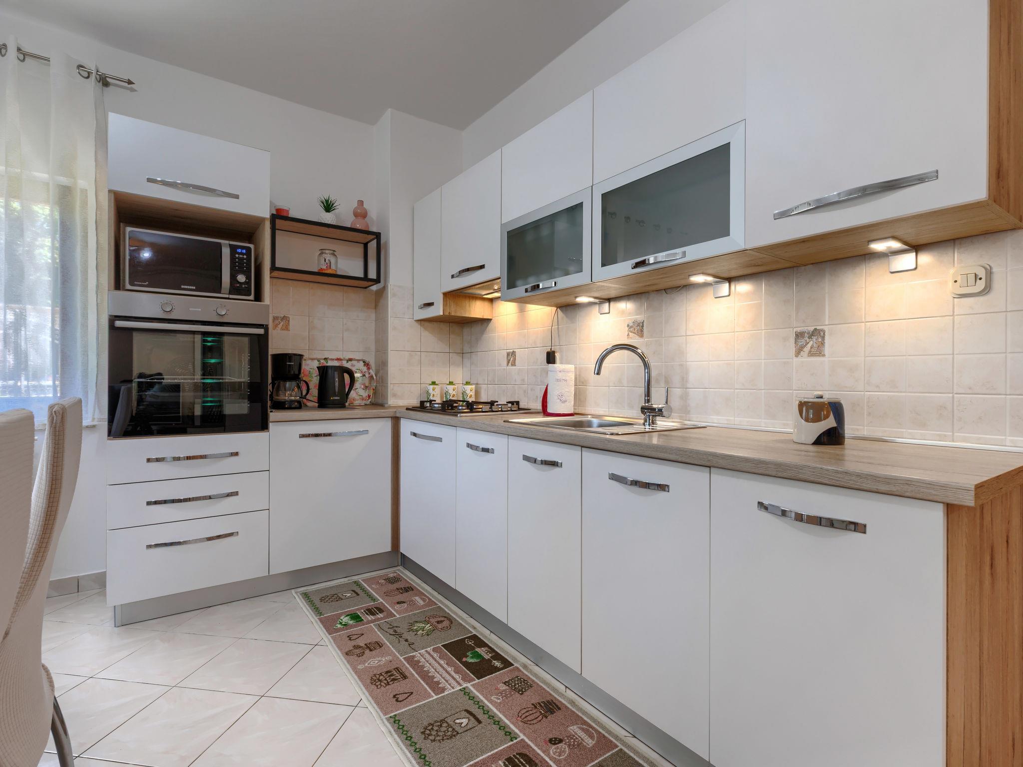 "Cekic", 2-room apartment 60 m2, on the ground floor. Living/dining room with 1 double sofabed (150 cm, length 200 cm), satellite TV and air conditioning. Exit to the terrace. 1 room with 1 french bed (180 cm, length 200 cm). Open kitchen (1 hot plate, dishwasher, 3 gas rings, toaster, kettle, microwave, electric coffee machine). Shower/WC. No heating option. Terrace 6 m2. Terrace furniture. Facilities: washing machine. Internet (WiFi, free). Please note: non-smoking house.