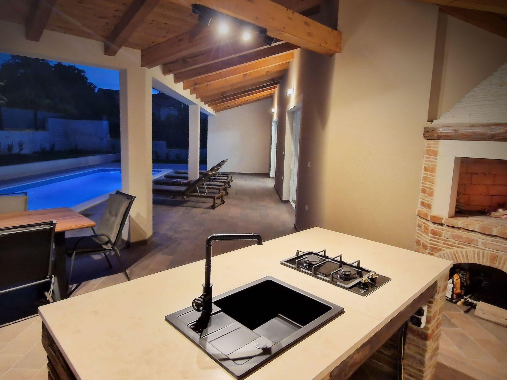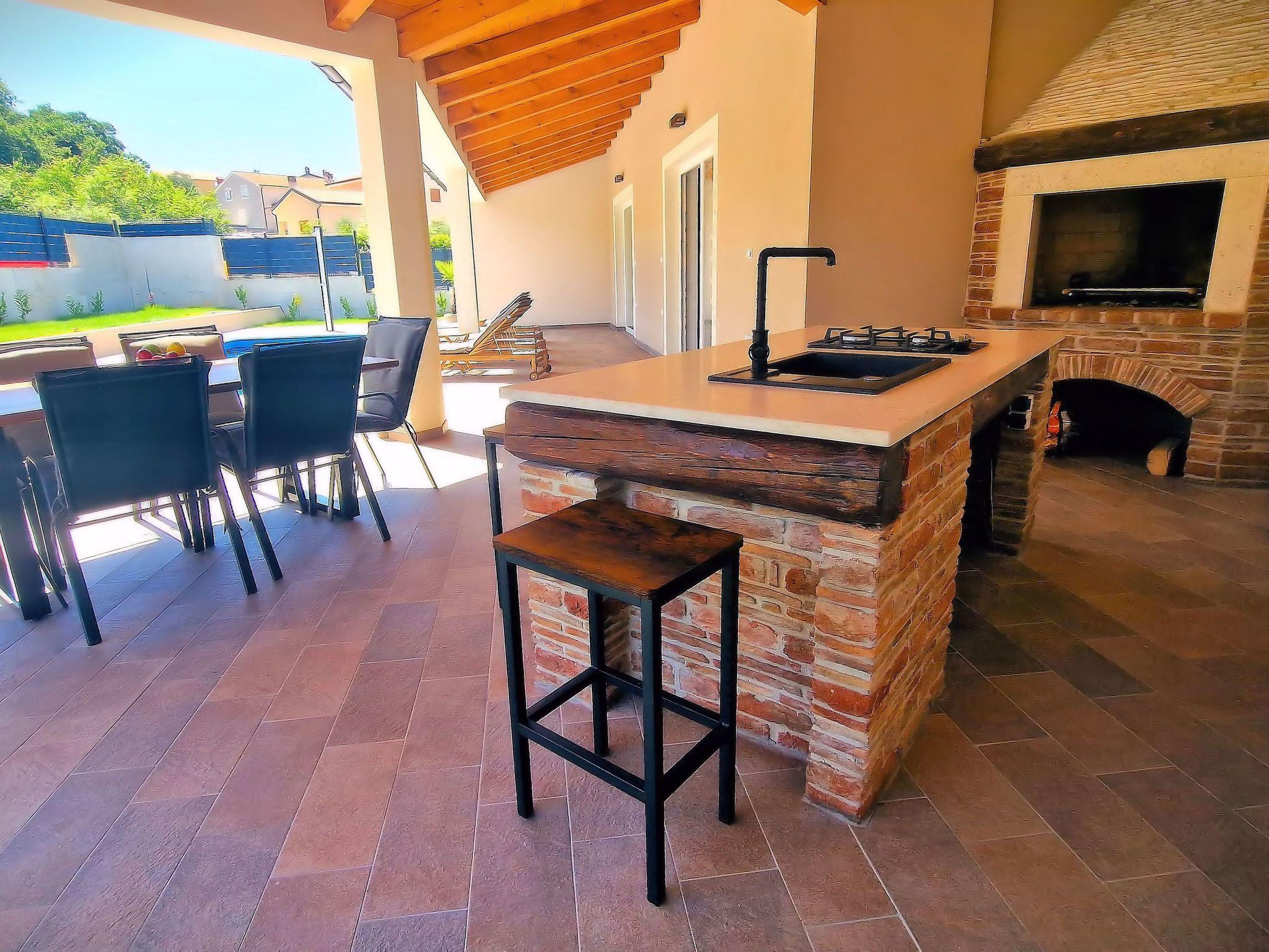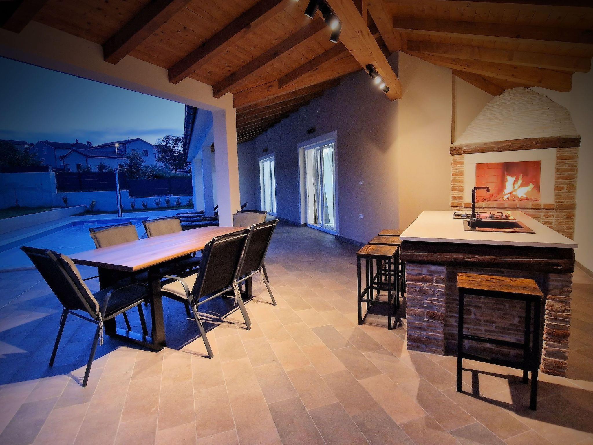 The villa is situated in Rovinjsko Selo, Istrien, a location that strikes a perfect balance between peaceful countryside charm and proximity to the lively town of Rovinj. Here, you are just a short drive away from pristine beaches, exquisite dining establishments, and a range of activities that cater to every interest. Whether you're looking to explore historic sites, engage in water sports, or simply soak up the local culture, everything you desire is within easy reach.