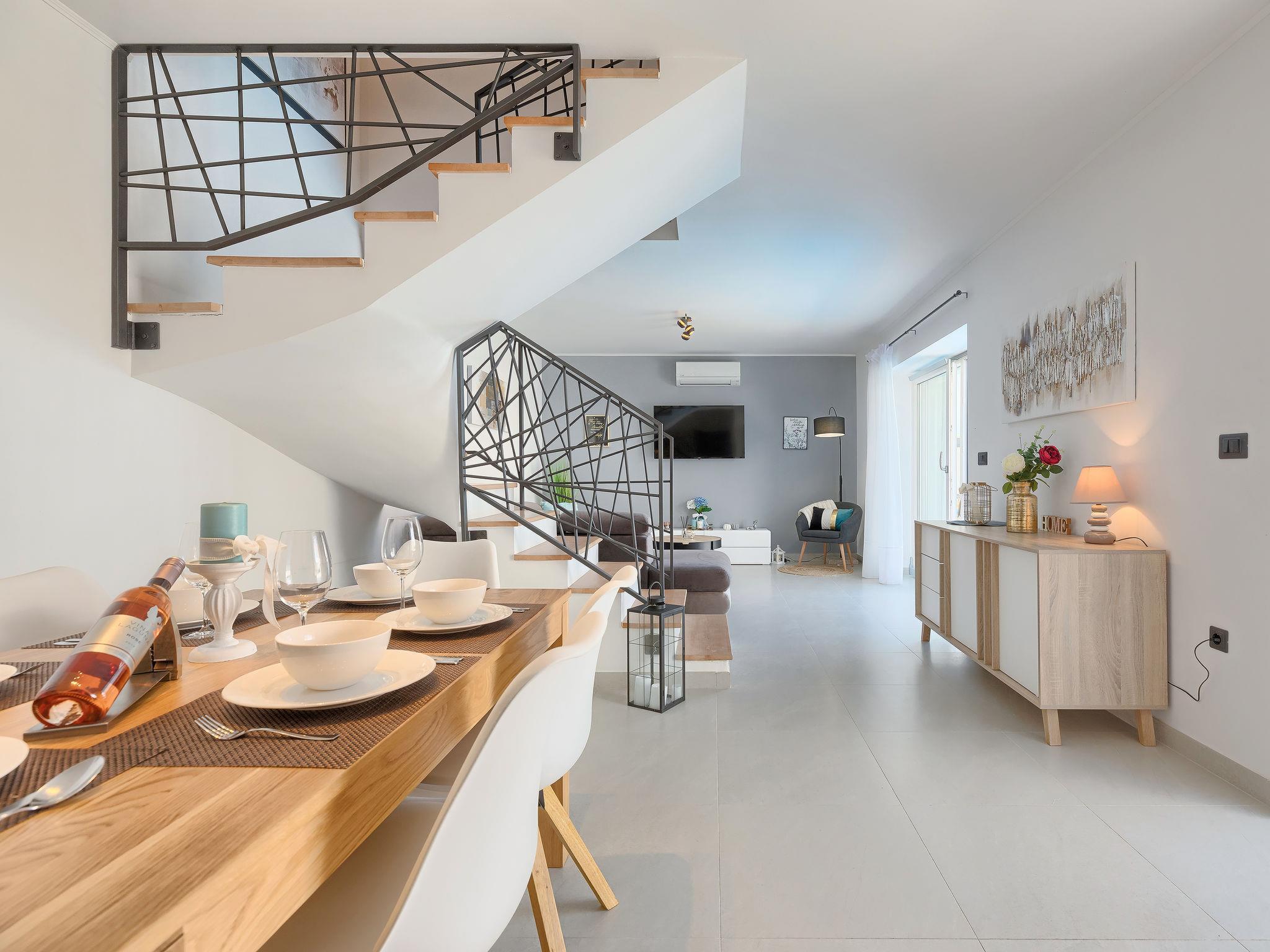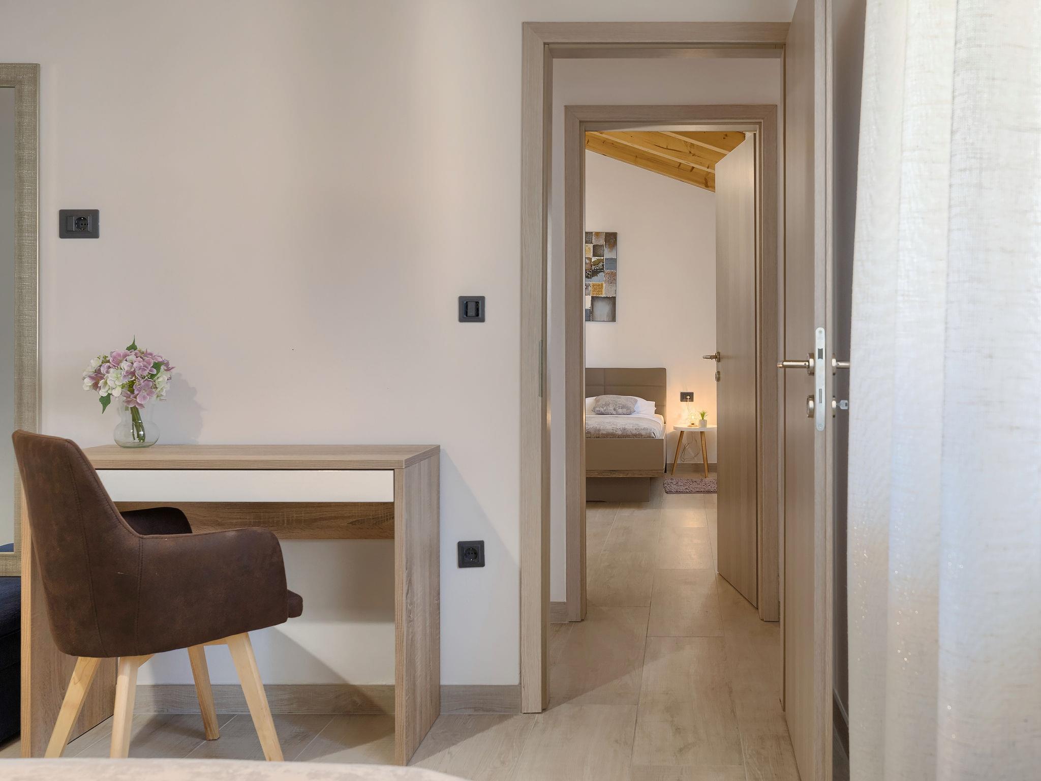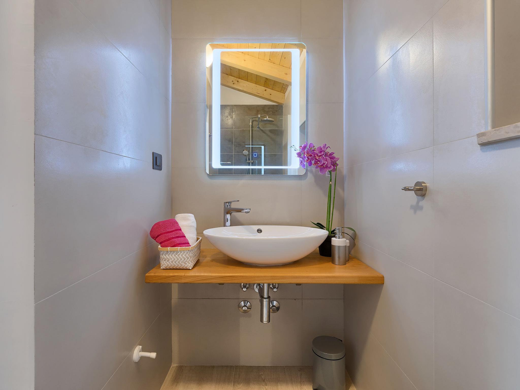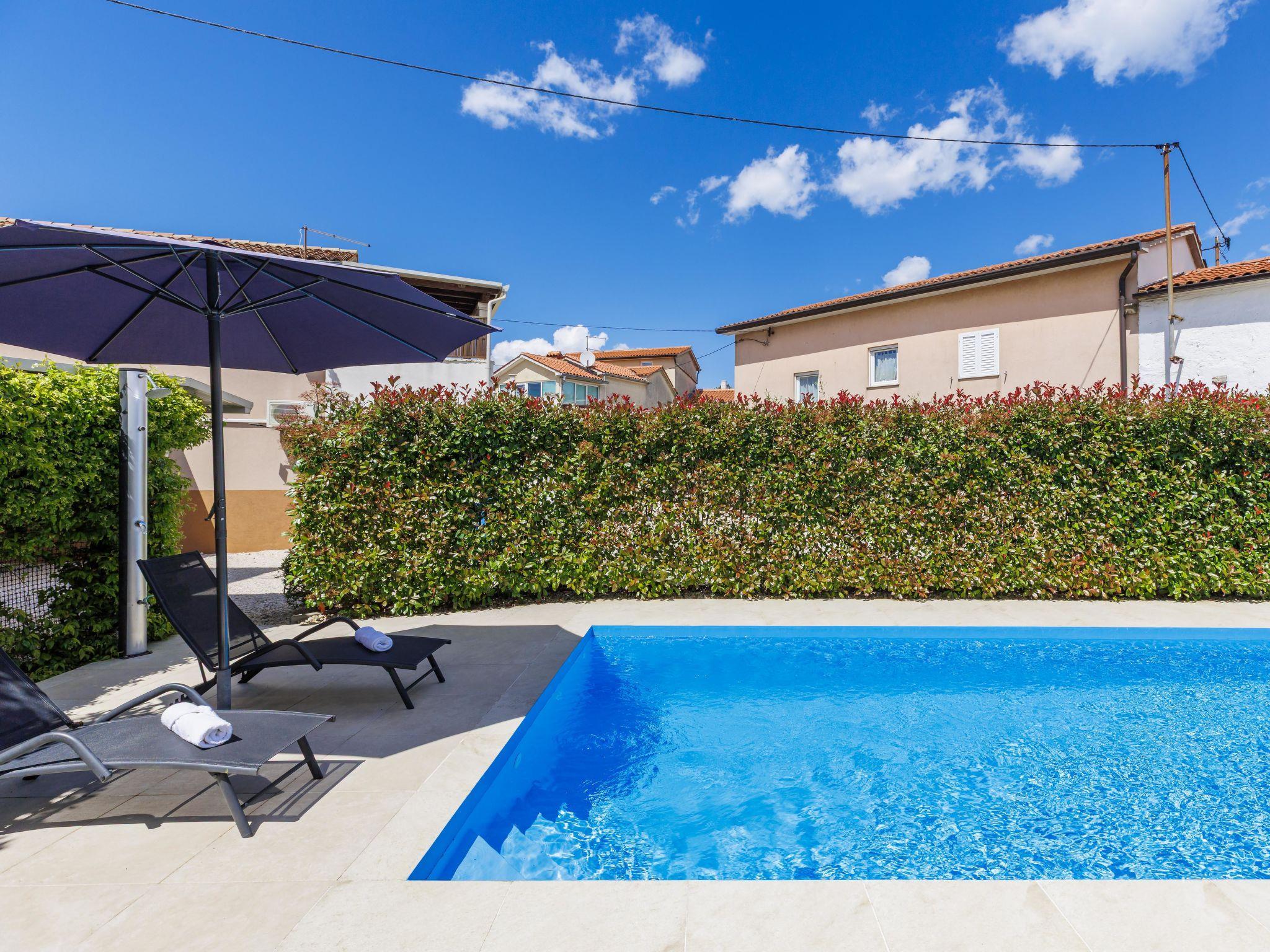 Single-family house "Villa Karmen", 2 storeys, renovated in 2019. In the hamlet Gljušcici 6 km from the centre of Žminj, 30 km from the centre of Rovinj, 28 km from the sea. Private: property 400 m2 (fenced), swimming pool angular (7 x 3 m, 24 m2, depth 130 cm, seasonal availability: 01.May. - 14.Oct.) with internal staircase. Outdoor shower, table tennis, terrace, garden furniture. In the house: internet access, washing machine. Parking (for 3 cars) on the premises. Shop 500 m, restaurant 1 km, bus stop 6.1 km, rocky beach 28 km.