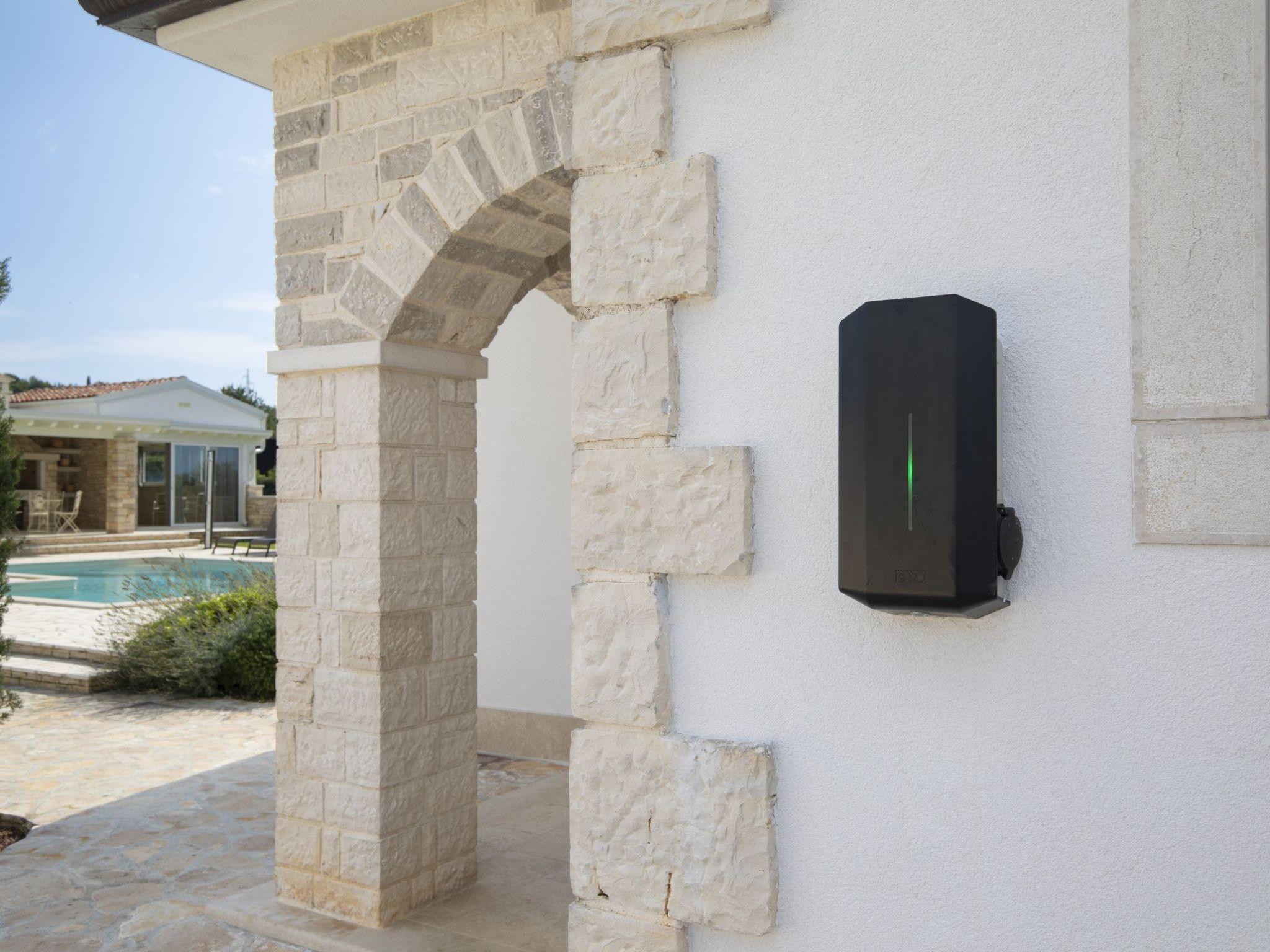 The villa is equipped with three air conditioning units: one in the poolside bedroom, one in the ground-floor living room, and one on the first floor.